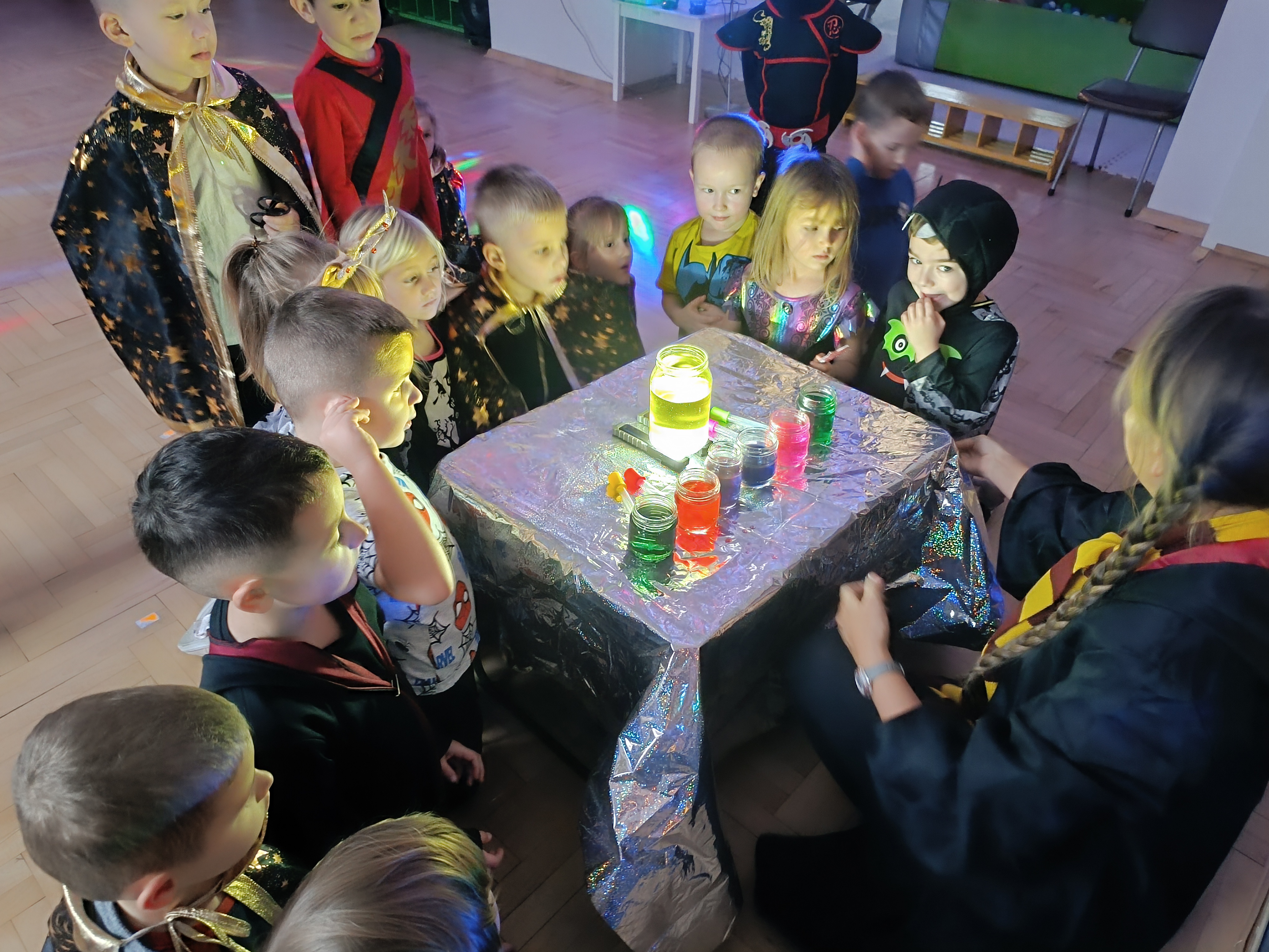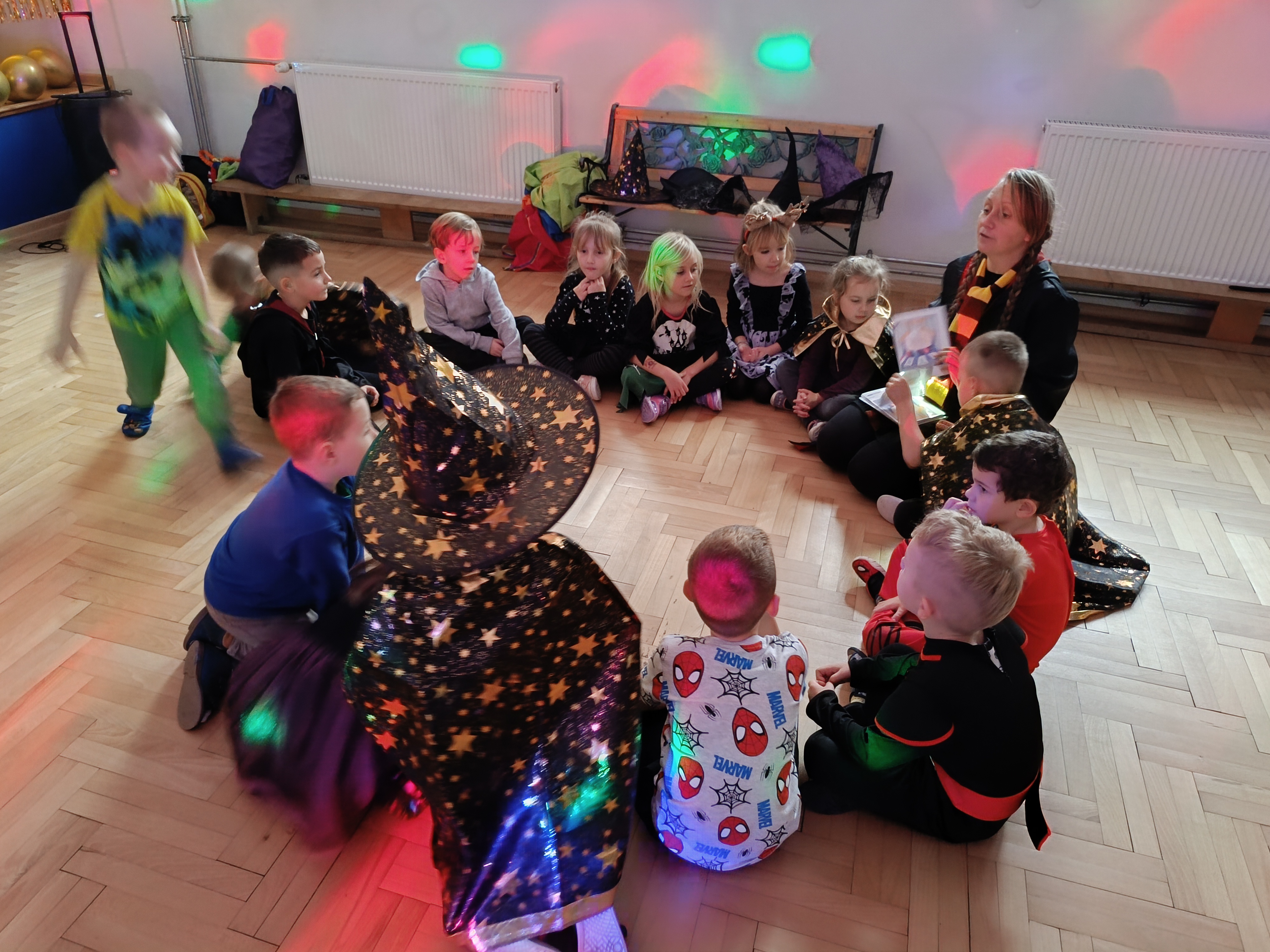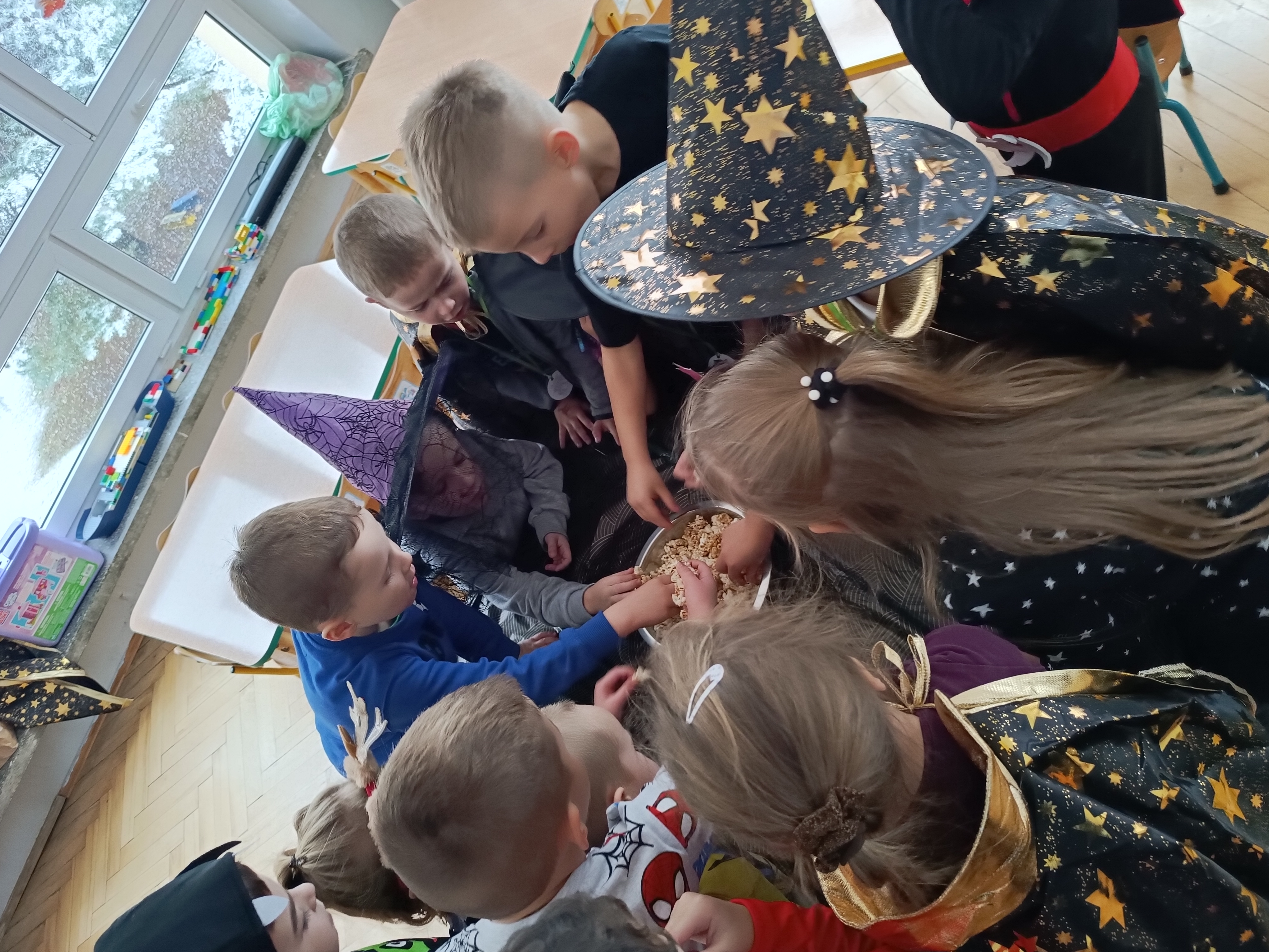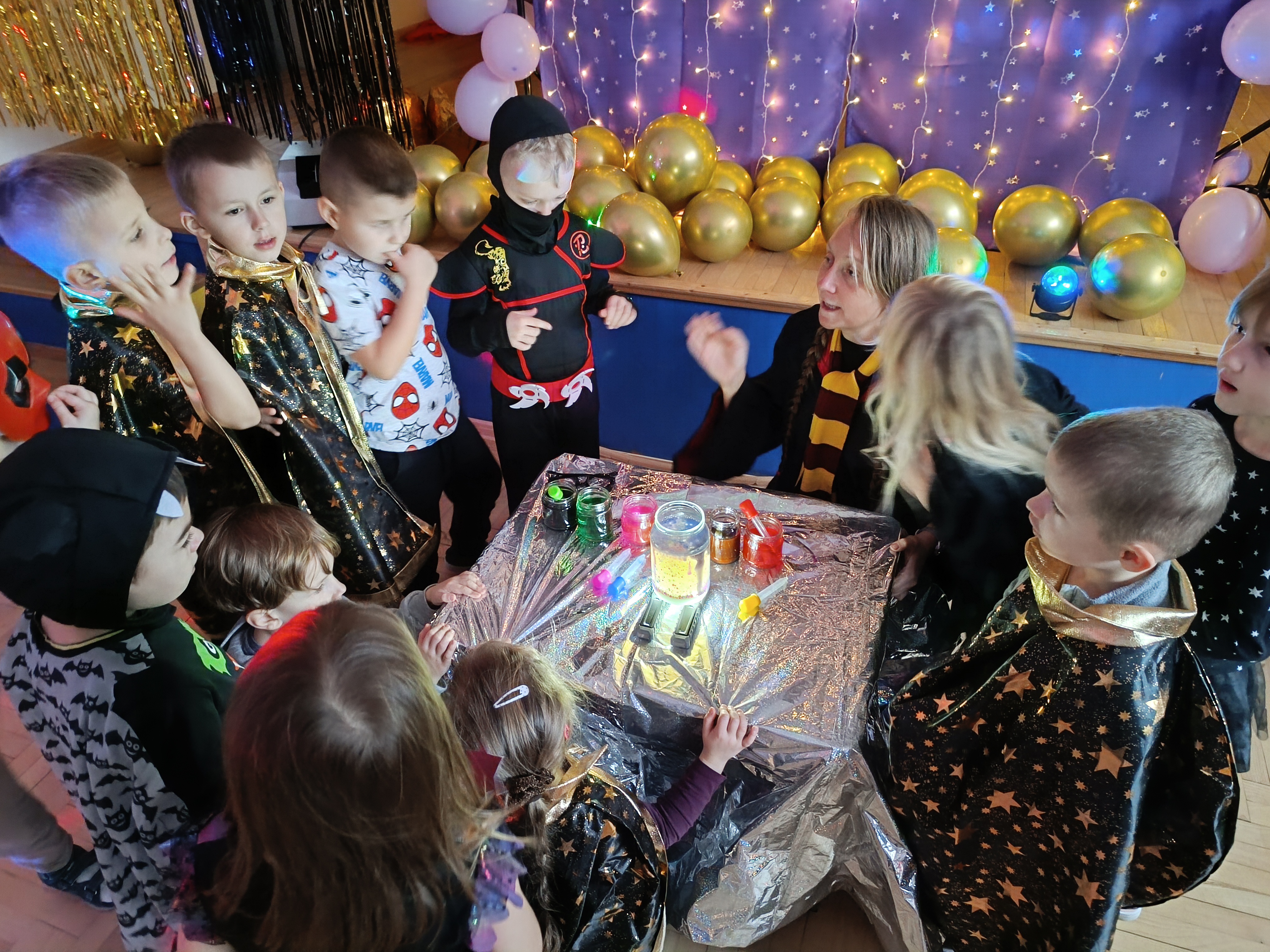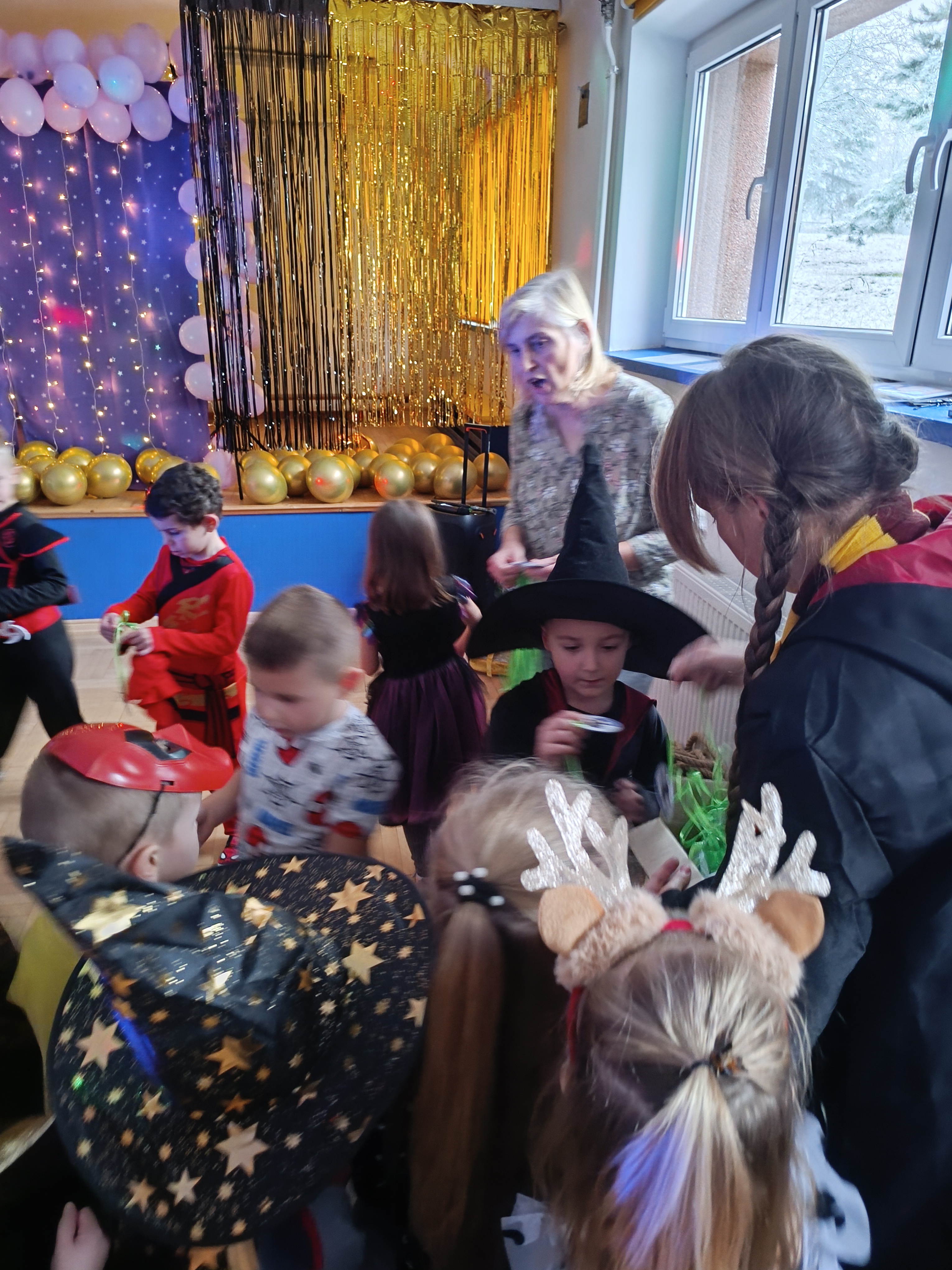 Tajemnicze dekoracje w sali sprawiły, że przedszkolaki przeniosły się w krainę czarów i wróżb. Ten dzień był dniem radosnych zabaw i wróżb, w których dzieci mogły poznać swoją bliższą i dalszą przyszłość.