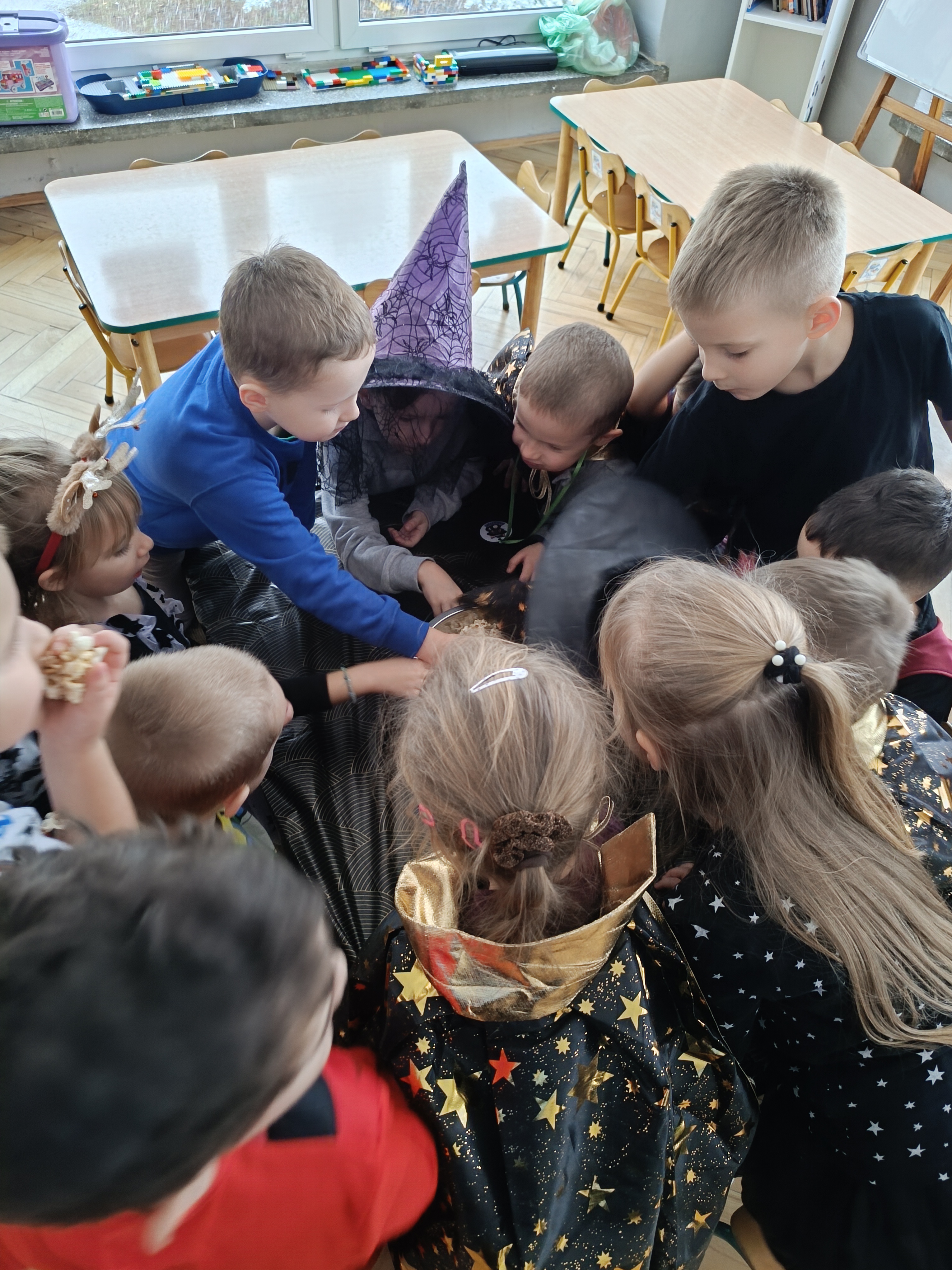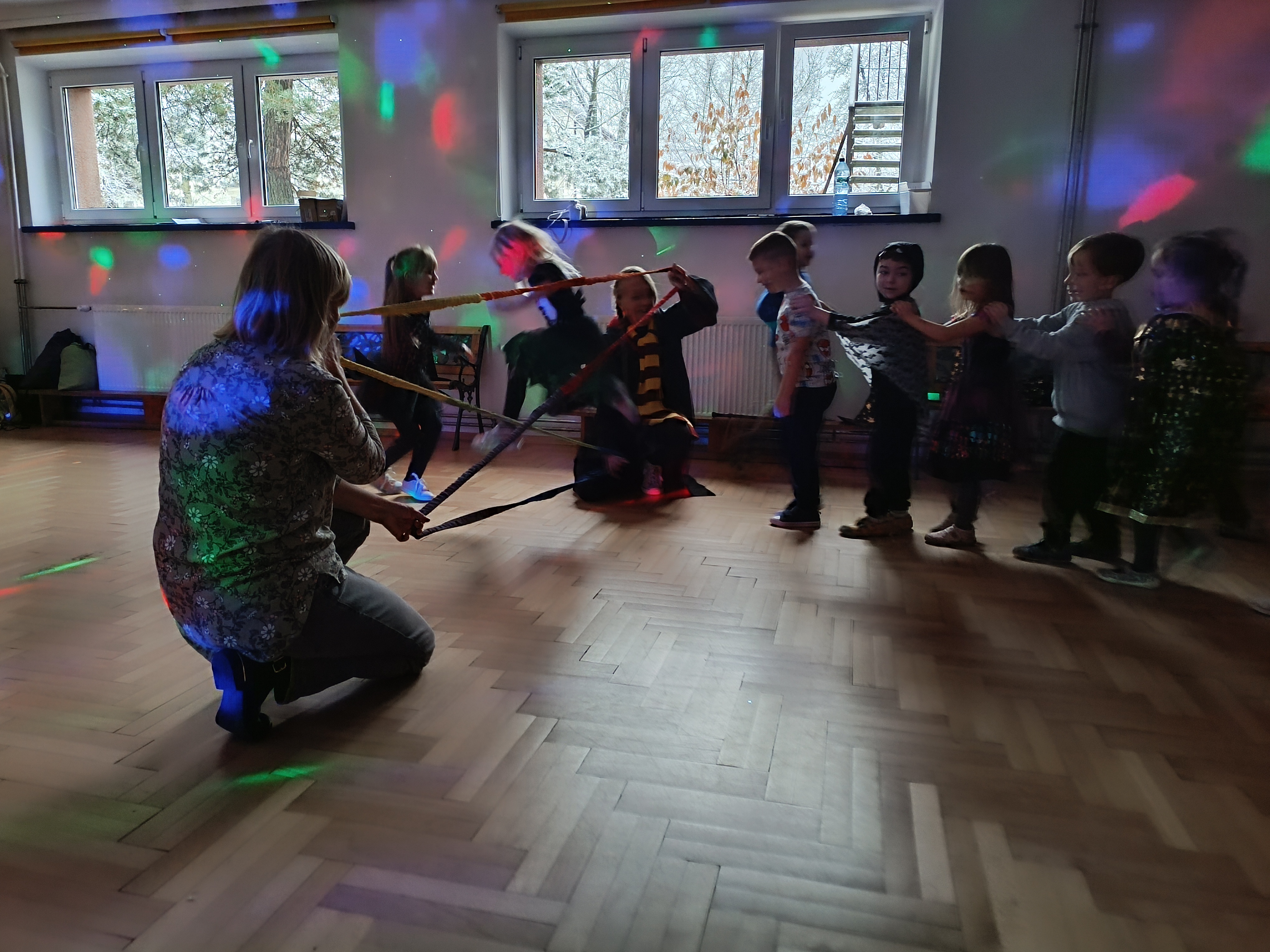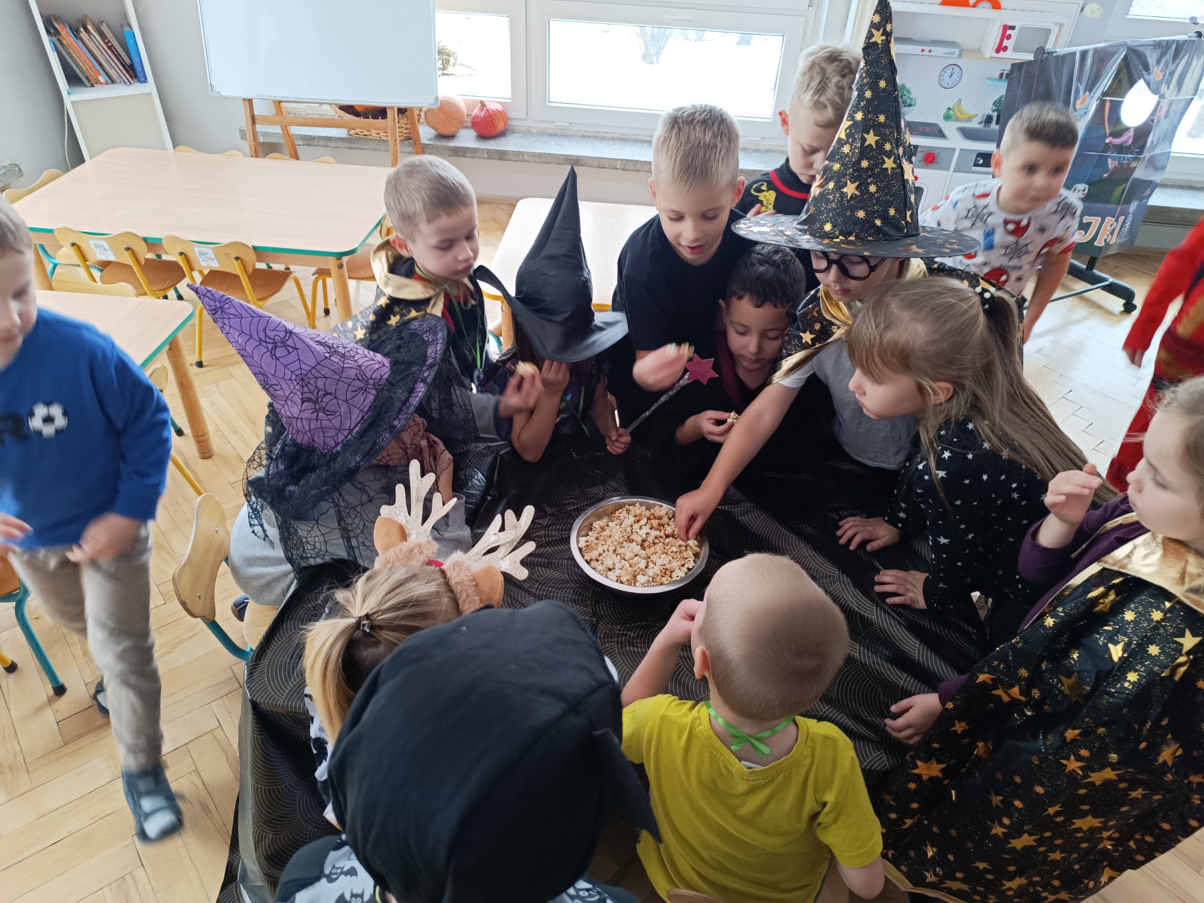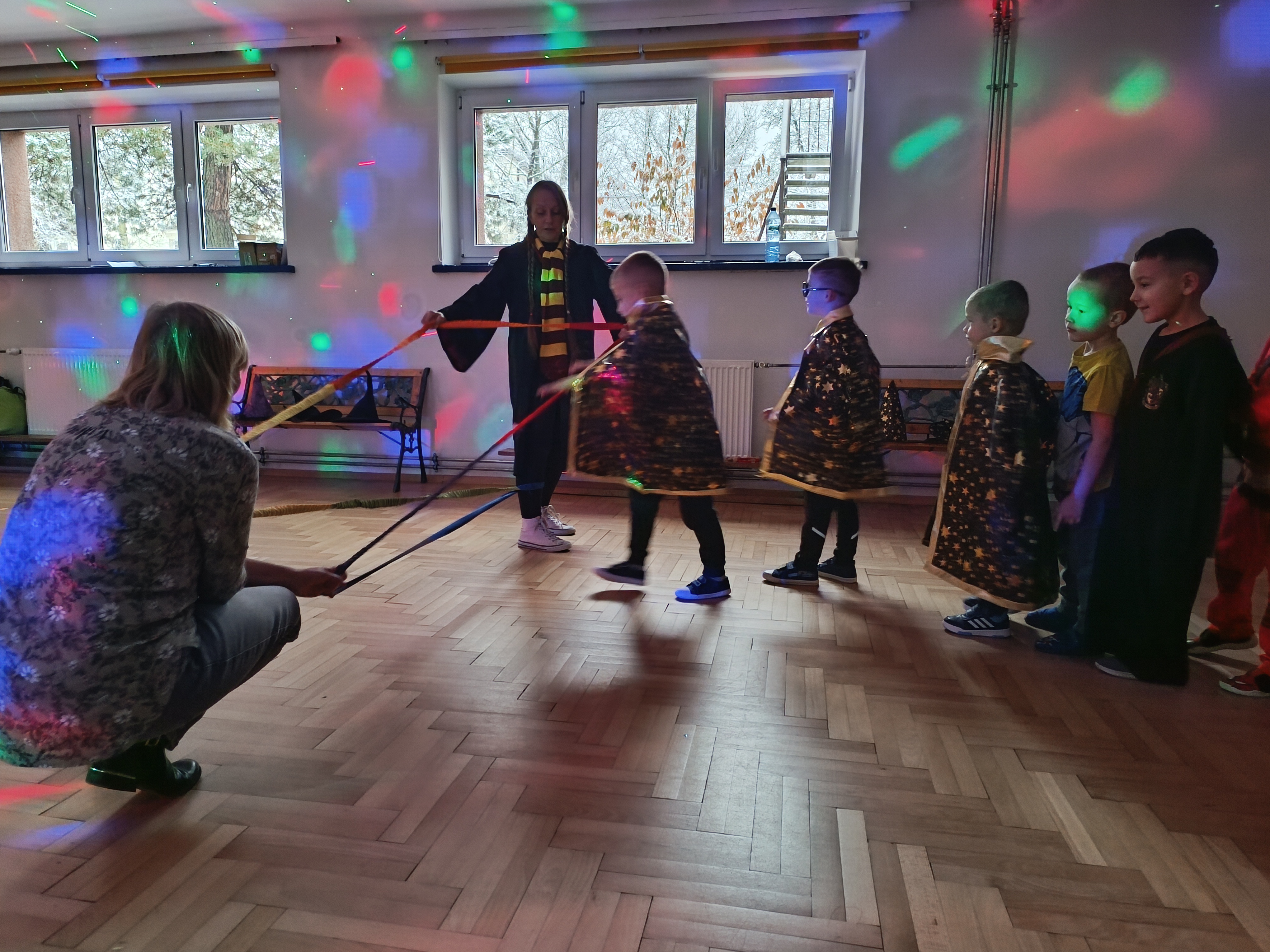 Tajemnicze dekoracje w sali sprawiły, że przedszkolaki przeniosły się w krainę czarów i wróżb. Ten dzień był dniem radosnych zabaw i wróżb, w których dzieci mogły poznać swoją bliższą i dalszą przyszłość.