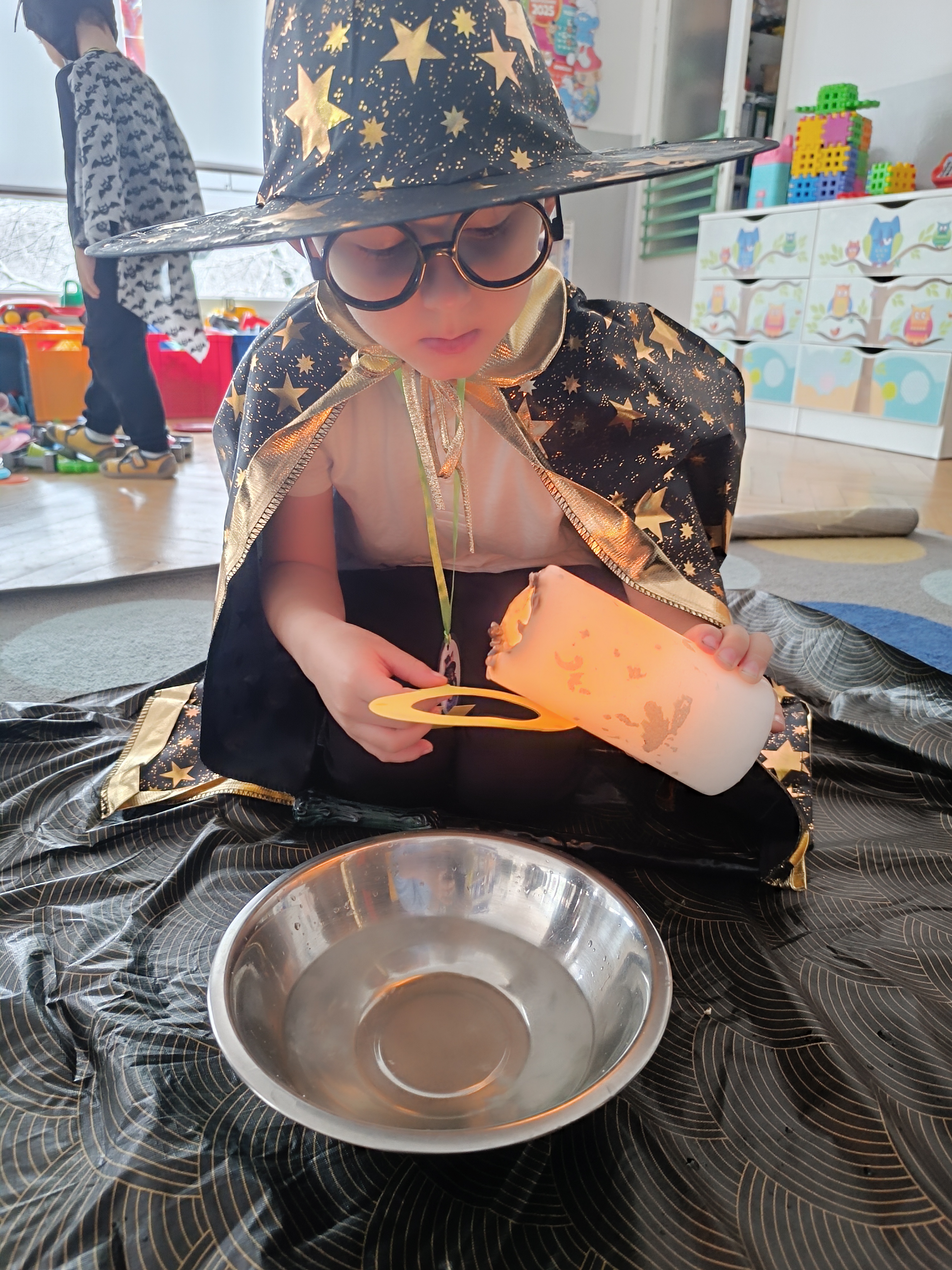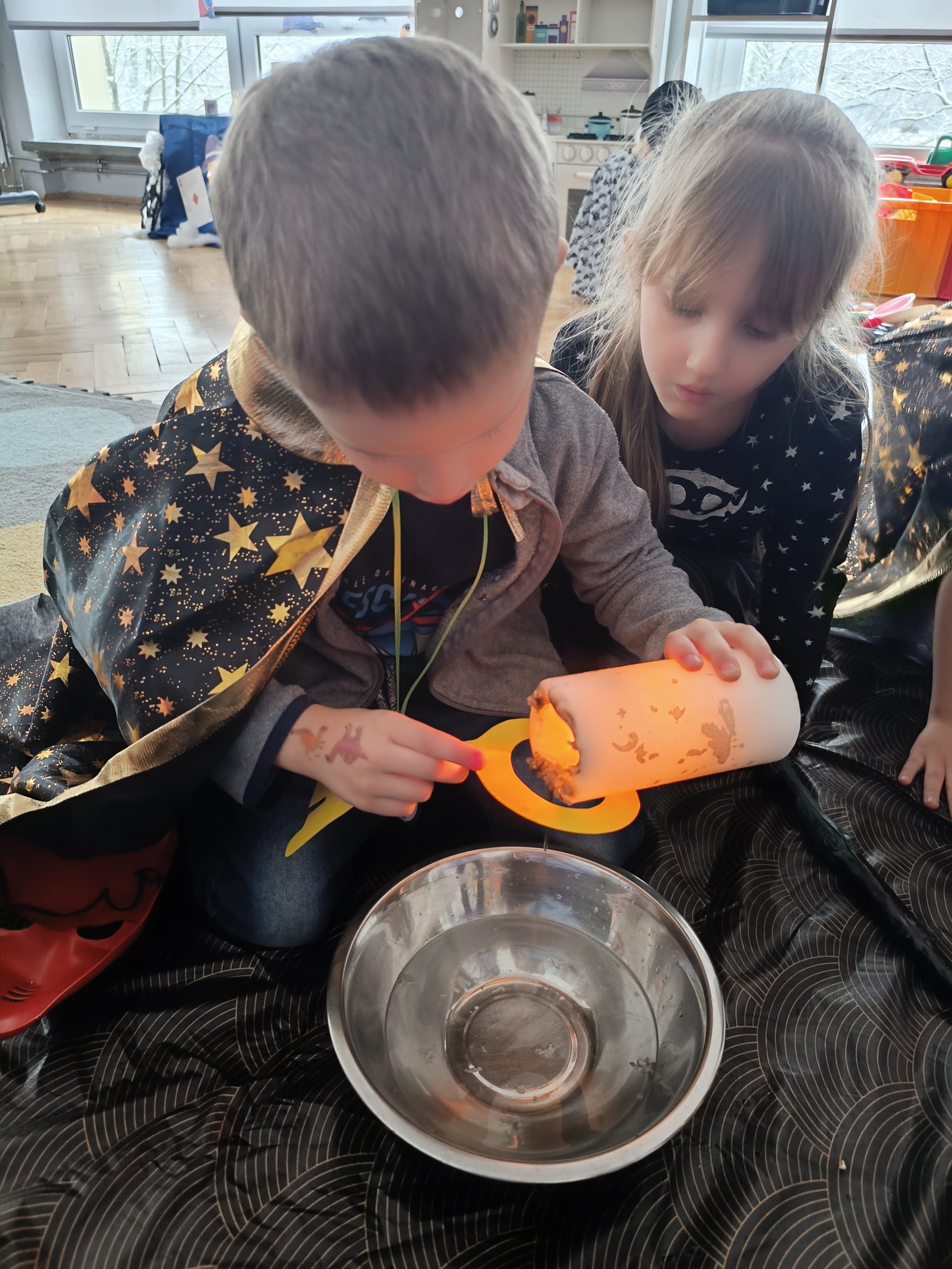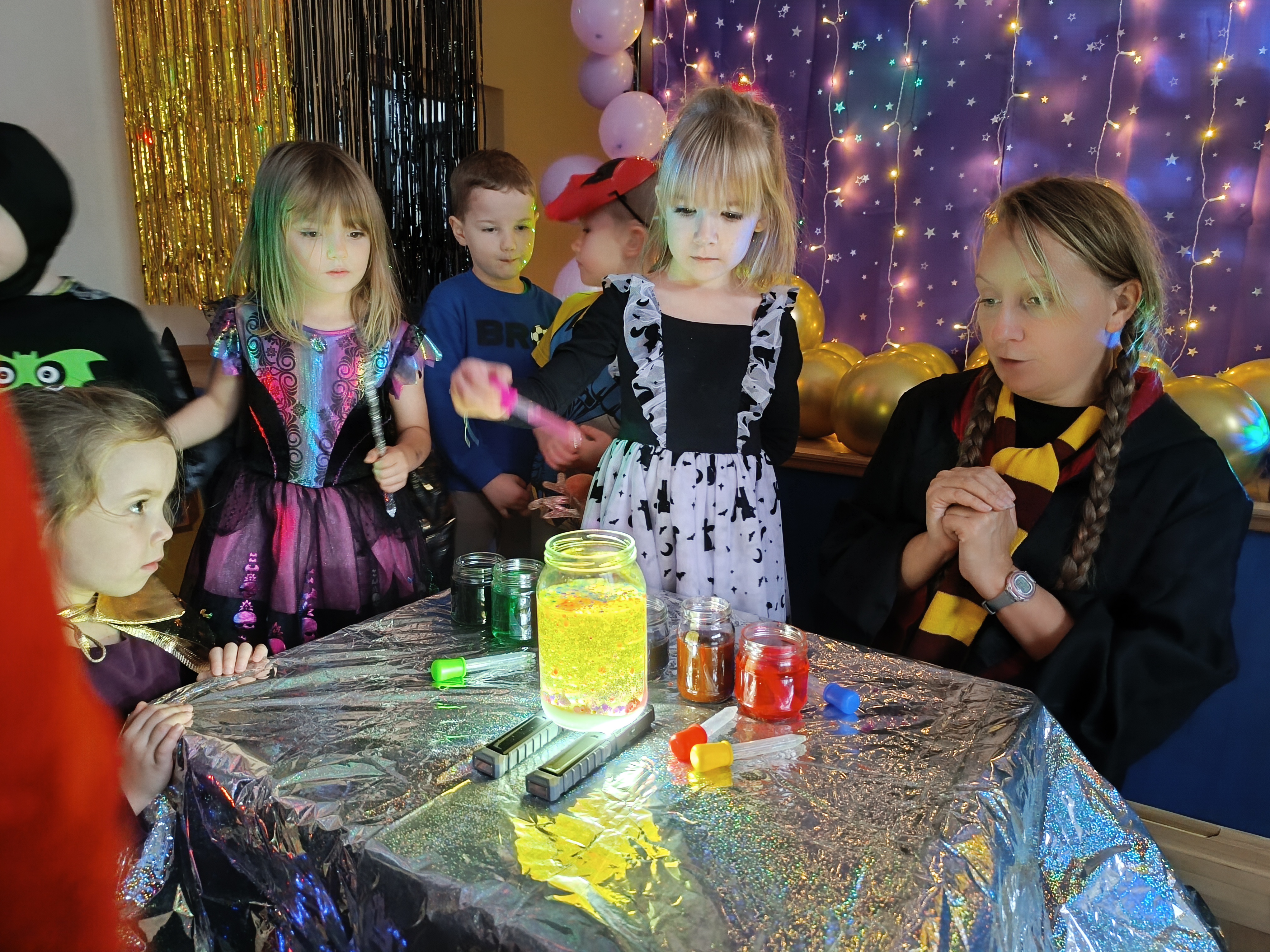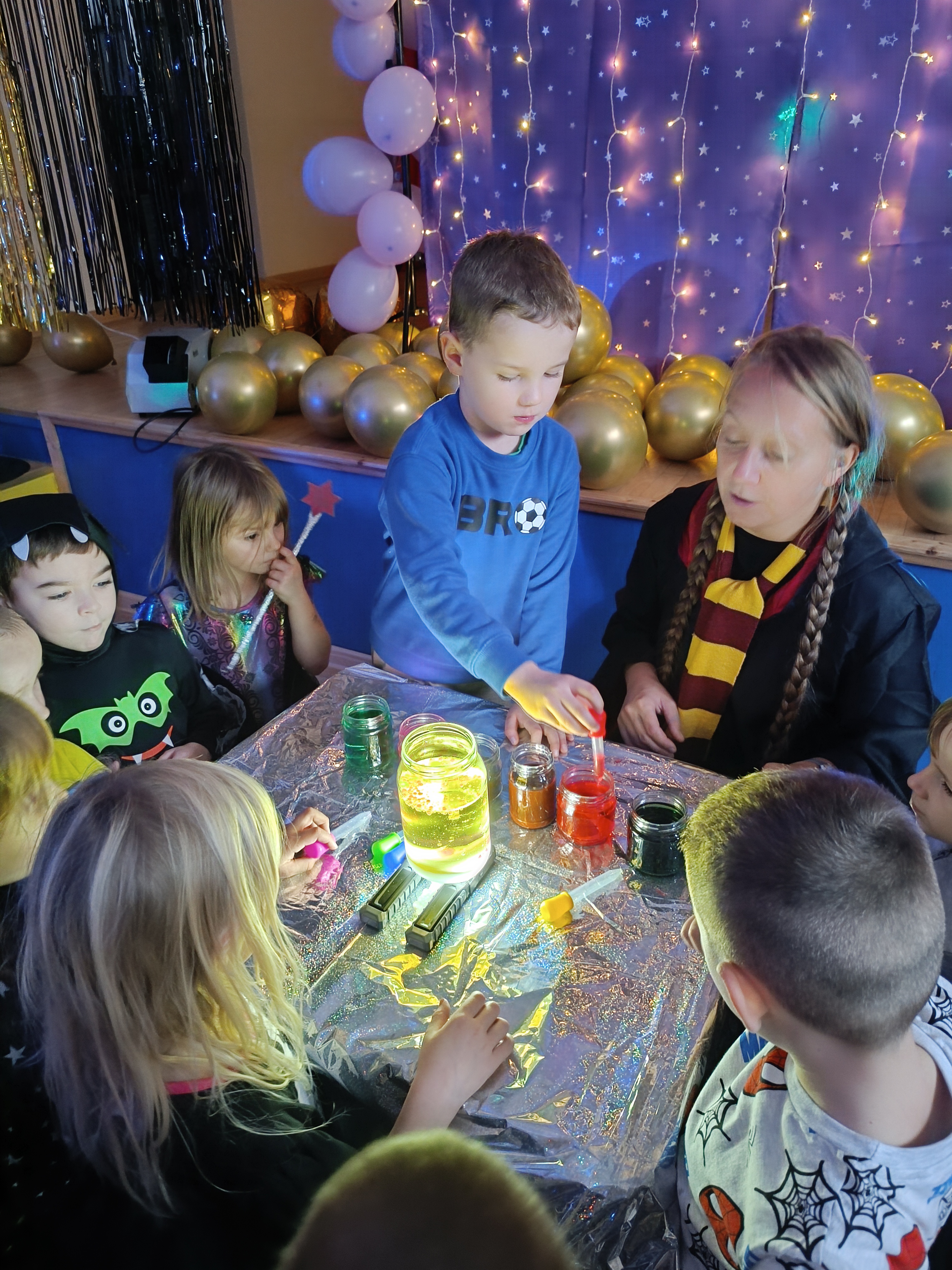 Tajemnicze dekoracje w sali sprawiły, że przedszkolaki przeniosły się w krainę czarów i wróżb. Ten dzień był dniem radosnych zabaw i wróżb, w których dzieci mogły poznać swoją bliższą i dalszą przyszłość.