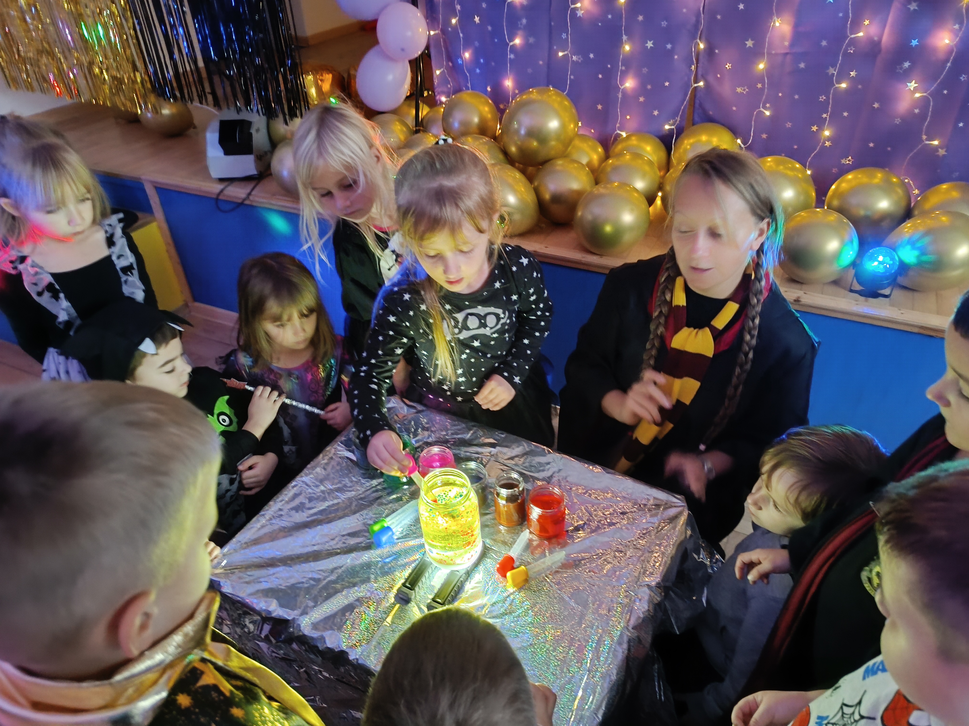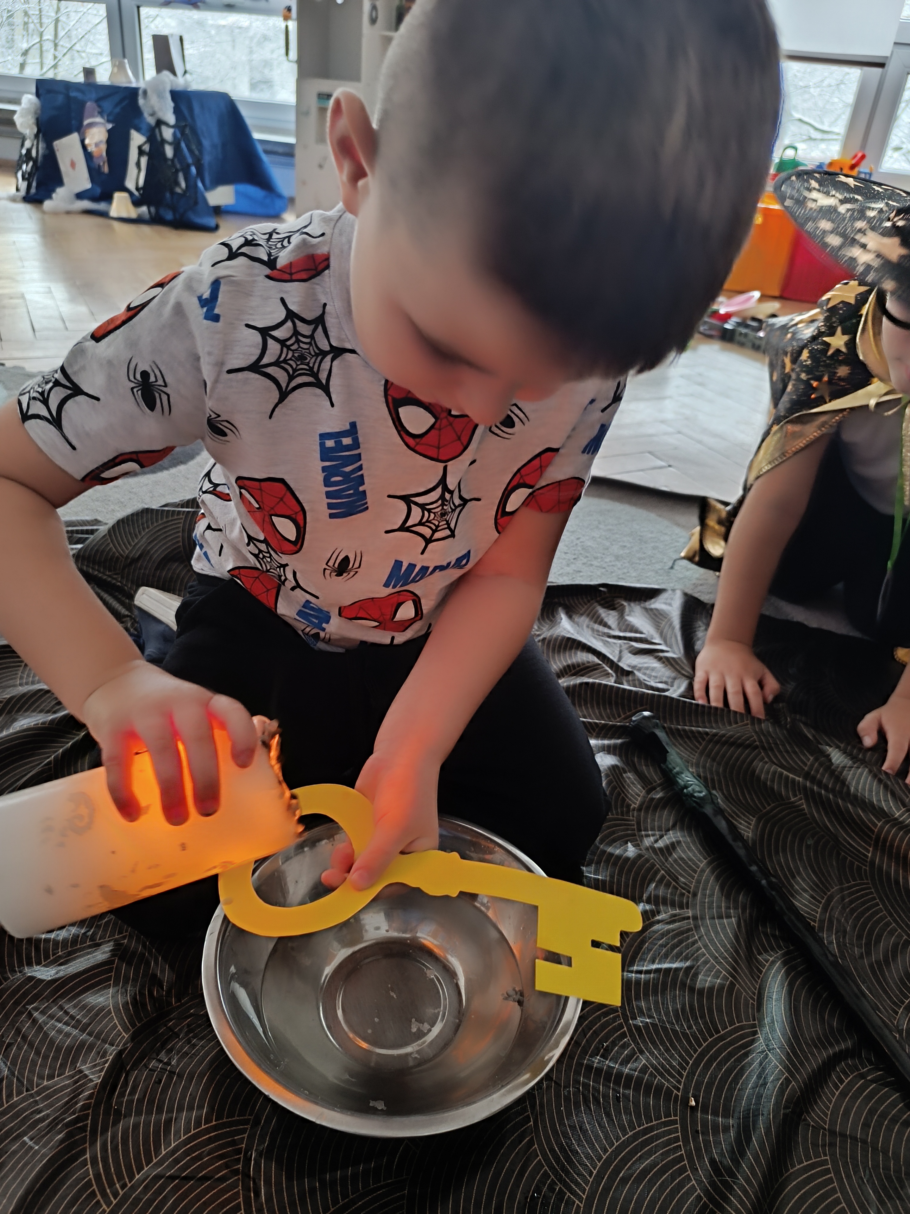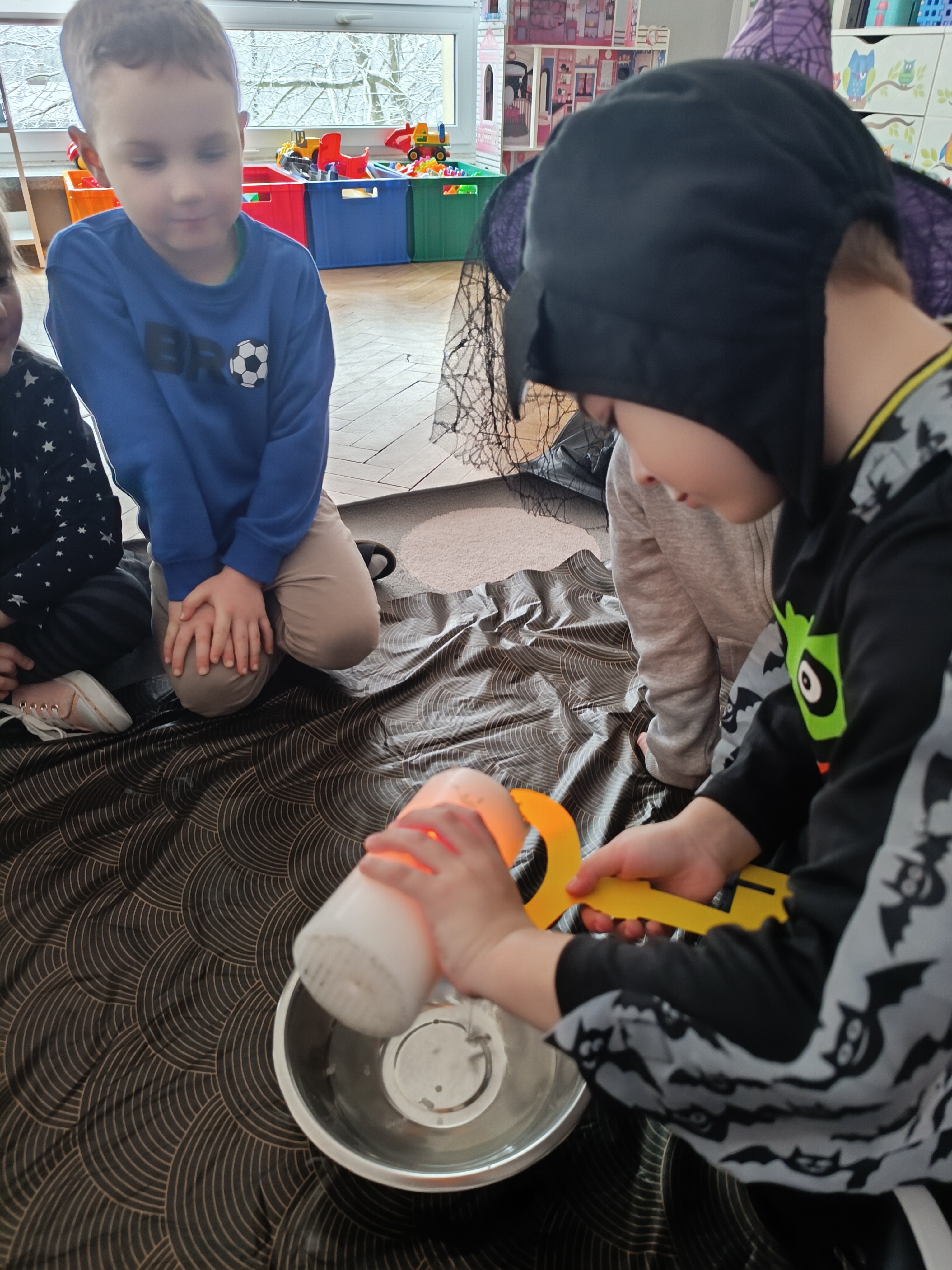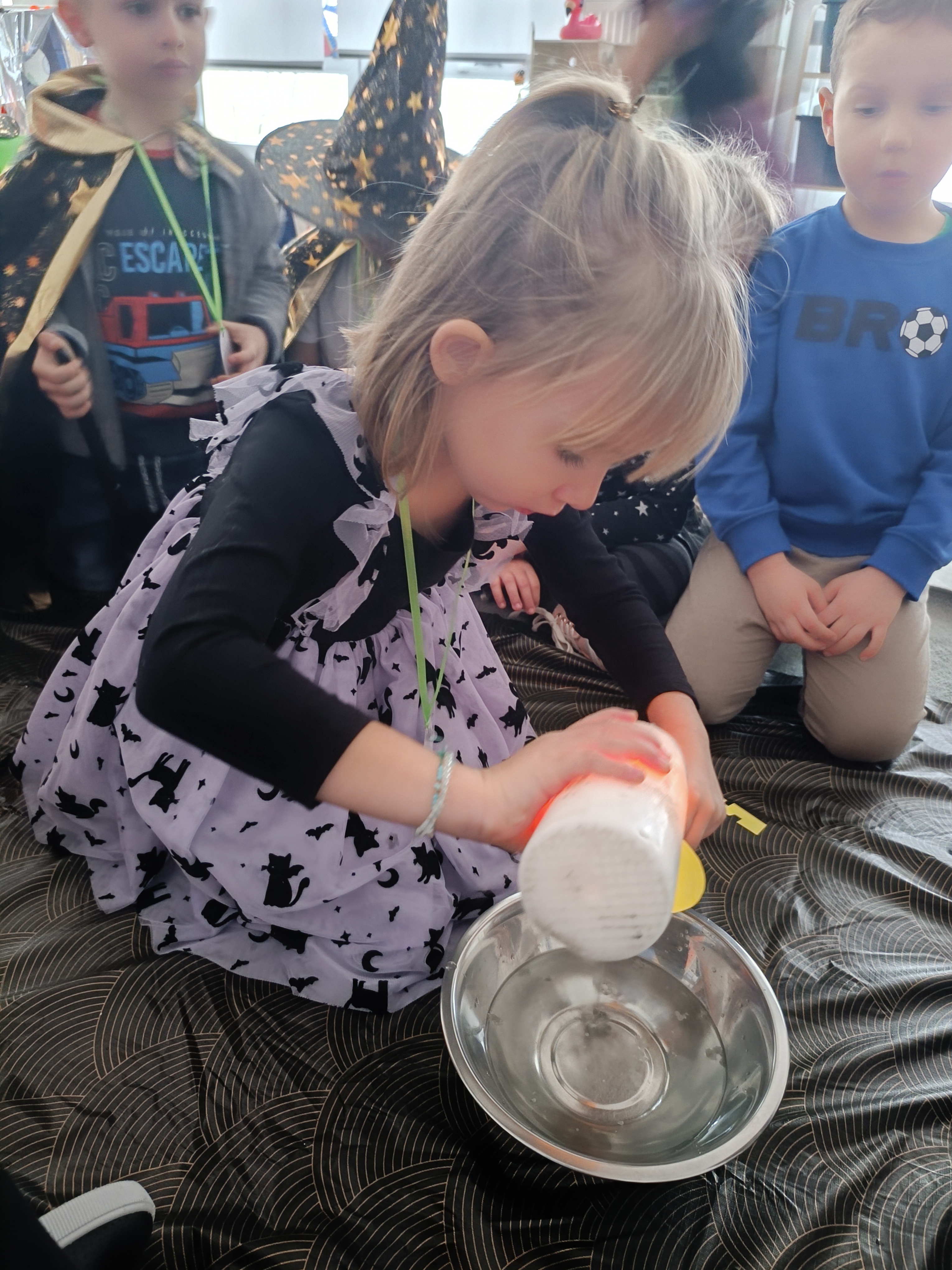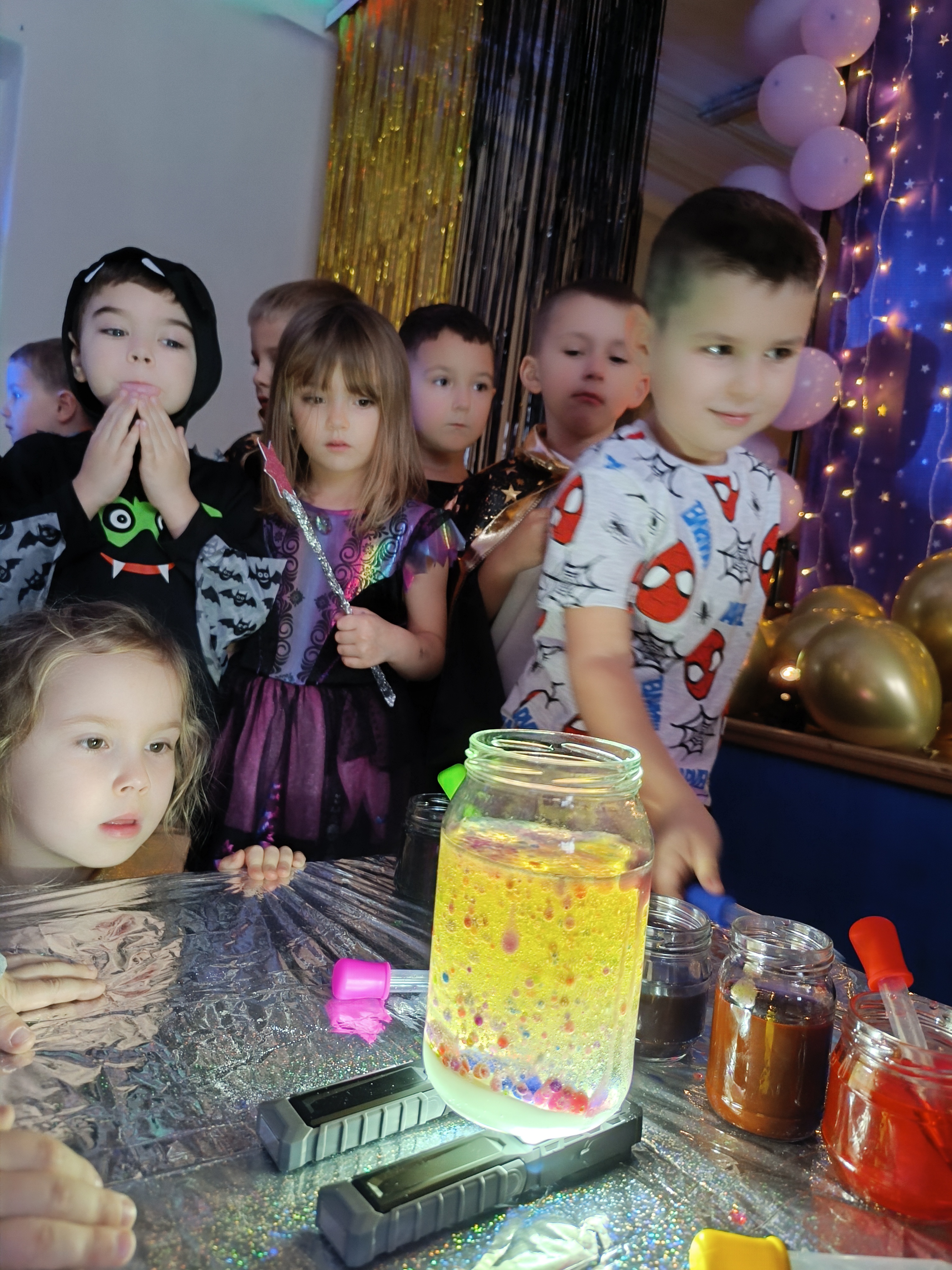 Tajemnicze dekoracje w sali sprawiły, że przedszkolaki przeniosły się w krainę czarów i wróżb. Ten dzień był dniem radosnych zabaw i wróżb, w których dzieci mogły poznać swoją bliższą i dalszą przyszłość.