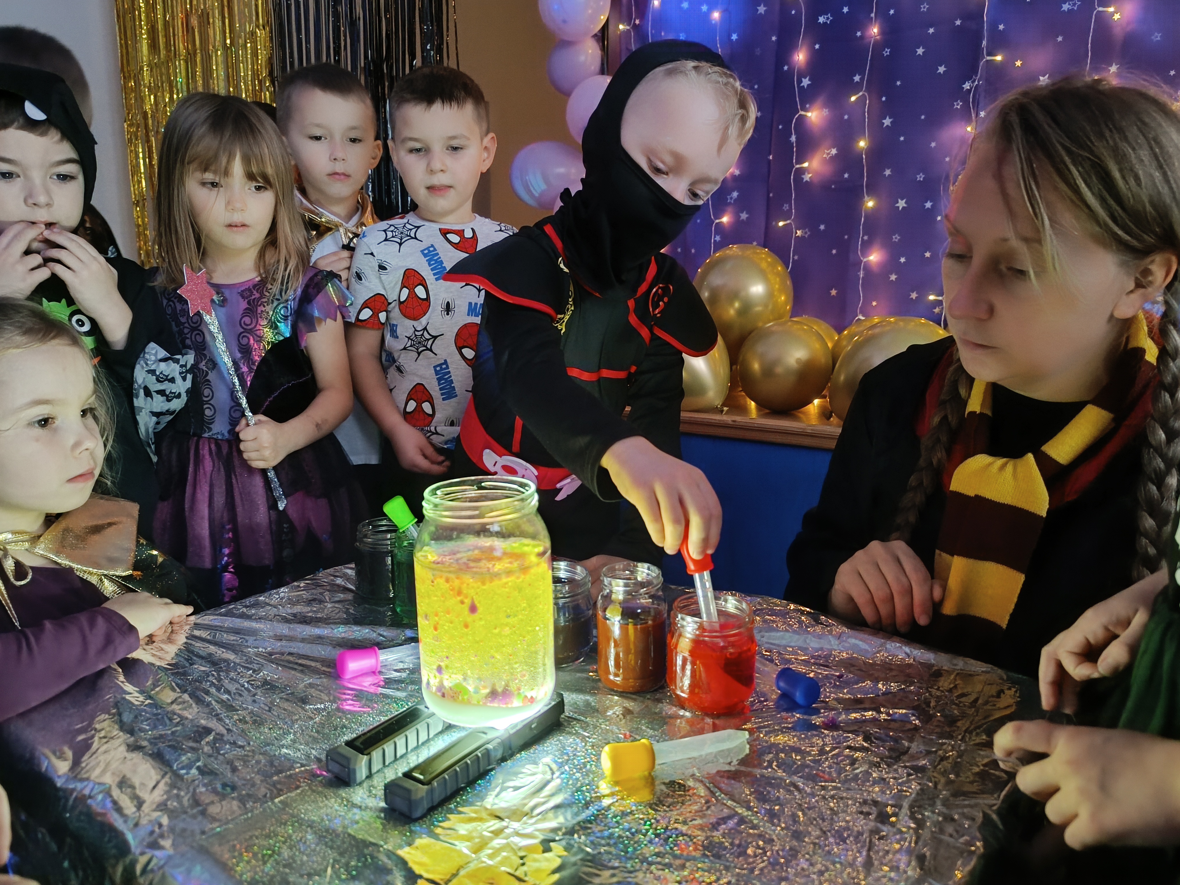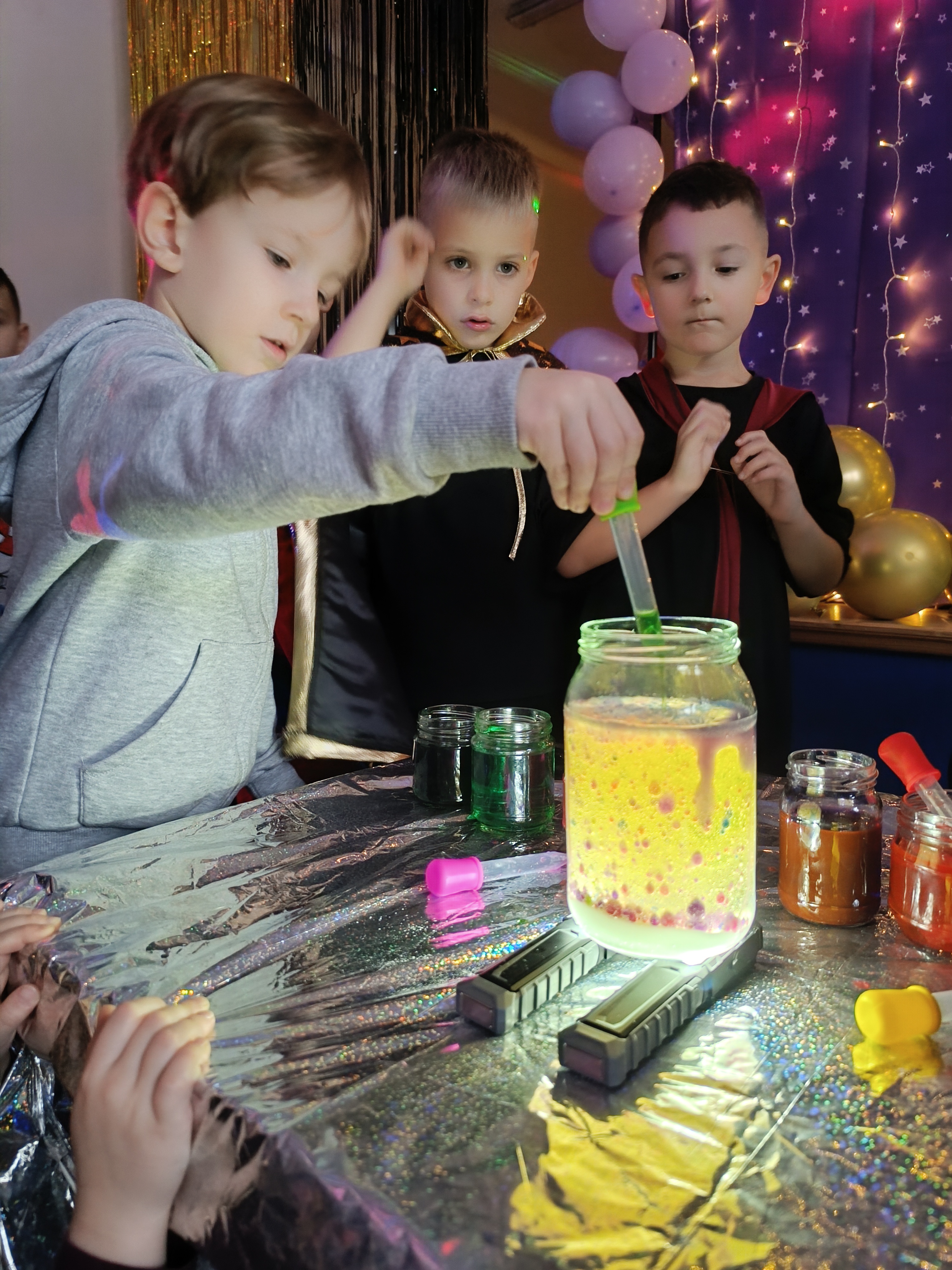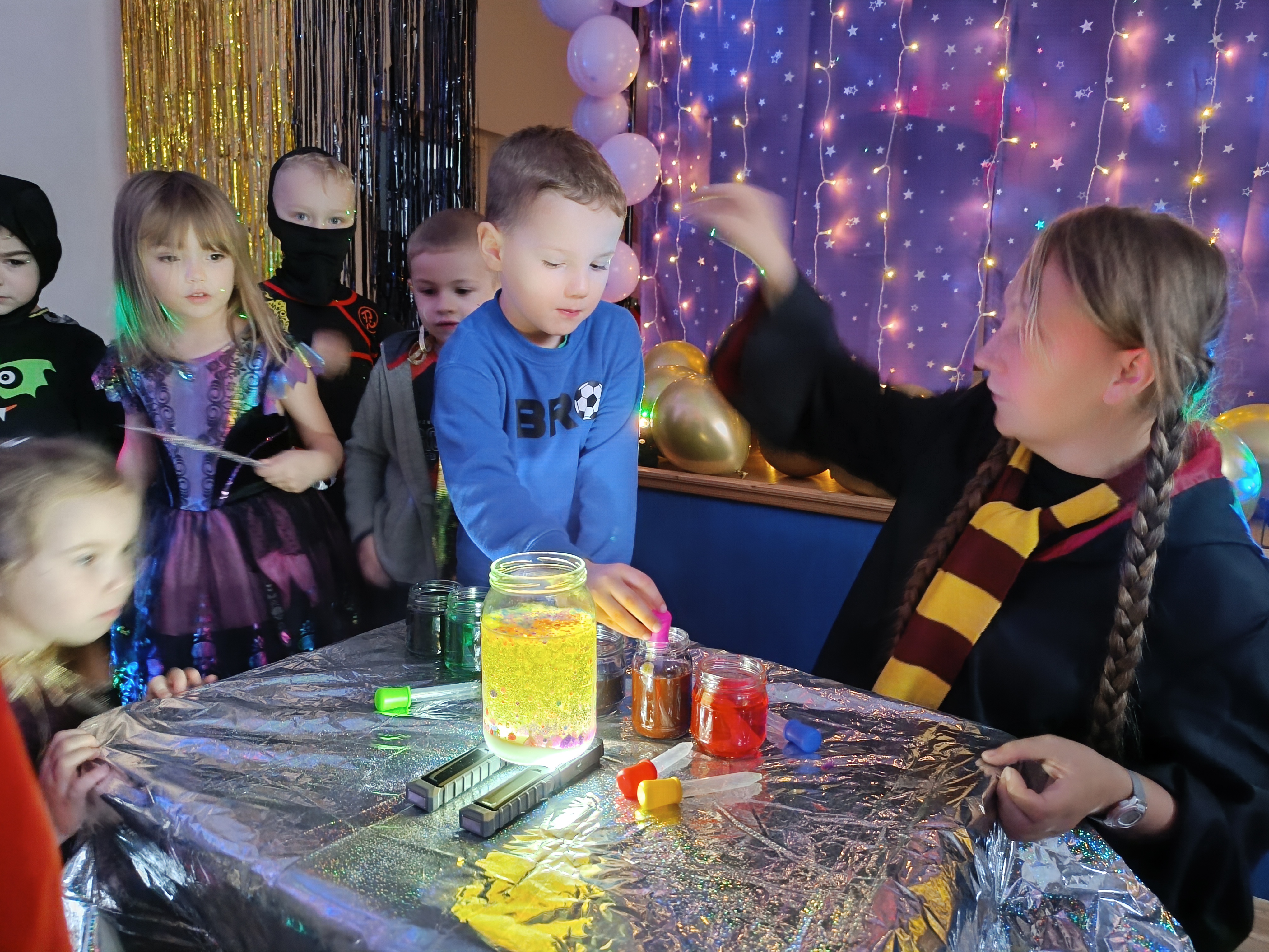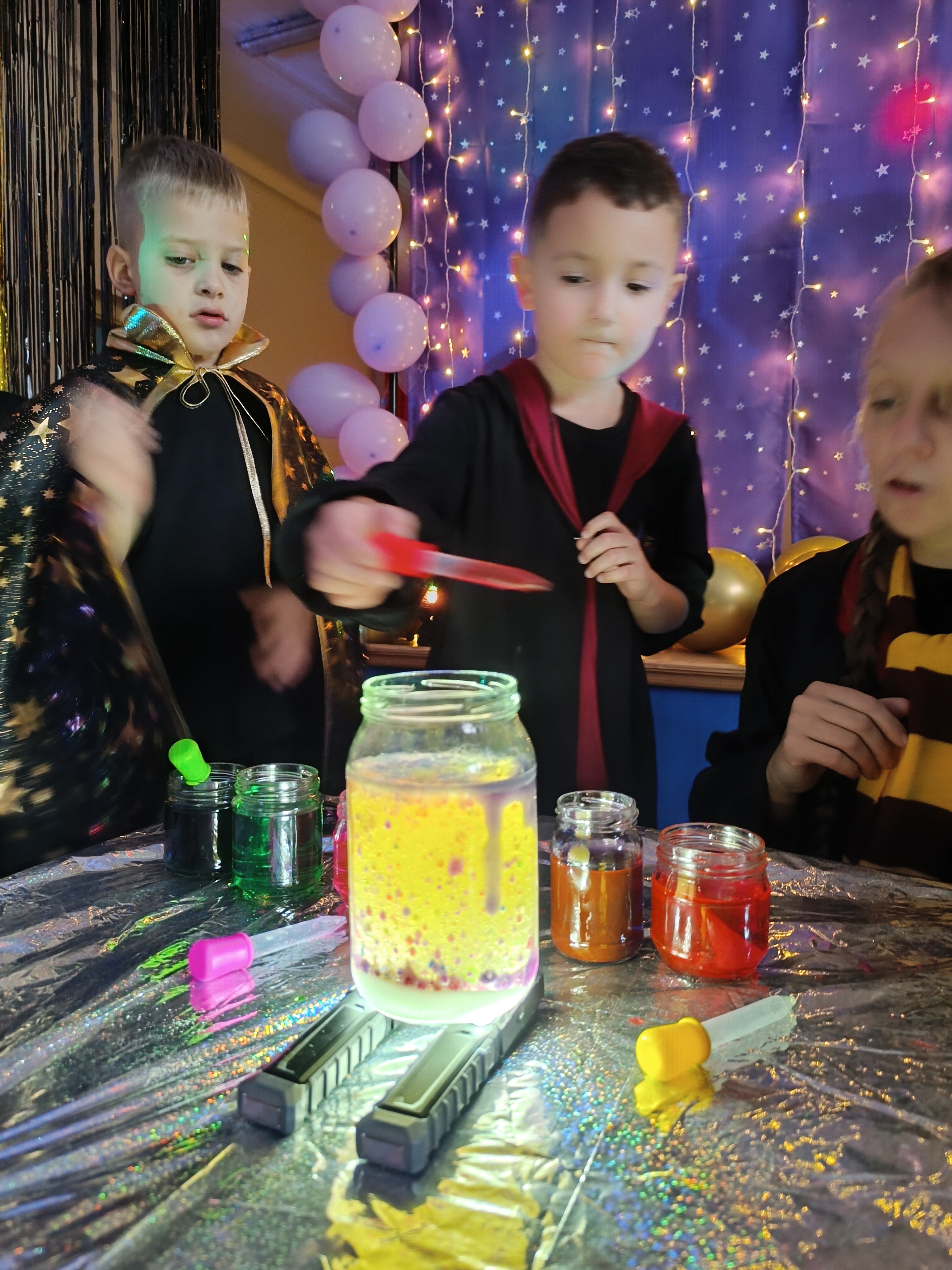 Tajemnicze dekoracje w sali sprawiły, że przedszkolaki przeniosły się w krainę czarów i wróżb. Ten dzień był dniem radosnych zabaw i wróżb, w których dzieci mogły poznać swoją bliższą i dalszą przyszłość.