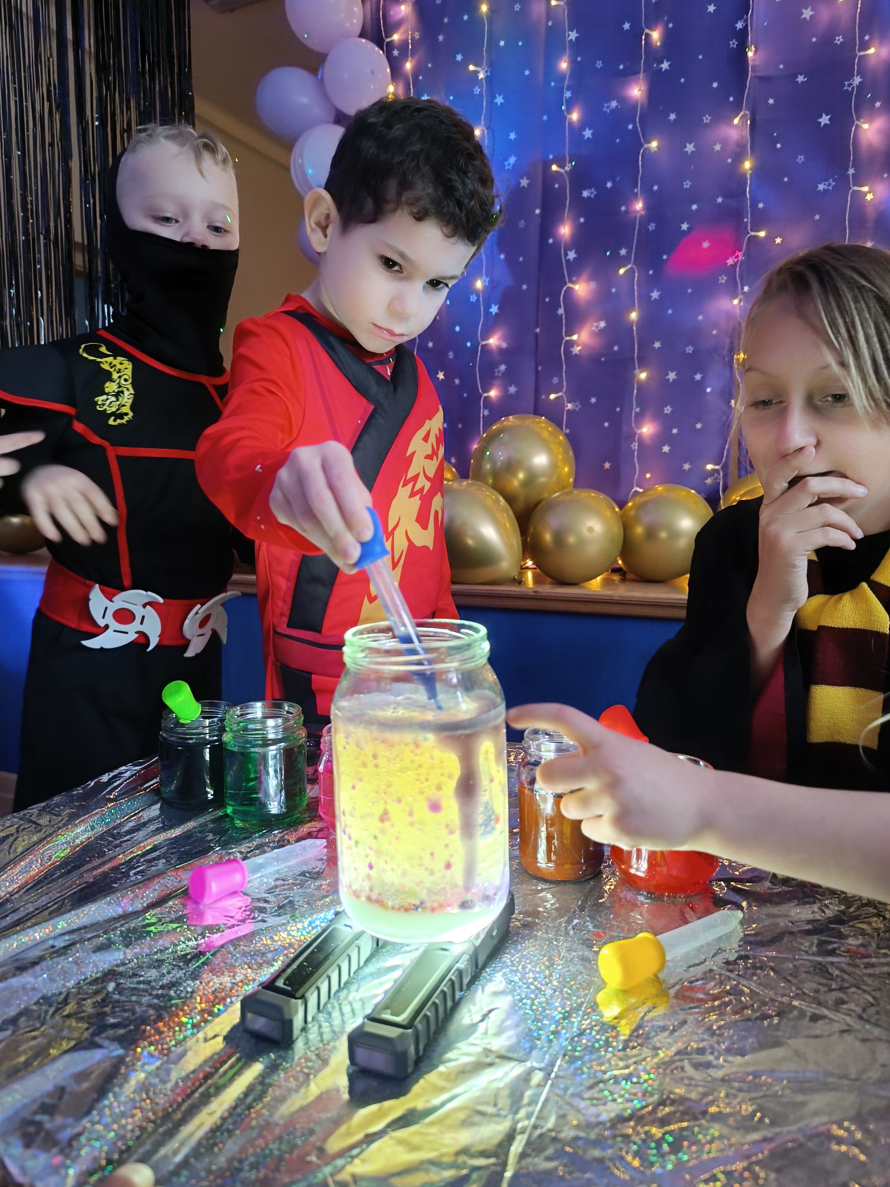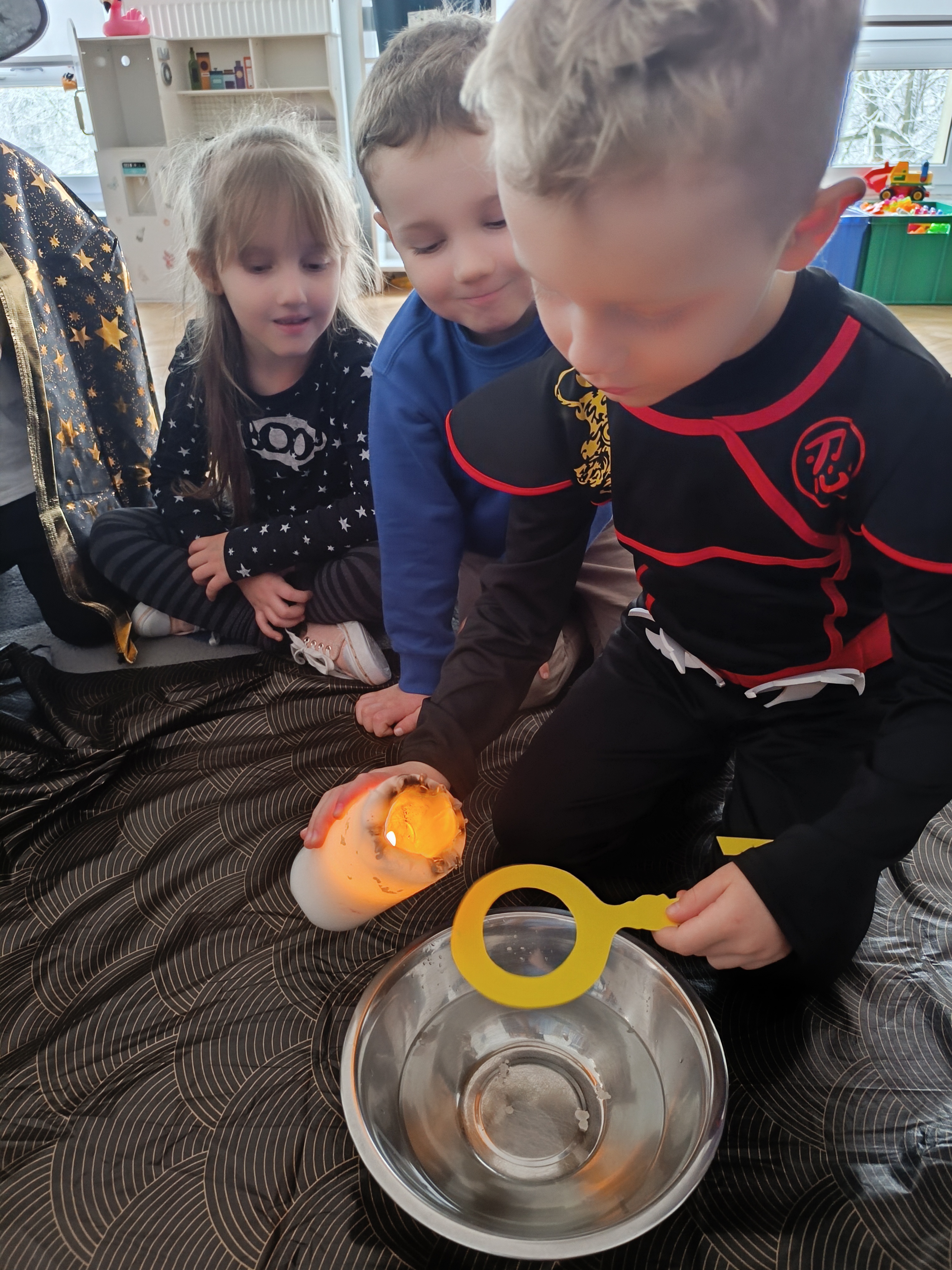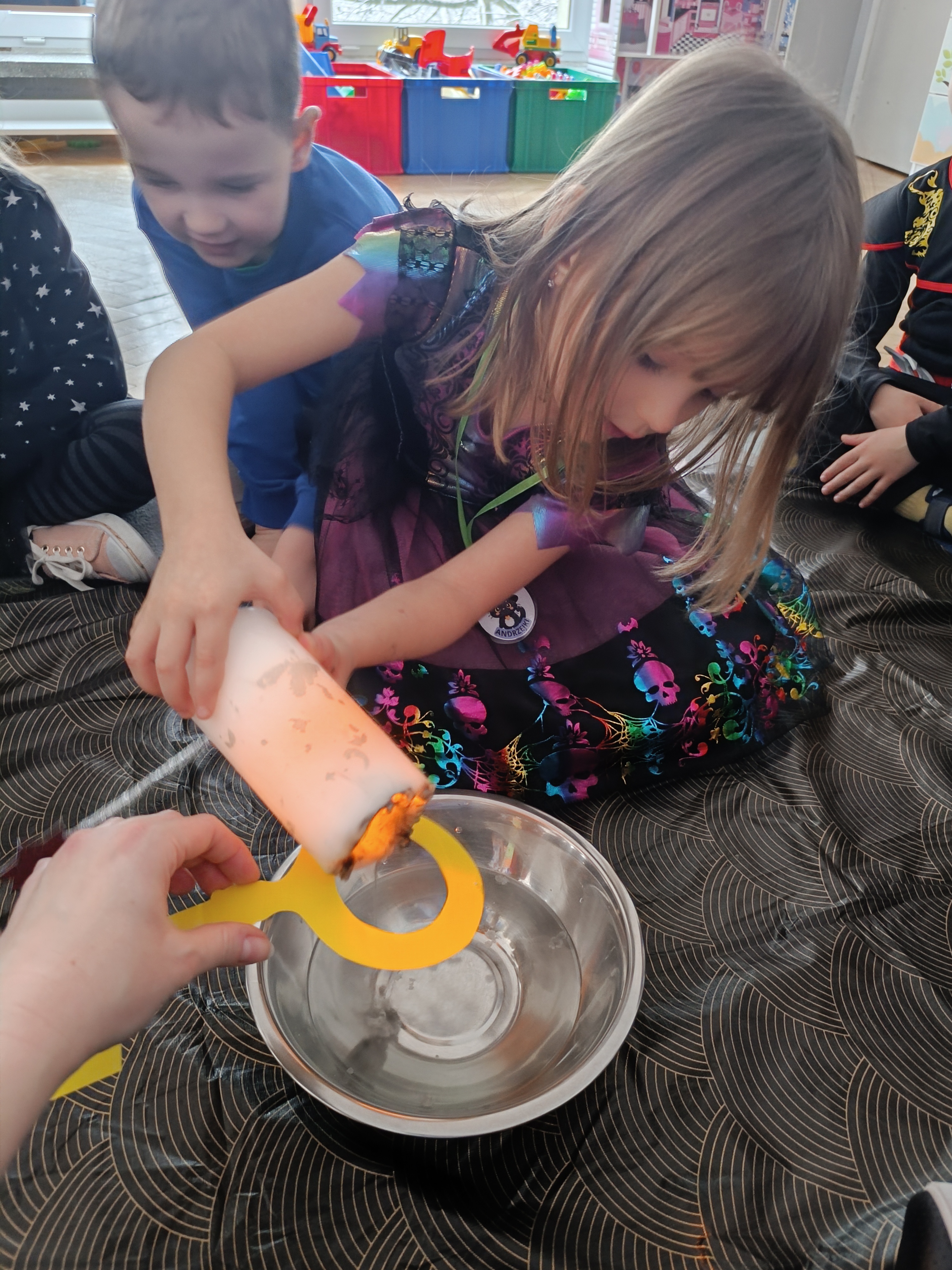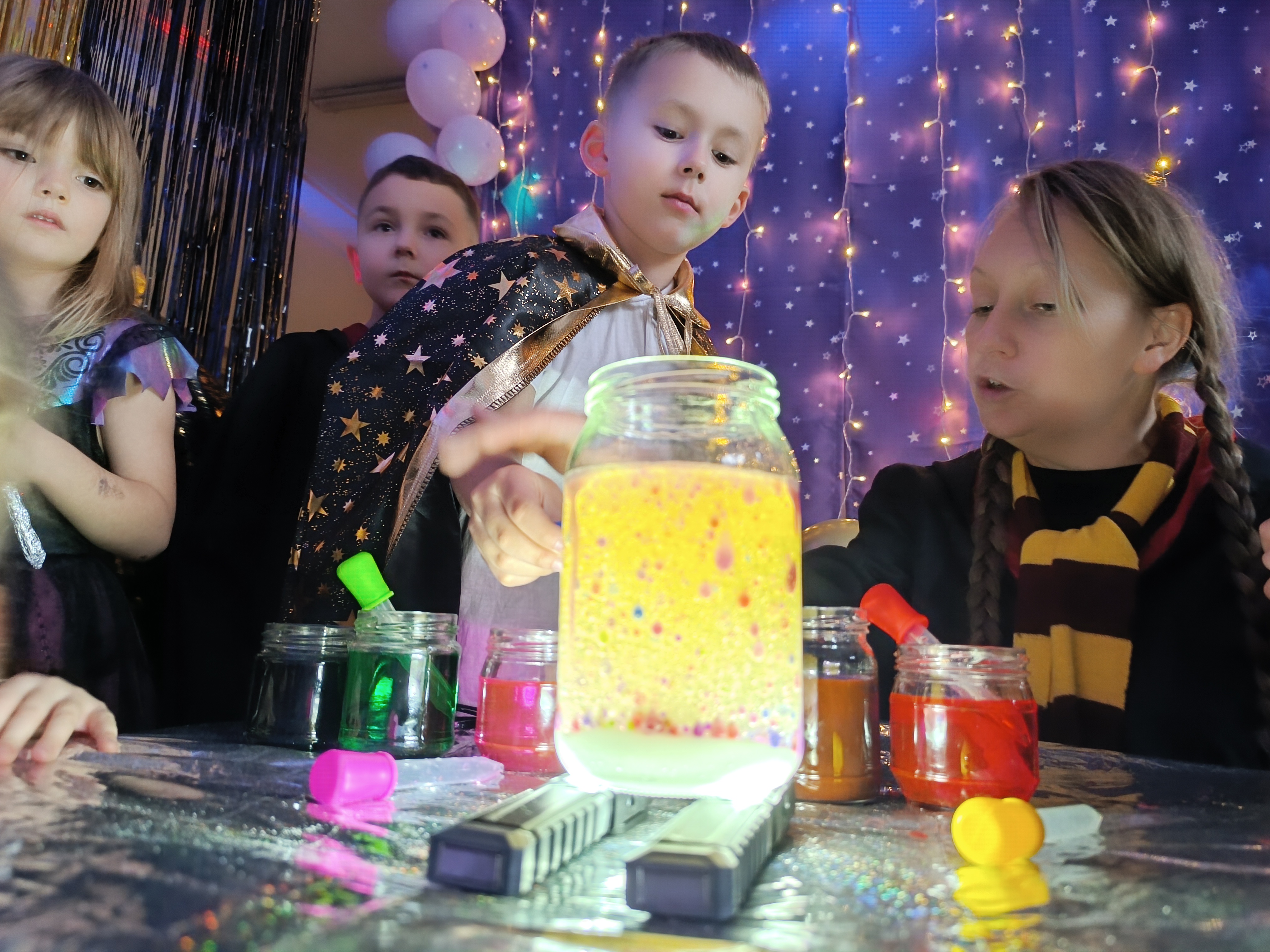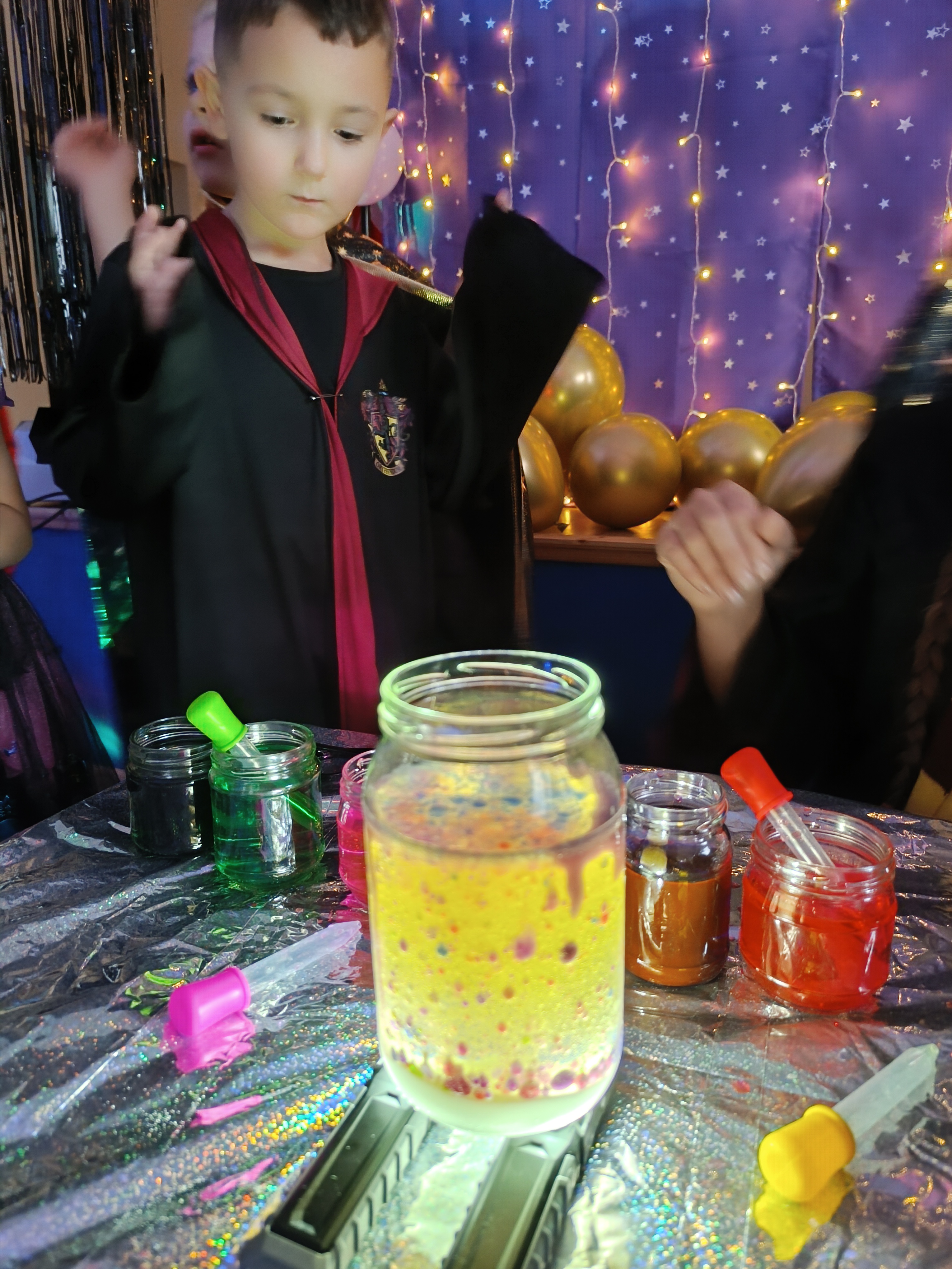 Tajemnicze dekoracje w sali sprawiły, że przedszkolaki przeniosły się w krainę czarów i wróżb. Ten dzień był dniem radosnych zabaw i wróżb, w których dzieci mogły poznać swoją bliższą i dalszą przyszłość.