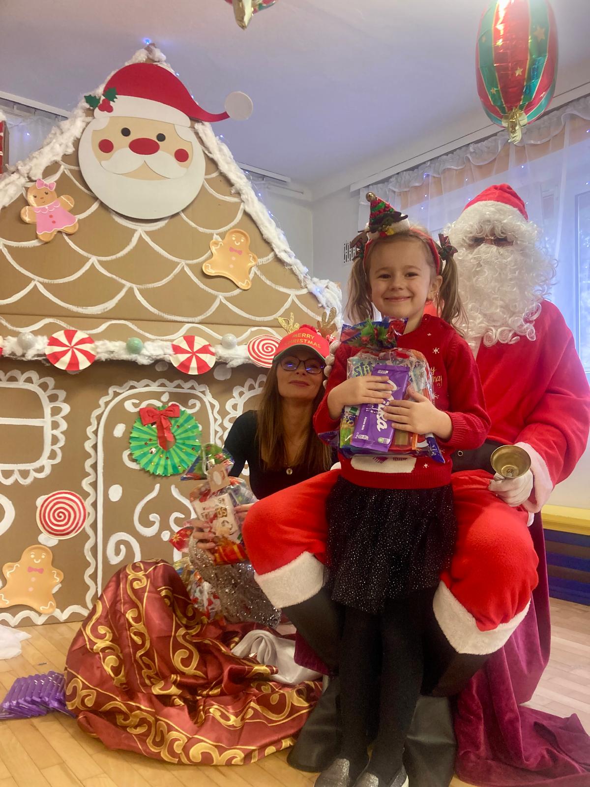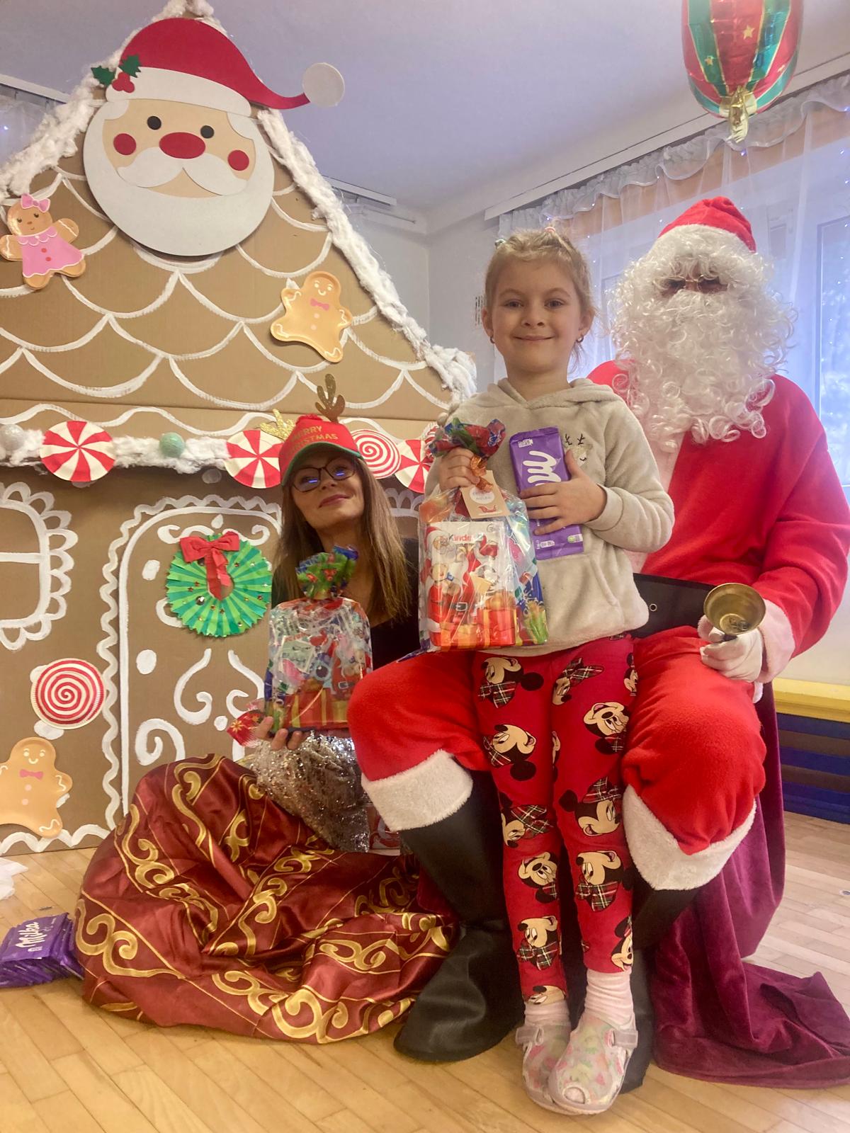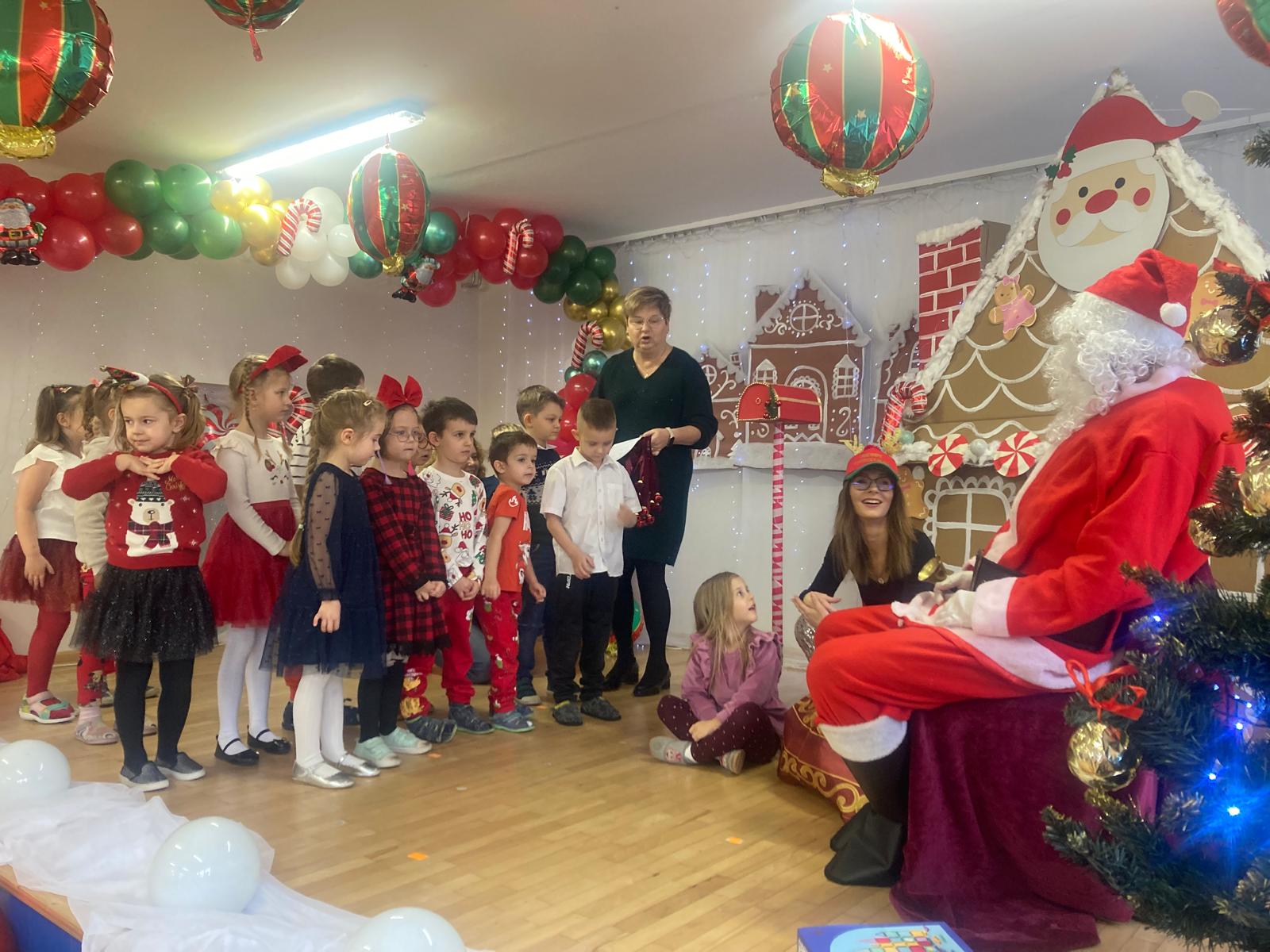 W podziękowaniu przedszkolaki podarowały gościowi kolorowy kubek pełen zimowej herbatki i słodkości i zaprosiły Mikołaja do swojego przedszkola już za rok.