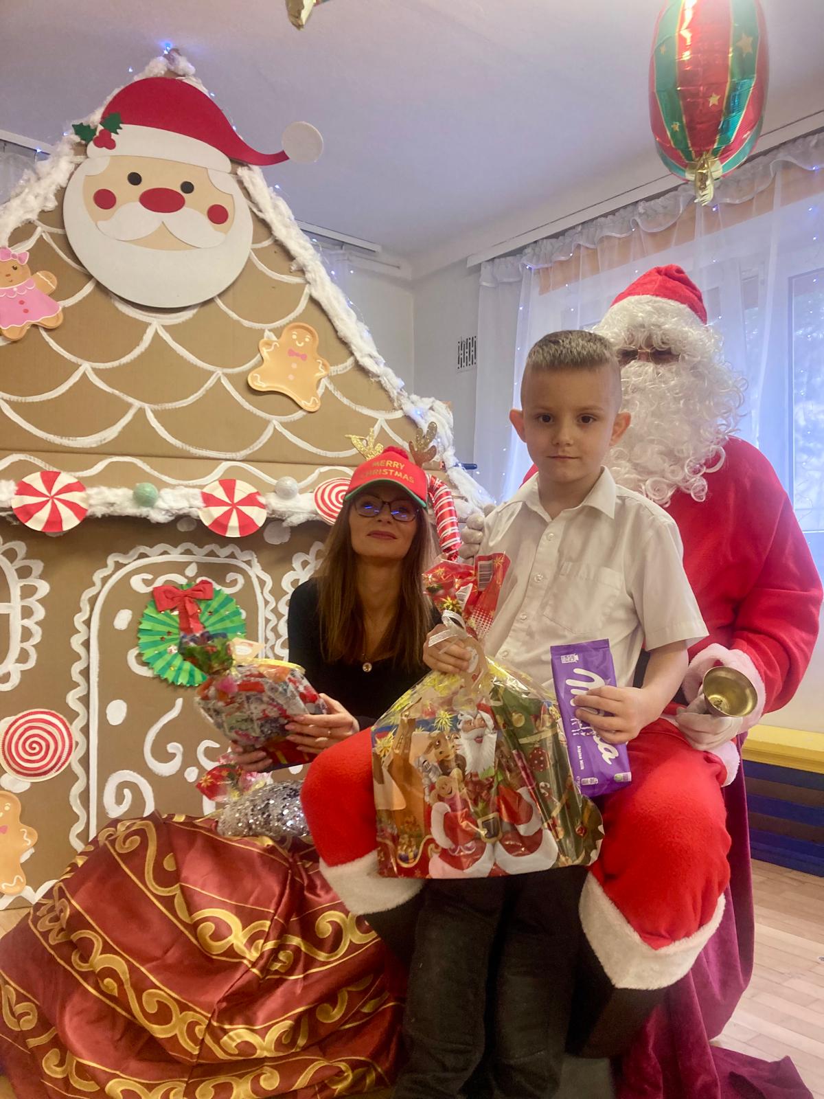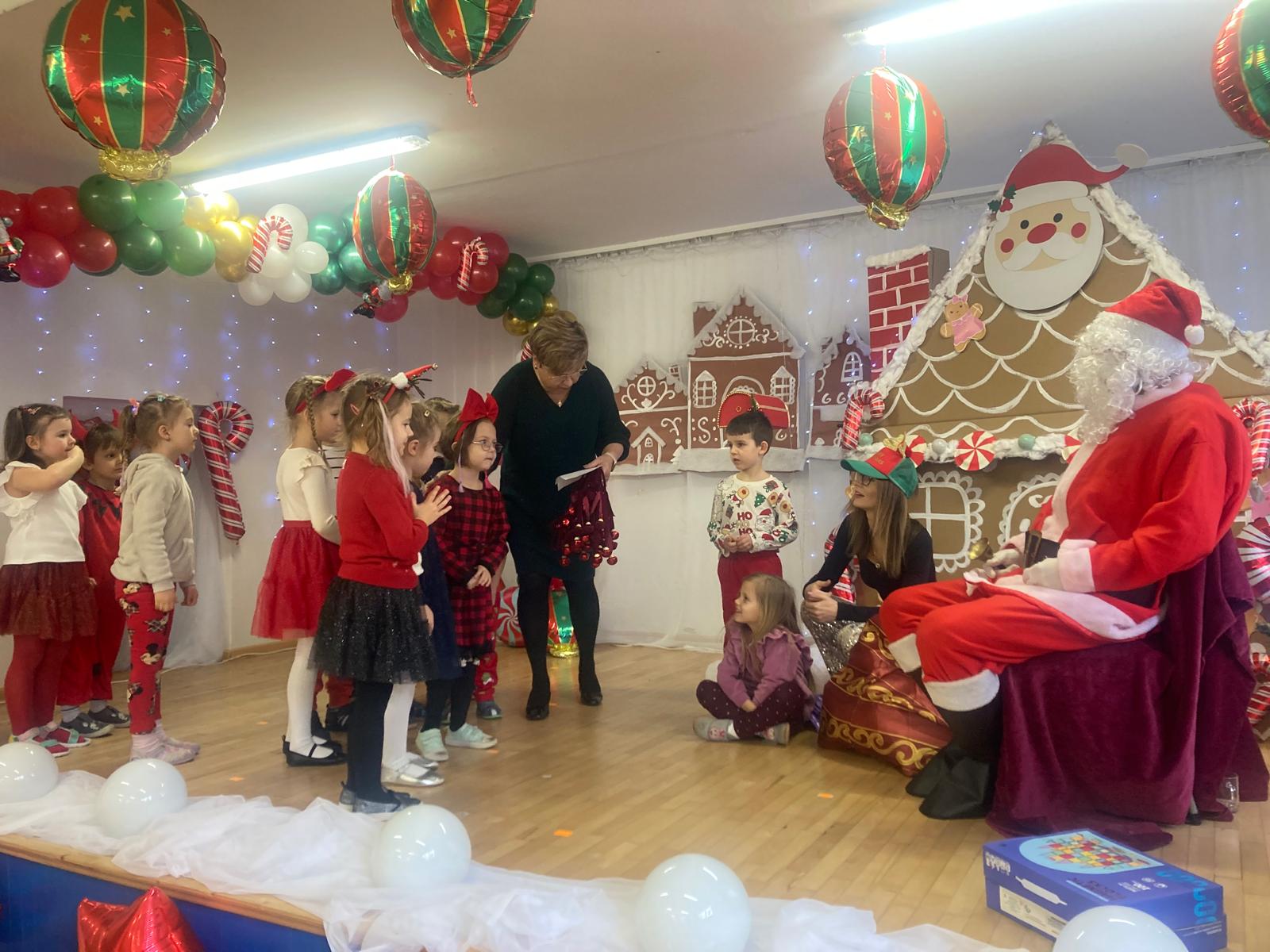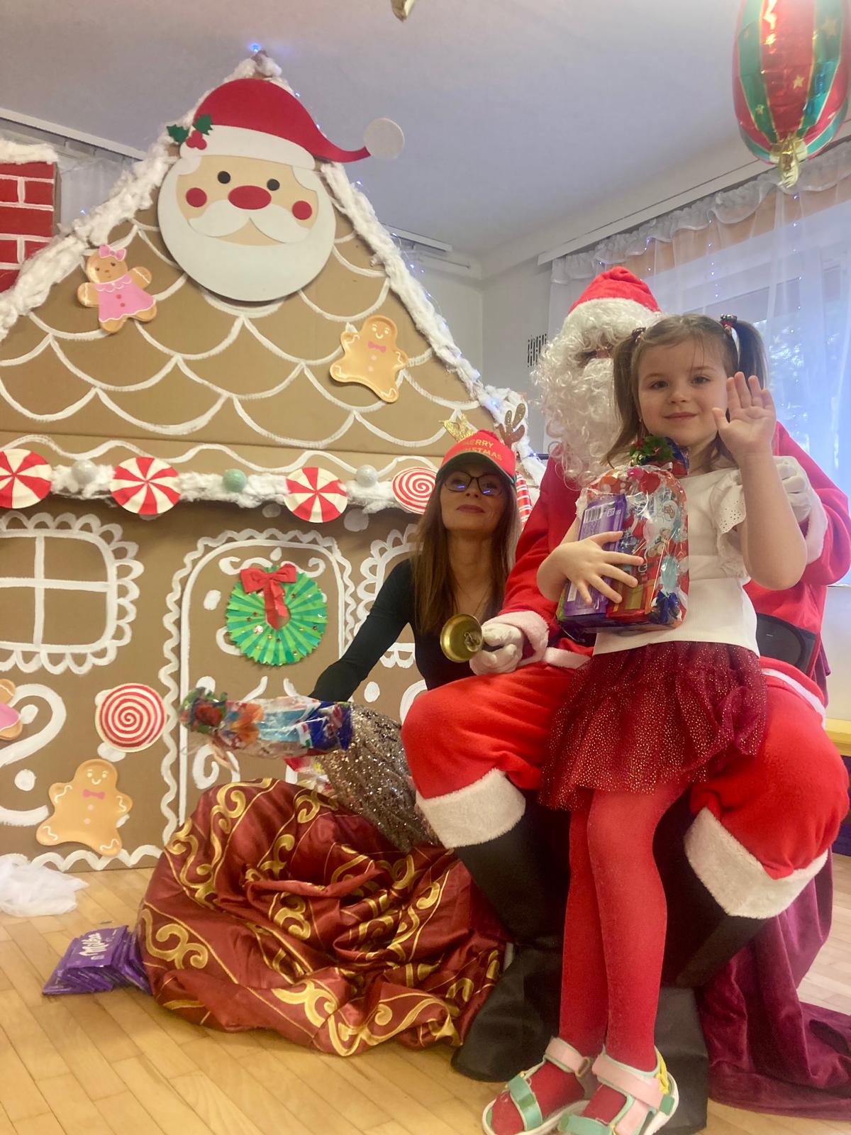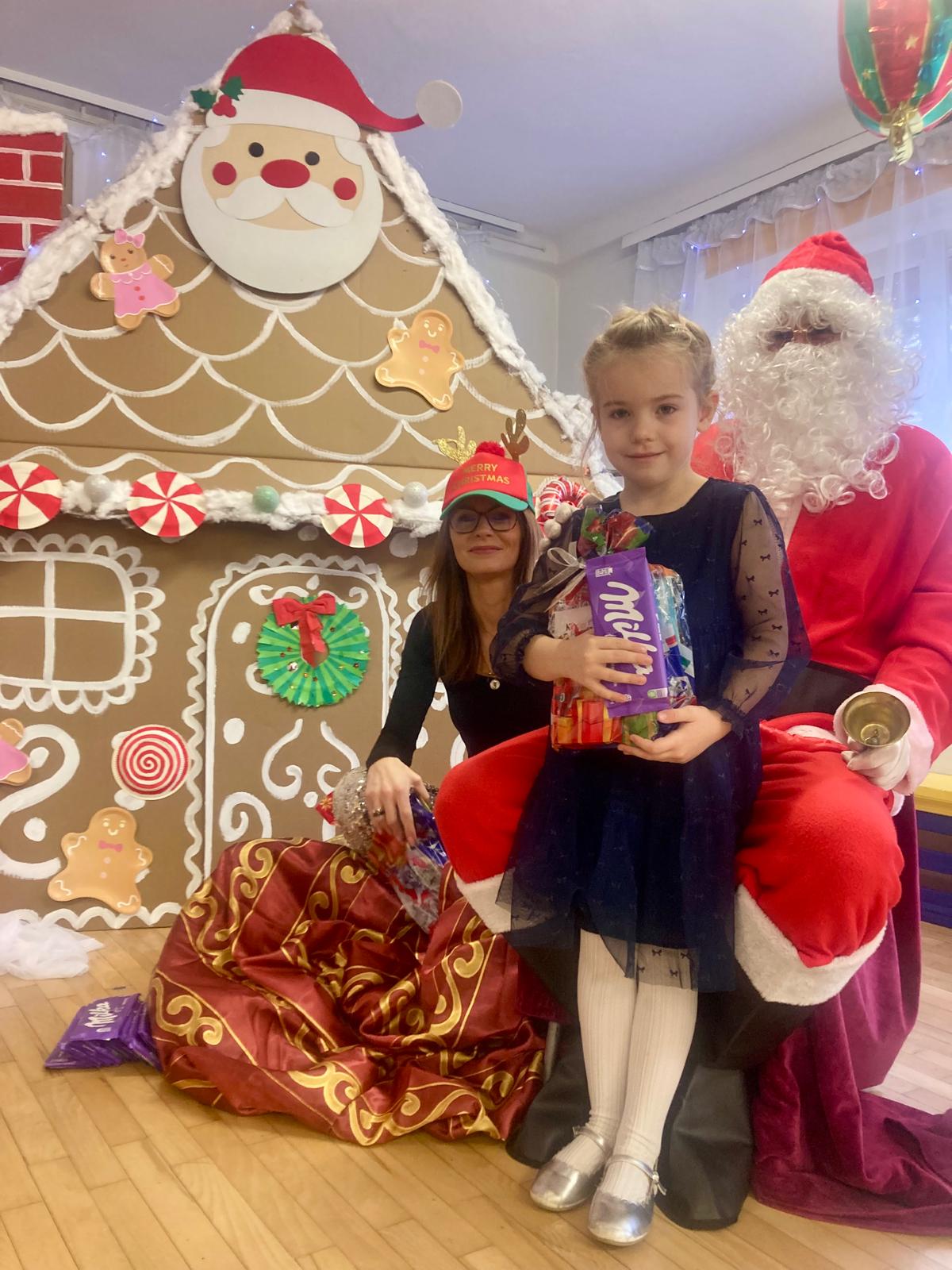W podziękowaniu przedszkolaki podarowały gościowi kolorowy kubek pełen zimowej herbatki i słodkości i zaprosiły Mikołaja do swojego przedszkola już za rok.