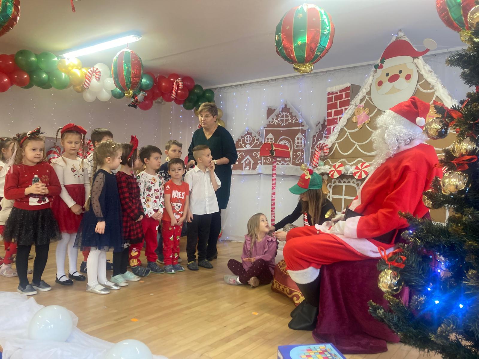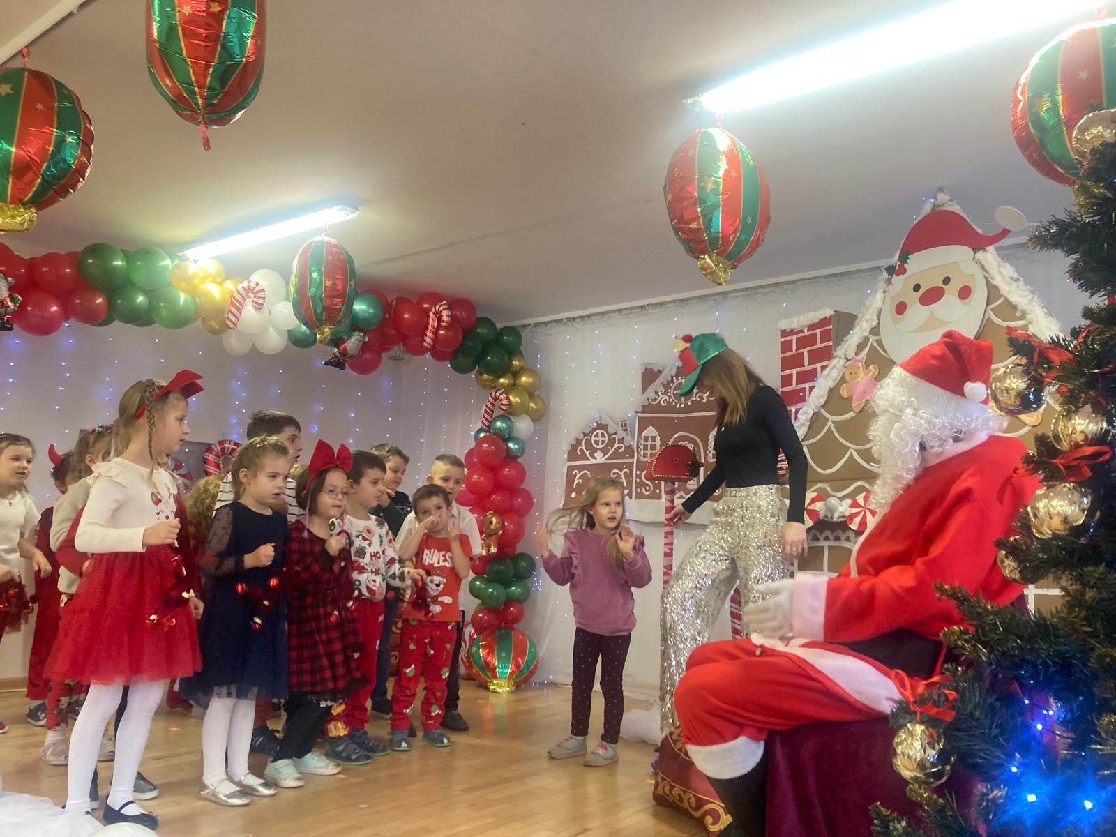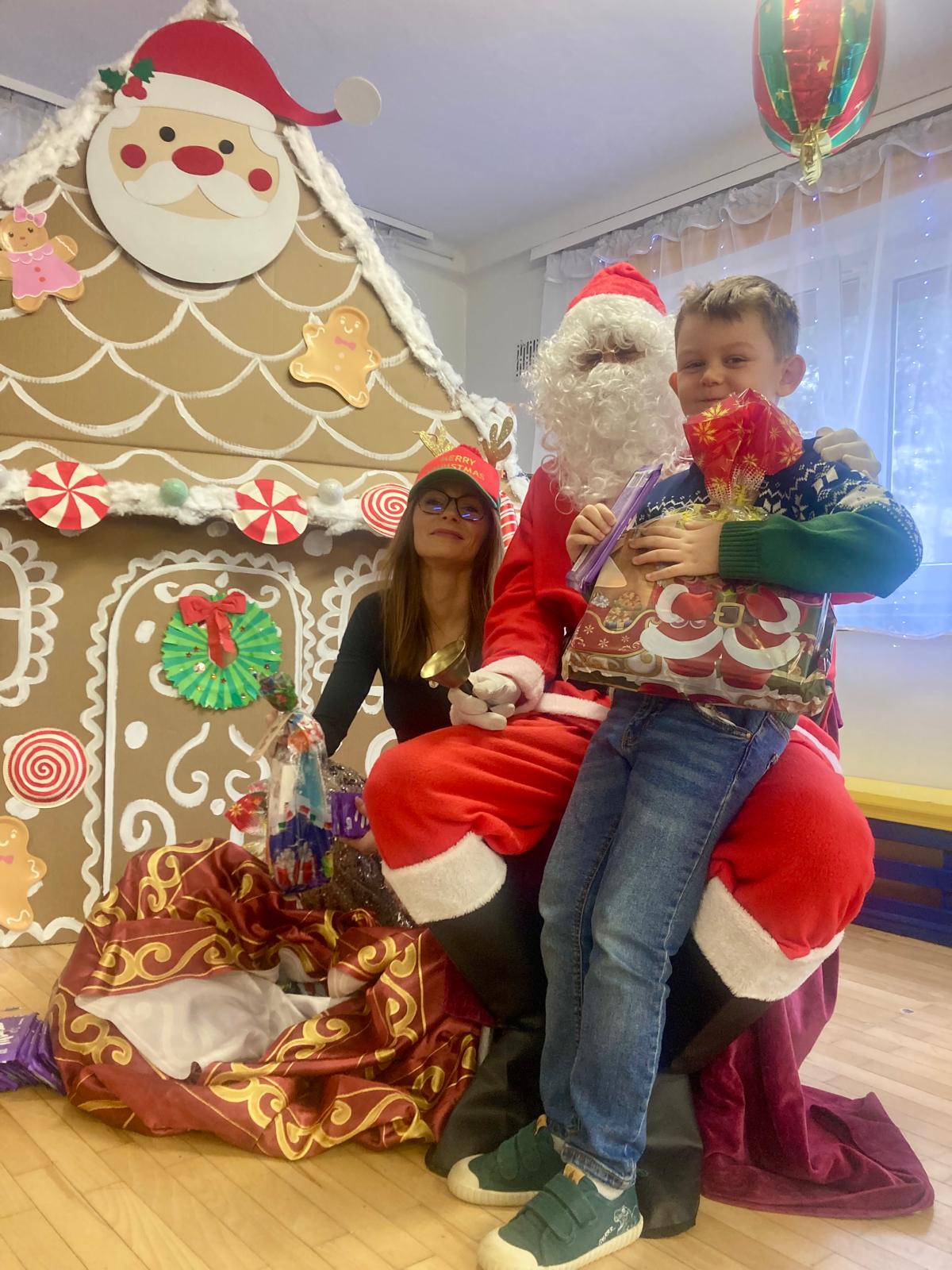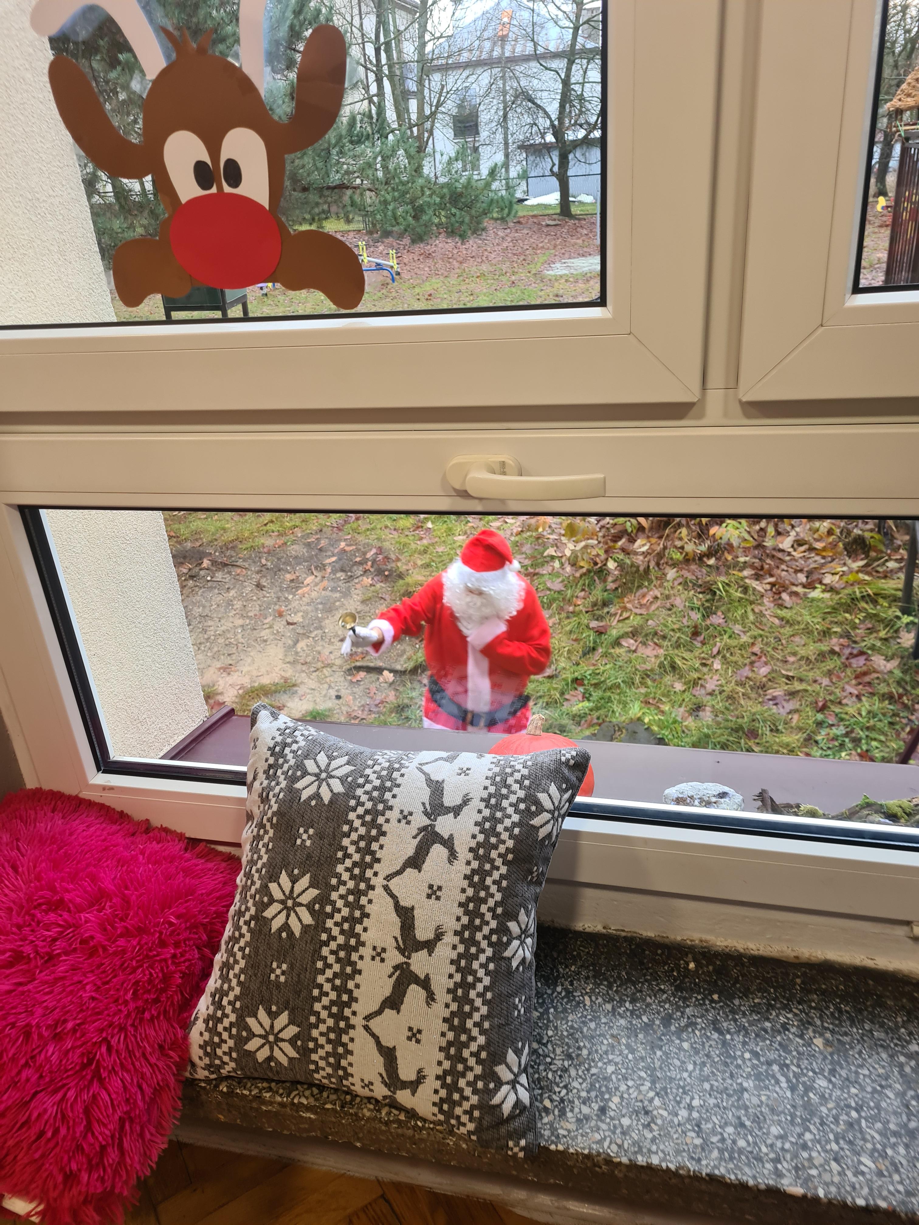 Już od rana dzieciaki wypatrywaly oczekiwanego gościa Mikołaja.Dojrzały Go gdy przybył do przedszkola,obserwowaly przez okno i z niecierpliqoscią czekały na spotkanie.Przedszkolaki przygotowały dla goscia wiersz i wesołą piosenkę o Mikołaju.Po powitaniach przyszedł czas na prezenty,zadowone i szczęśliwr dzieciaki z radością odbierały prezenty z rąk Mikołaja.