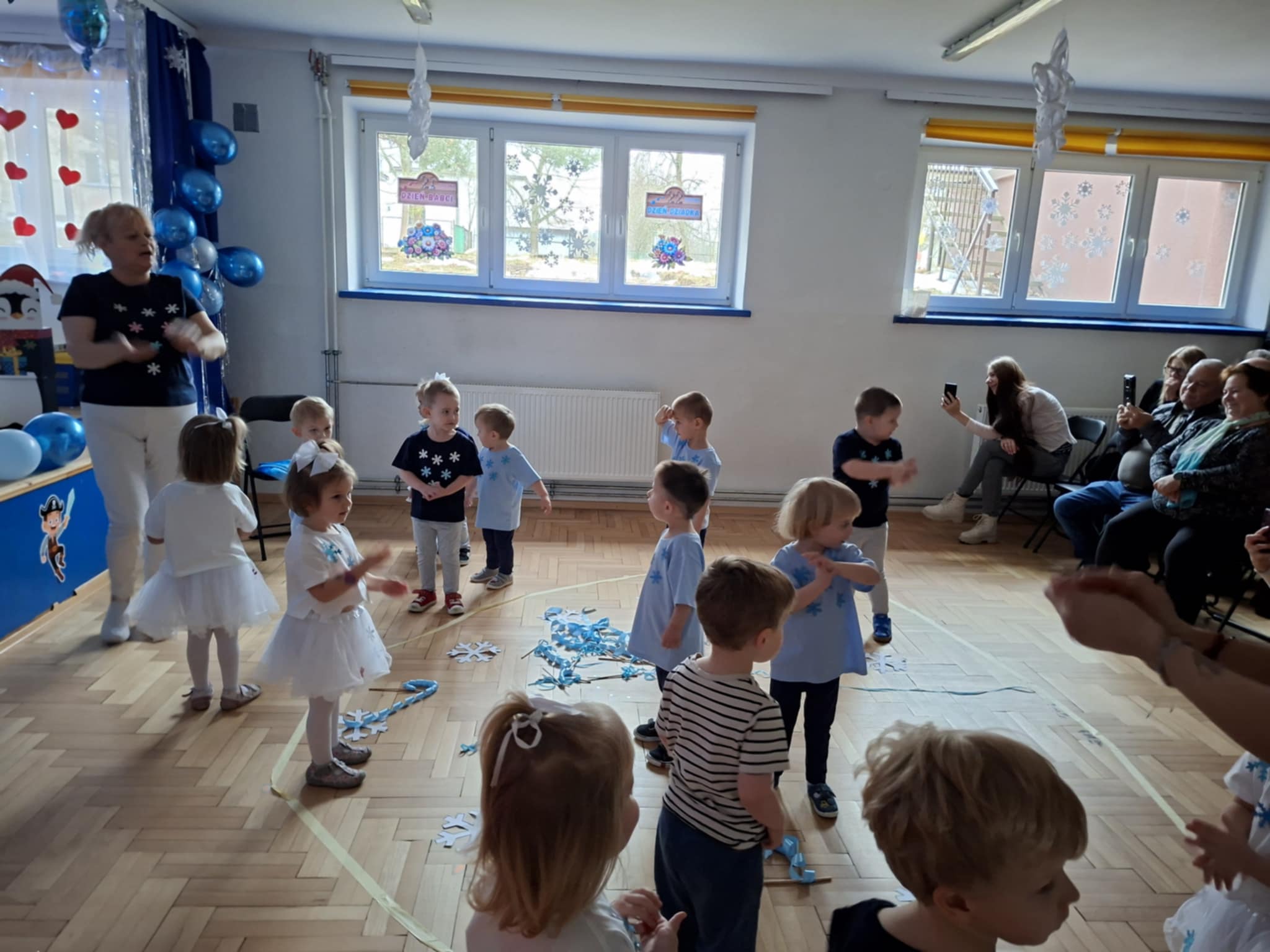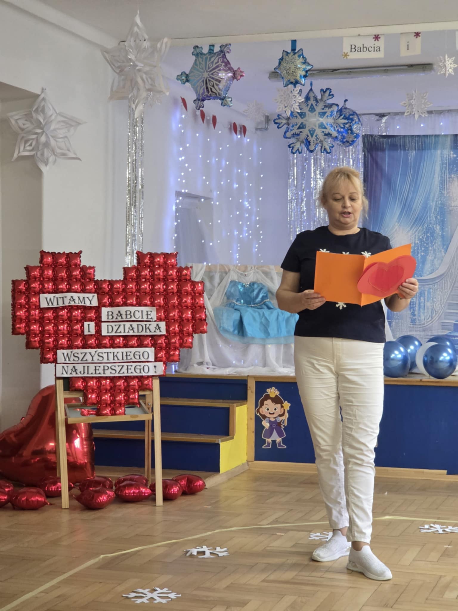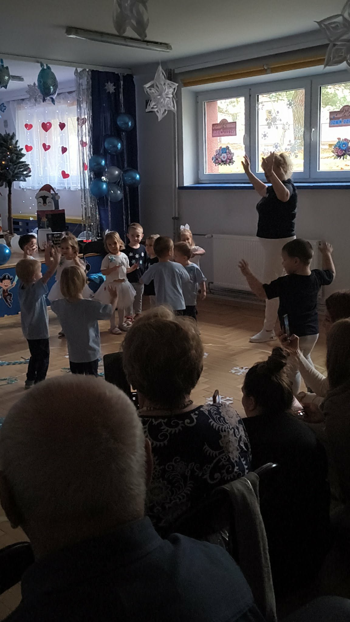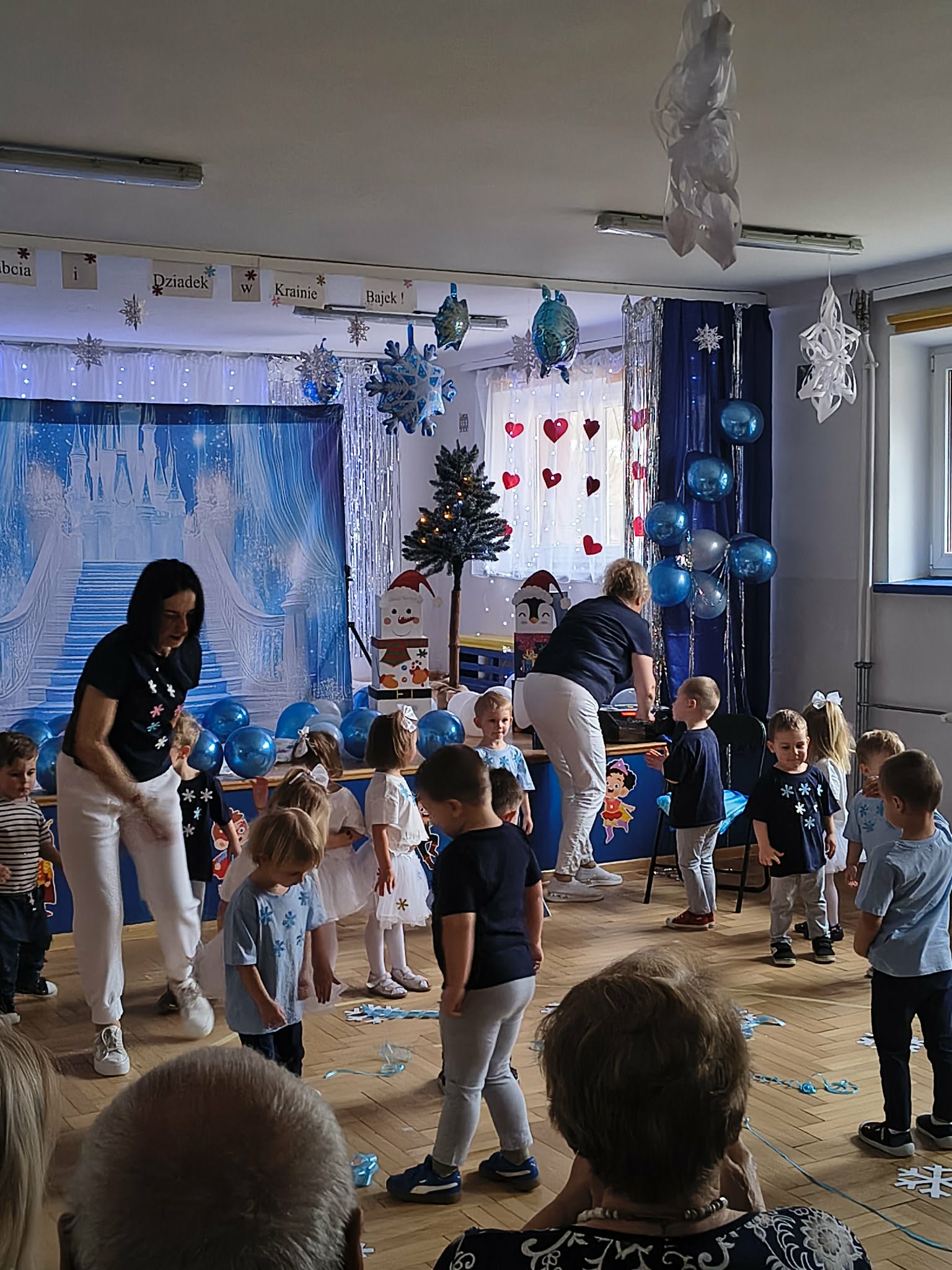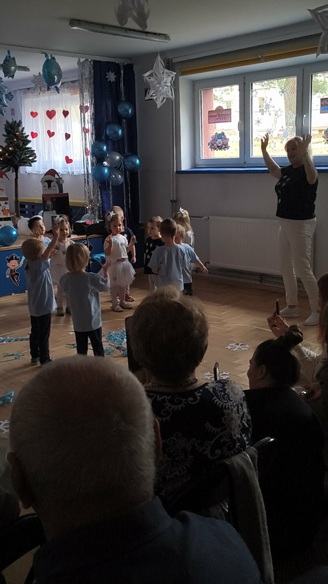 Uroczystość rozpoczęła się występem dzieci, które zaprezentowały przygotowane piosenki oraz układy taneczne. Przedszkolaki z zaangażowaniem śpiewały i tańczyły, a ich występy zostały nagrodzone gromkimi brawami i uśmiechami wzruszonych babć i dziadków.