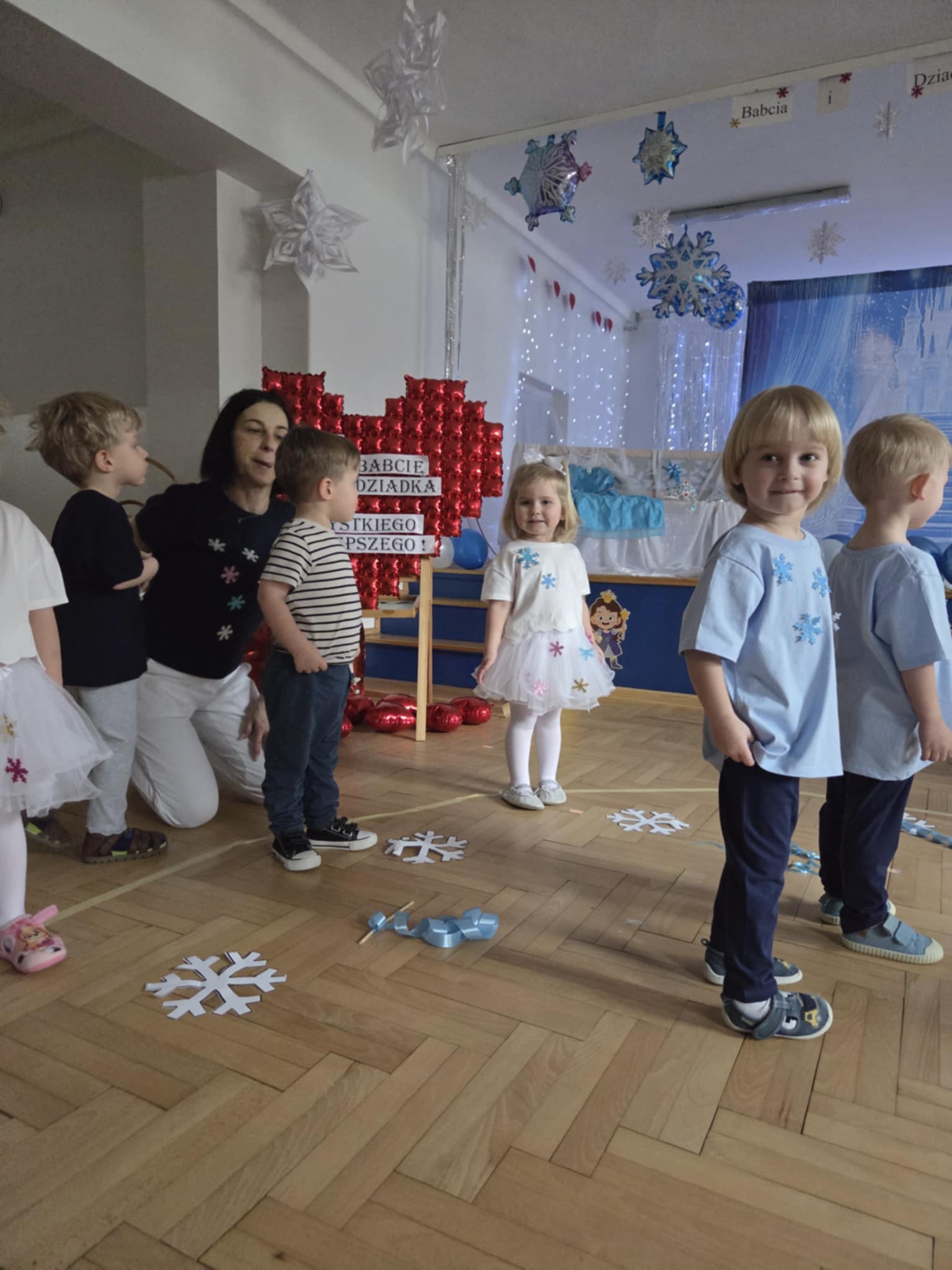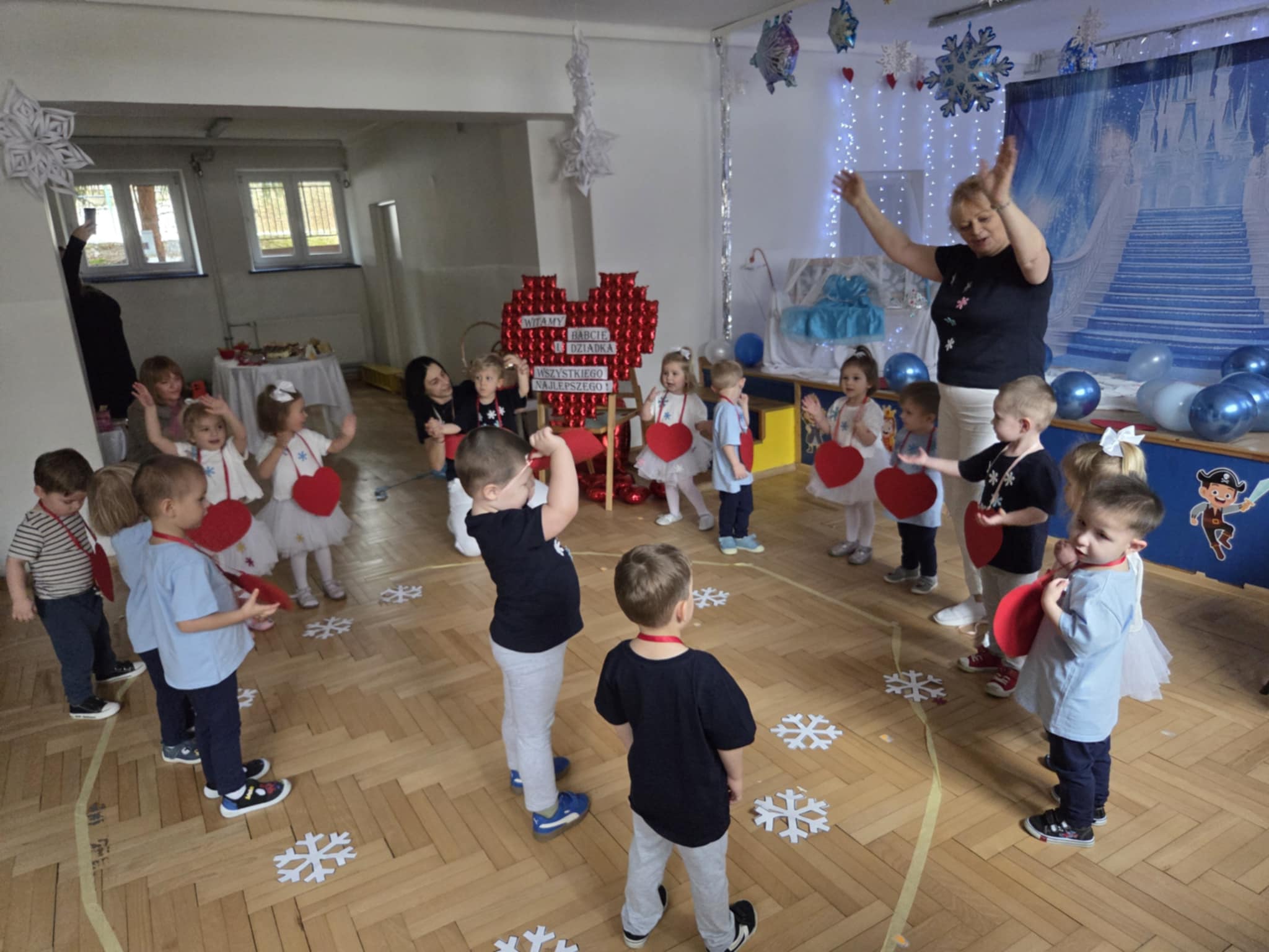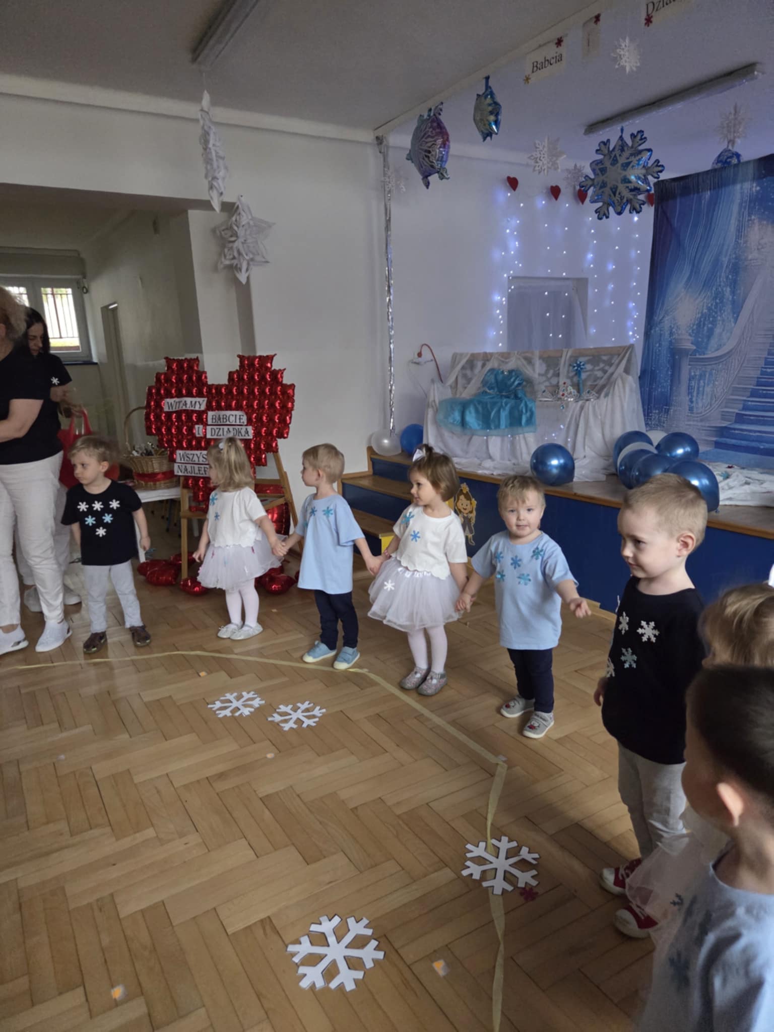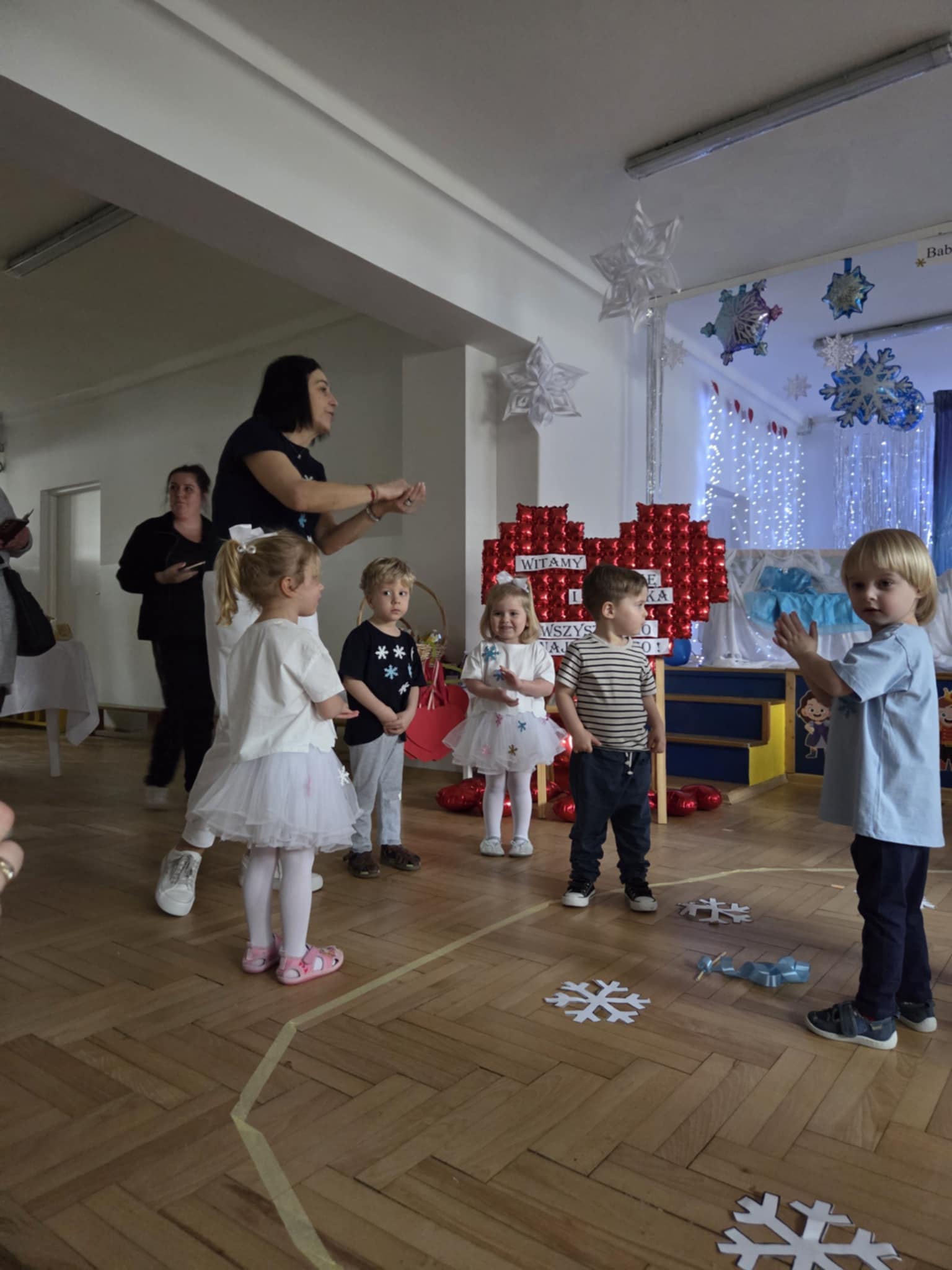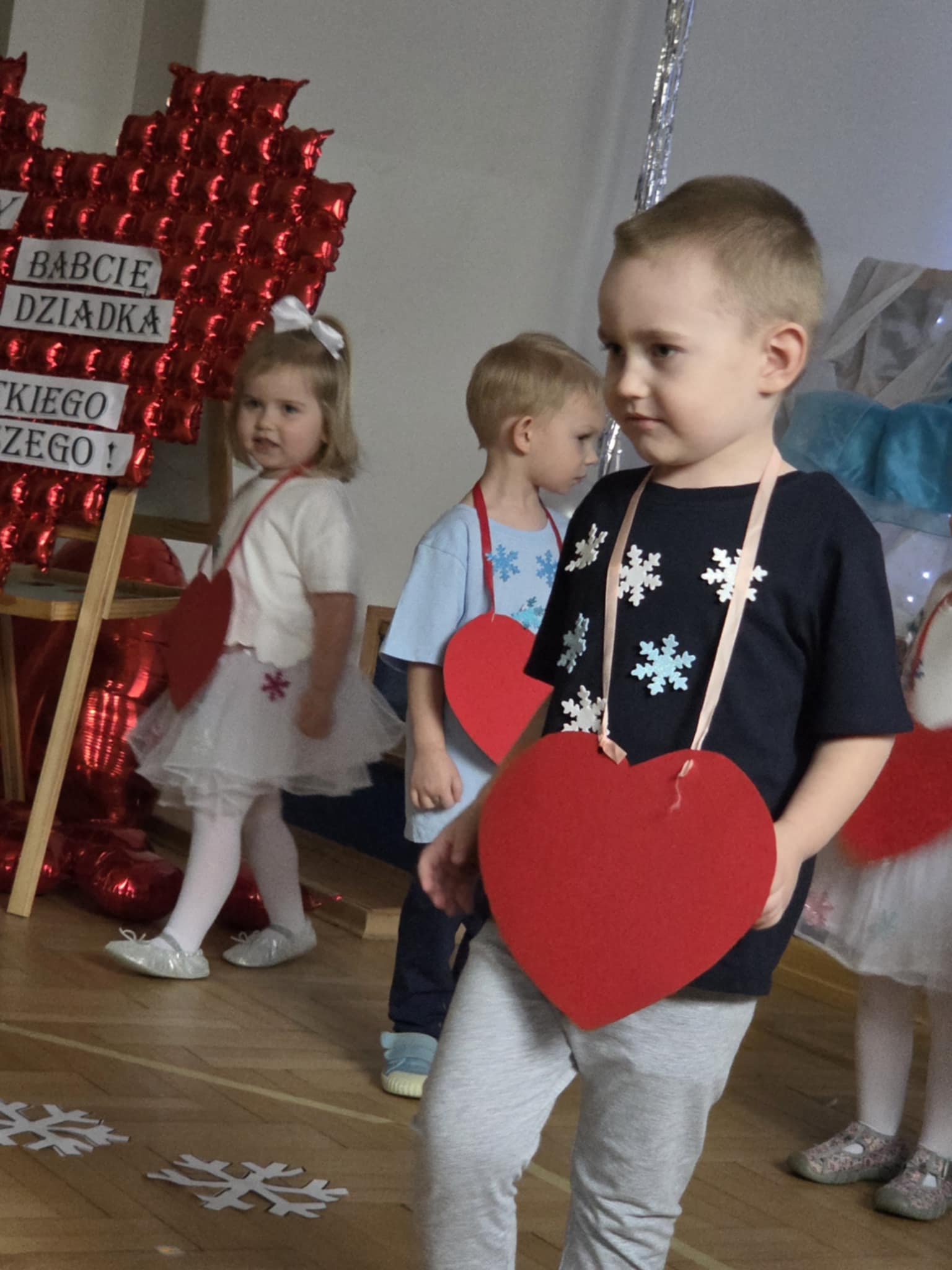 Uroczystość rozpoczęła się występem dzieci, które zaprezentowały przygotowane piosenki oraz układy taneczne. Przedszkolaki z zaangażowaniem śpiewały i tańczyły, a ich występy zostały nagrodzone gromkimi brawami i uśmiechami wzruszonych babć i dziadków.