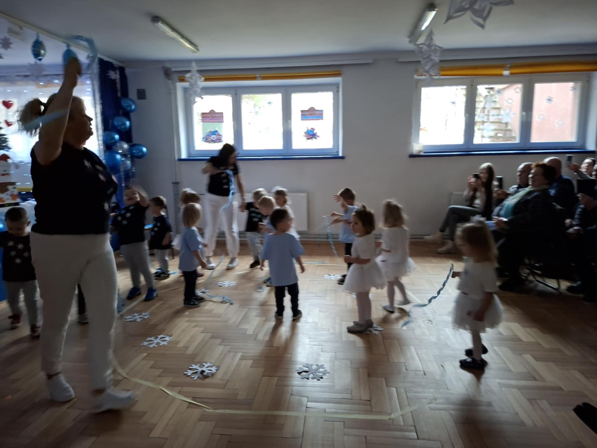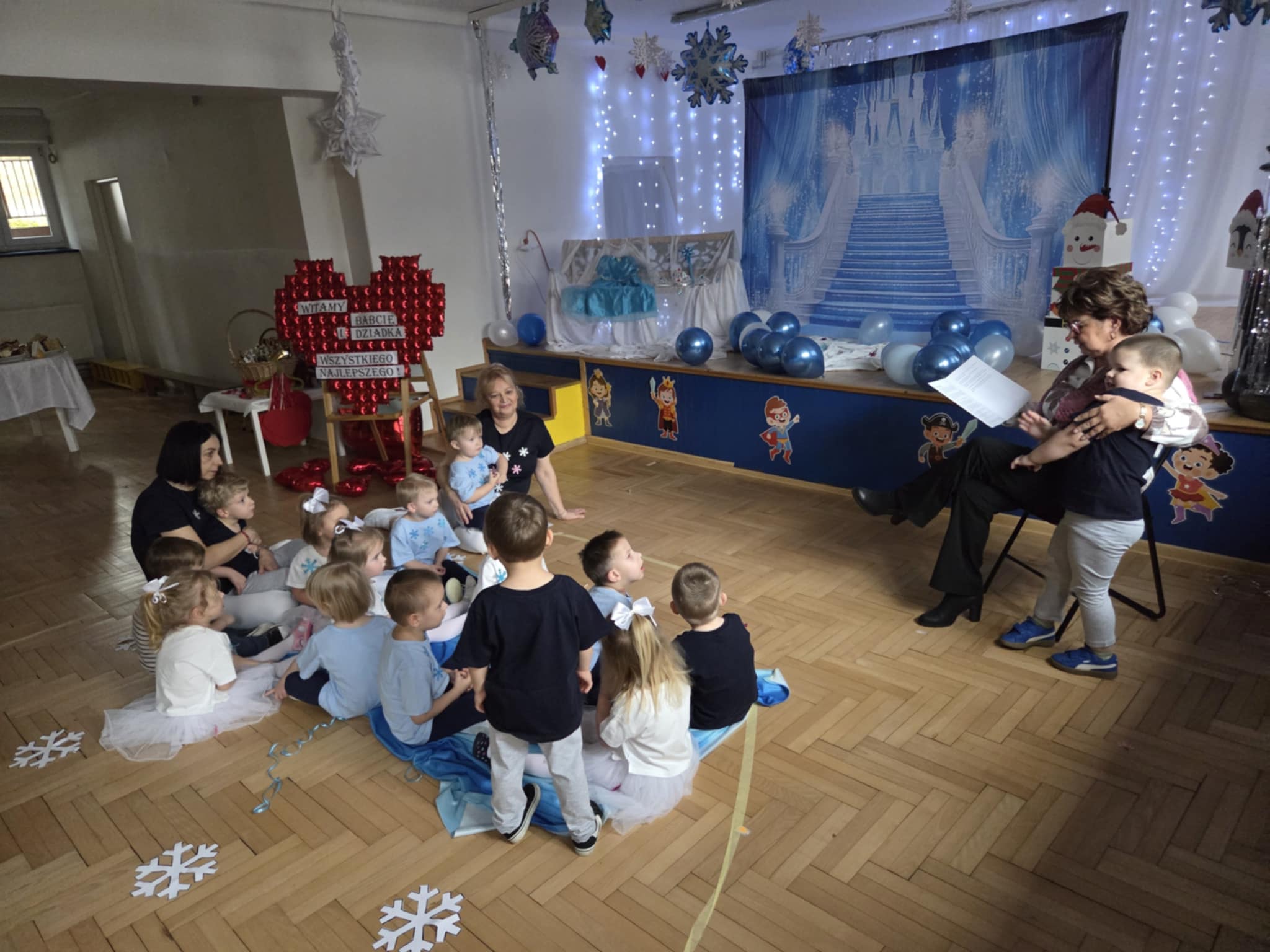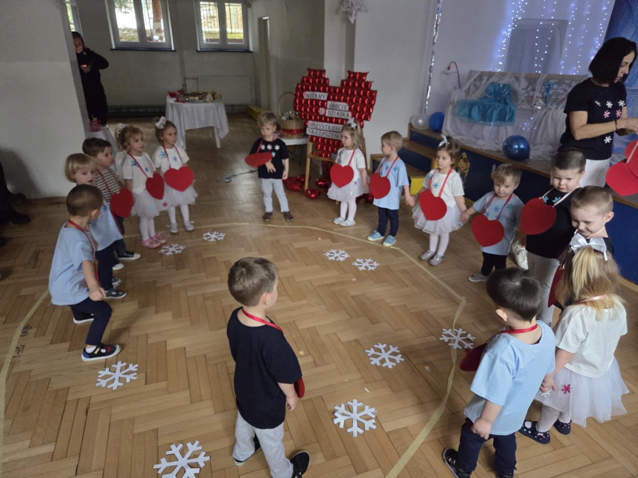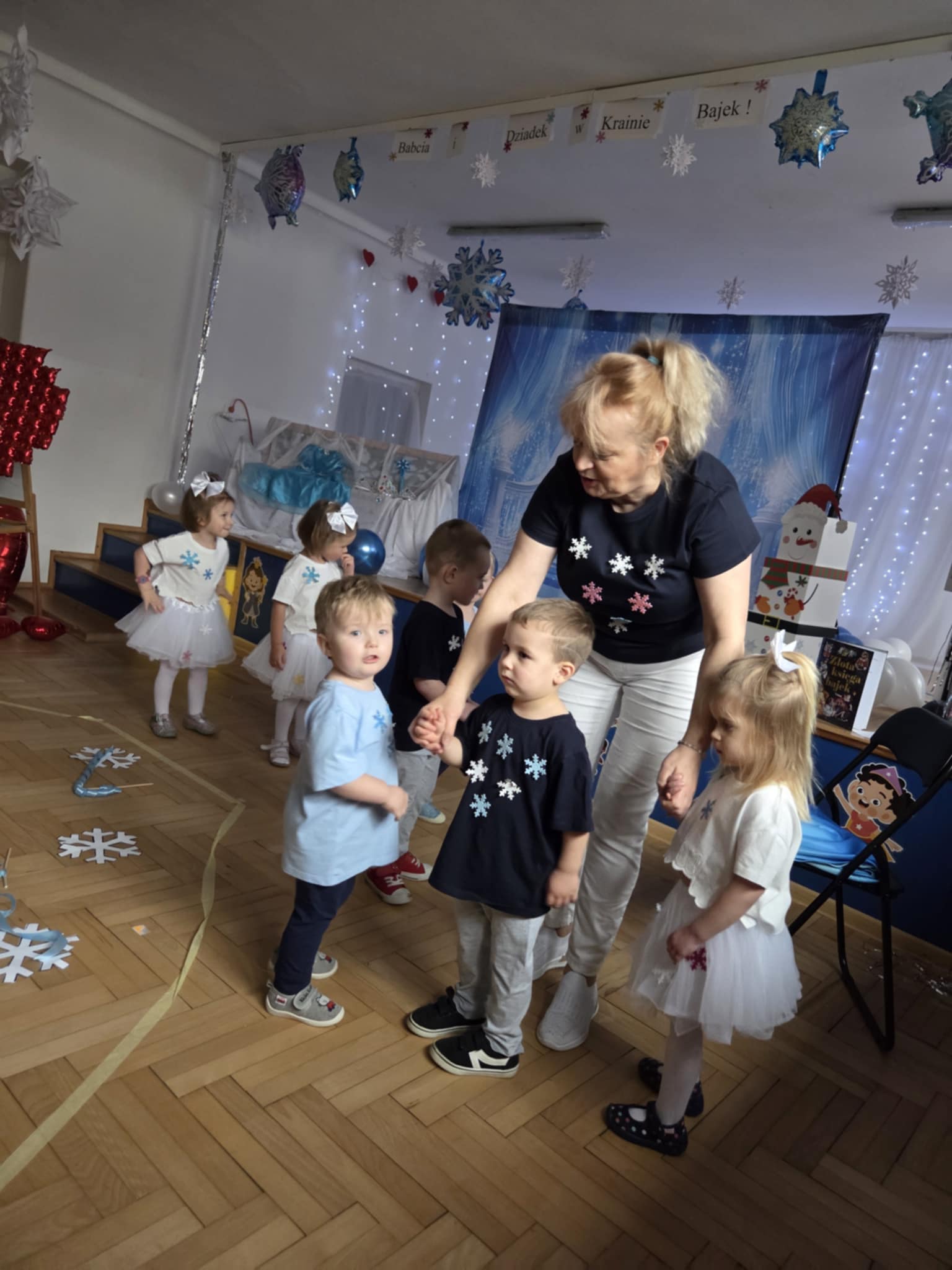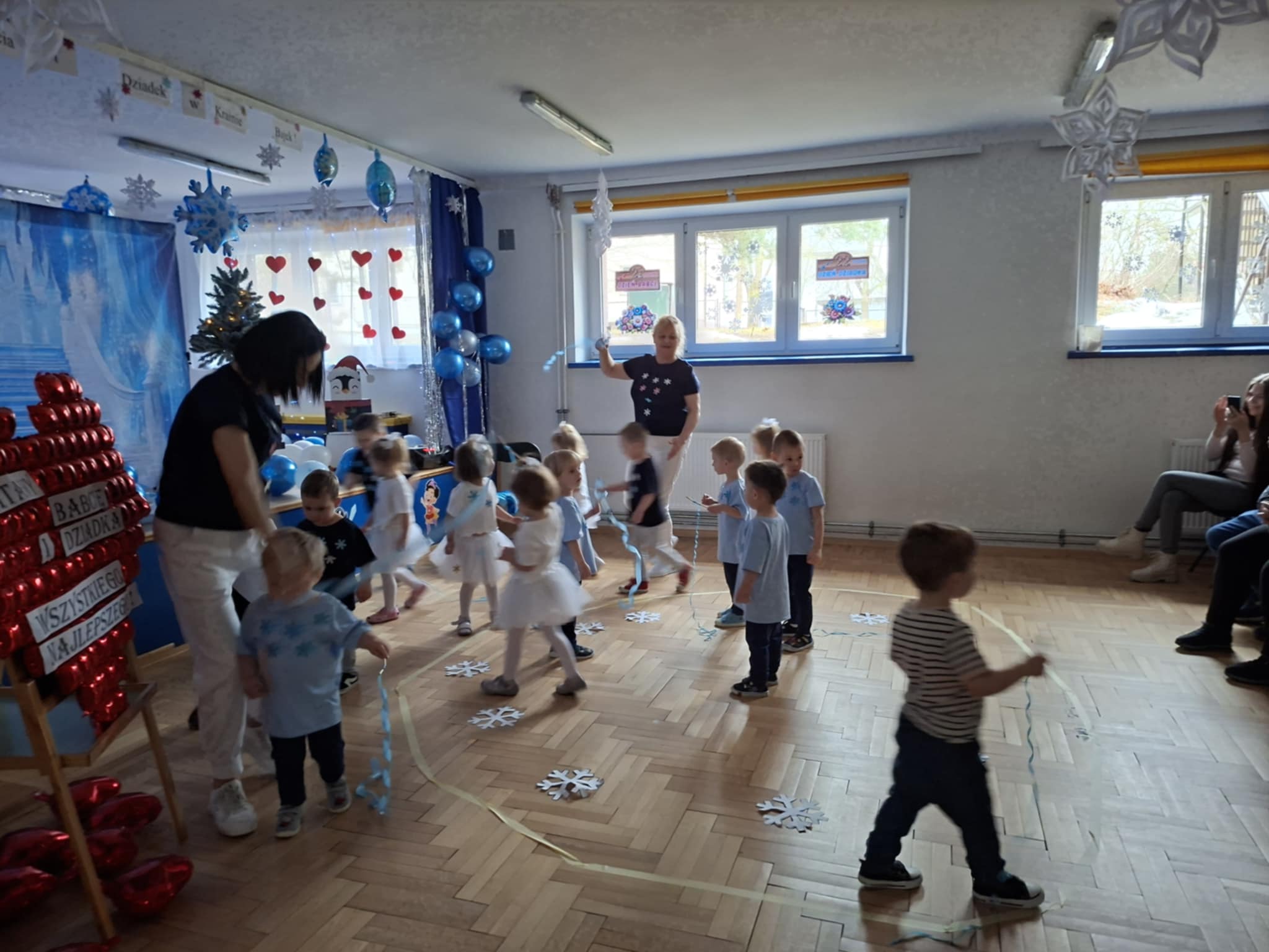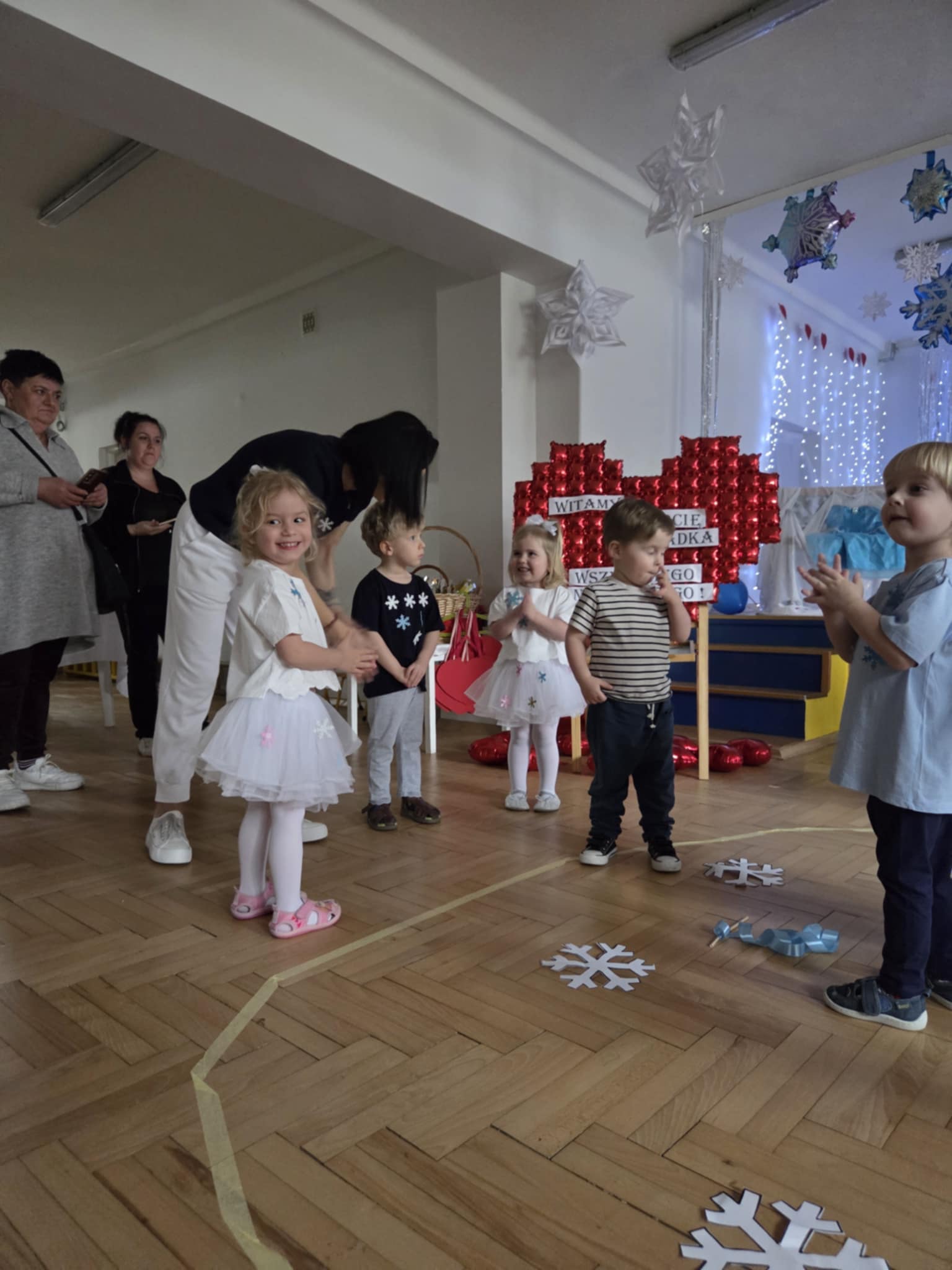 Uroczystość rozpoczęła się występem dzieci, które zaprezentowały przygotowane piosenki oraz układy taneczne. Przedszkolaki z zaangażowaniem śpiewały i tańczyły, a ich występy zostały nagrodzone gromkimi brawami i uśmiechami wzruszonych babć i dziadków.