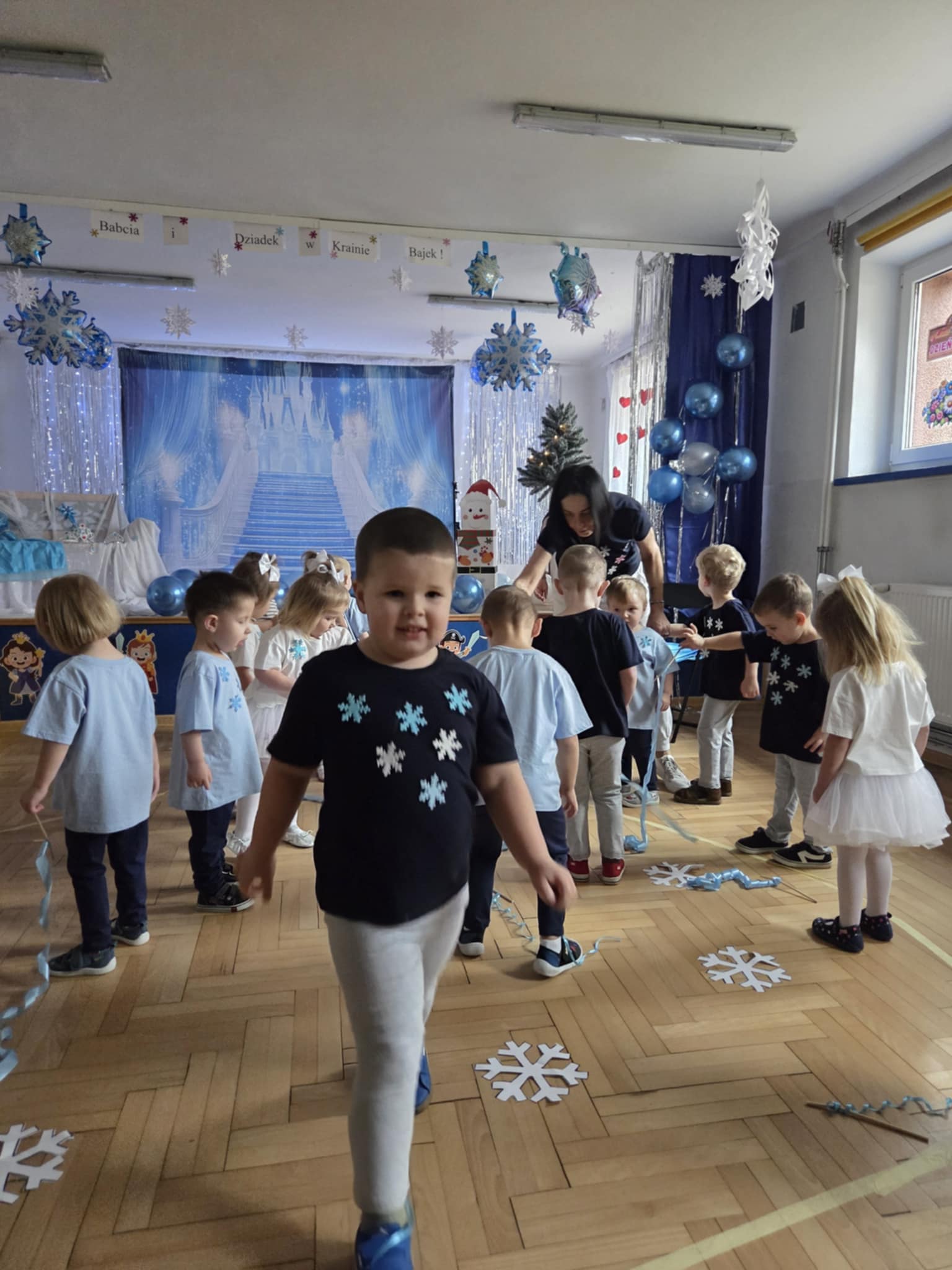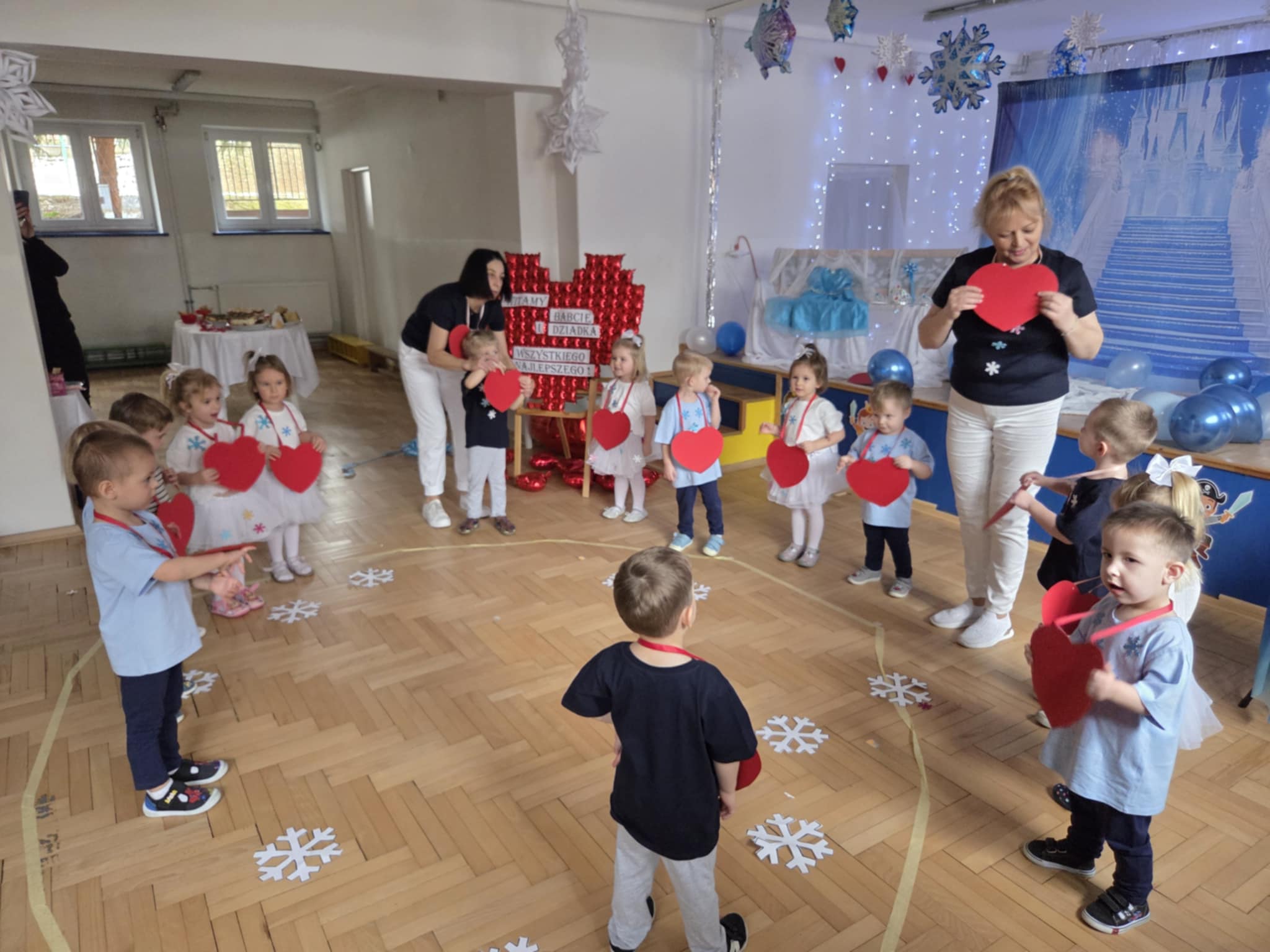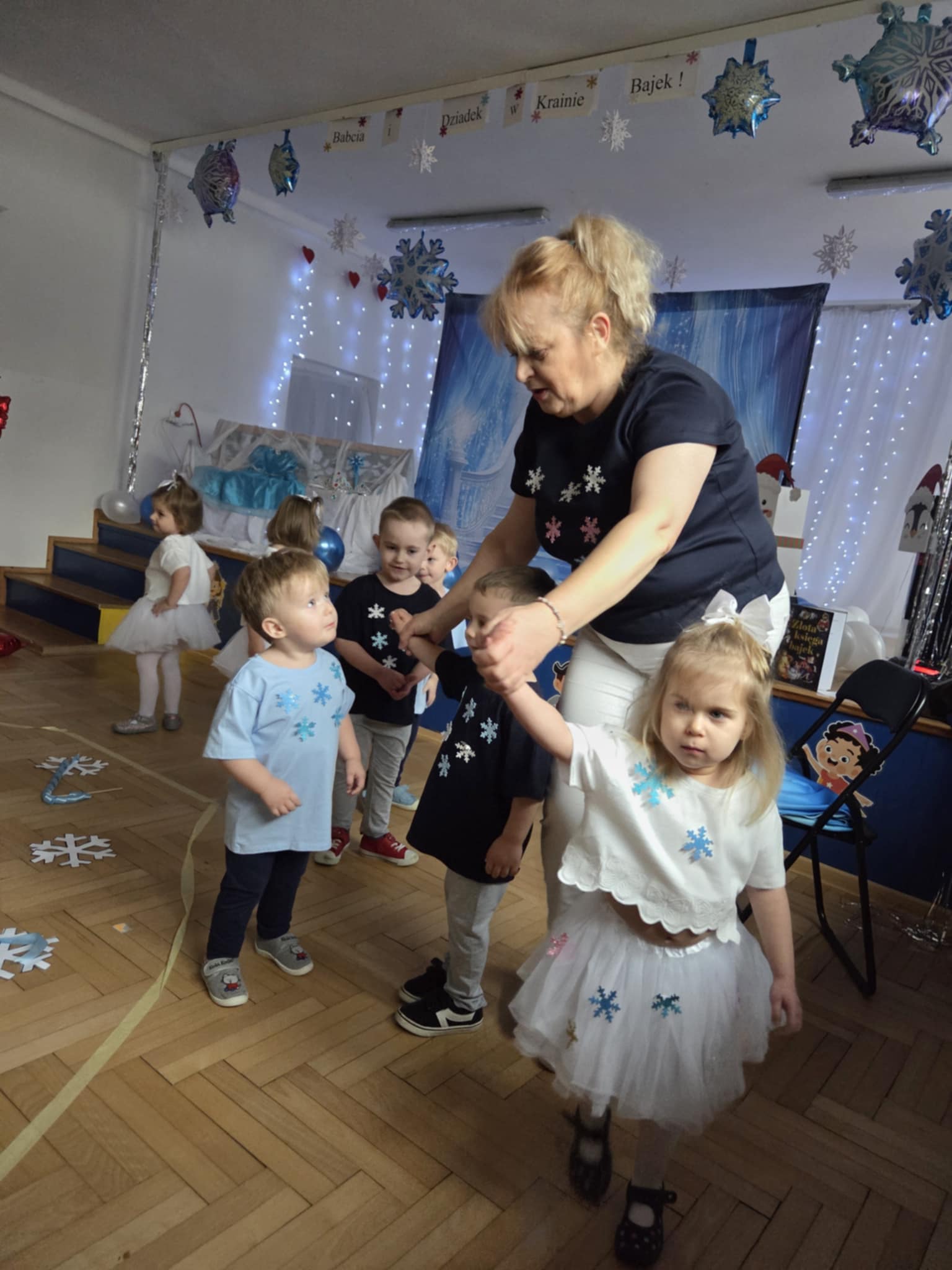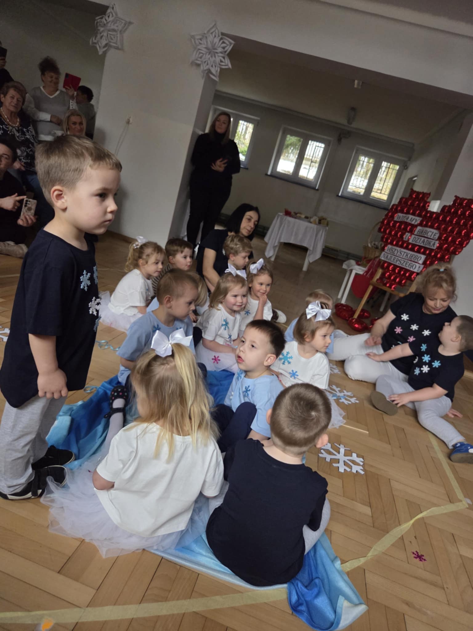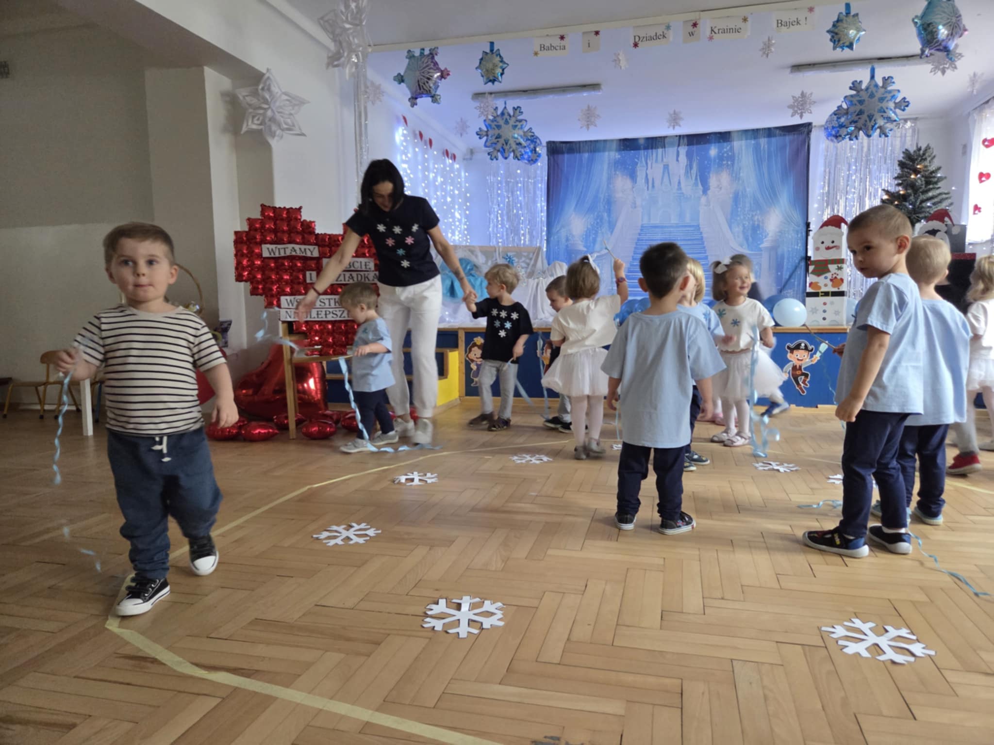 Uroczystość rozpoczęła się występem dzieci, które zaprezentowały przygotowane piosenki oraz układy taneczne. Przedszkolaki z zaangażowaniem śpiewały i tańczyły, a ich występy zostały nagrodzone gromkimi brawami i uśmiechami wzruszonych babć i dziadków.