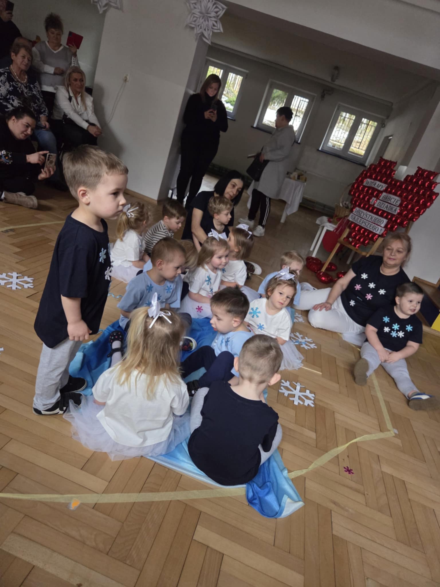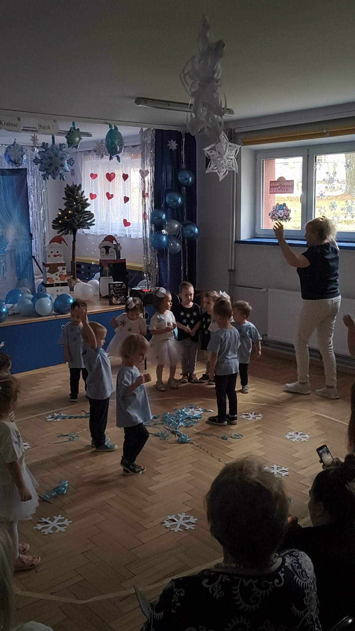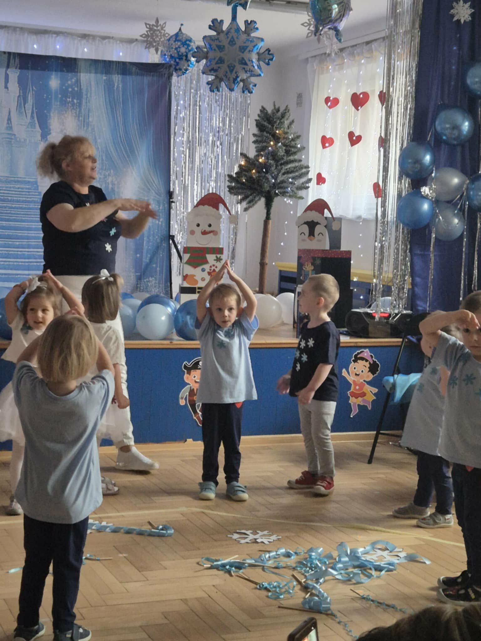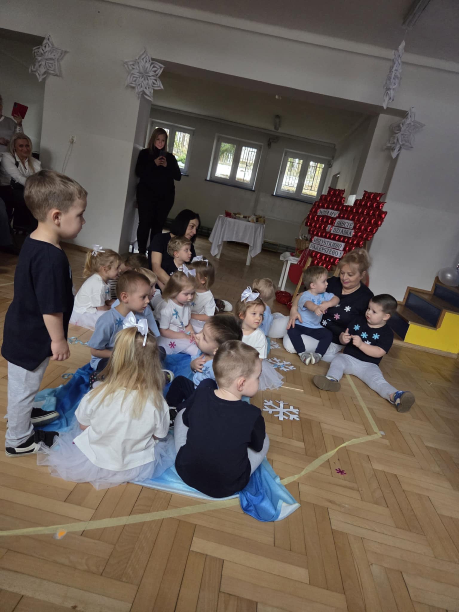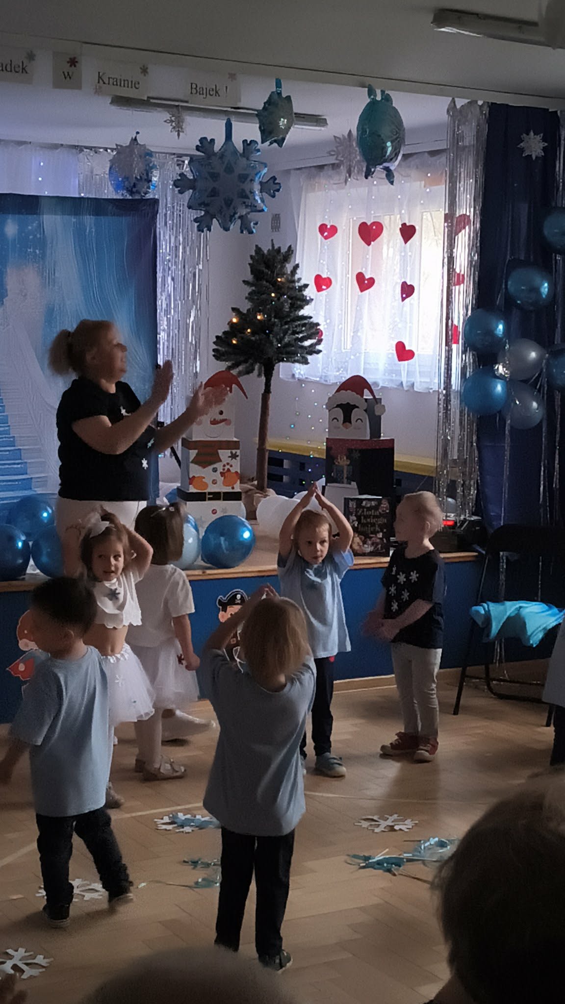 Uroczystość rozpoczęła się występem dzieci, które zaprezentowały przygotowane piosenki oraz układy taneczne. Przedszkolaki z zaangażowaniem śpiewały i tańczyły, a ich występy zostały nagrodzone gromkimi brawami i uśmiechami wzruszonych babć i dziadków.