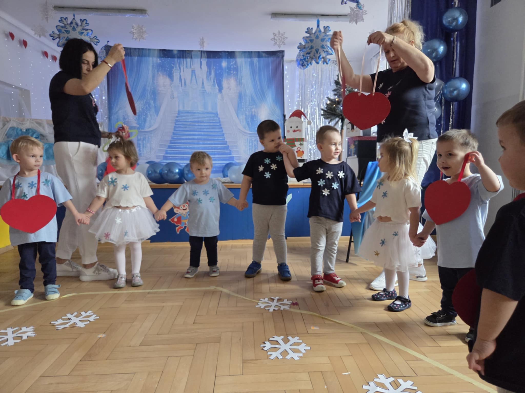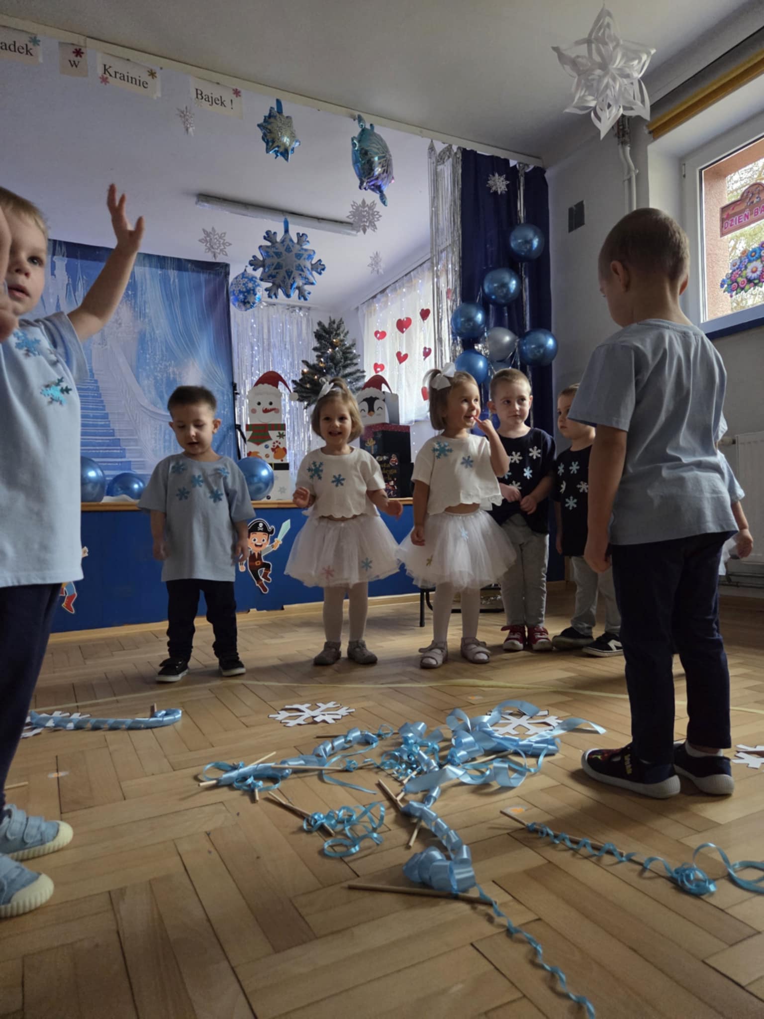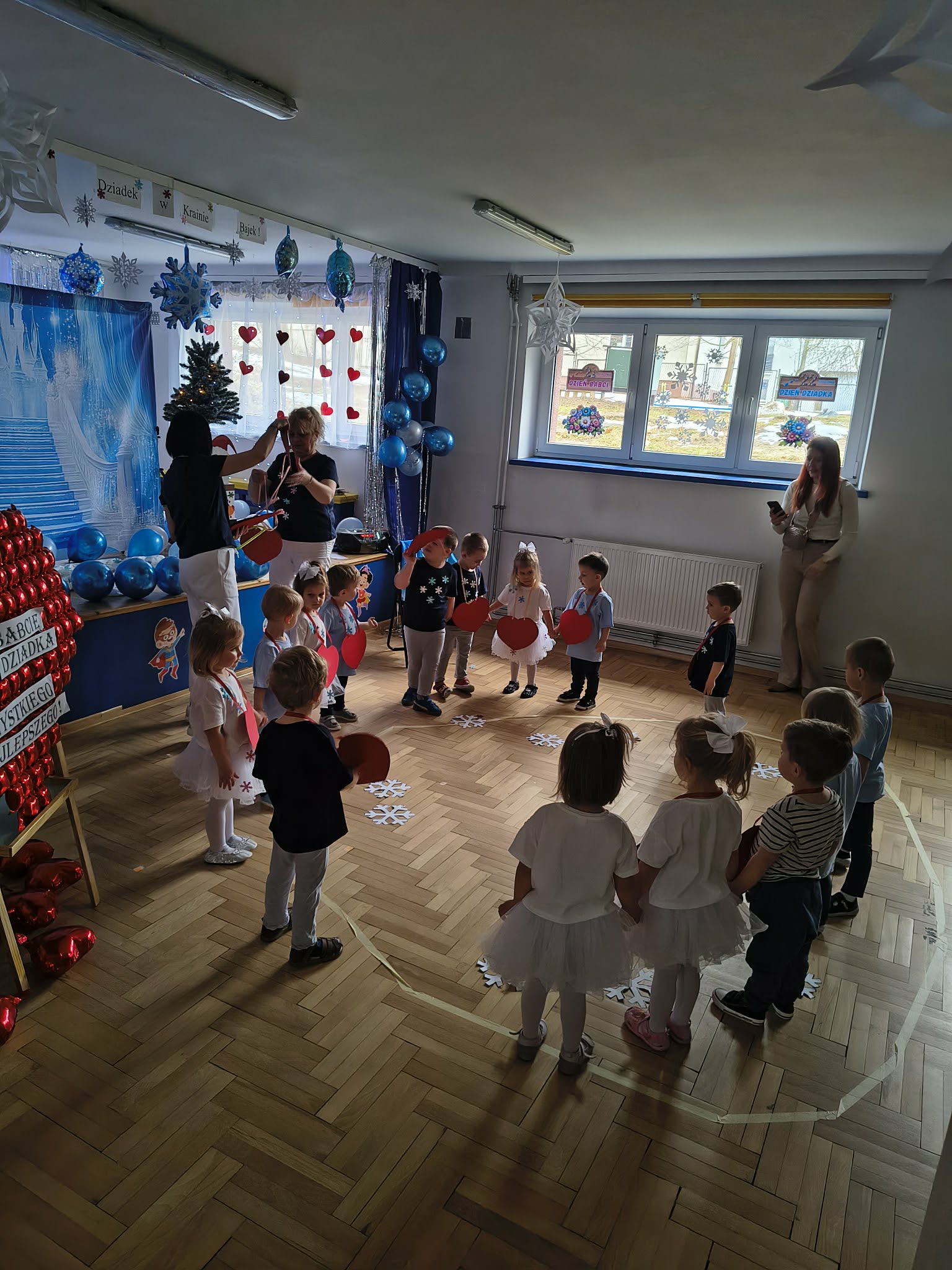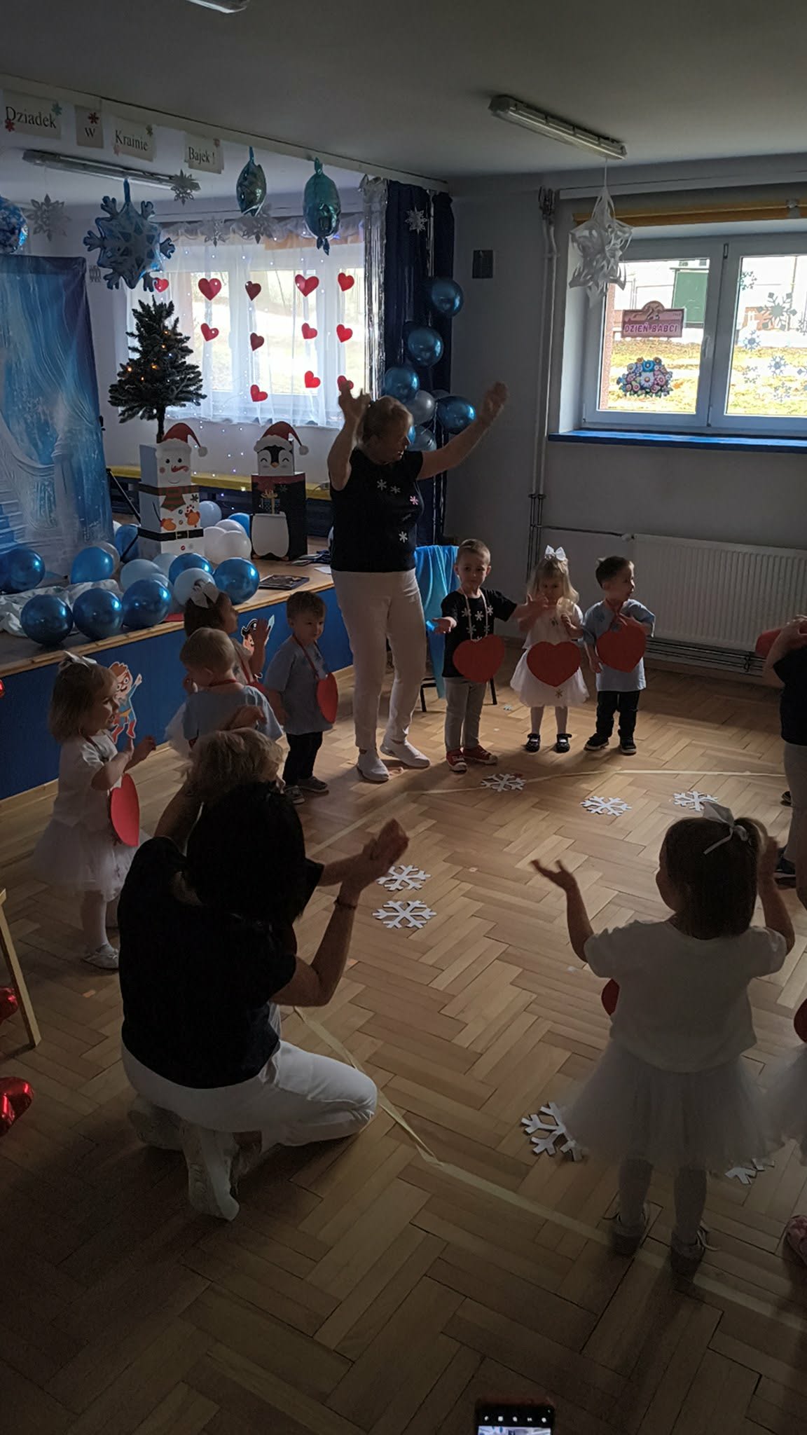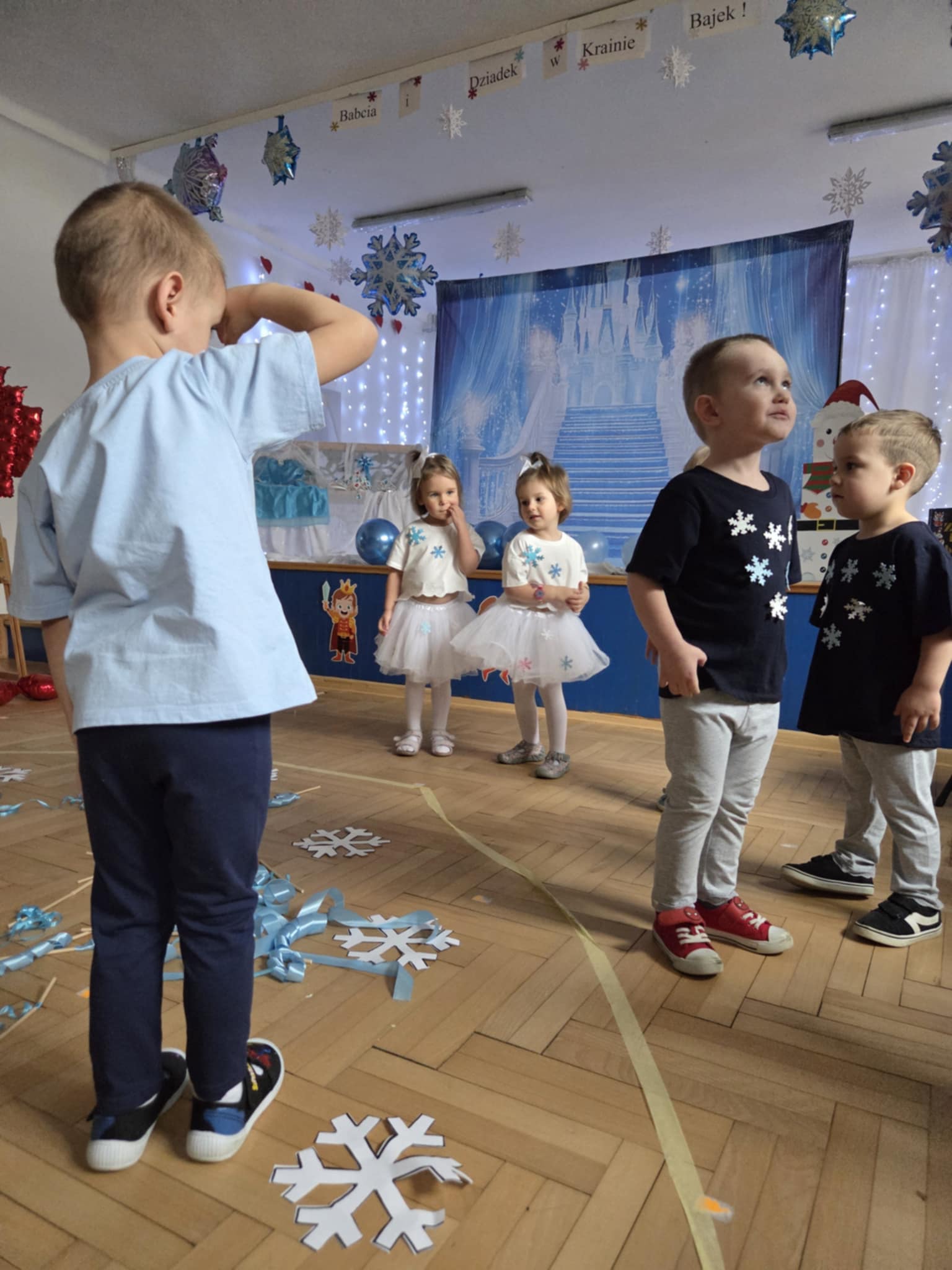 Uroczystość rozpoczęła się występem dzieci, które zaprezentowały przygotowane piosenki oraz układy taneczne. Przedszkolaki z zaangażowaniem śpiewały i tańczyły, a ich występy zostały nagrodzone gromkimi brawami i uśmiechami wzruszonych babć i dziadków.