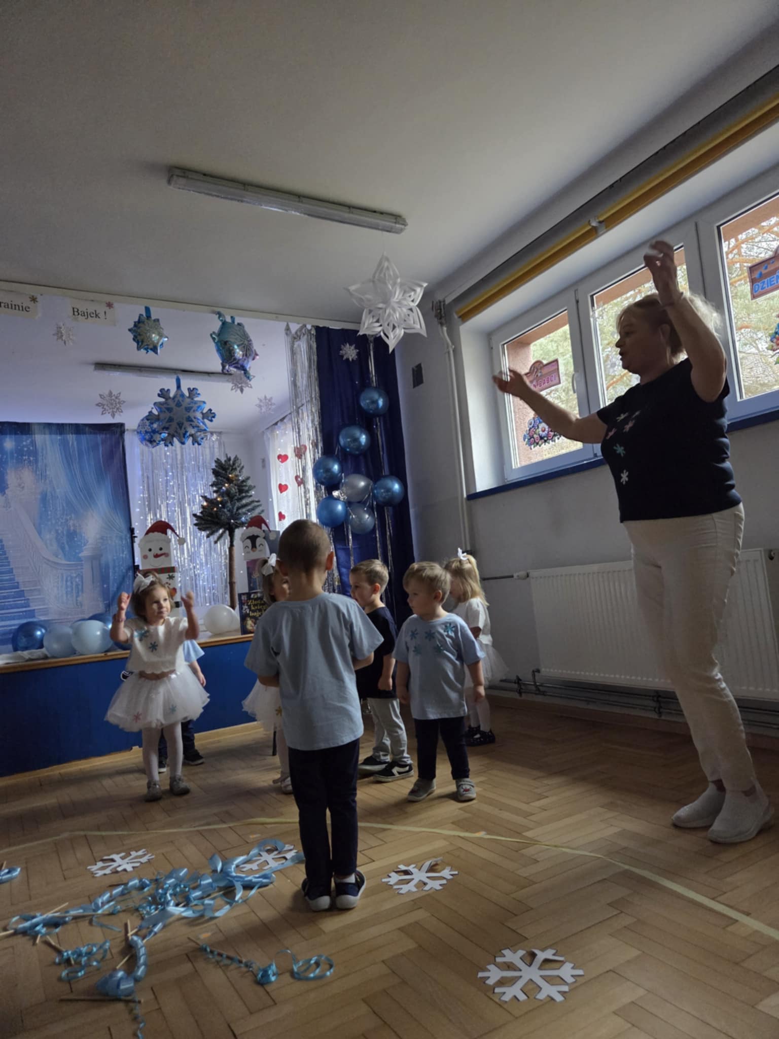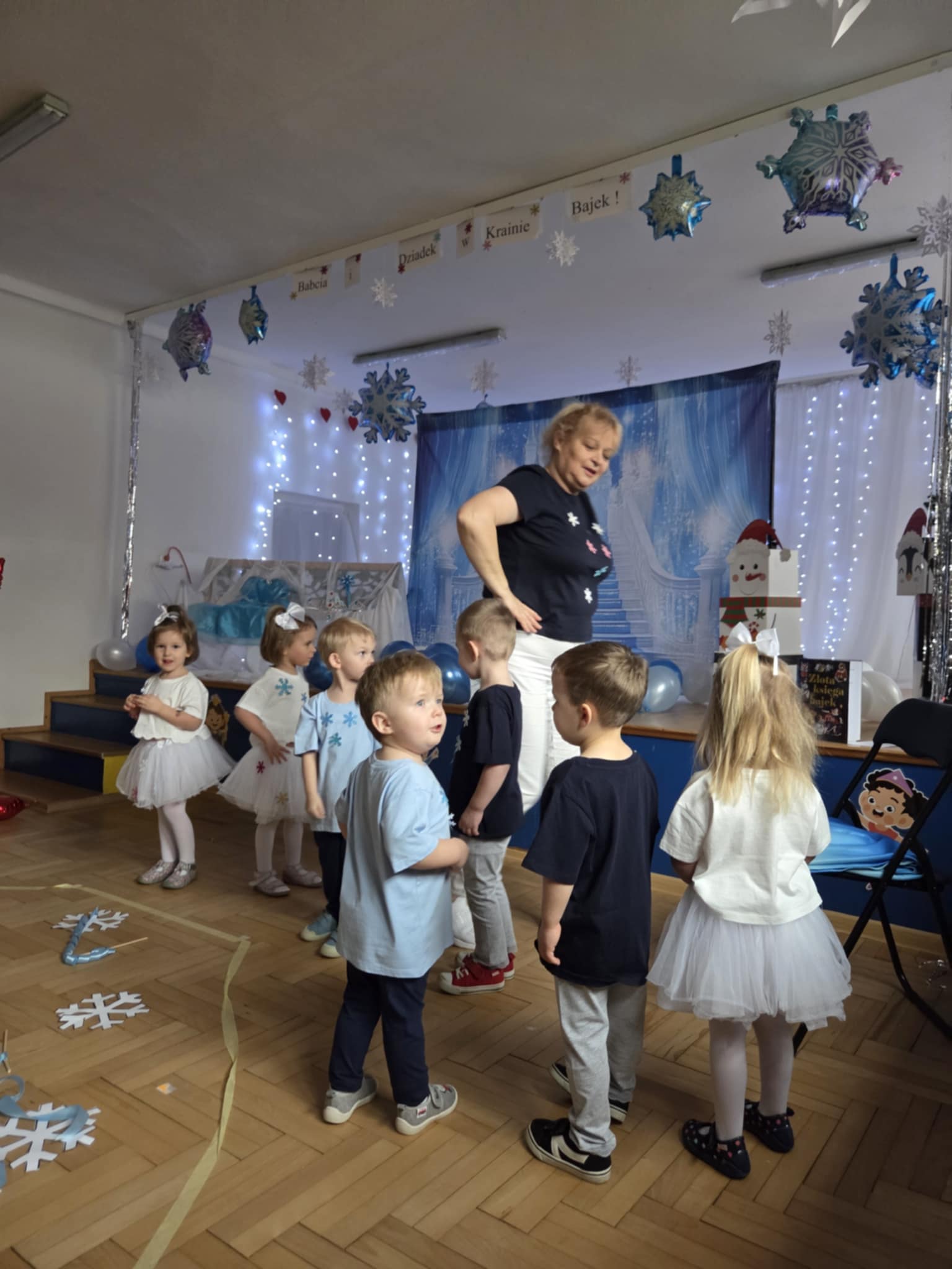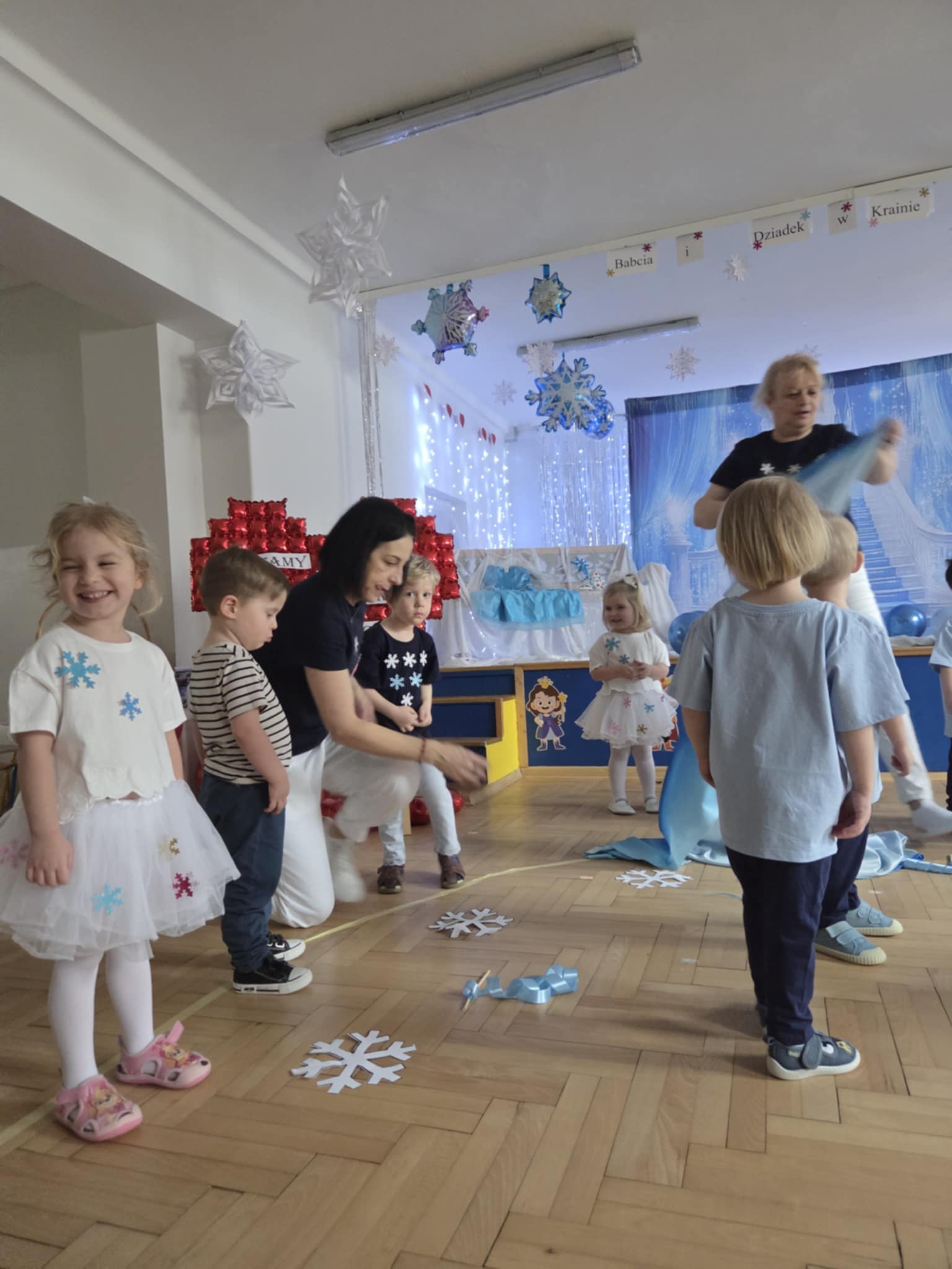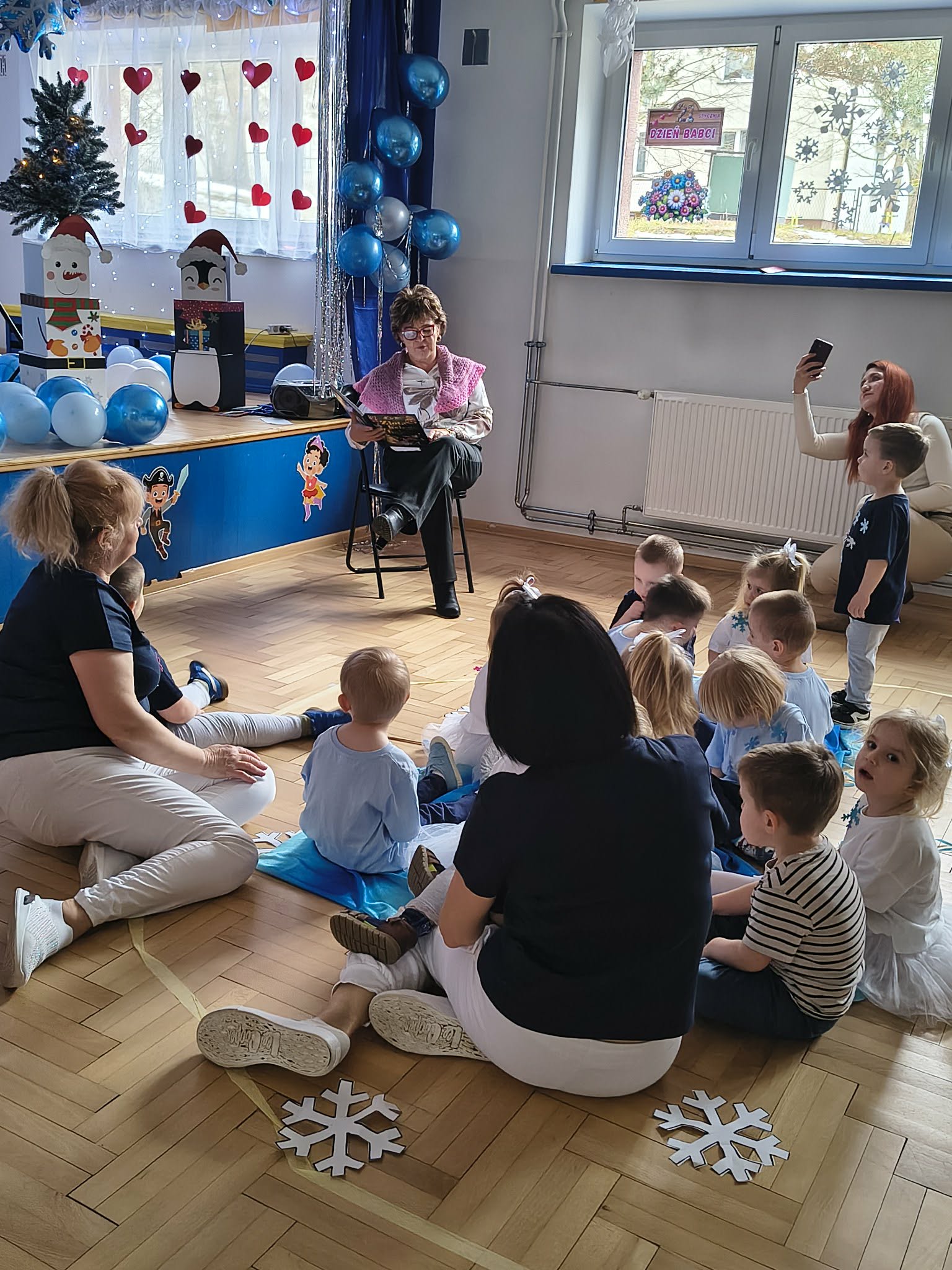 Szczególnym momentem spotkania było czytanie bajki o Pani Zimie przez jedną z babć. Dzieci z zaciekawieniem słuchały opowieści, która wprowadziła wszystkich w magiczny, bajkowy klimat i podkreśliła wyjątkową rolę wspólnego czytania w relacjach międzypokoleniowych.