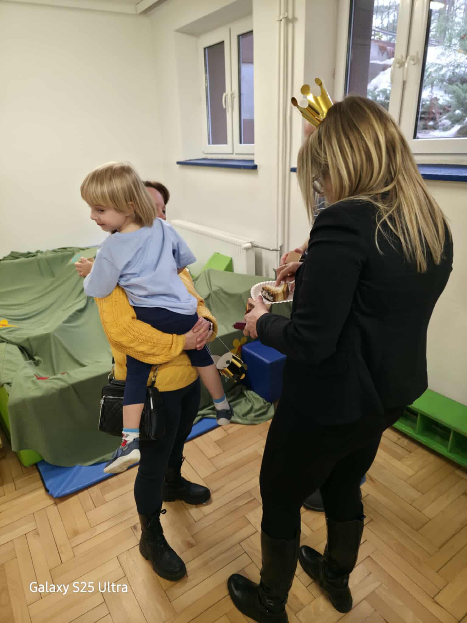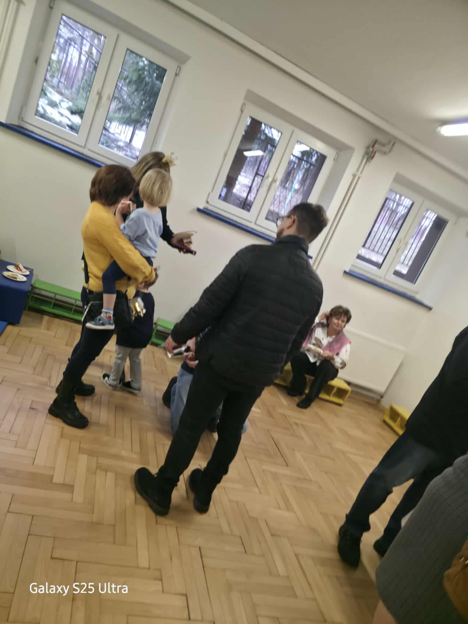 Po części artystycznej odbył się wspólny poczęstunek. Na stołach pojawiły się pyszne, domowe ciasta, które z wielkim sercem upiekły kochane mamusie przedszkolaków. Był to czas swobodnych rozmów, uśmiechów i radosnych spotkań przy słodkim poczęstunku.