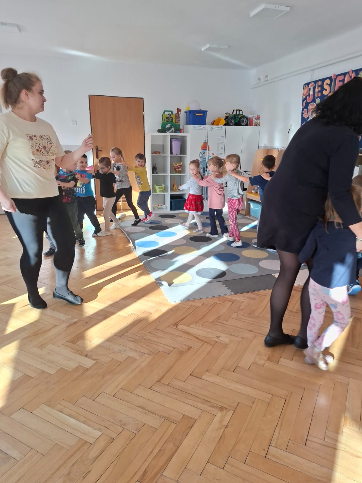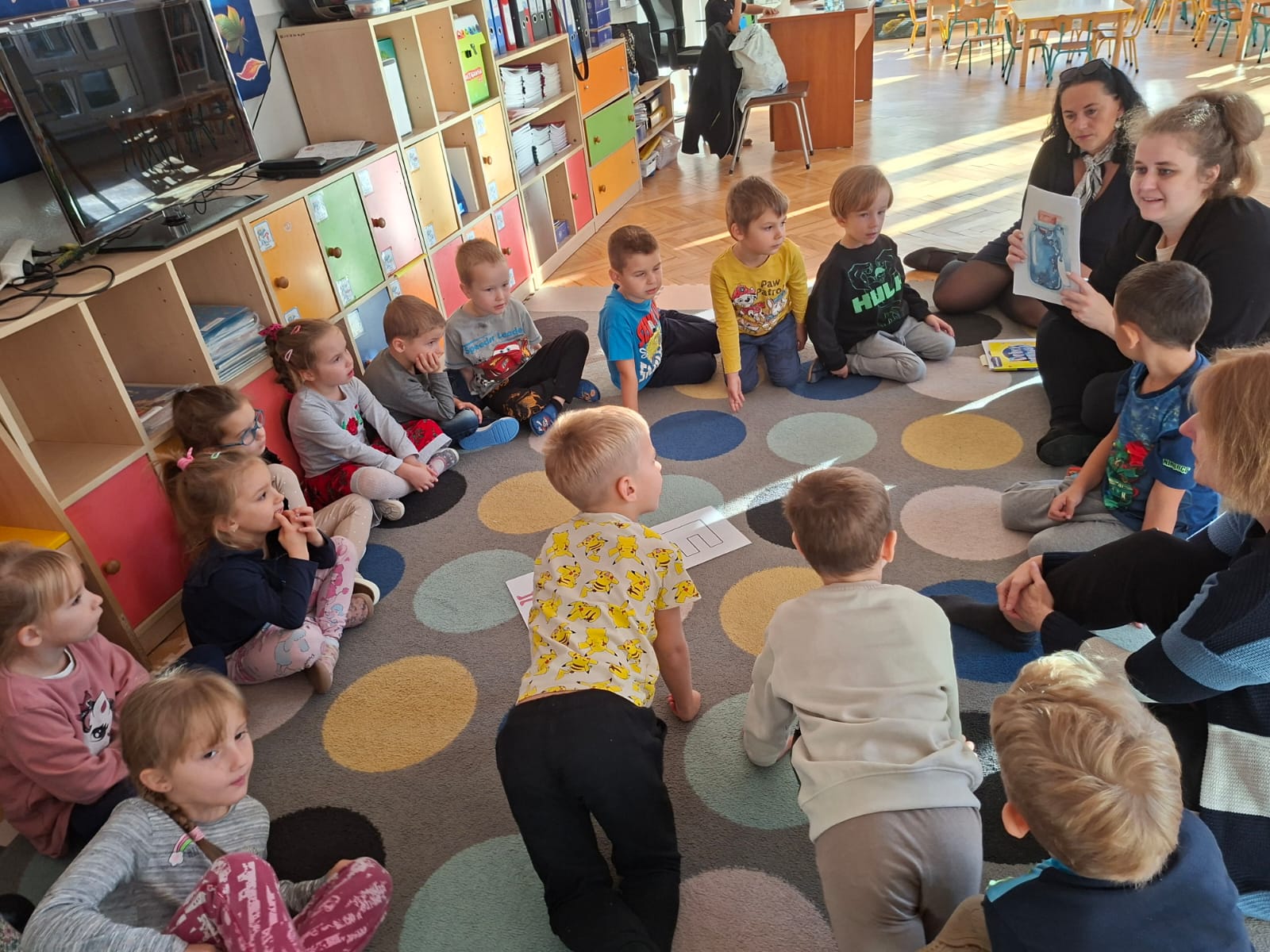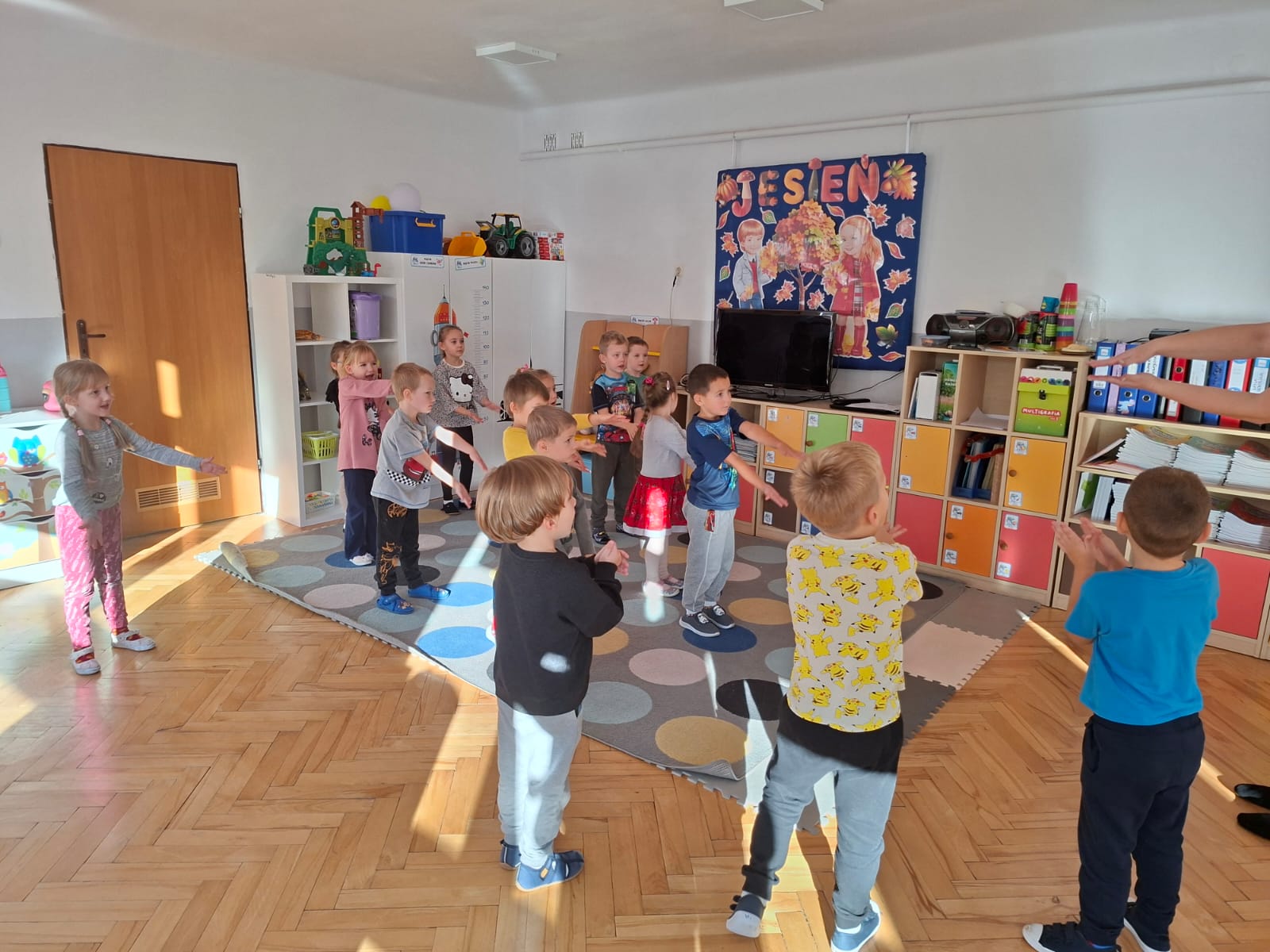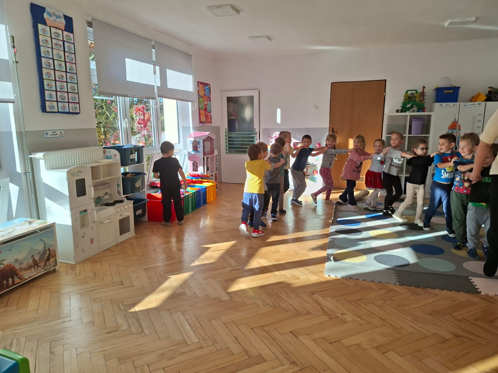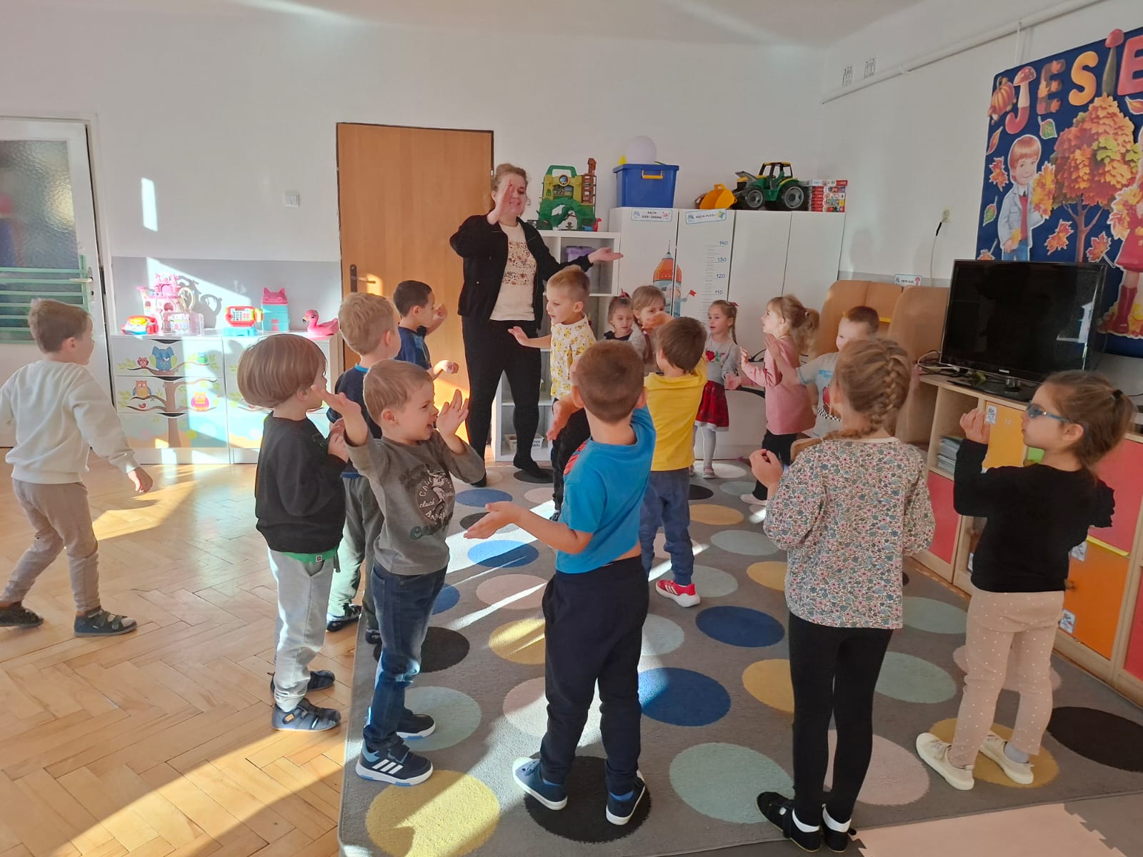 Smerfy brały udział w zabawie matematycznej " Ile nóg ma stworek?"; " Czwarty - bum"; " O ile wyższy?" oraz w zabawie ruchowej " E jak elf"; " W czwórce siła" ; " Stworki na pogodę i niepogodę".