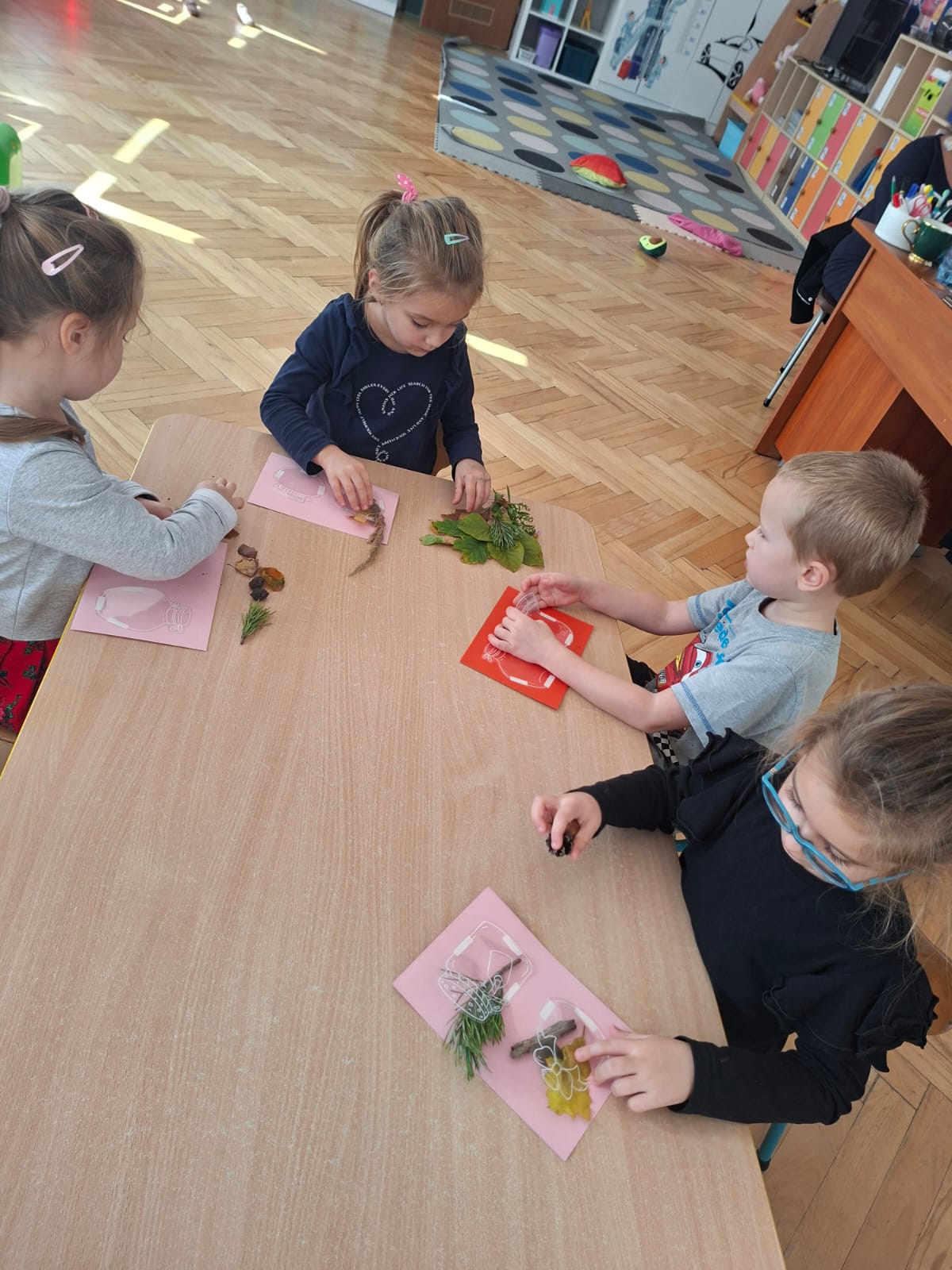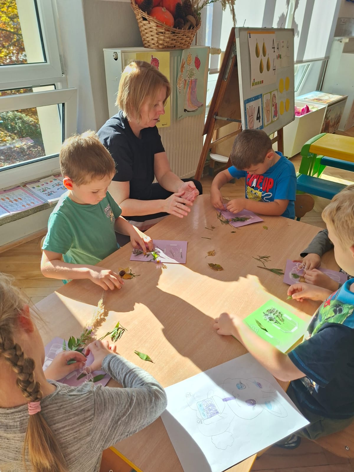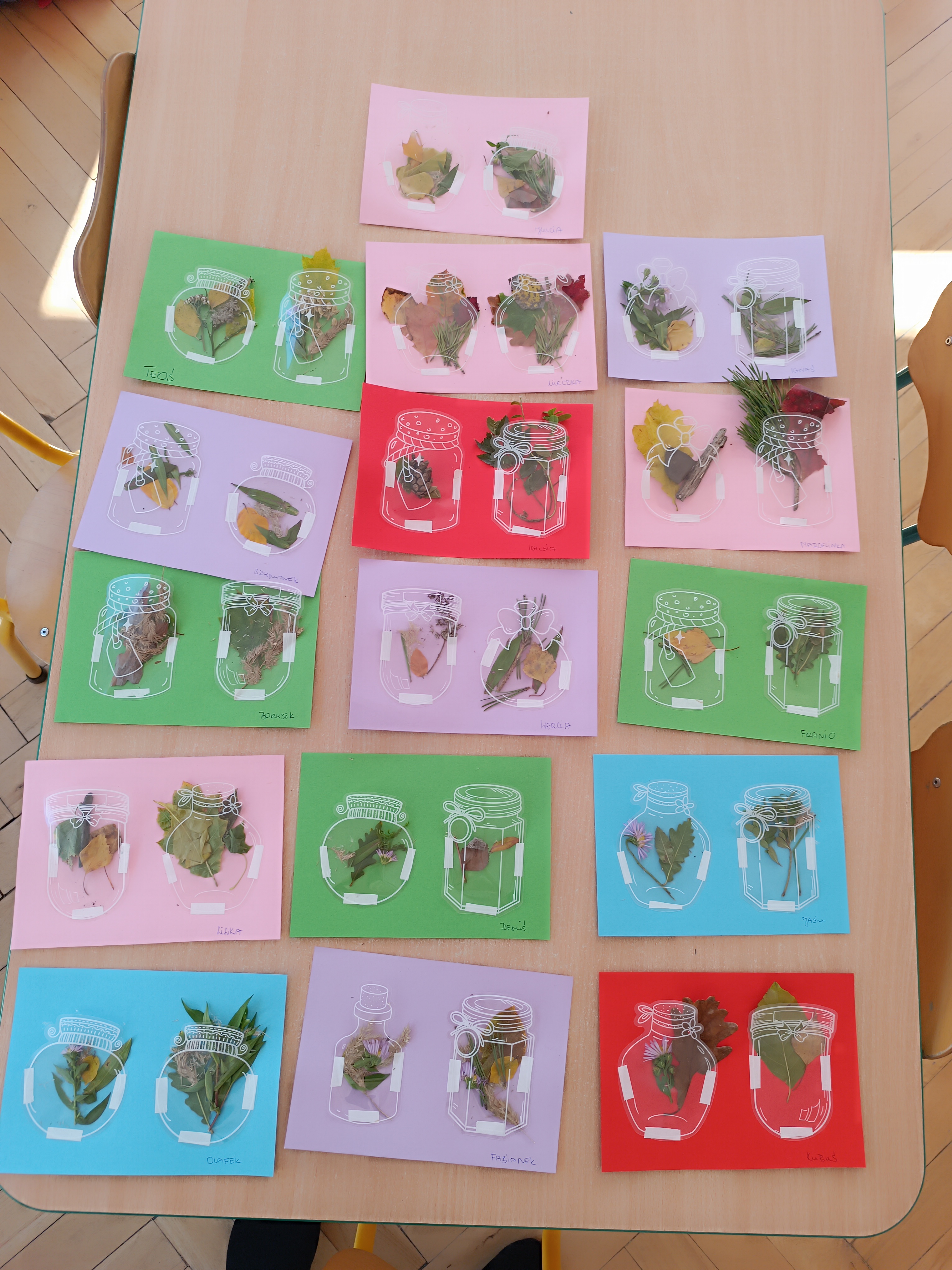 Ten tydzień pozwolił nam na wyjście na spacery, na których zbieraliśmy dary jesieni, zamykając je w naszych słoiczkach przyklejonych do kartek. Było przepięknie!