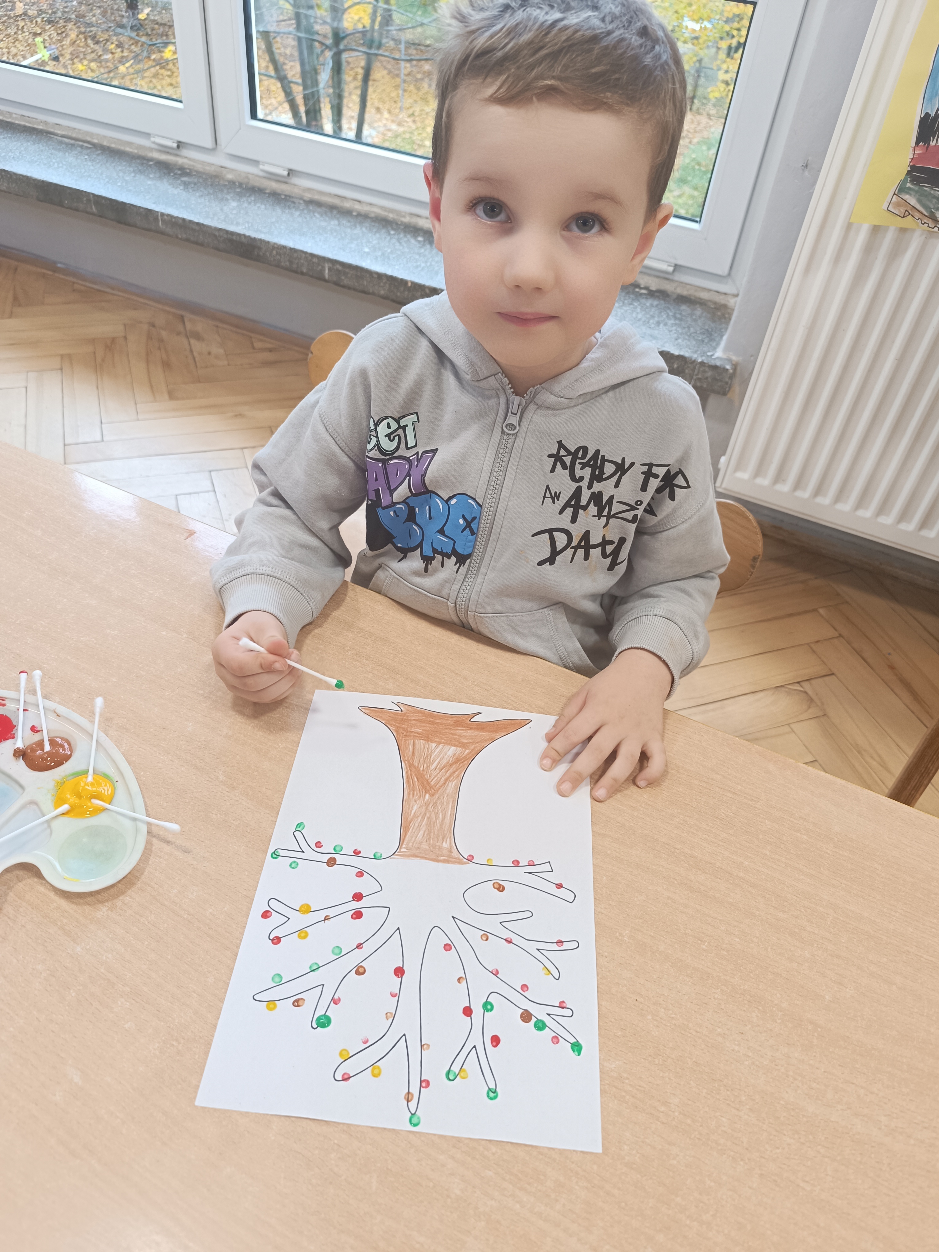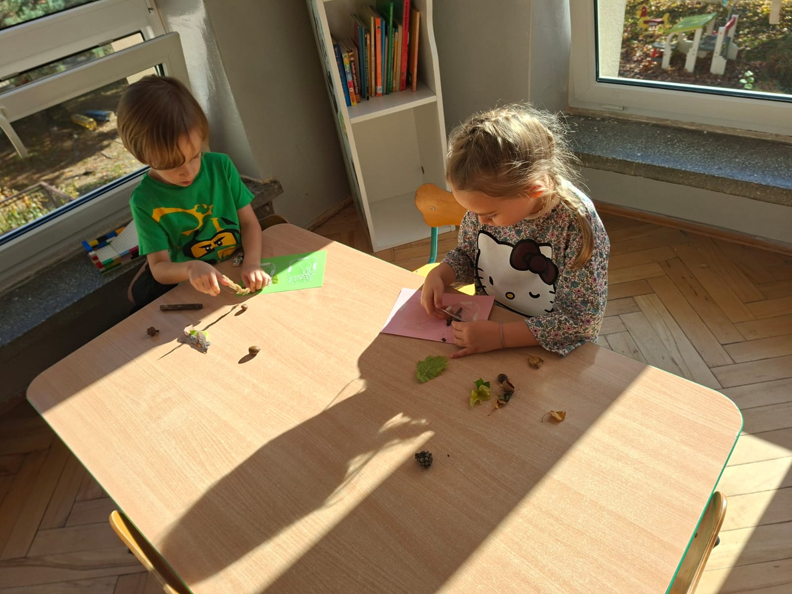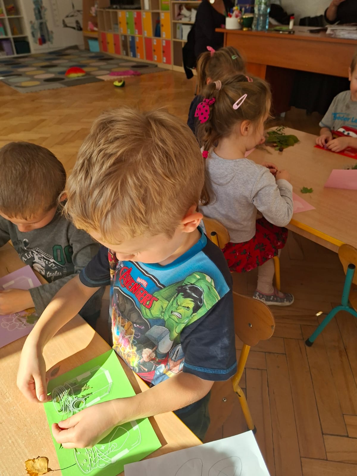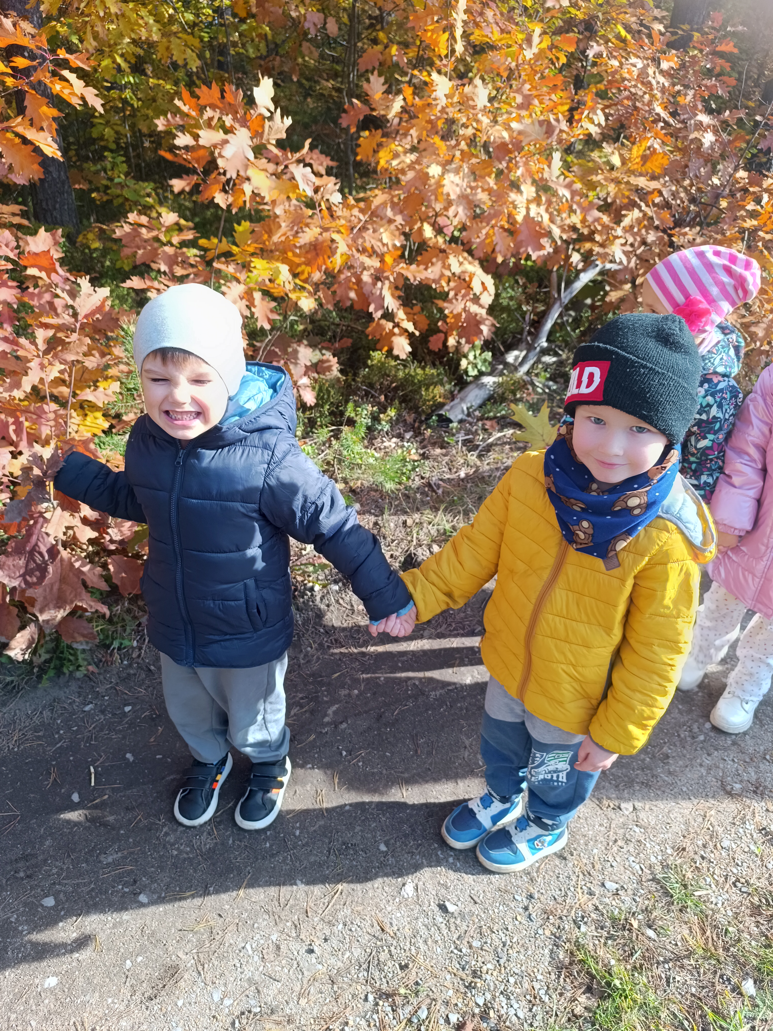 Ten tydzień pozwolił nam na wyjście na spacery, na których zbieraliśmy dary jesieni, zamykając je w naszych słoiczkach przyklejonych do kartek. Było przepięknie!