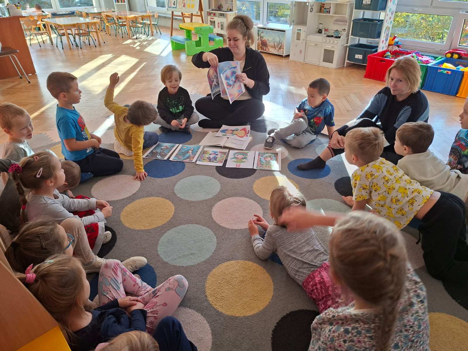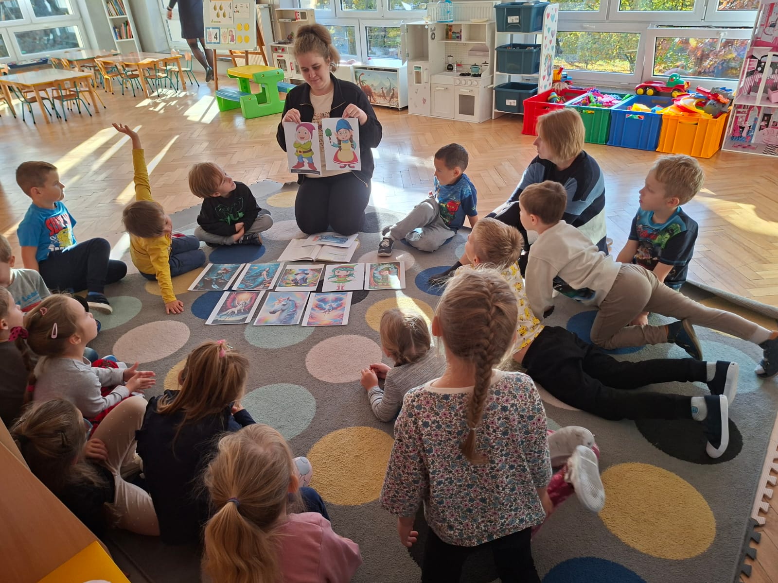 W tym tygodniu również przenieśliśmy się do krainy wyobraźni, mówiąc o koniach, jednorożcach i pegazach, utrwalając przy tym poznaną literkę i cyferkę. Kształtowaliśmy umiejętności logicznego myślenia, uczyliśmy dostrzegać wspólnych cech między zwierzętami, a stworkami z bajek. Wysłuchaliśmy opowiadania D.Gellner " Krasnoludek", które wspólnie omówiliśmy.
