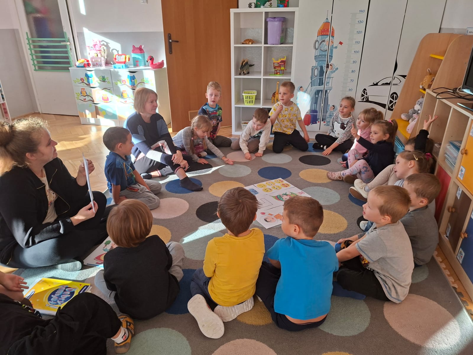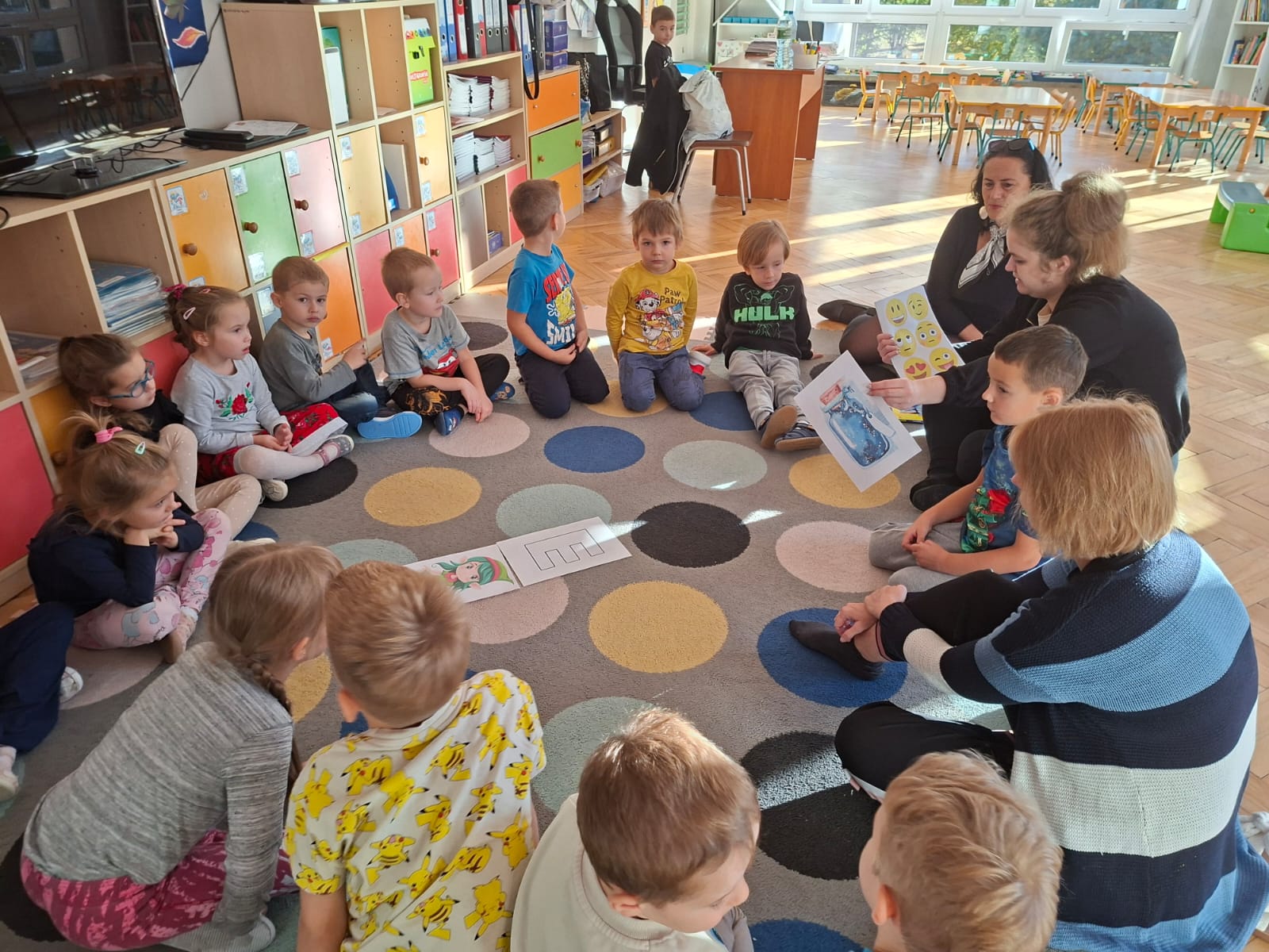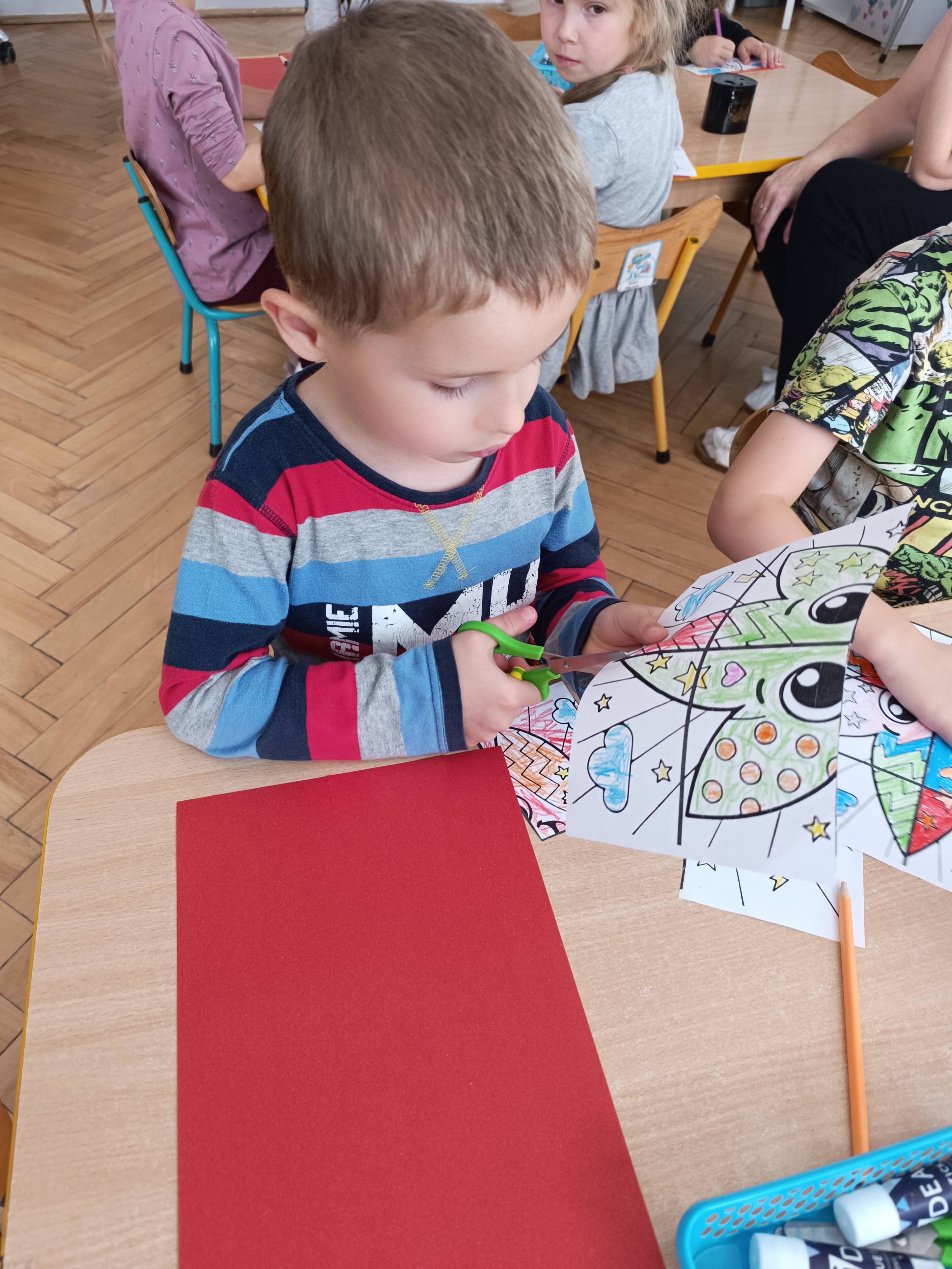 Nasza grupa rozpoczęła ten tydzień od rozmów o strachu, dzieci zapoznały się z nim słuchając opowiadania Marii Pawlisz " Strach ma wielkie oczy", kształtowały umiejętności rozpoznawania emocji innych ludzi, doskonaliły umiejętności radzenia sobie z trudnymi emocjami, uczyliśmy się mówić o swoich emocjach.