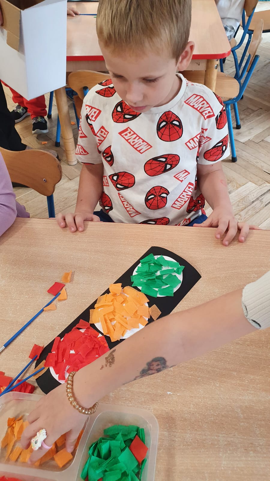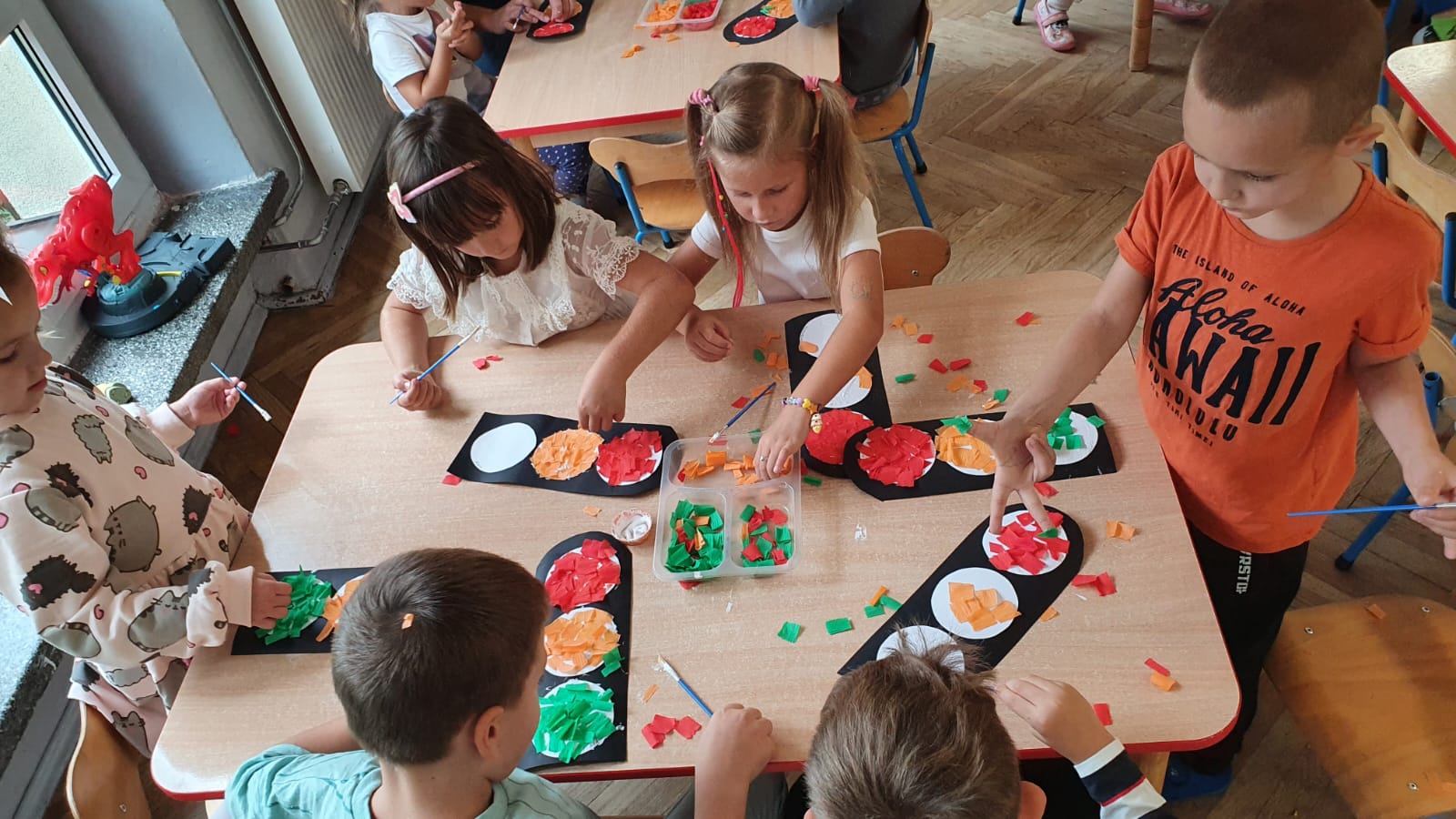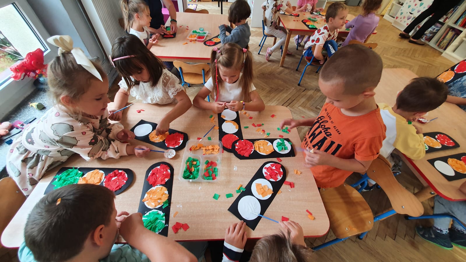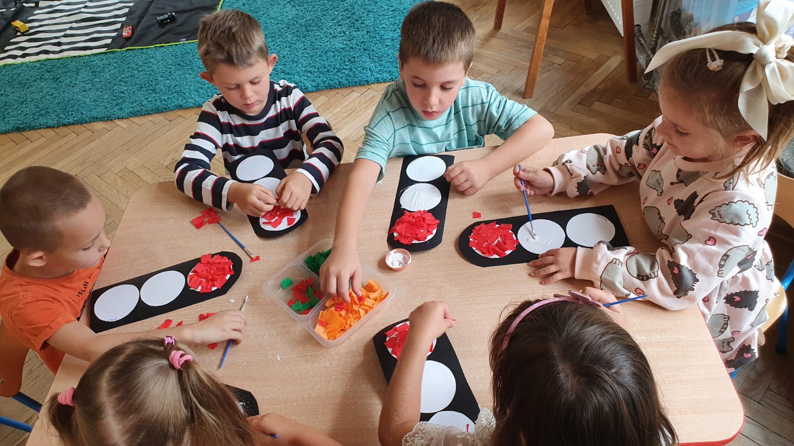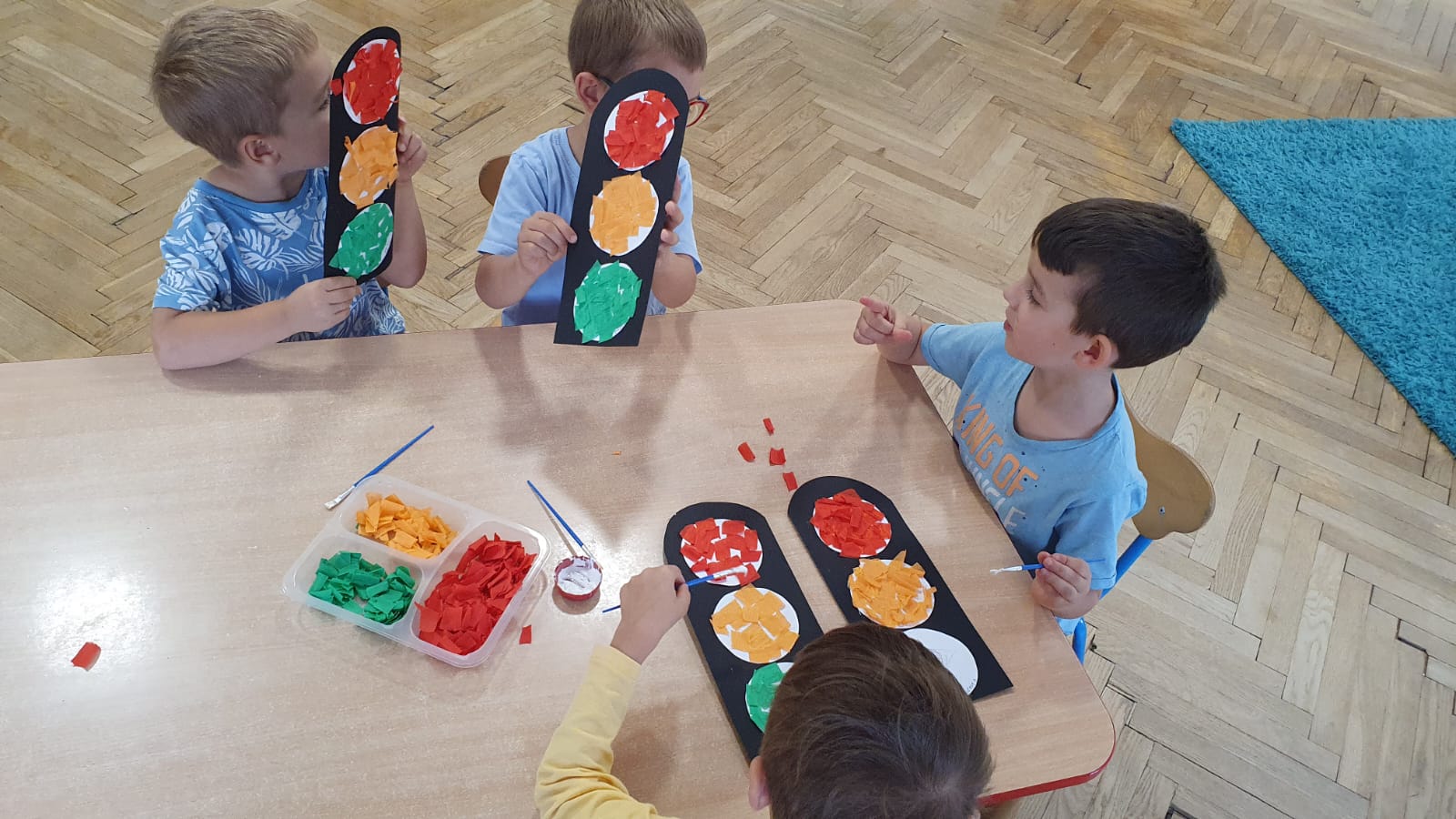 Bardzo chłodny dzień nie pozwolił nam na realizację zajęć w terenie więc stworzyliśmy w sali warunki w których mogliśmy utrwalić wiedzę i zdobyć nowe wiadomości na temat bezpieczeństwa podczas spaceru.Poprzez zabawę ,symulowanie ruchu drogowego dzieciaki uczyły sie przechodzic przez jezdnię, ropoznawać ważne dla nich znaki drogowe.Pamiętamy o kamizelkach odblaskowych,zastosowaniu różnirodnych odblasków podczas wieczornych spacerków.Zabawy z piosenką utrwaliły przedszkolakom numer alarmowy 112. Jak tylko pogoda pozwoli wybierzemy się na spacer by sprawdzić naszą wiedzę na prawdziwym przejściu dla pieszych.