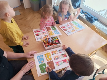 Nie zabrakło w tym tygodniu zabaw ruchowych, ćwiczeń gimnastycznych, prac plastyczno - technicznych oraz pracy z kartami pracy.
