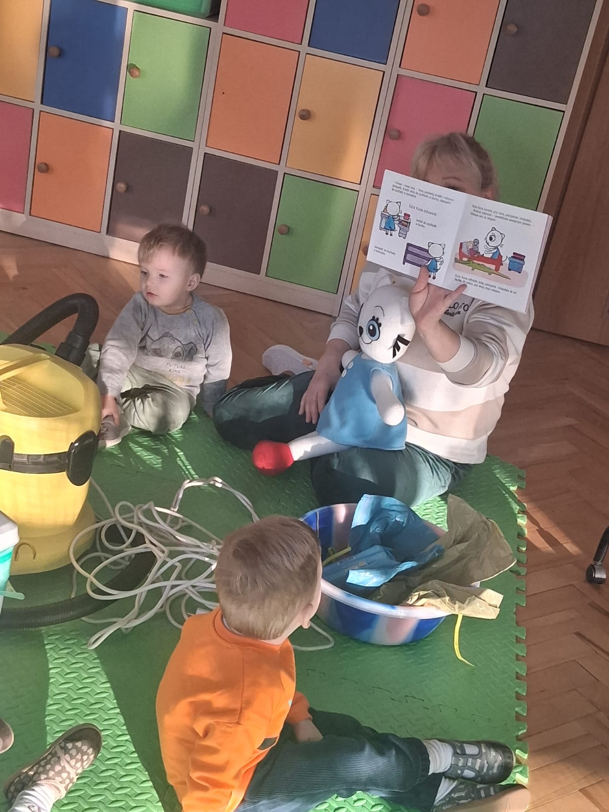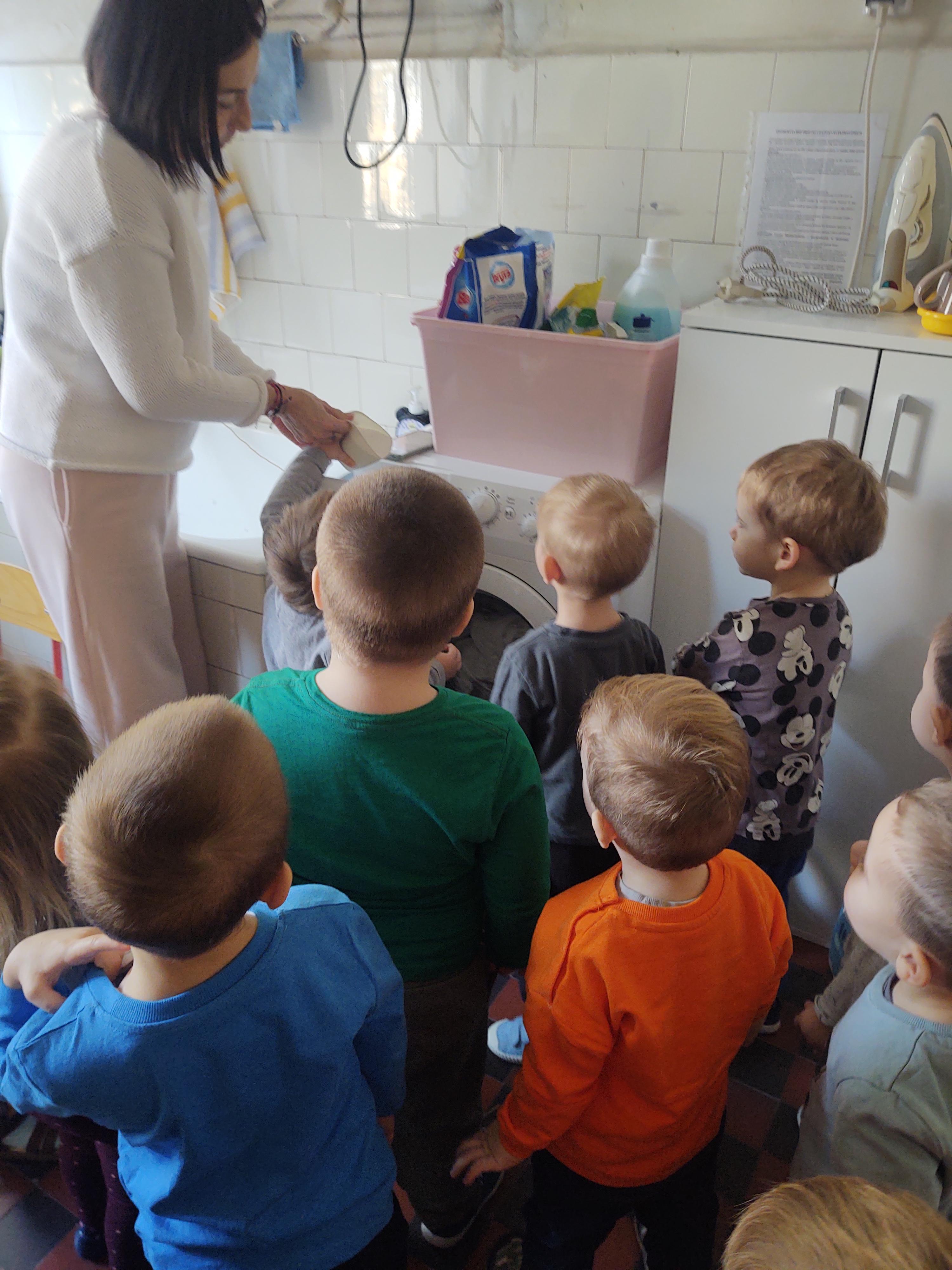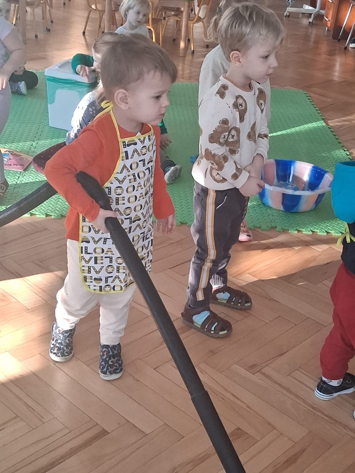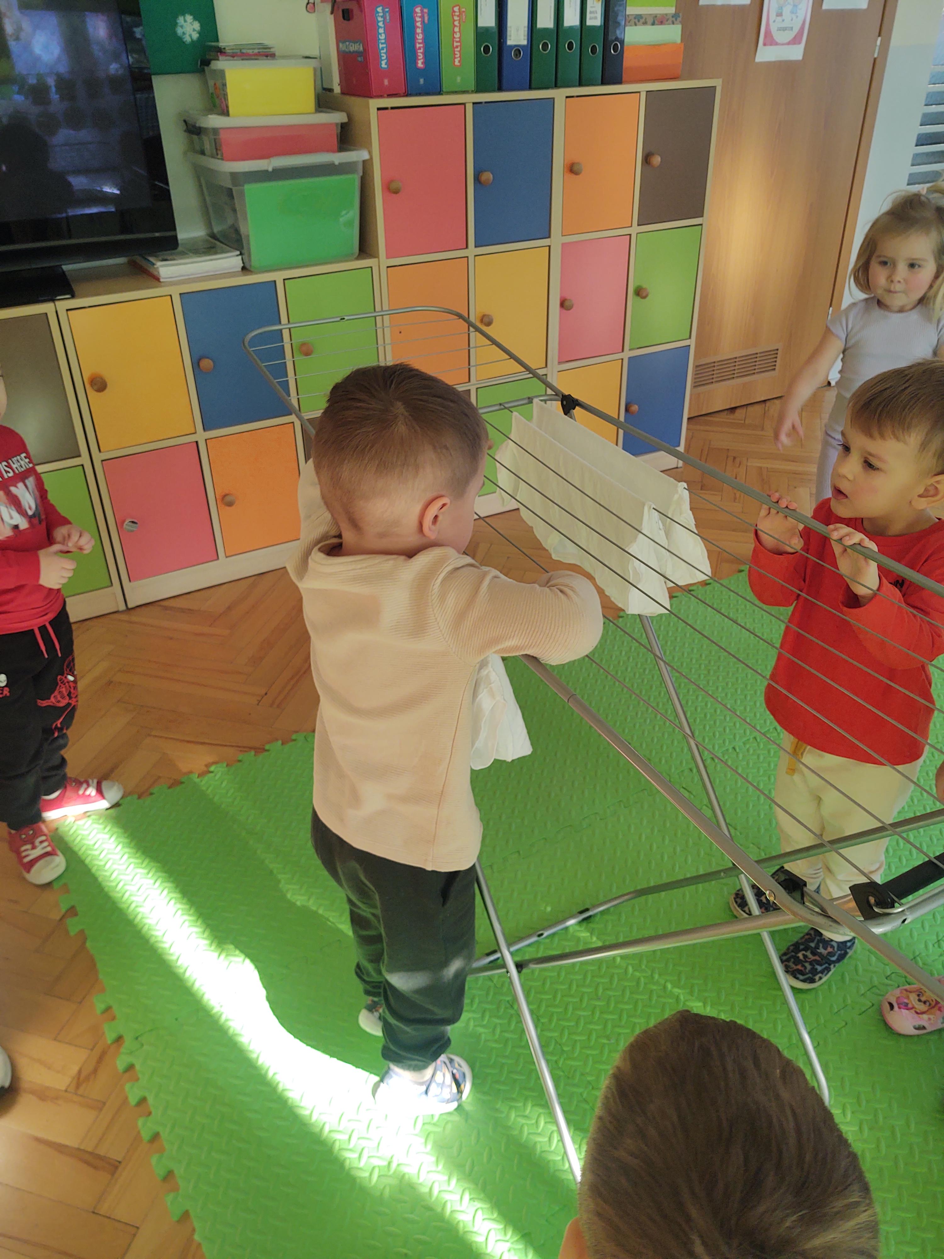 Zaczęliśmy od piosenki „Pstryk- pyk”, zabaw ruchowych „Zabawki na baterie” i „Domowe sprzęty elektryczne”, zagadek „Mam na myśli…”, ćwiczeń ortofonicznych „Urządzenia techniczne” oraz zabawy językowej „Różne sprzęty”.