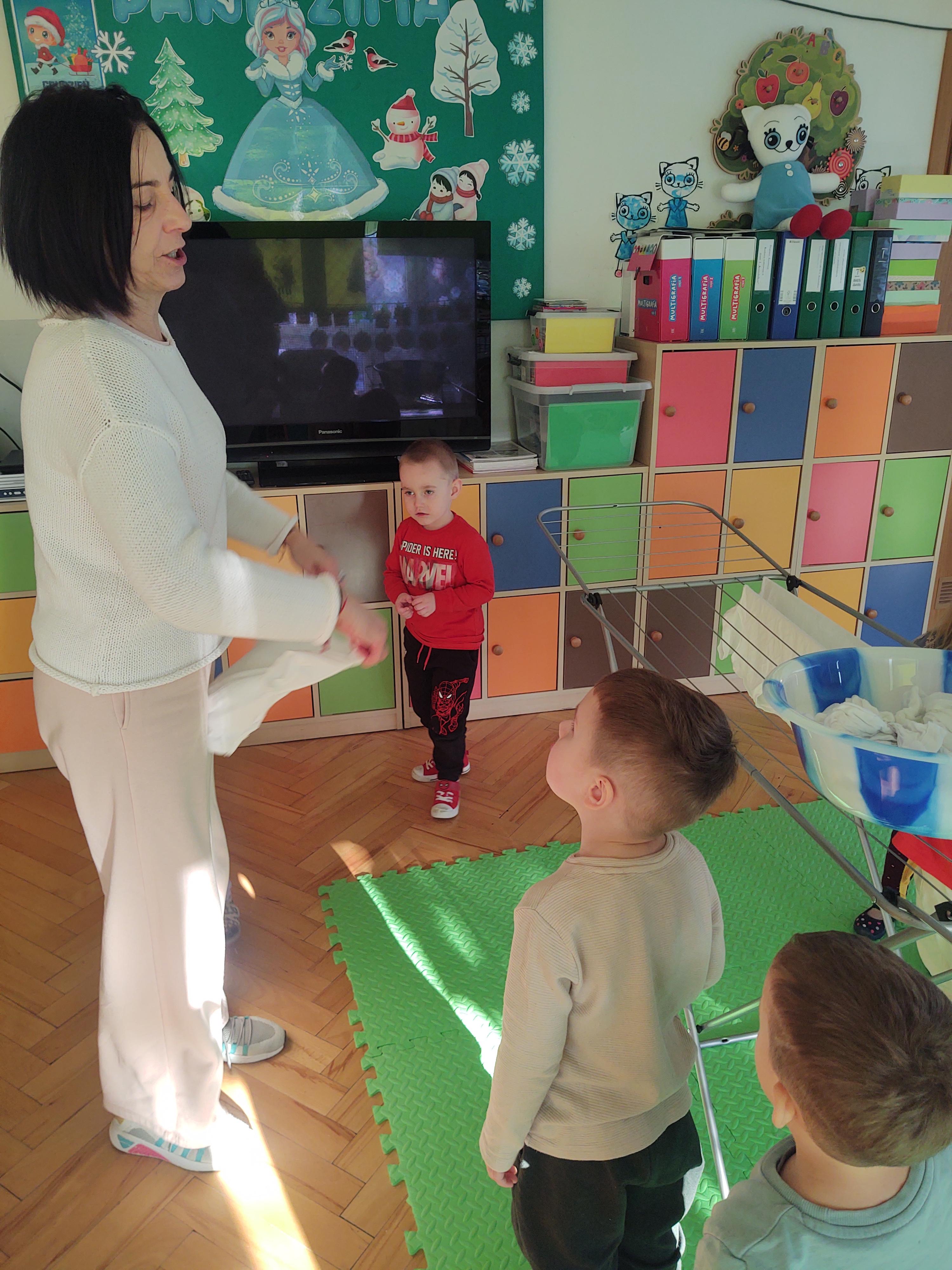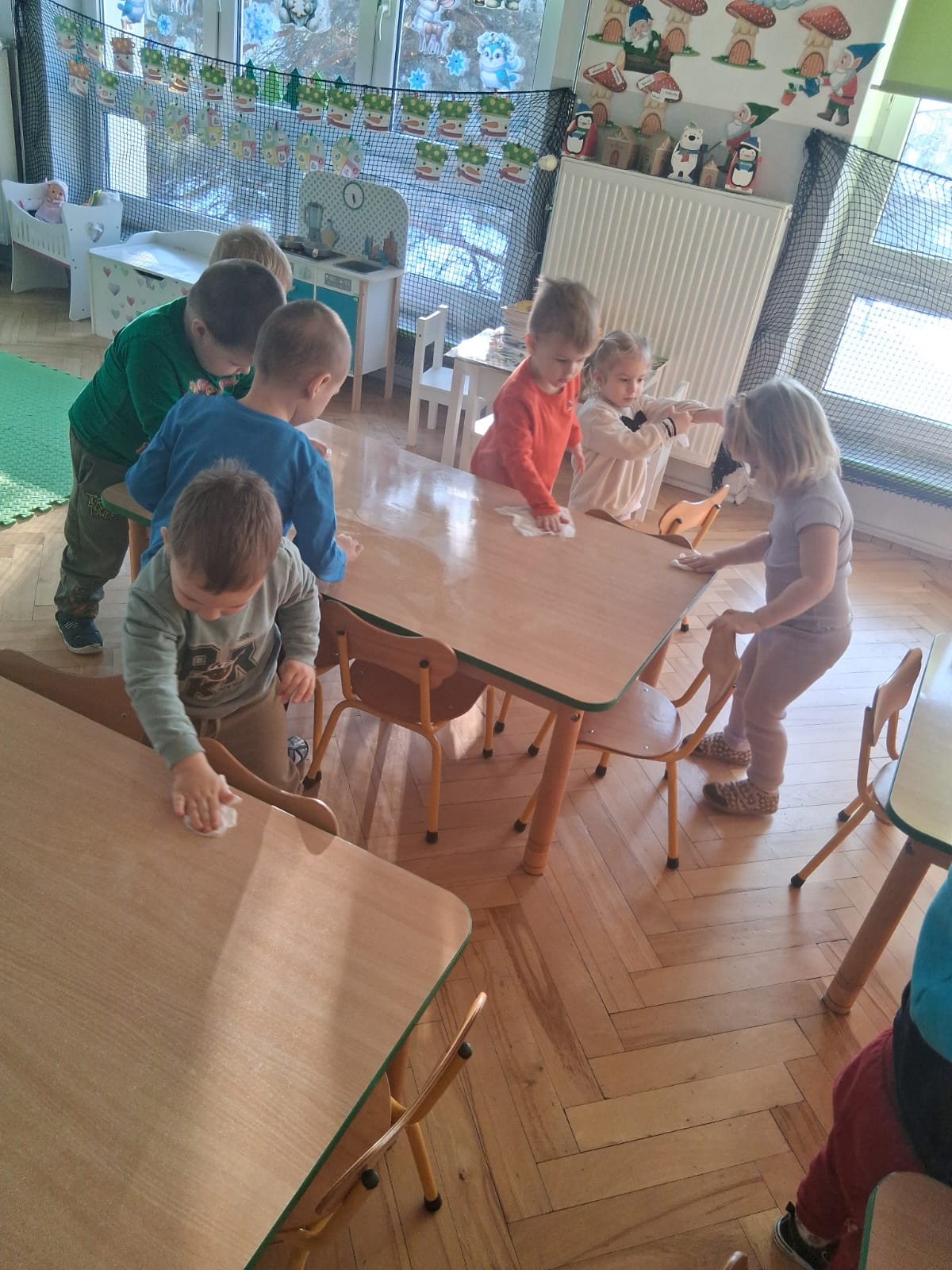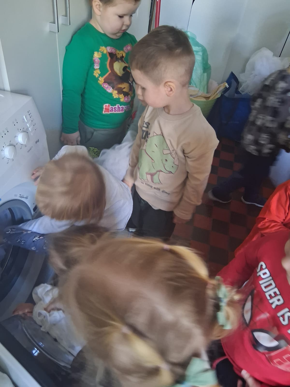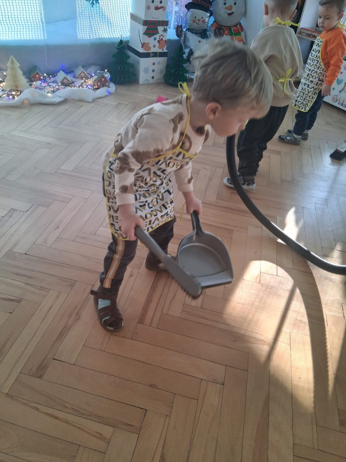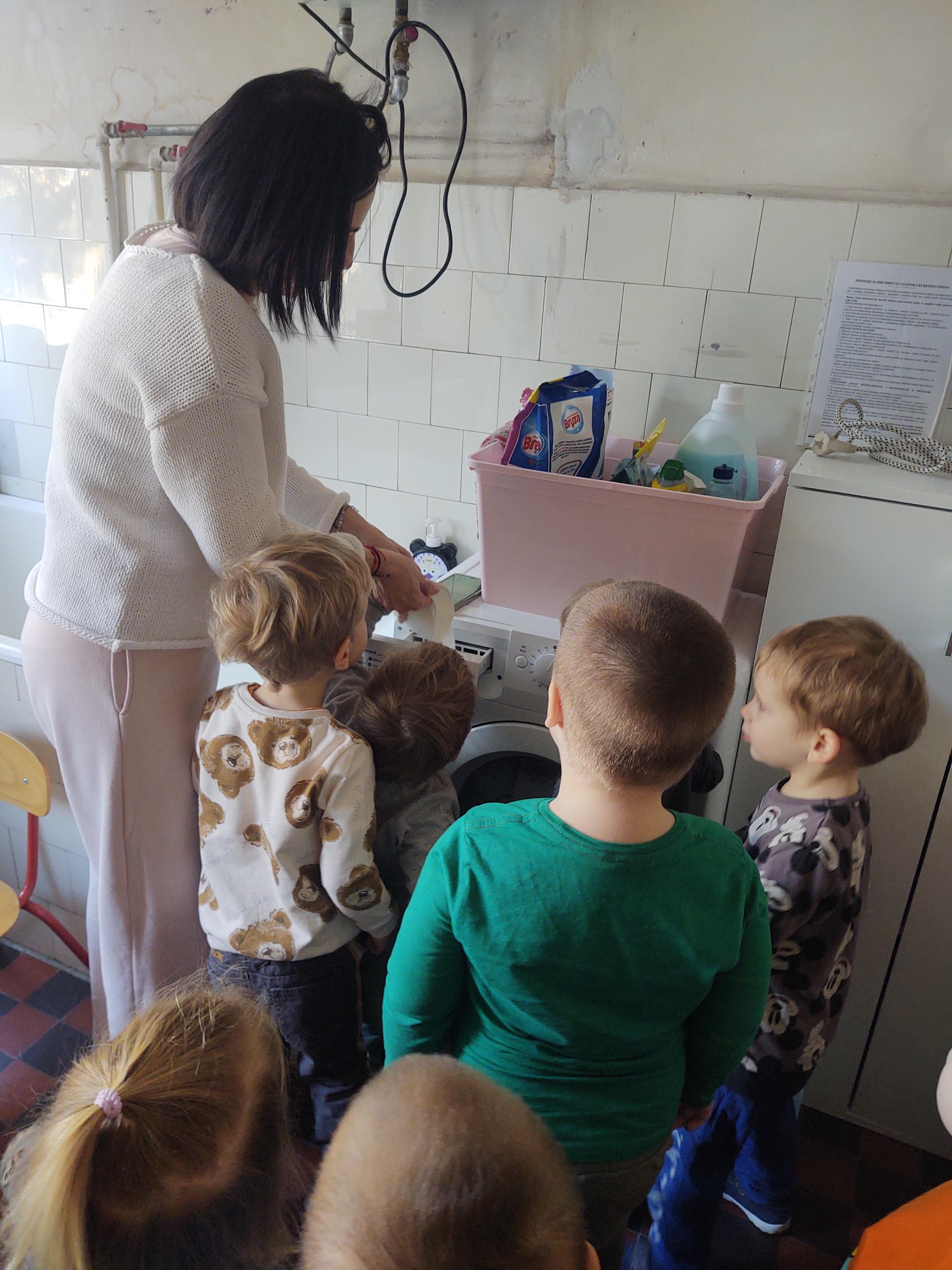 Zaczęliśmy od piosenki „Pstryk- pyk”, zabaw ruchowych „Zabawki na baterie” i „Domowe sprzęty elektryczne”, zagadek „Mam na myśli…”, ćwiczeń ortofonicznych „Urządzenia techniczne” oraz zabawy językowej „Różne sprzęty”.