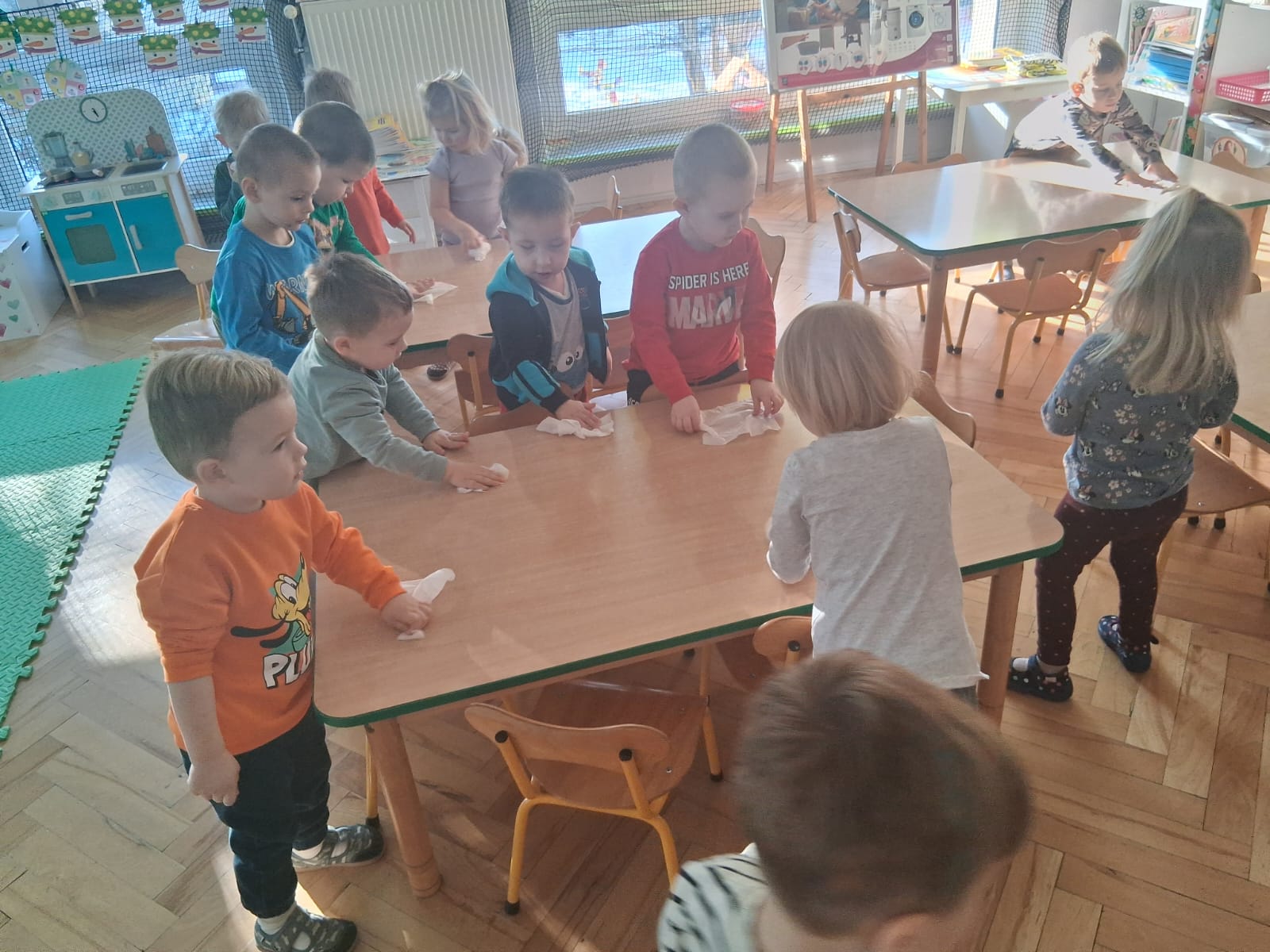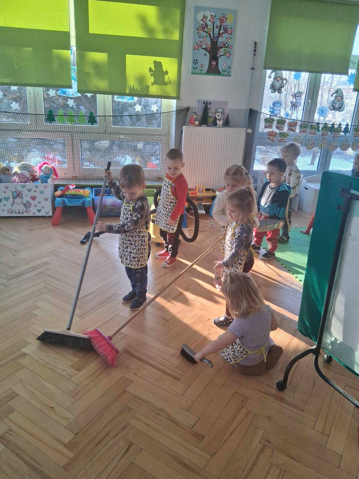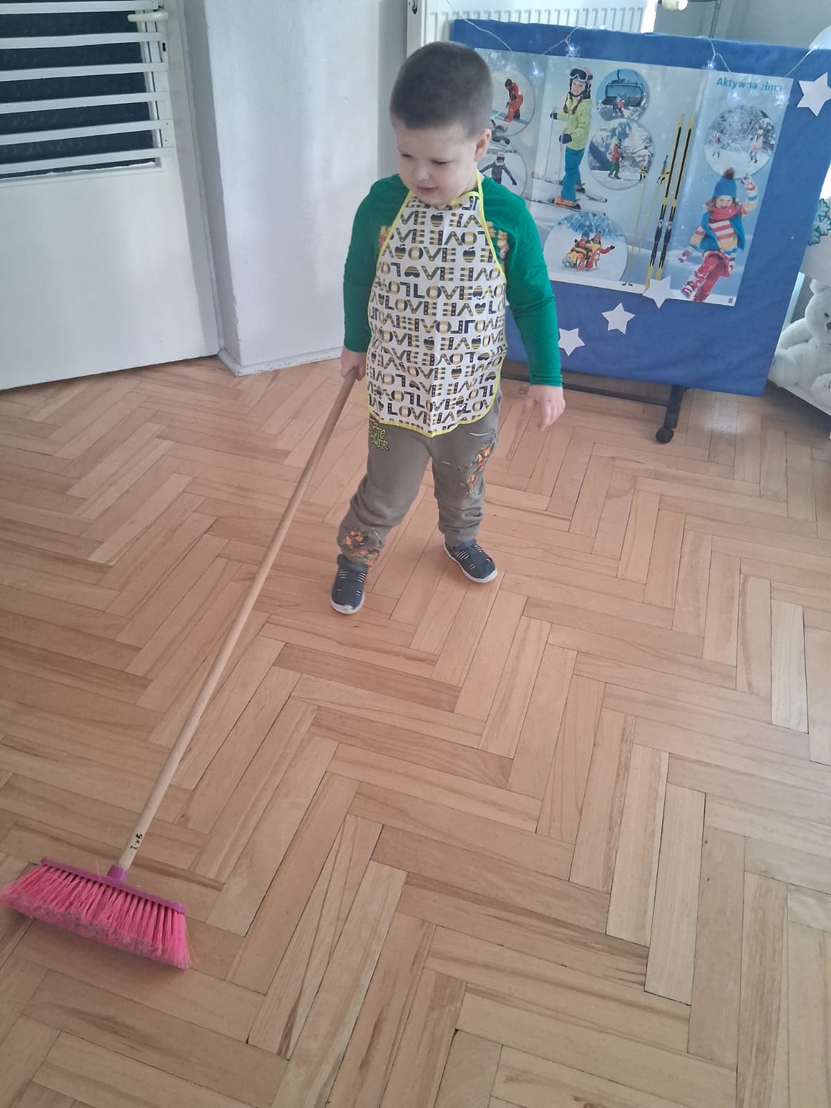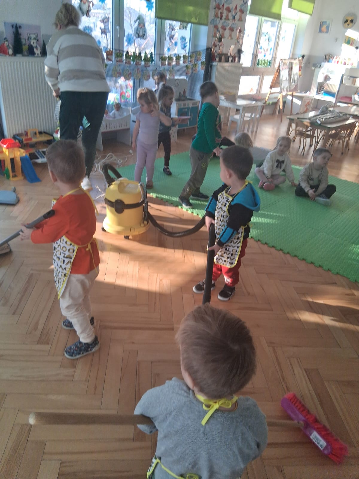 Później rozmawialiśmy na temat różnych robotów ułatwiających codzienne życie (zabawa językowa „Co one robią?”, zabawa ruchowa „Tropimy, poszukujemy”) oraz środków transportu (zabawa ruchowo-słuchowa „Pojazdy”, zabawa tematyczna „O jakim pojeździe mówię?”, praca plastyczno-konstrukcyjna „Mój wymarzony pojazd”).