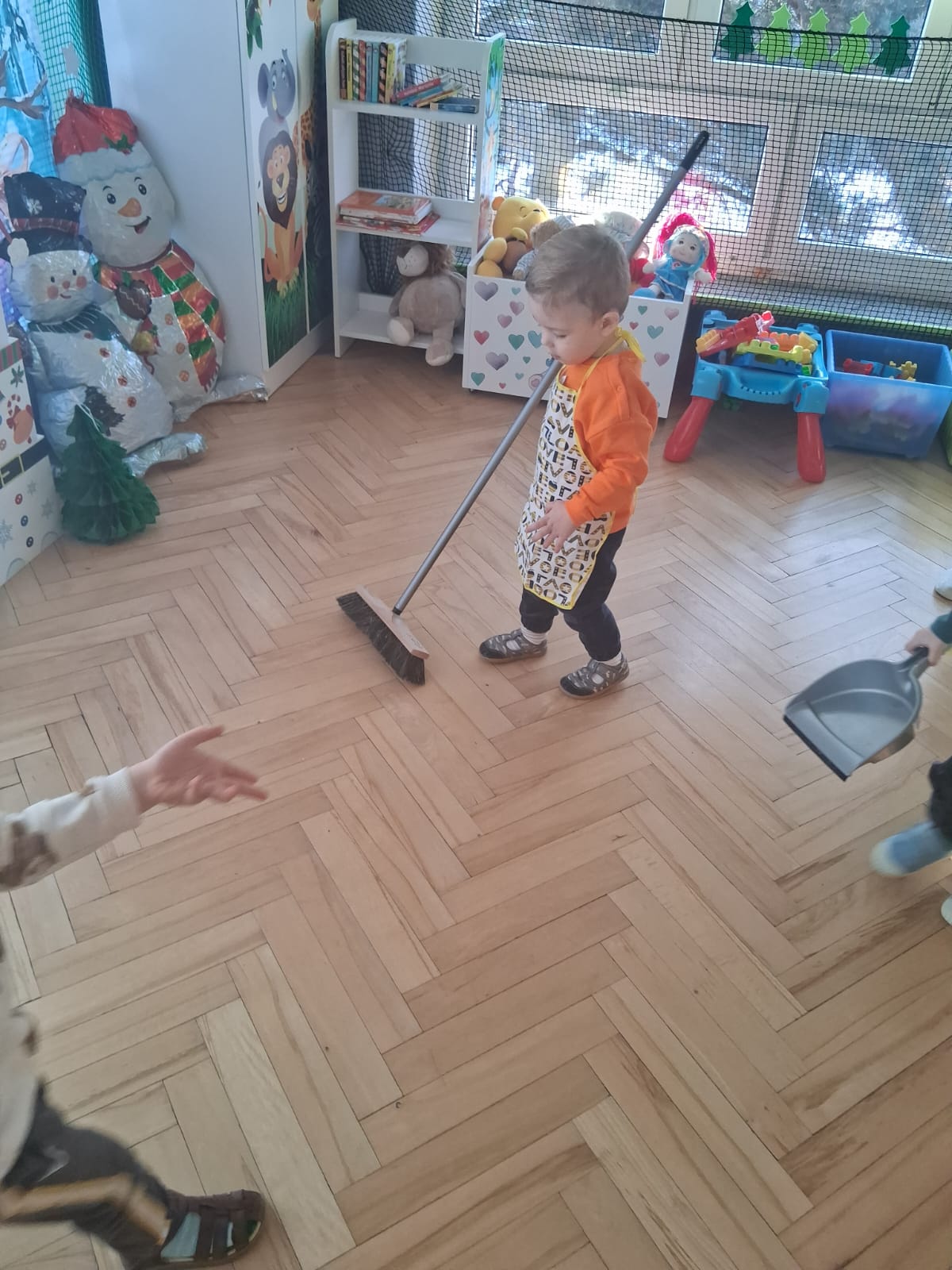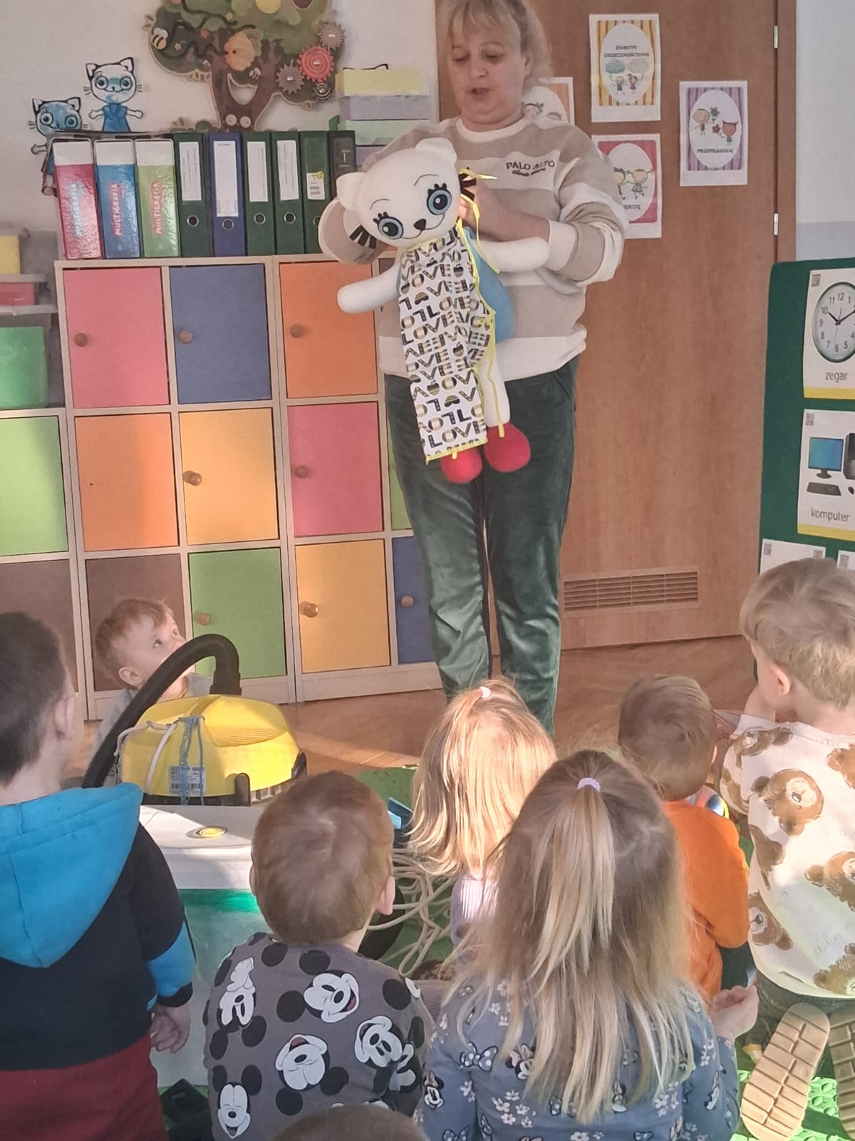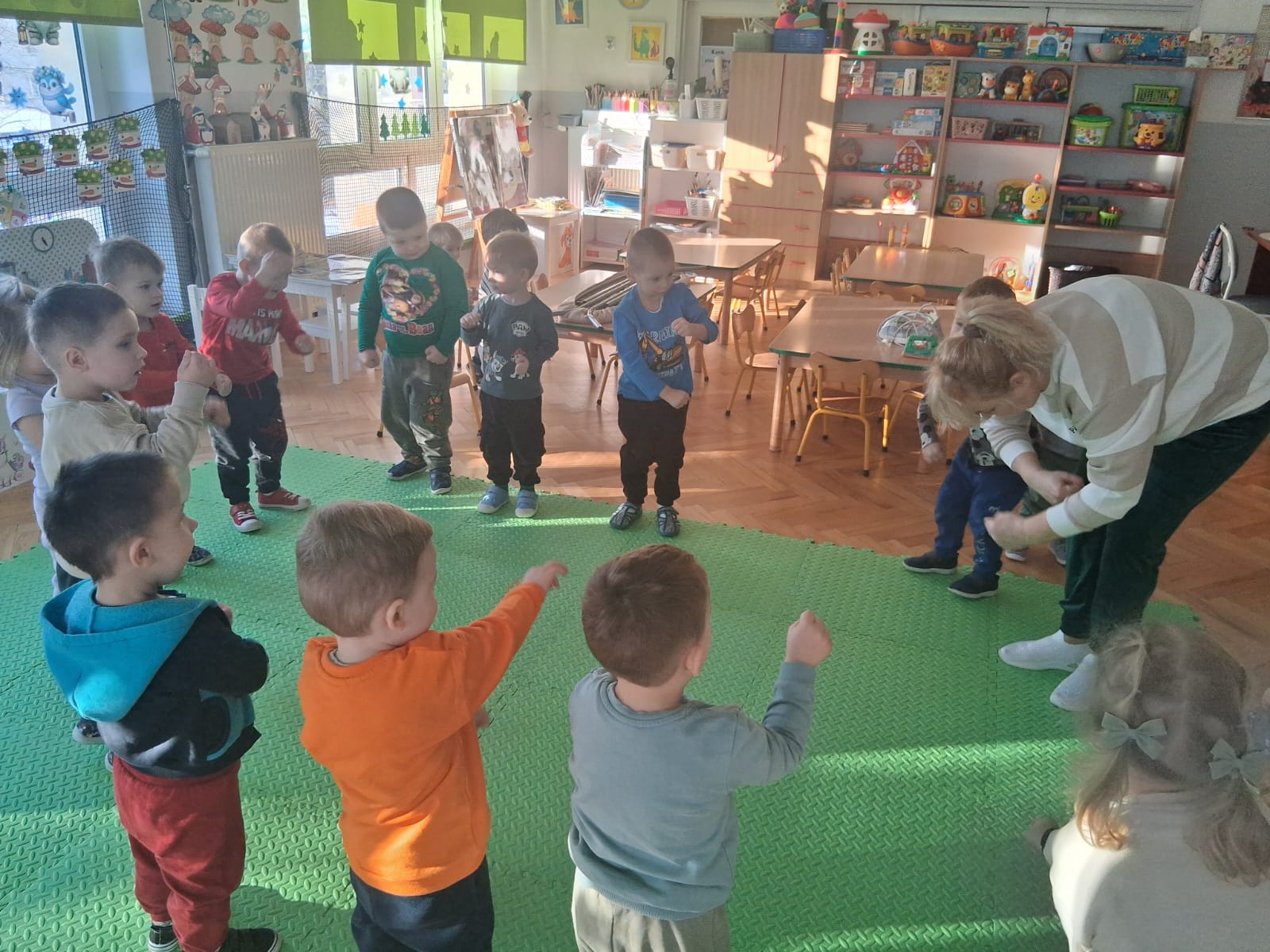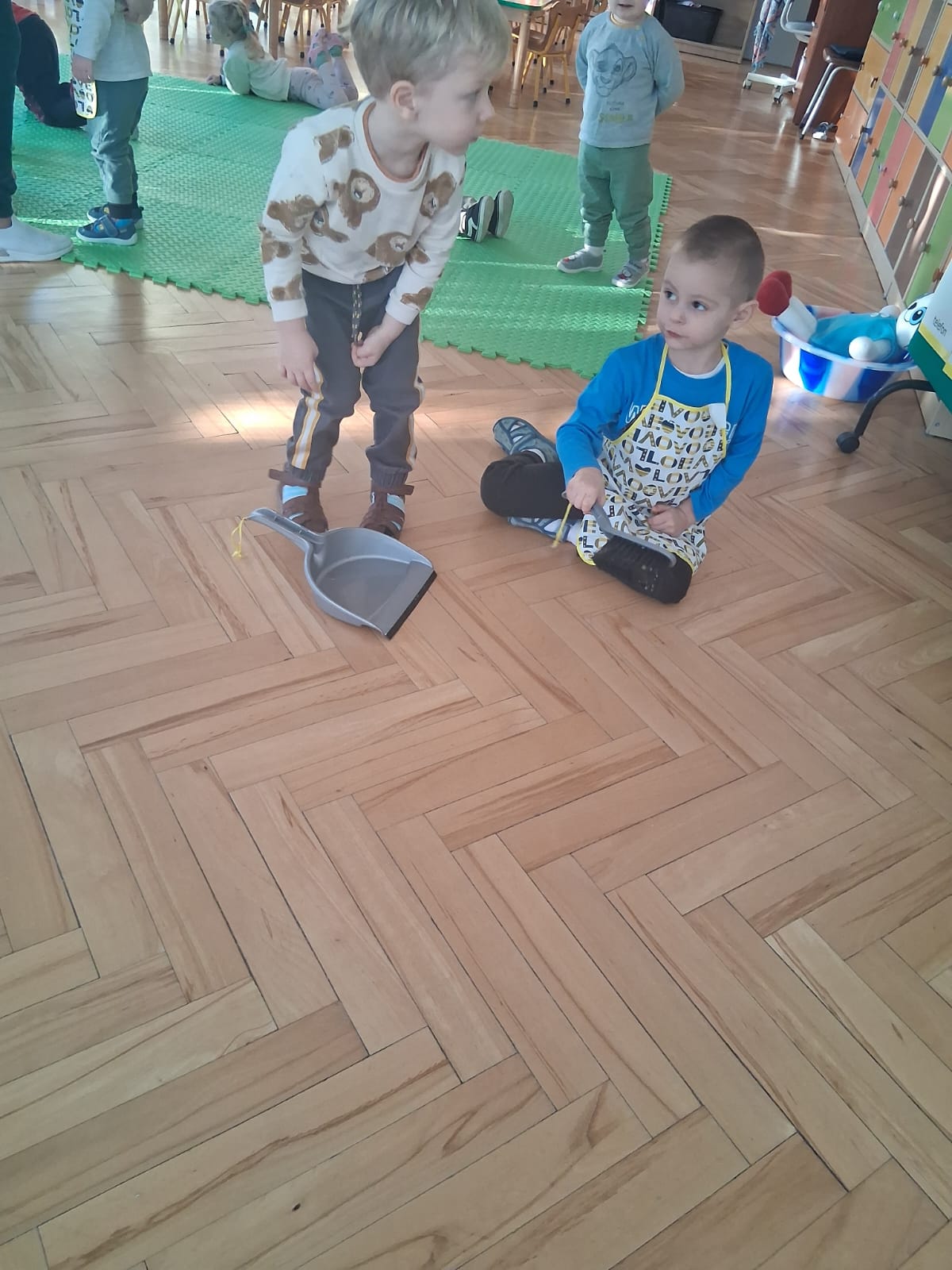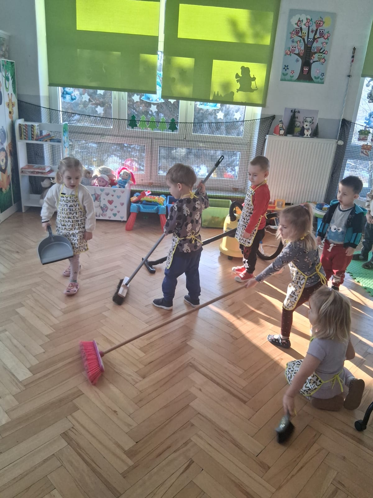 Później rozmawialiśmy na temat różnych robotów ułatwiających codzienne życie (zabawa językowa „Co one robią?”, zabawa ruchowa „Tropimy, poszukujemy”) oraz środków transportu (zabawa ruchowo-słuchowa „Pojazdy”, zabawa tematyczna „O jakim pojeździe mówię?”, praca plastyczno-konstrukcyjna „Mój wymarzony pojazd”).
