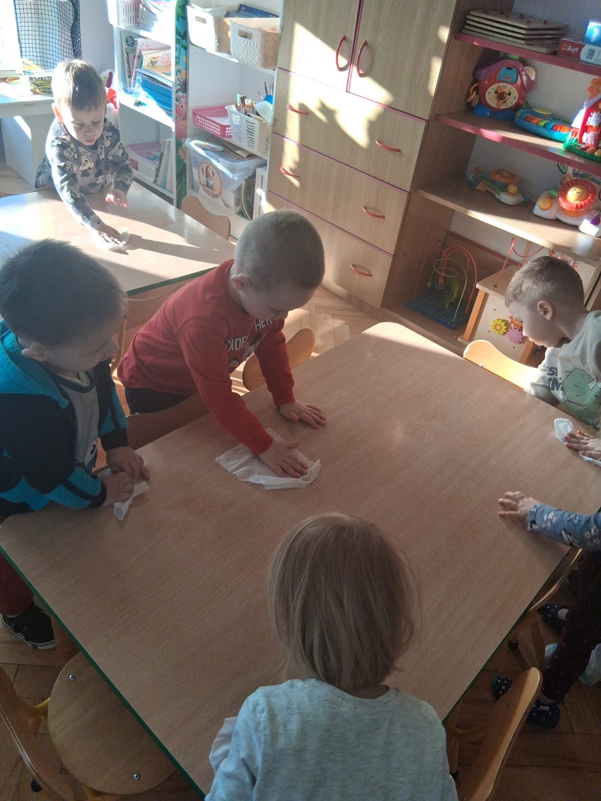 Zajęliśmy się też kodowaniem symboli (zabawa tematyczna „Sterowanie odkurzaczem”, zabawa matematyczna „Ułóż robota”, zabawa konstrukcyjna „Samochody z figur”, zabawa matematyczna „Zakodowane dłonie”). Mieliśmy też czas na tworzenie robotów – z figur geometrycznych oraz wyprawki plastycznej. To był bardzo pracowity tydzień!