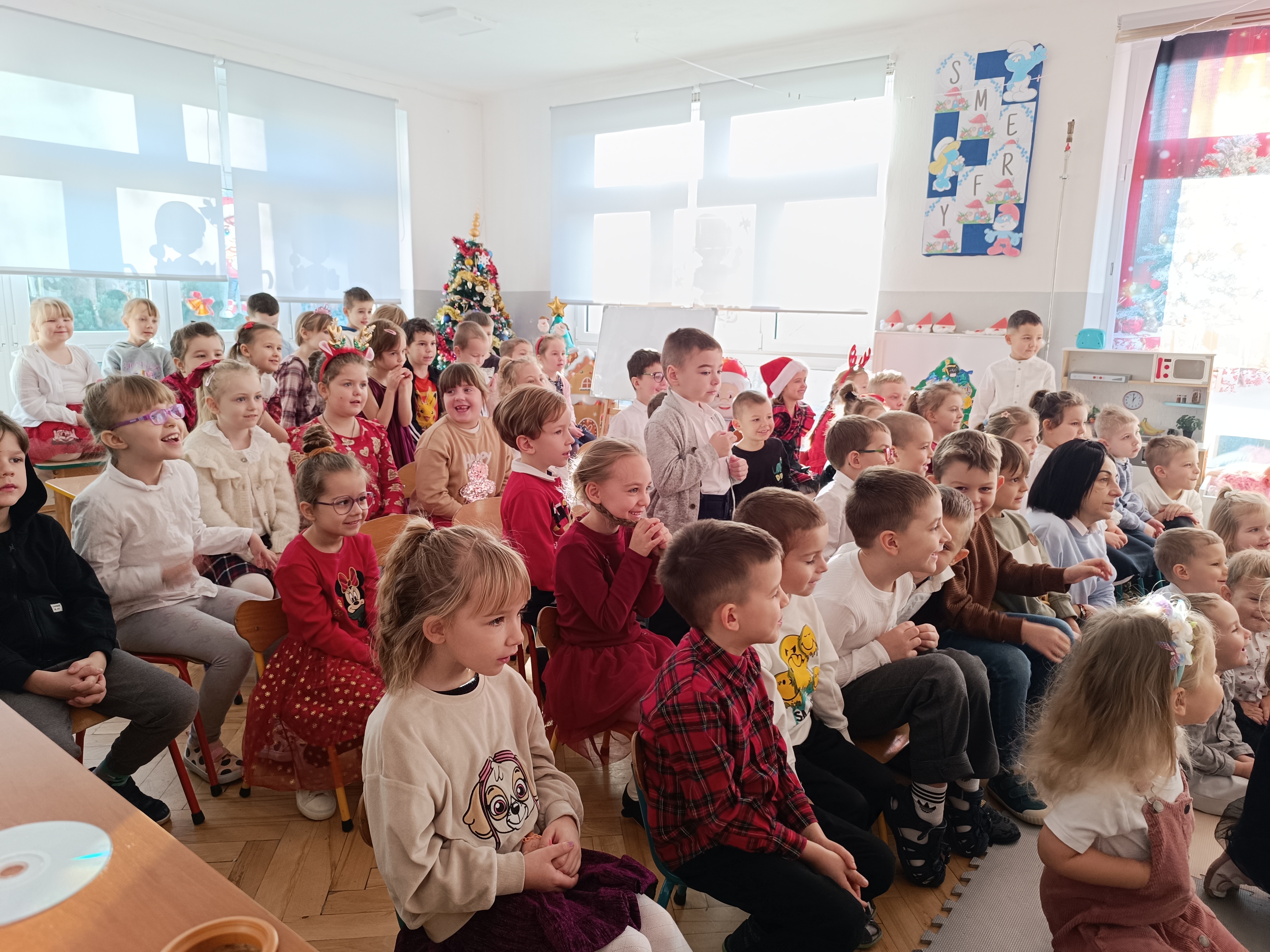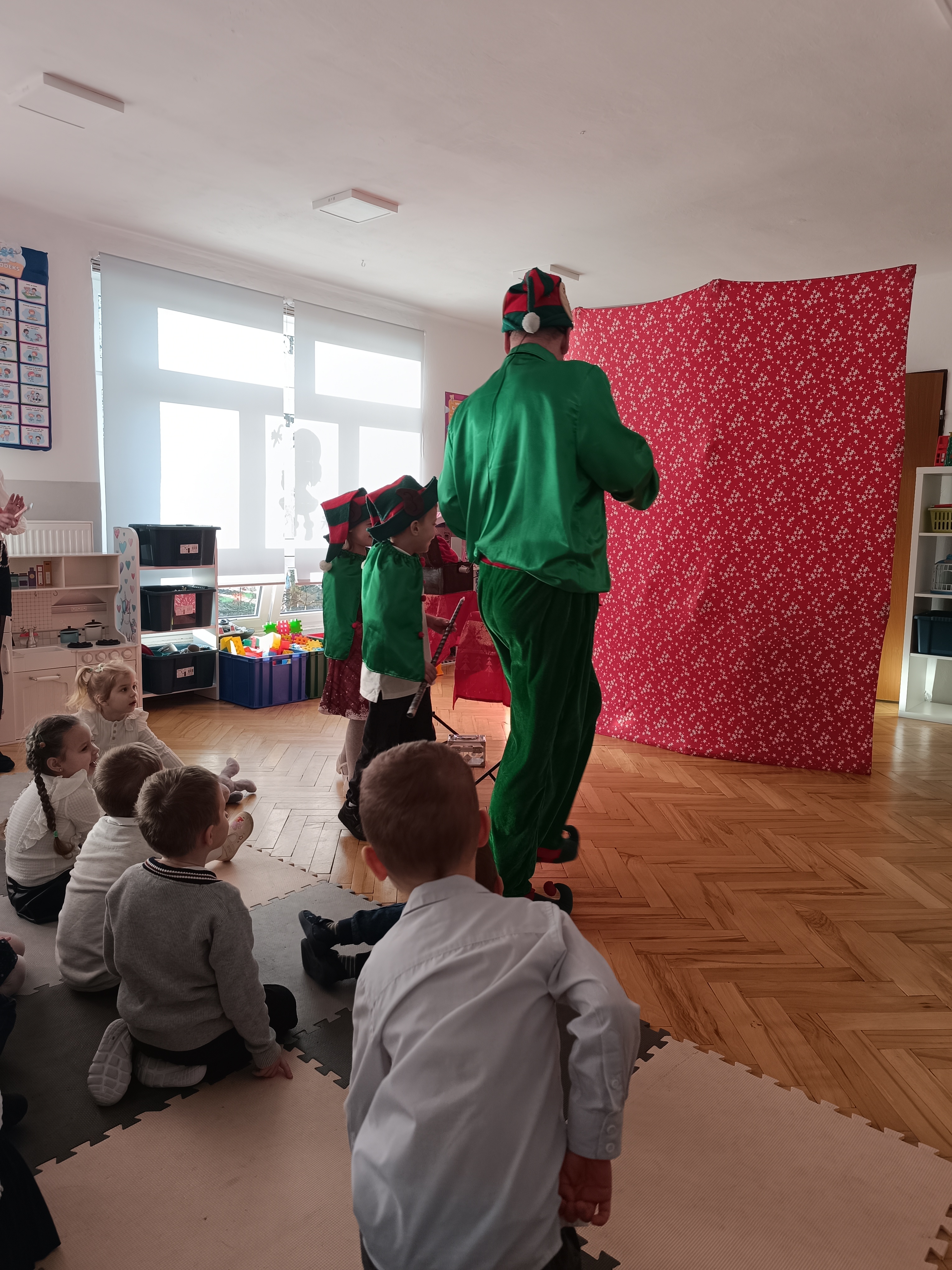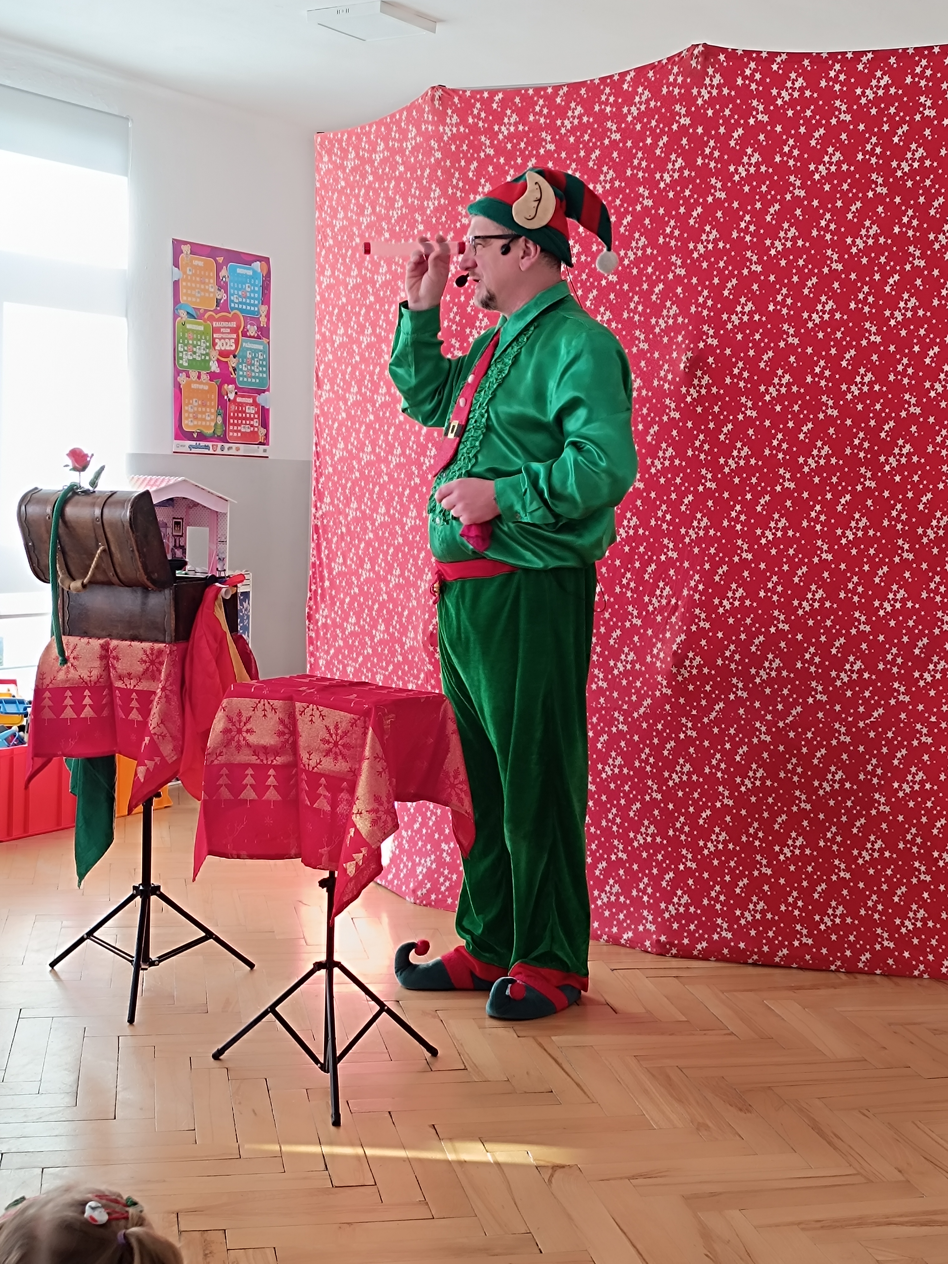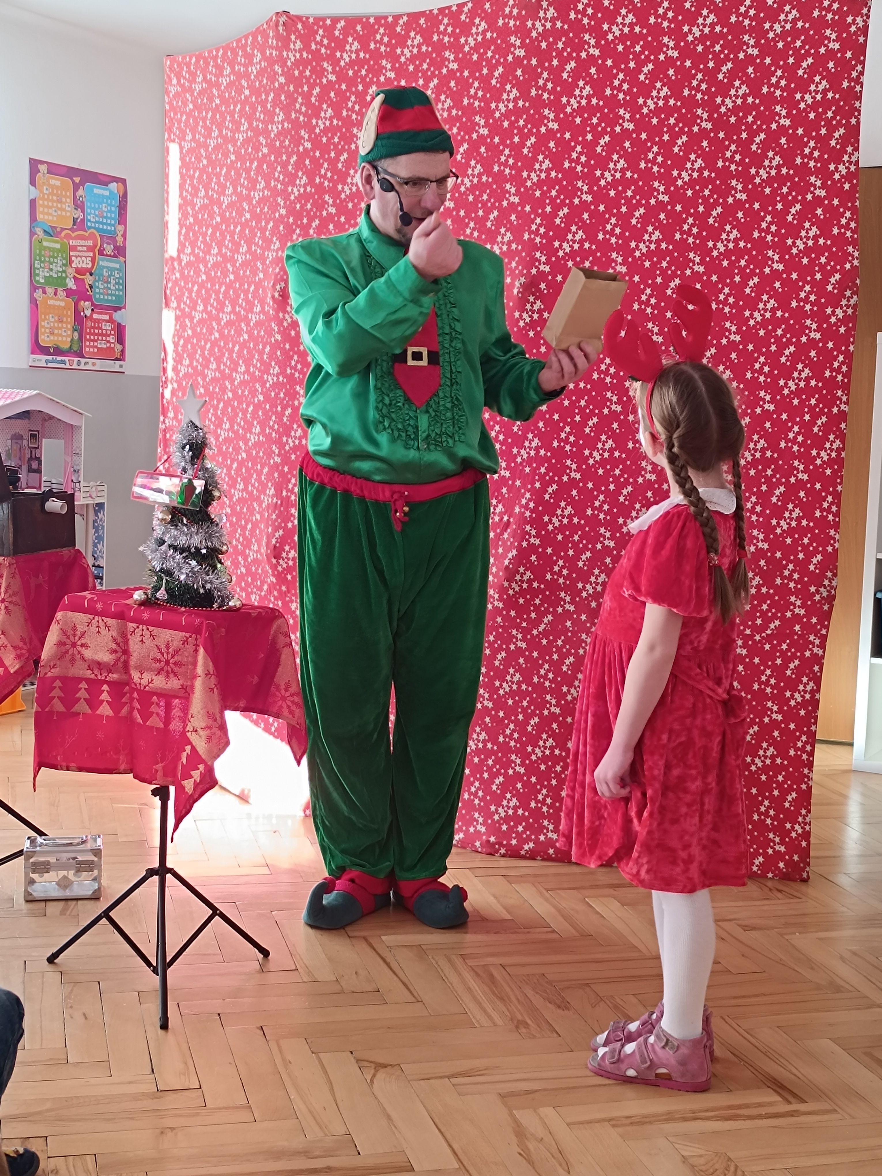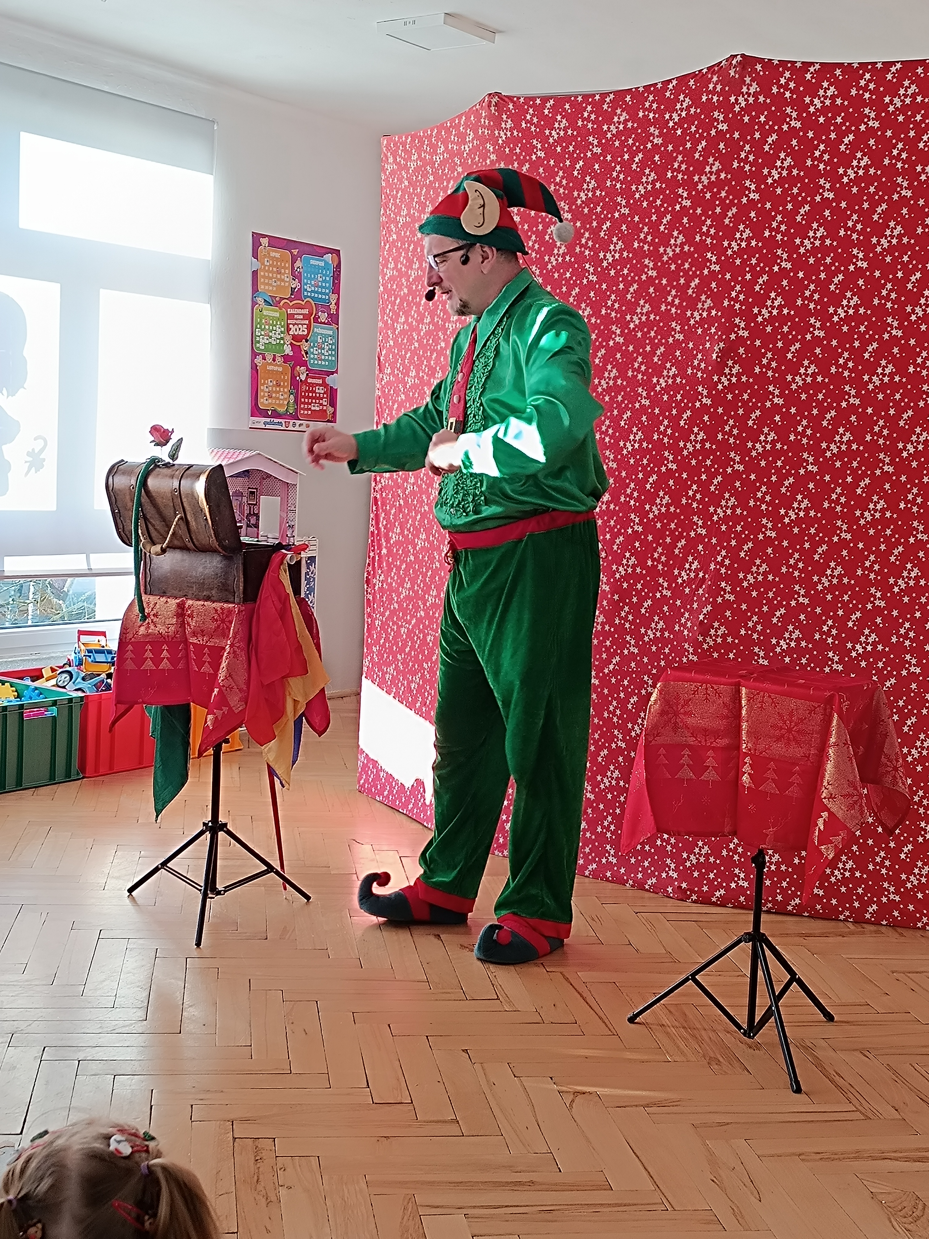 Na scenie działy się rzeczy niezwykłe, a wszystko dotyczyło tematu świąt! Sztuczki magiczne zapierały dech w piersiach i wywoływały zachwyt na twarzach naszych przedszkolaków. W magiczny sposób pojawiały się i znikały przedmioty, przemieszczała się róża, tajemnicze chustki zmieniały się w różdżki. Dzieci wypowiadały za czarodziejem magiczne zaklęcia, a wybrani asystenci osobiście brali udział w magicznych sztuczkach, czarując ozdoby na choinkę i prezenty pod nią.