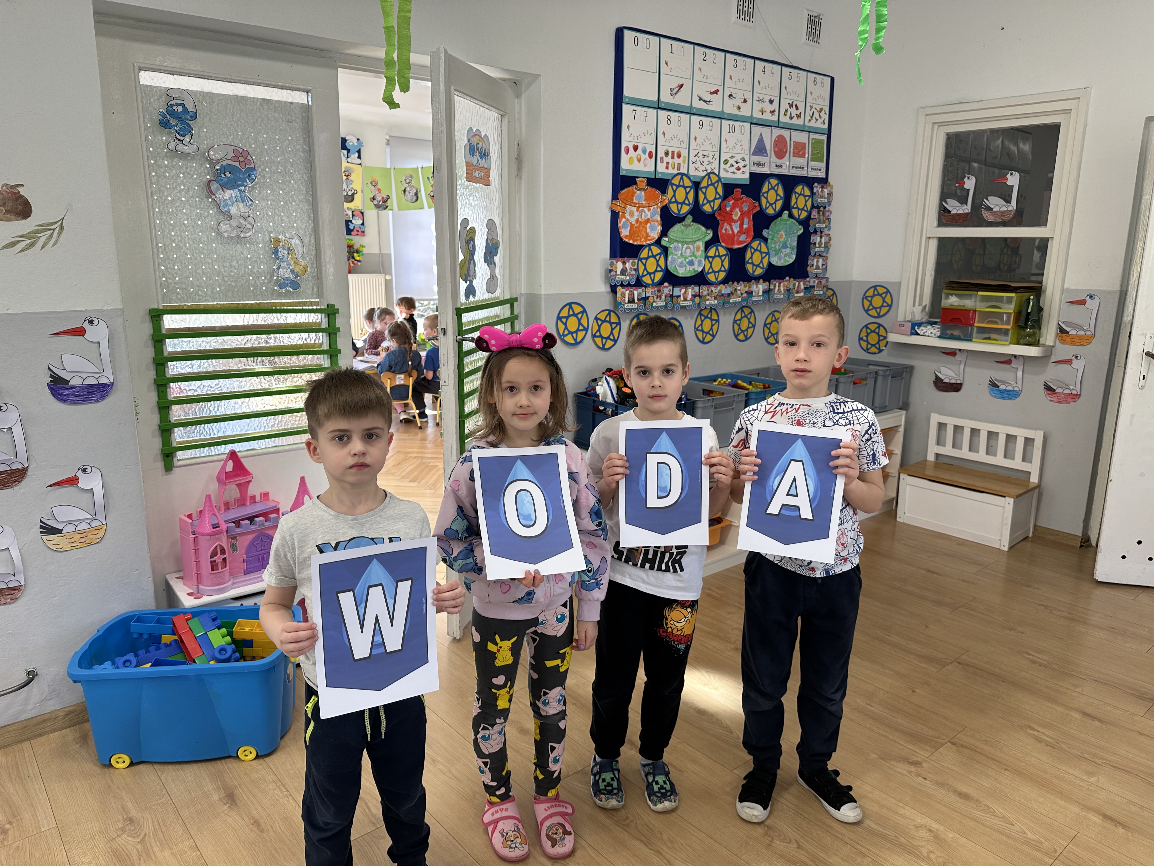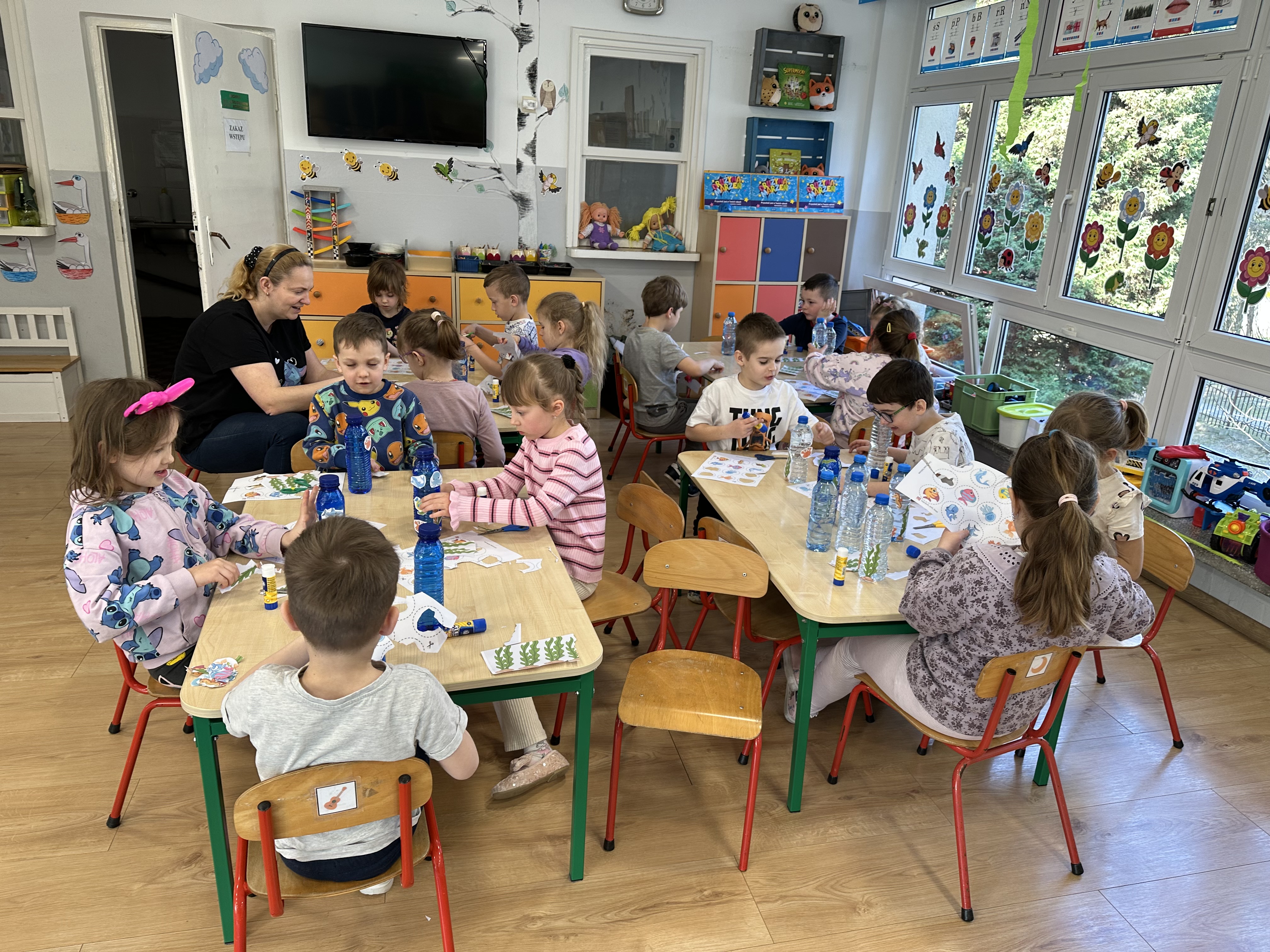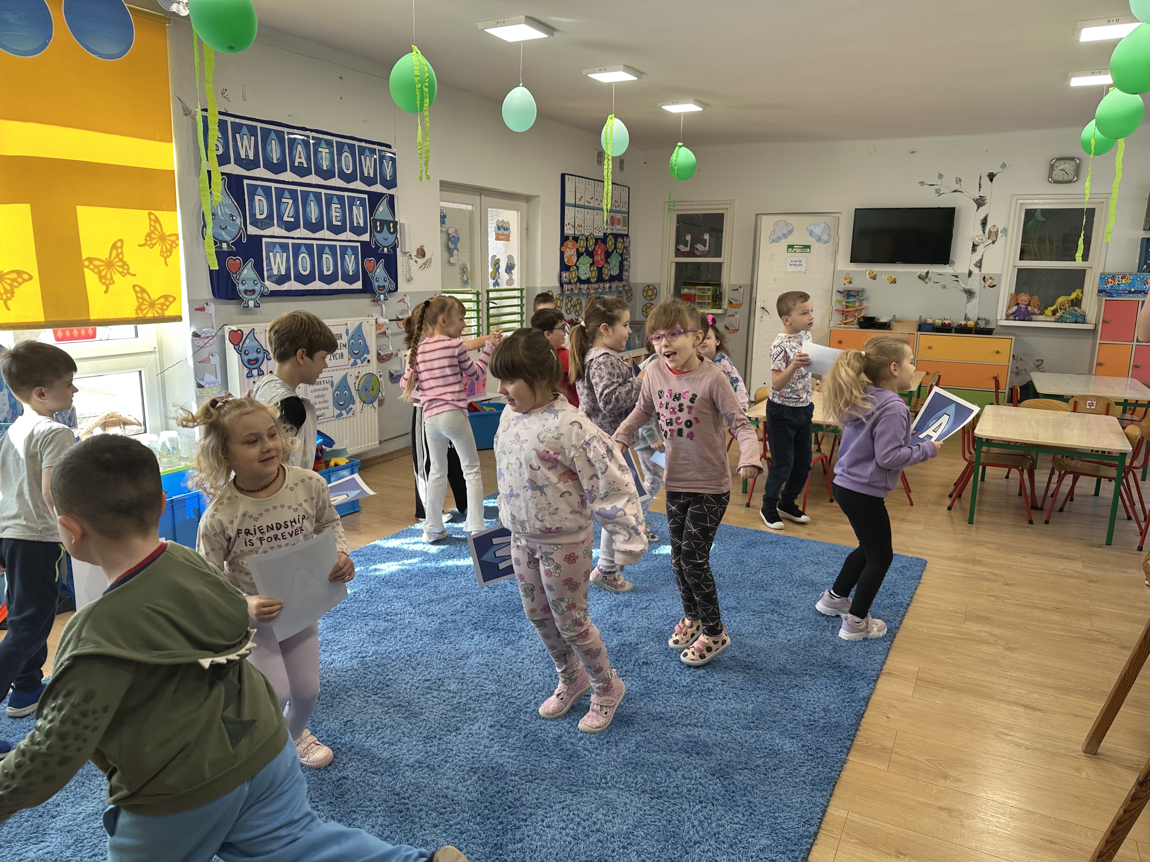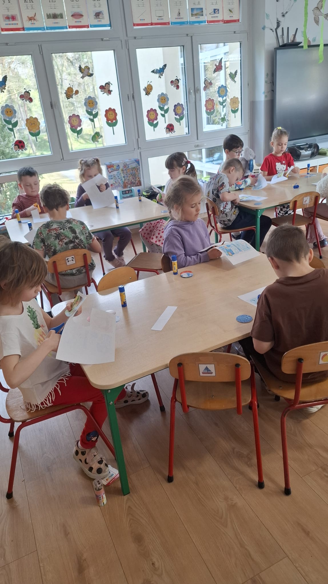 w ćwiczeniach porannych oraz planowanych zajęciach gimnastycznych. Rozwijały kompetencje językowe i matematyczne podczas zabaw przy stolikach. W czasie wolnym bawiły się zgodnie ze swoimi zainteresowaniami oraz dbały o porządek w sali.