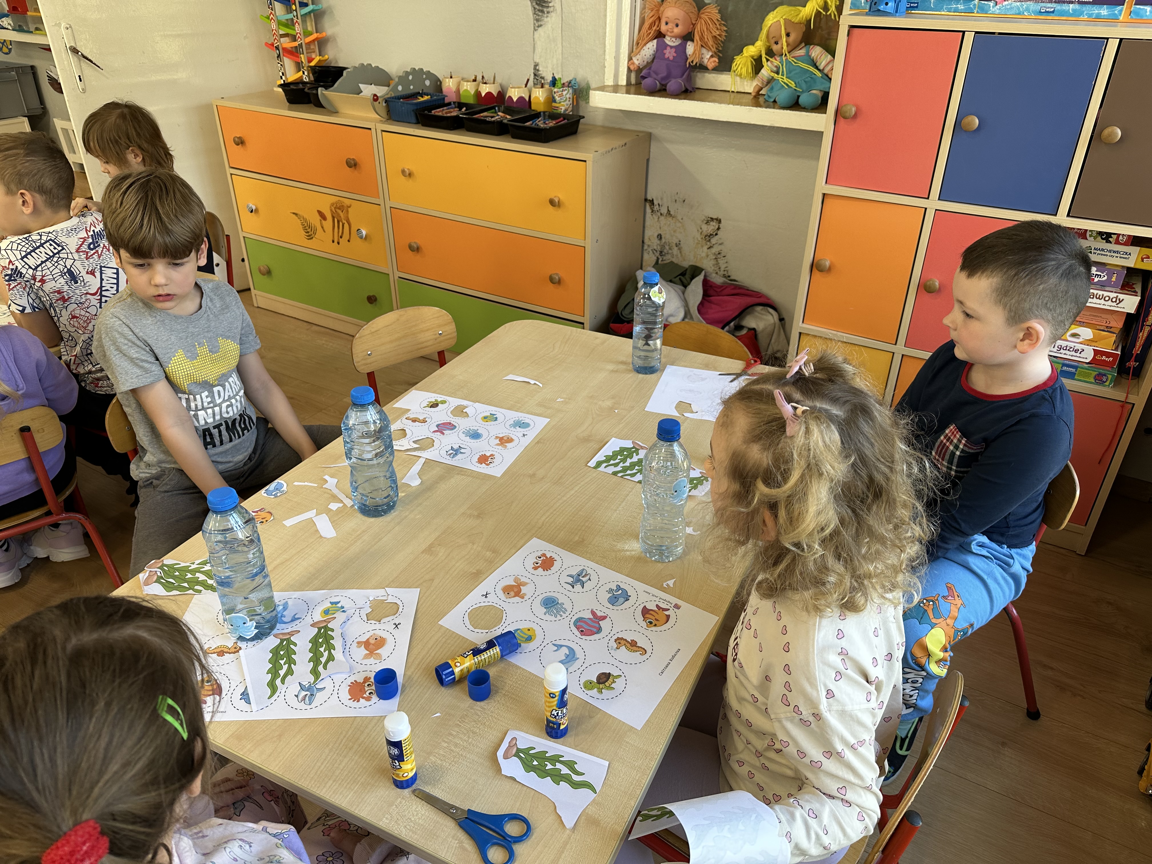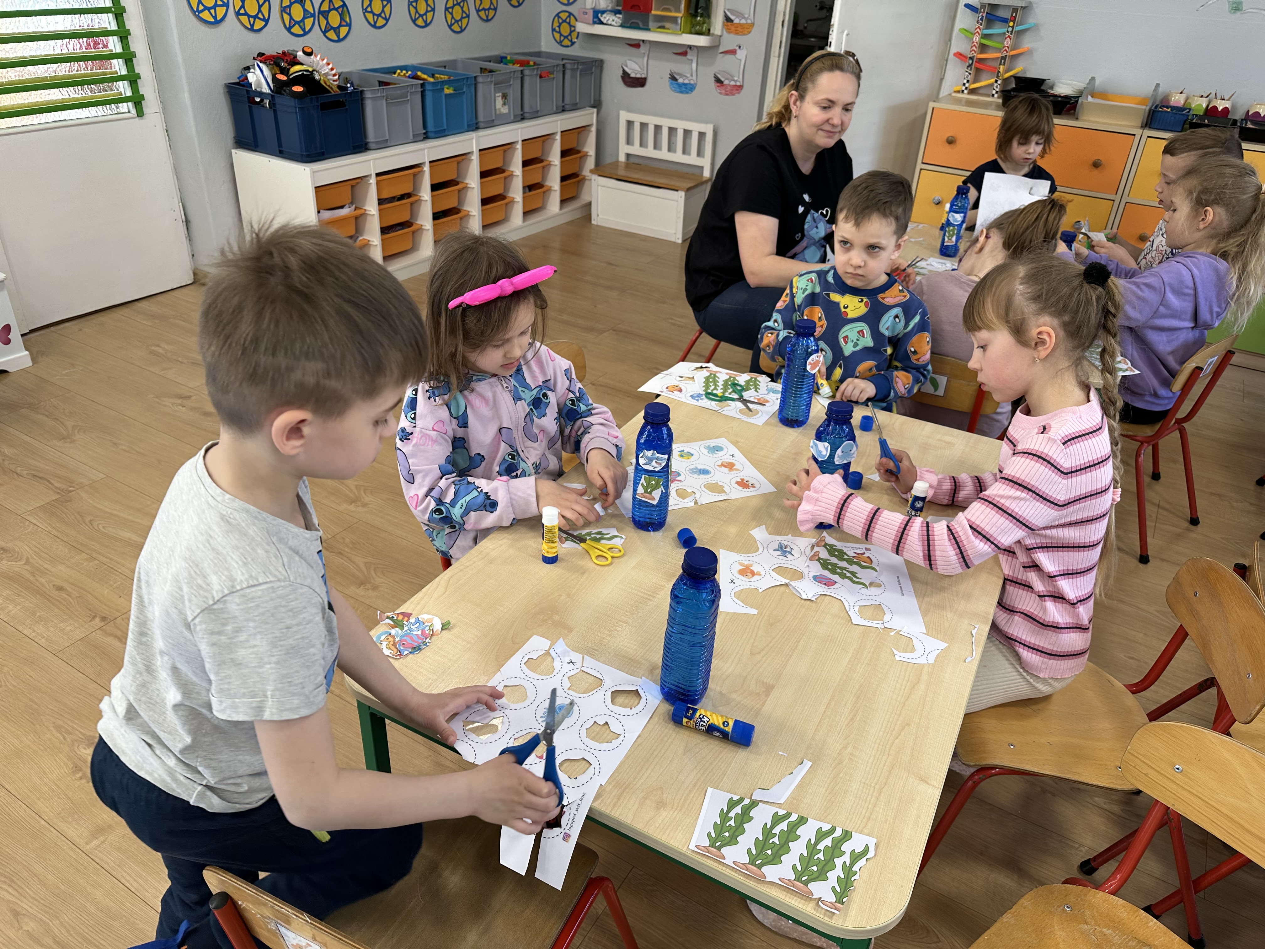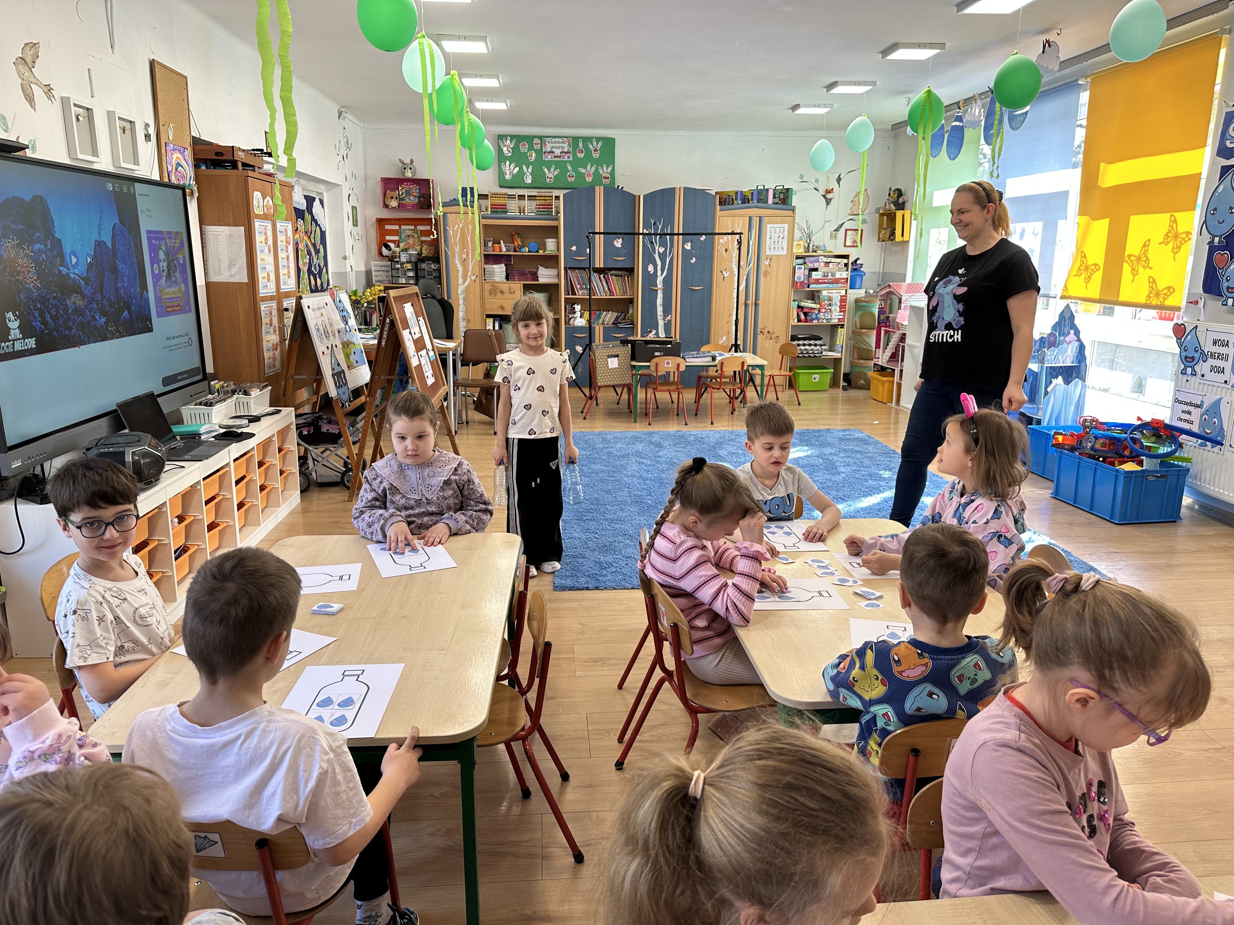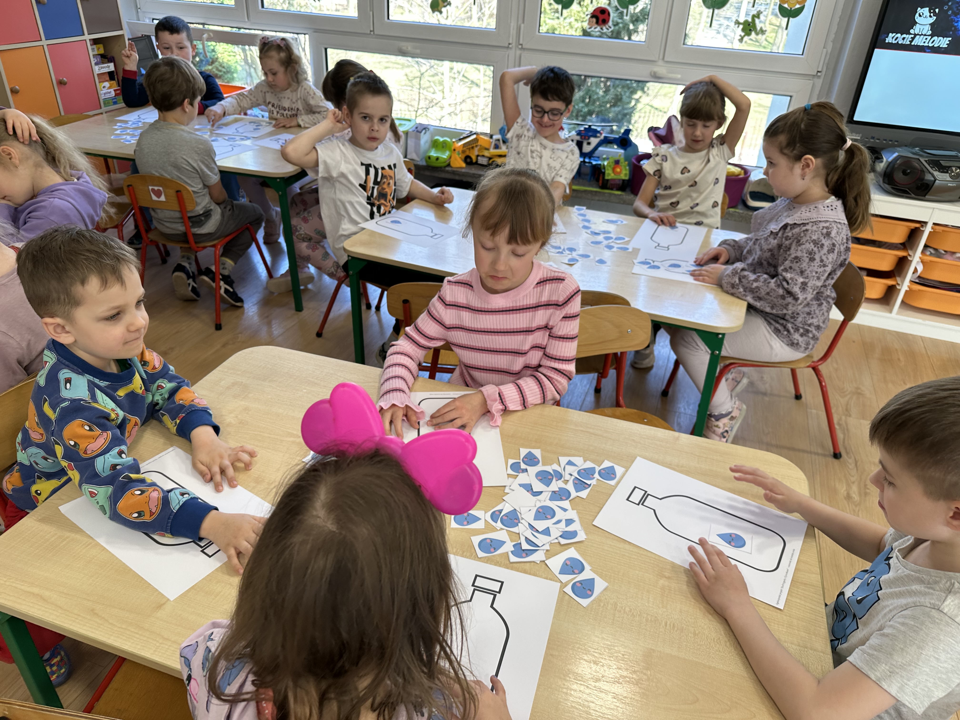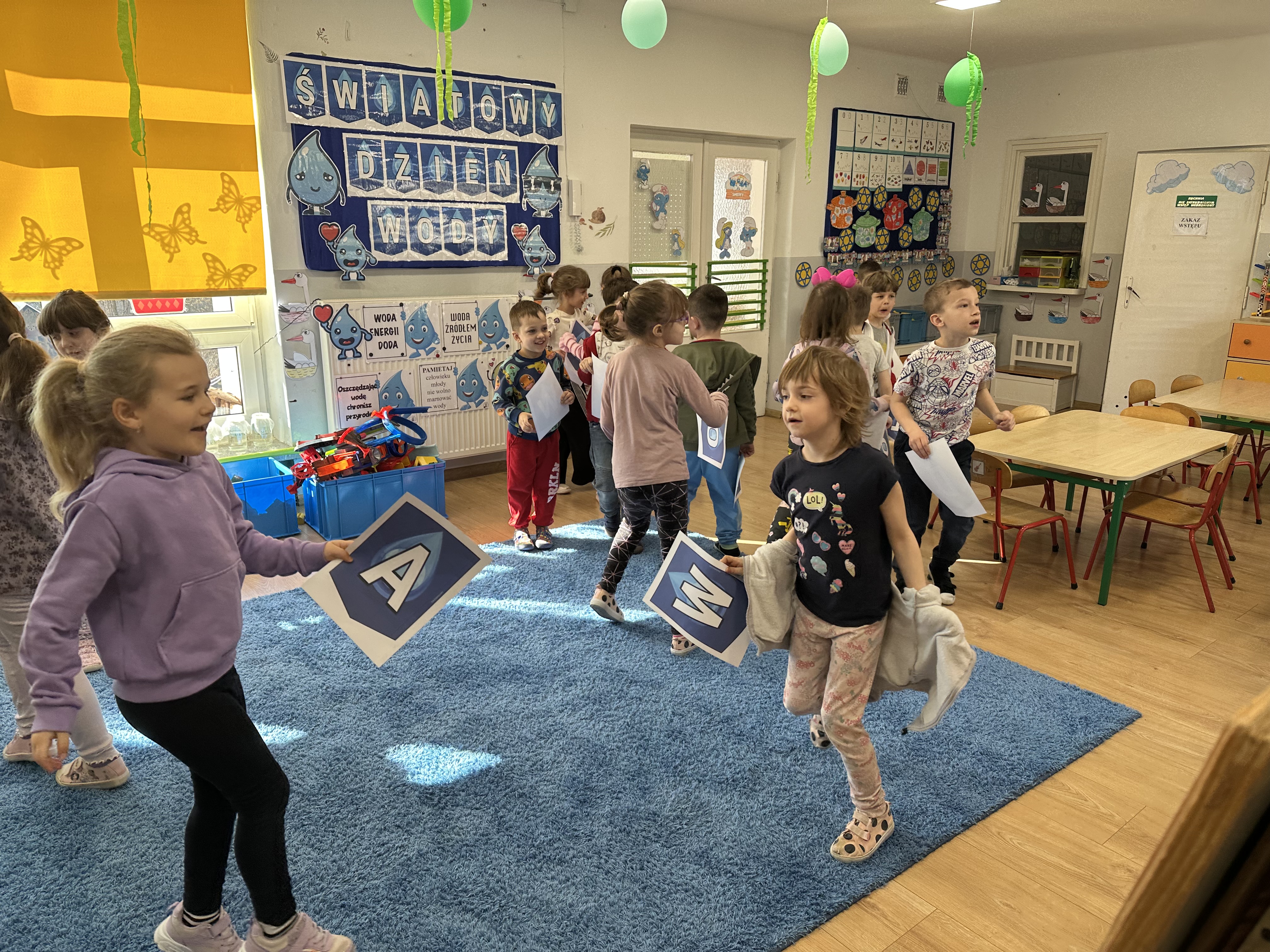 w ćwiczeniach porannych oraz planowanych zajęciach gimnastycznych. Rozwijały kompetencje językowe i matematyczne podczas zabaw przy stolikach. W czasie wolnym bawiły się zgodnie ze swoimi zainteresowaniami oraz dbały o porządek w sali.