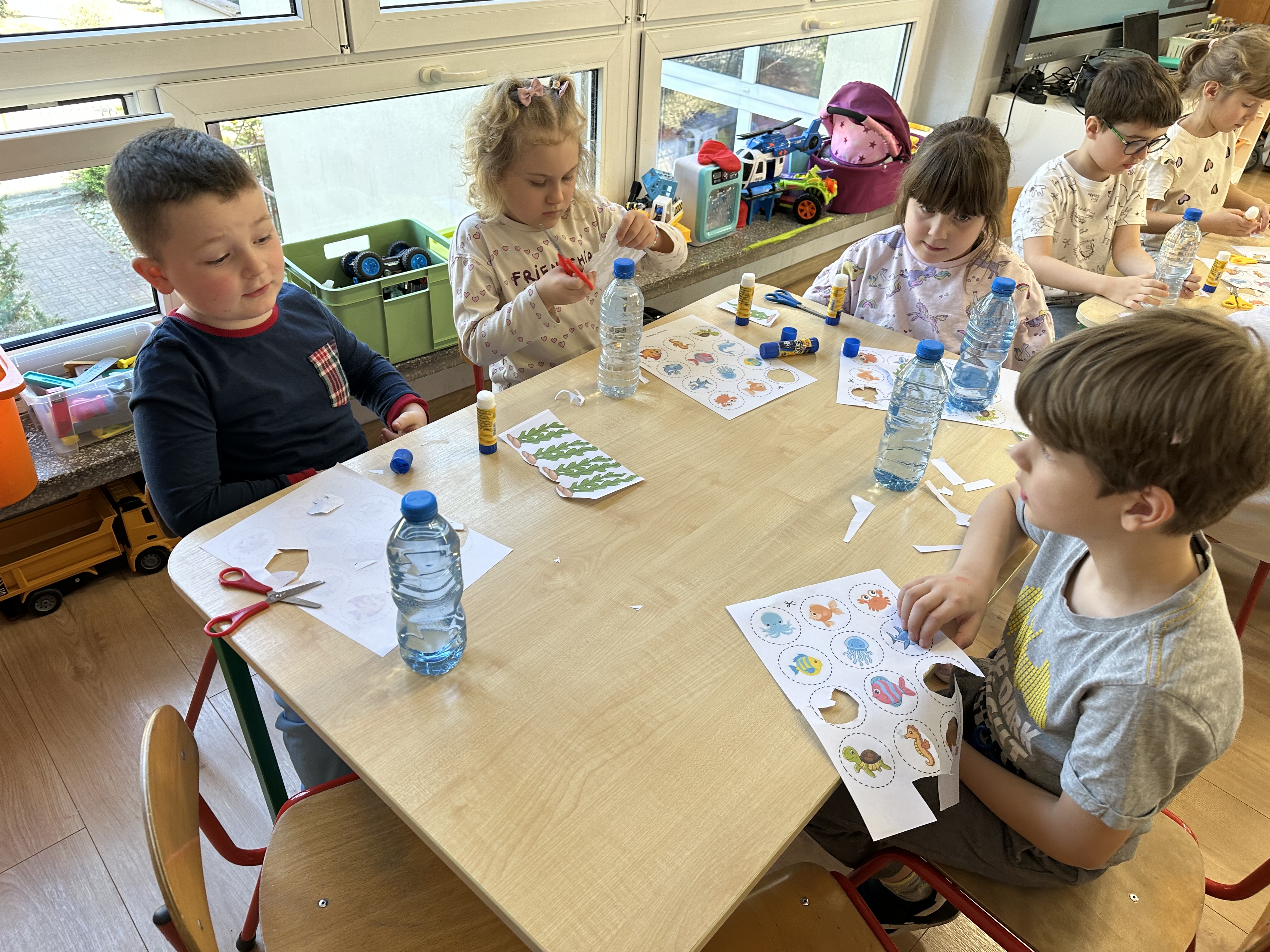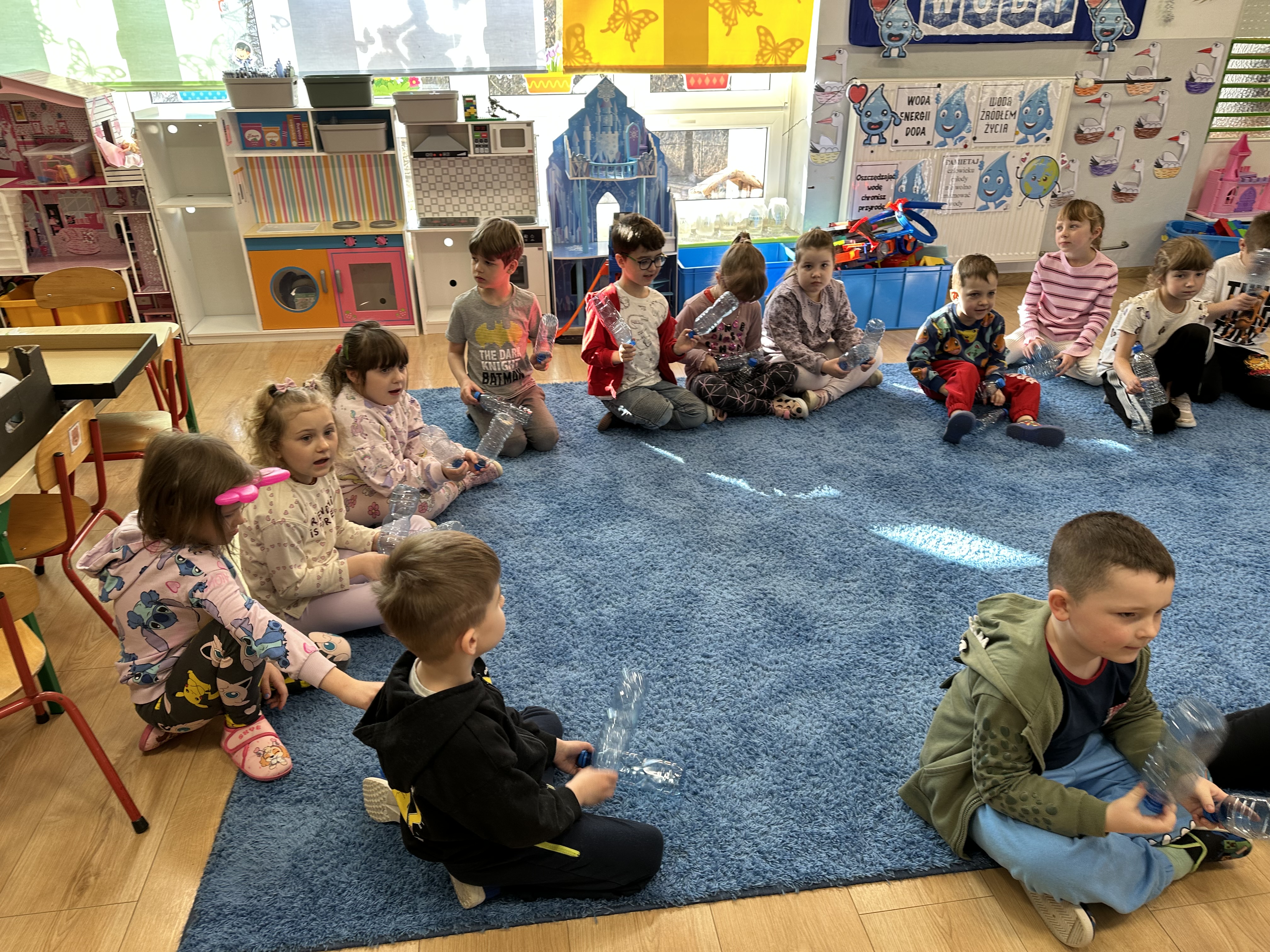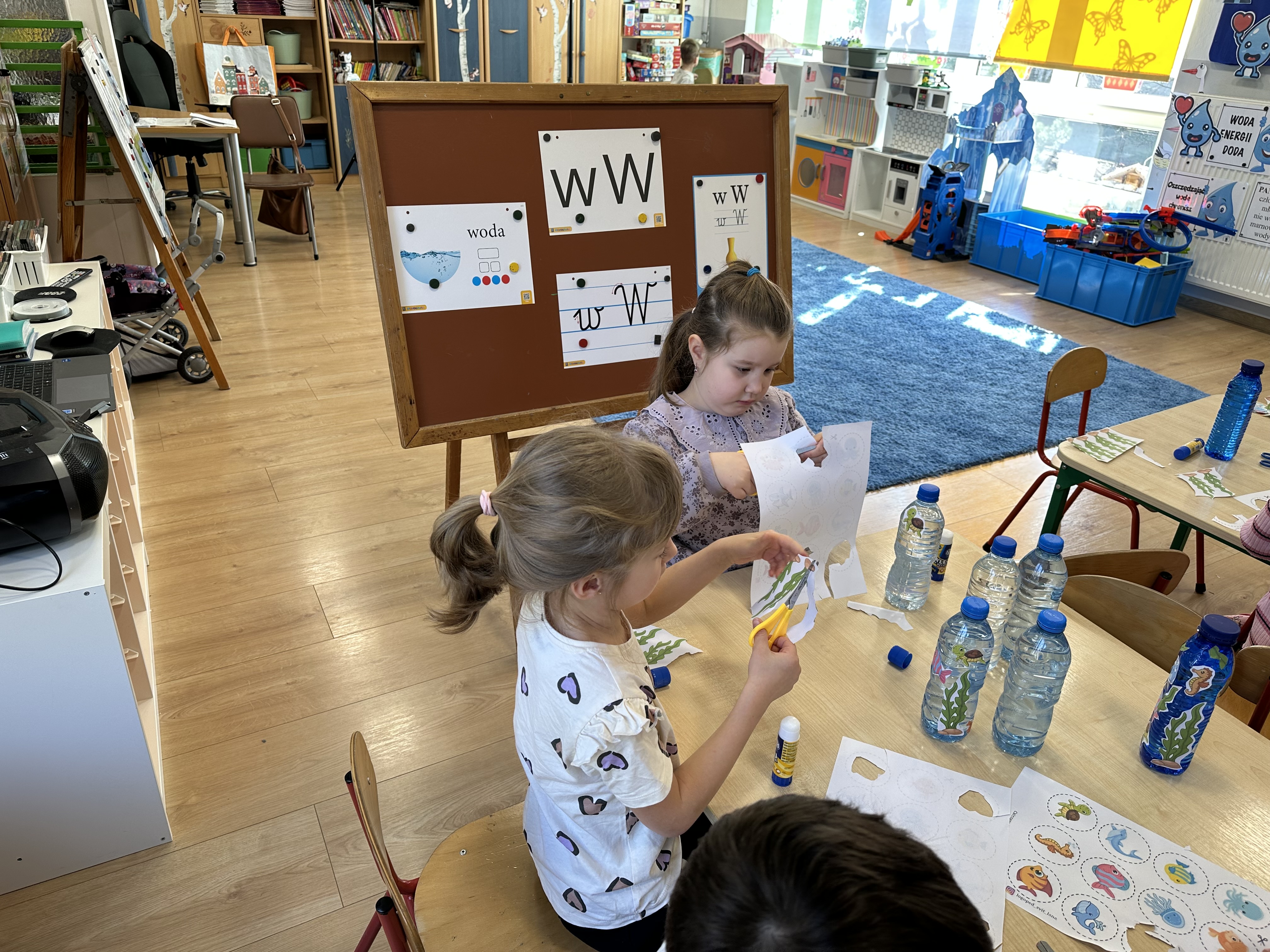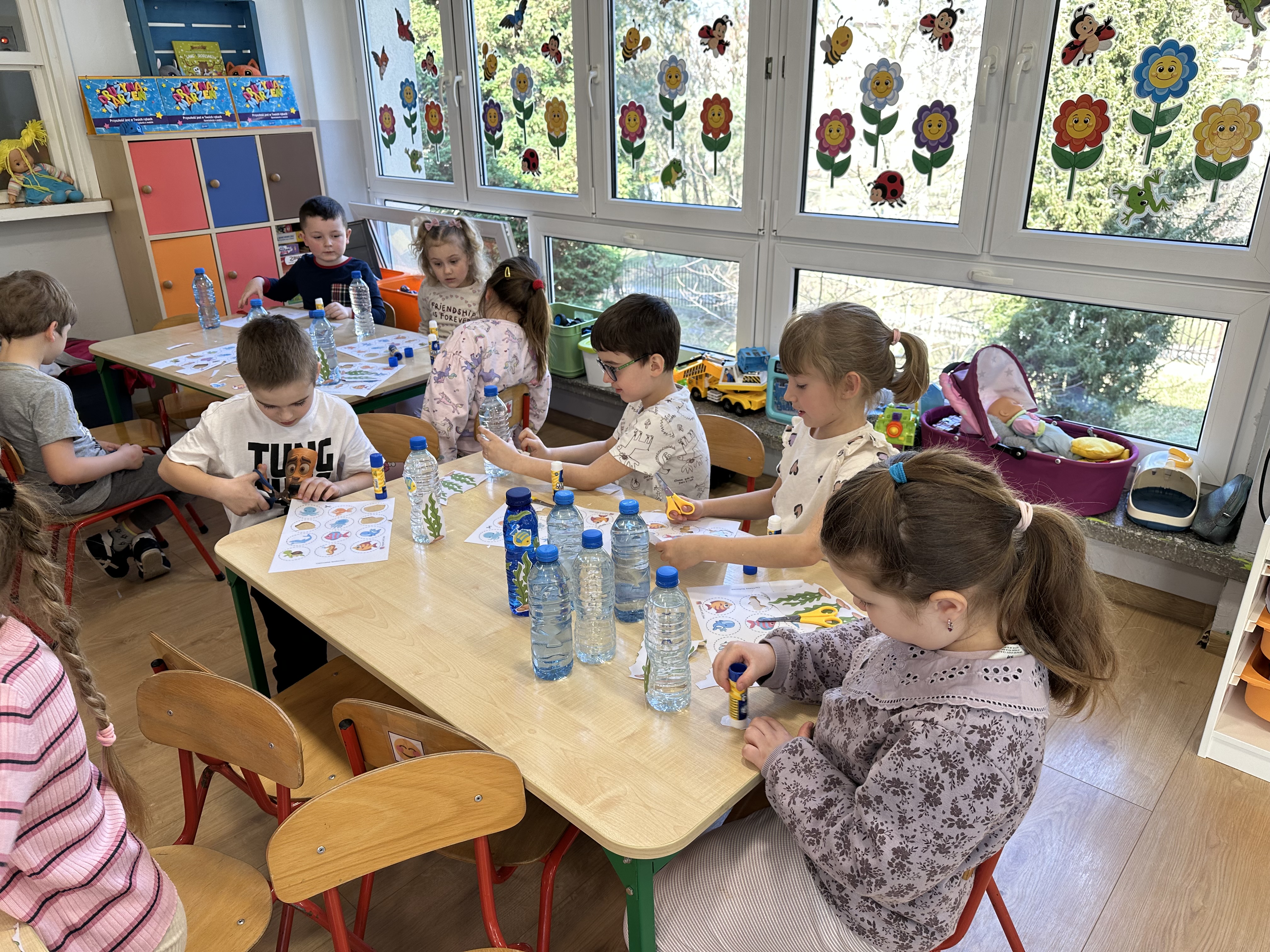 w ćwiczeniach porannych oraz planowanych zajęciach gimnastycznych. Rozwijały kompetencje językowe i matematyczne podczas zabaw przy stolikach. W czasie wolnym bawiły się zgodnie ze swoimi zainteresowaniami oraz dbały o porządek w sali.
