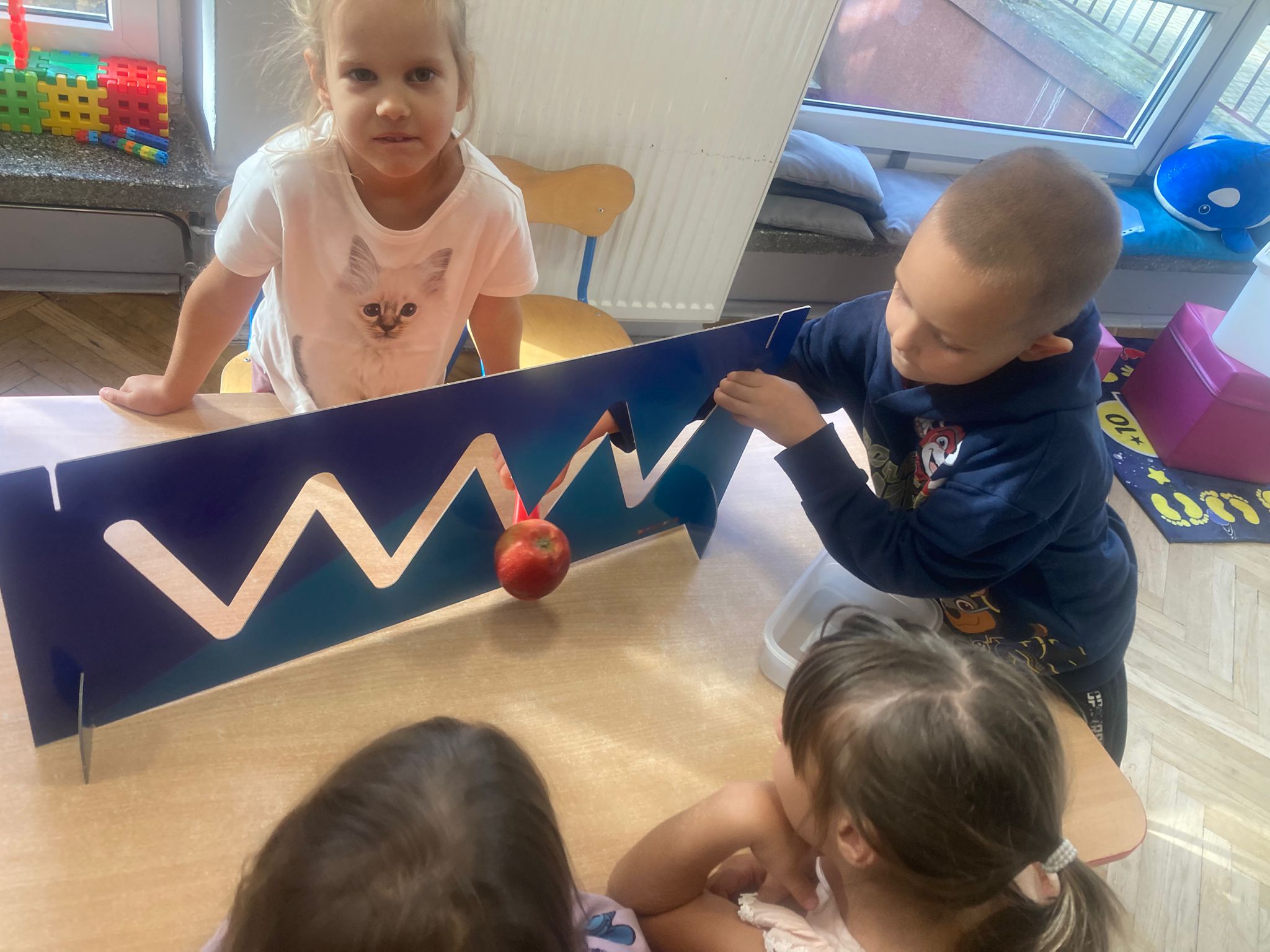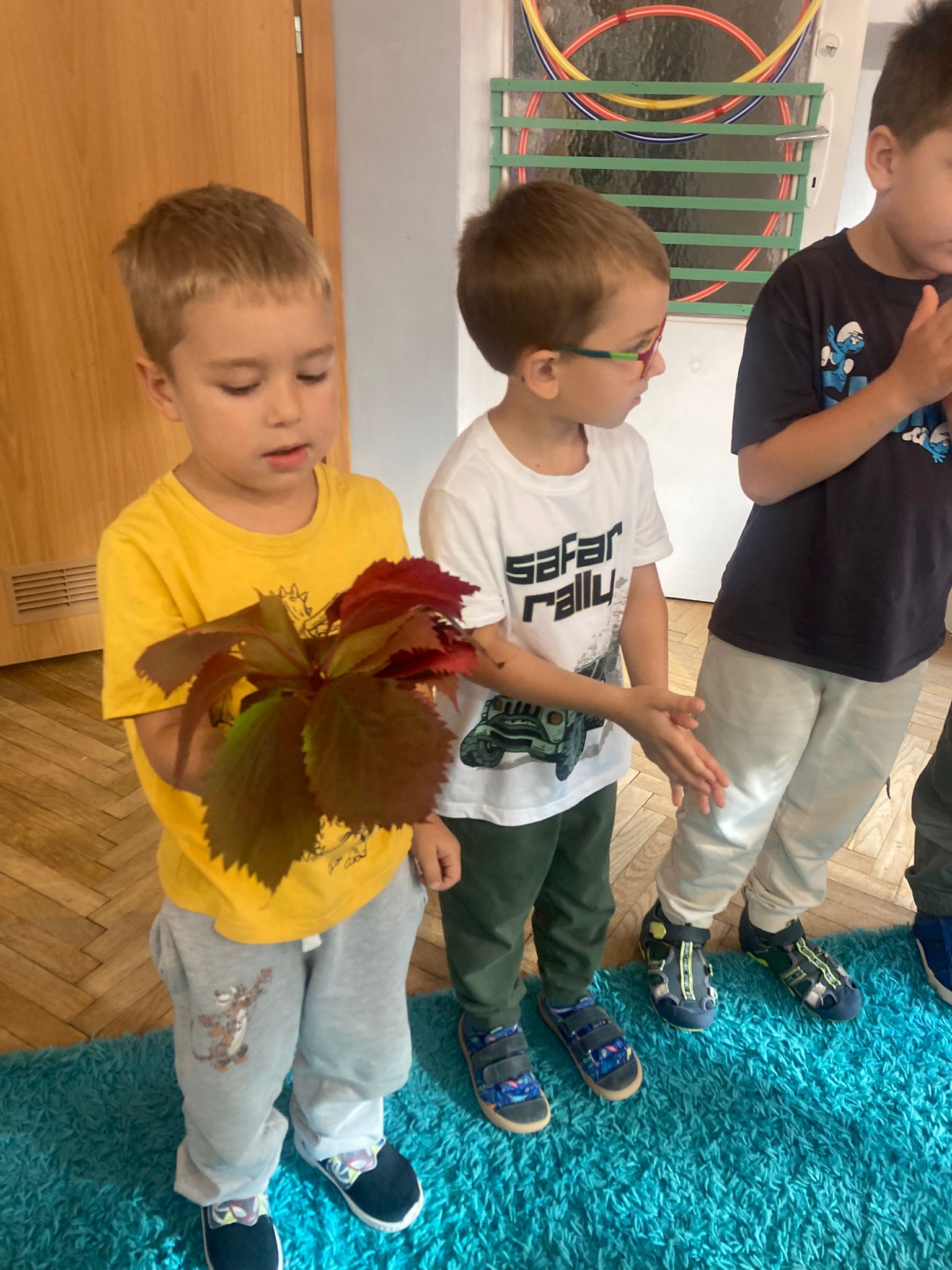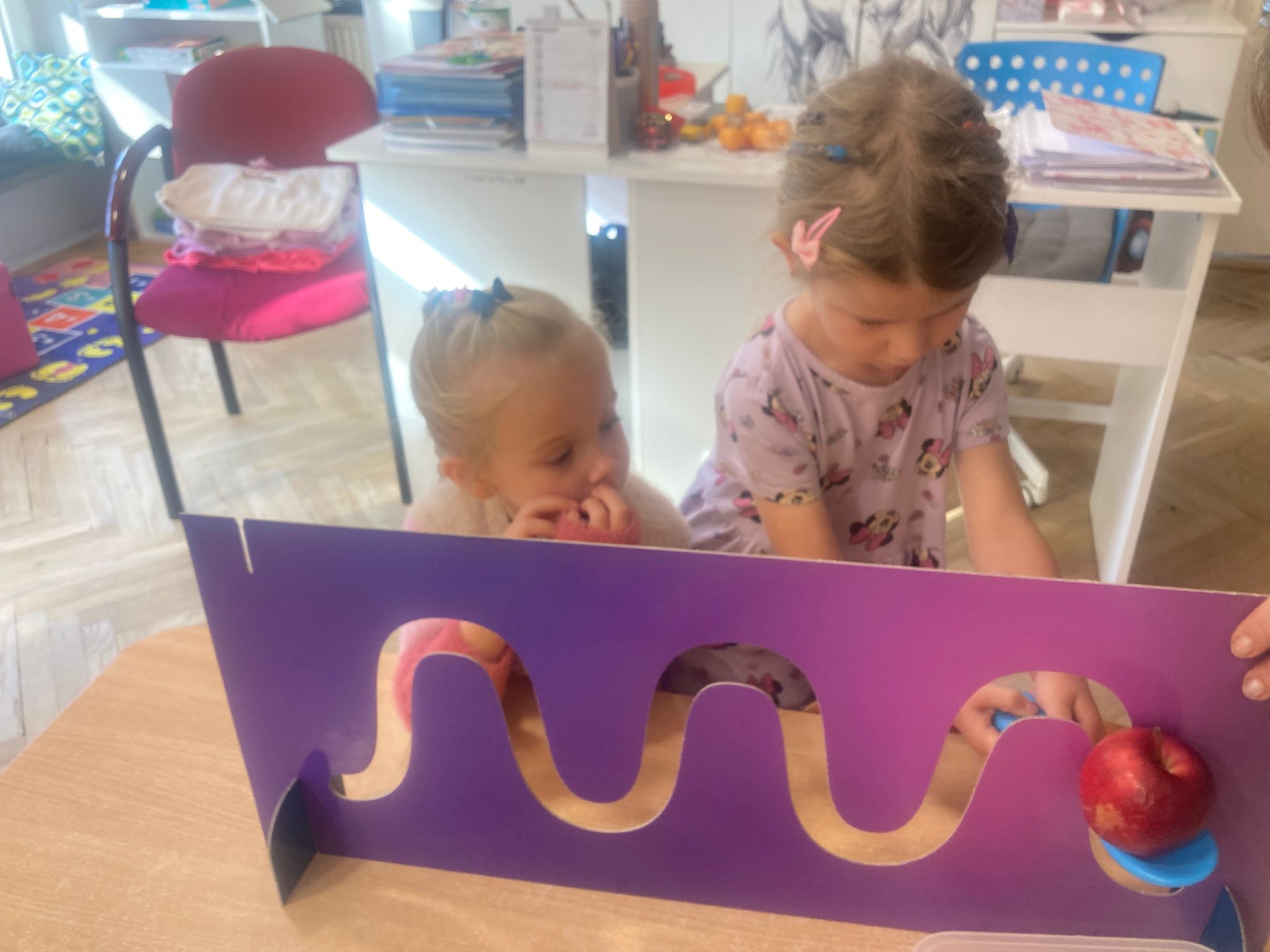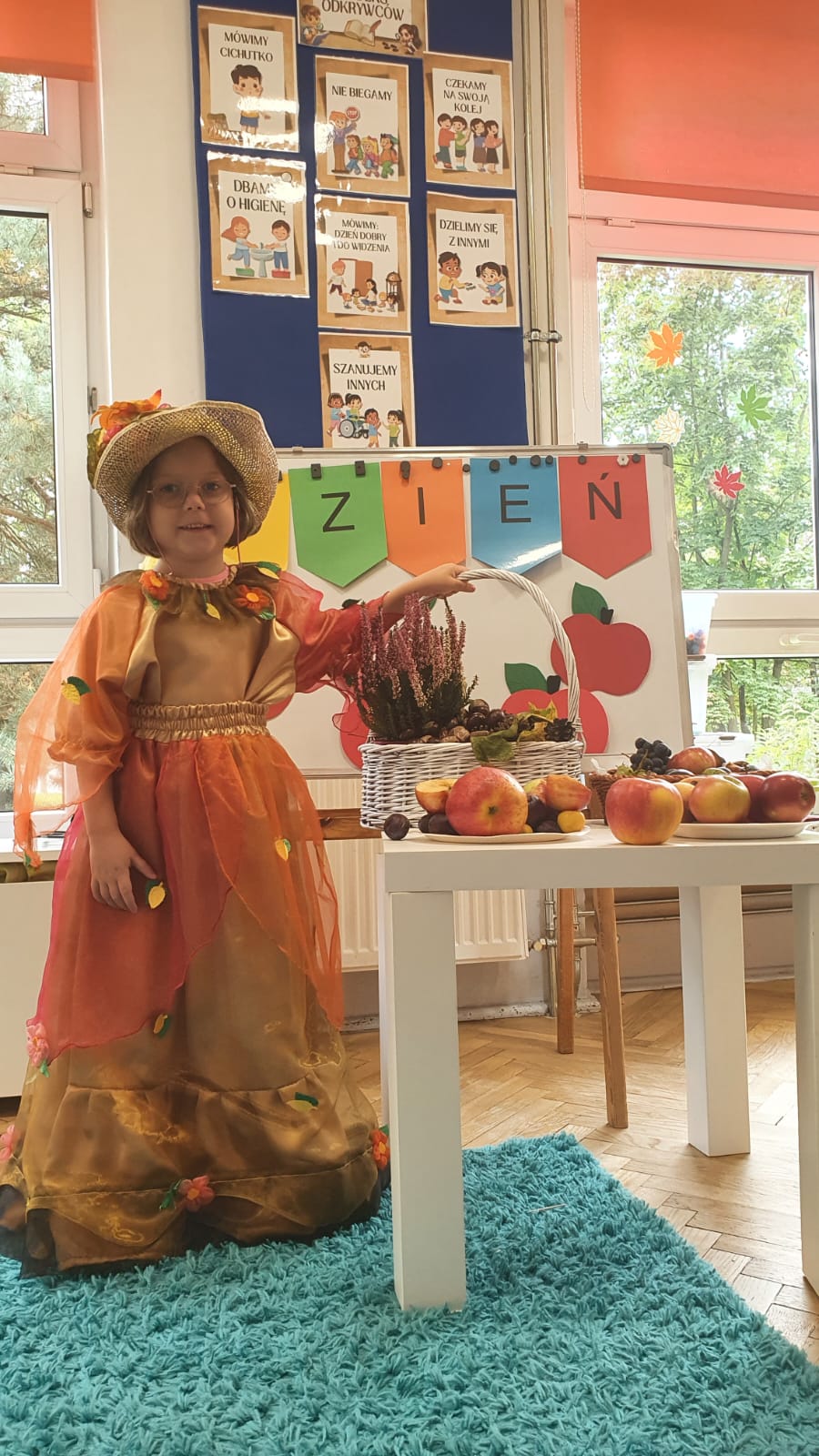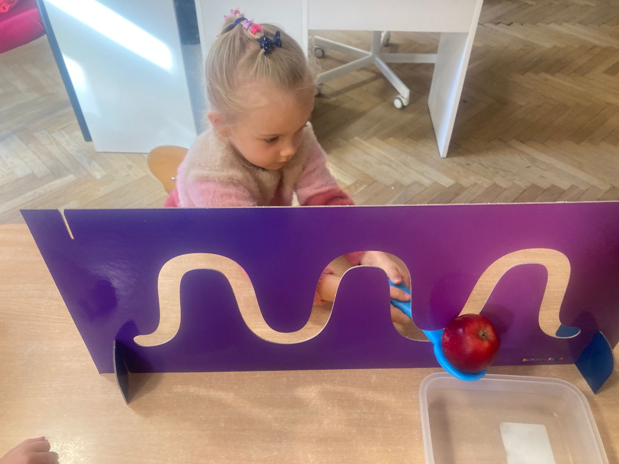 Nowa pora roku przyniosła nam wiele ciekawych pomysłów na jesiennne zabawy i zajęca edukacyjne. Dzisiaj poznawaliśmy dary , które przynosi nam nowa pora roku. Rozmawialiśmy o wocach jesieni i nie tylko o tych z sadu ale także z lasu. Żołędzie , kasztany, grzyby,orzechy, jarzębina obok owoców które zbieramy w sadzie . Degustowaliśmy owoców, poznając nowe smaki, odgadywaliśmy - co jemy? Rozwijaliśmy również koordynację naszych ruchów przenosząc jabłuszko po wyznaczonym torze. Z okazji Dnia Jabłka szczególną uwagę poświeciliśmy jabłuszkom, oglądaliśmy ich środek , omawialiśmy kolo, smak. Z" Panią Jesienią" bawiliśmy sie przy piosence pt"Dary Jesieni". Zdobyte wiadomości utrwalaliśmy na kartach pracy.
