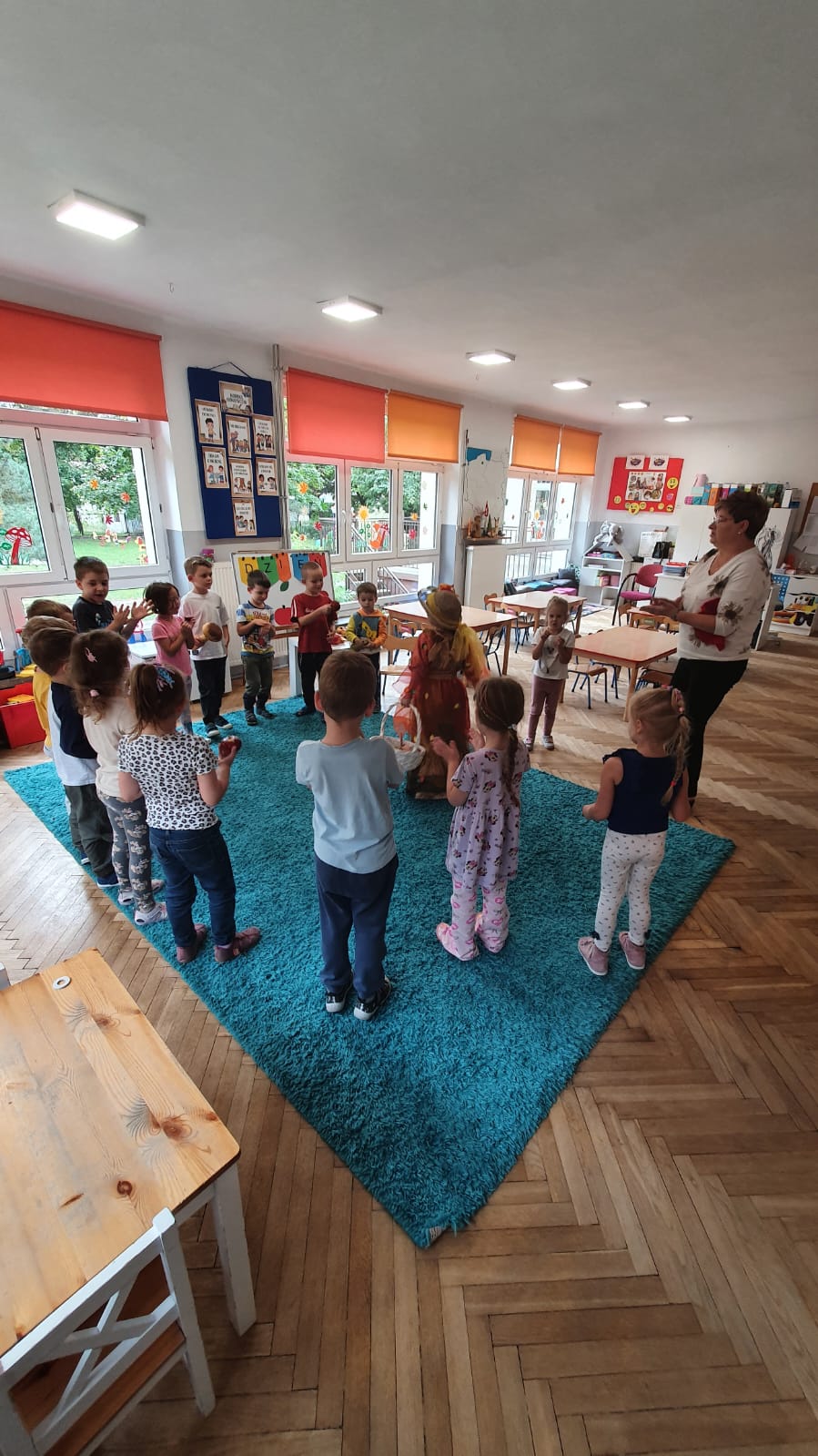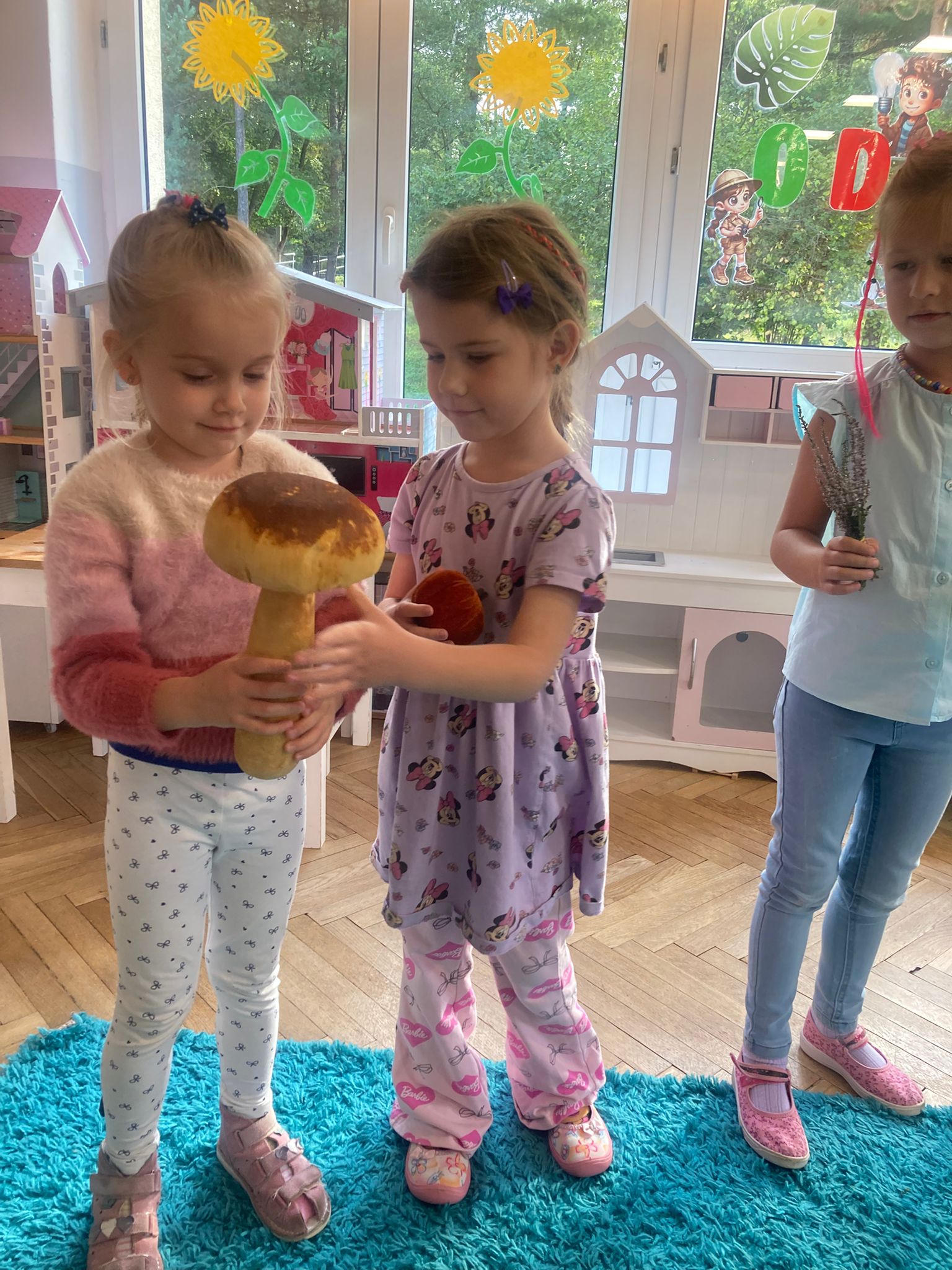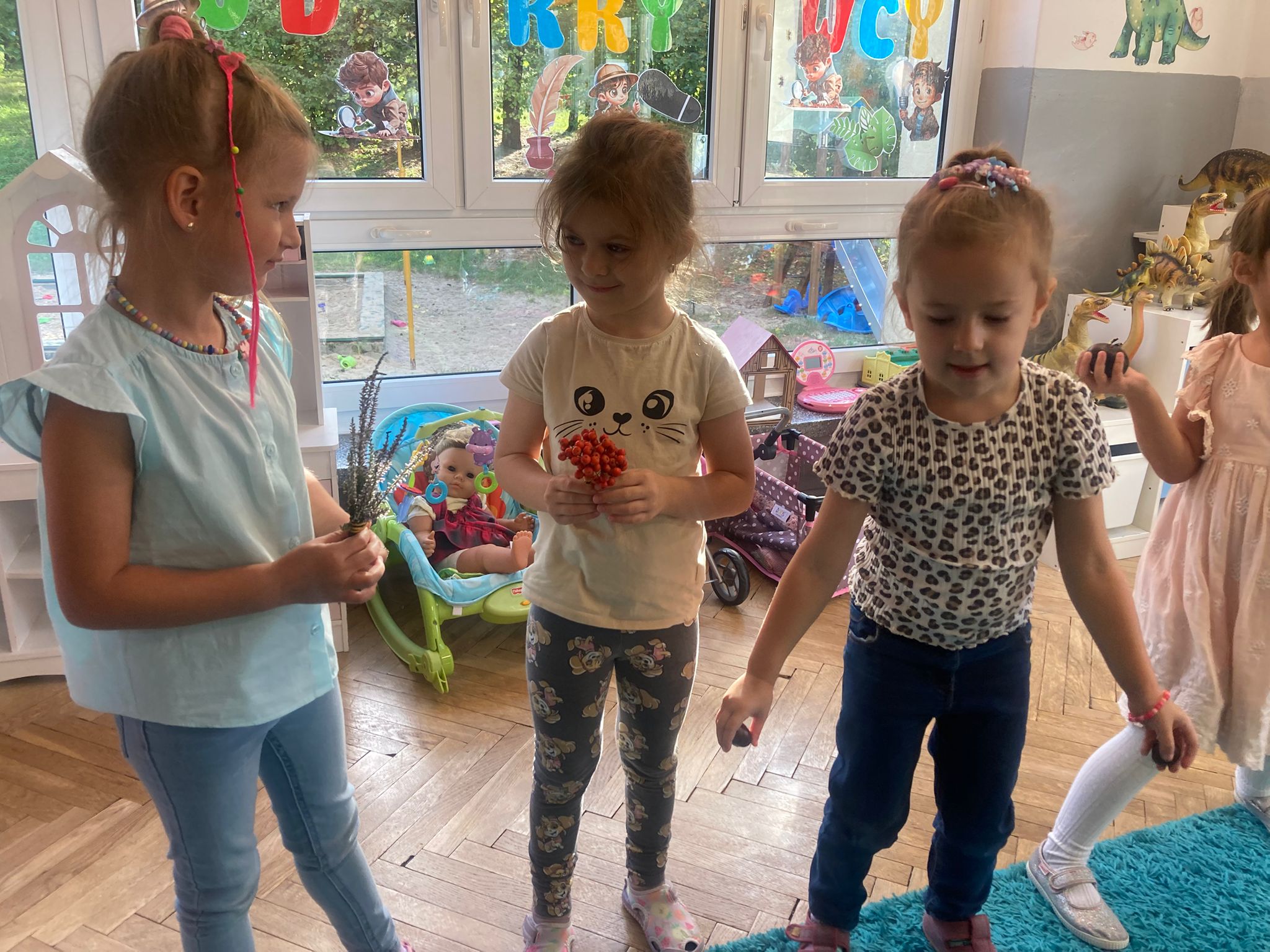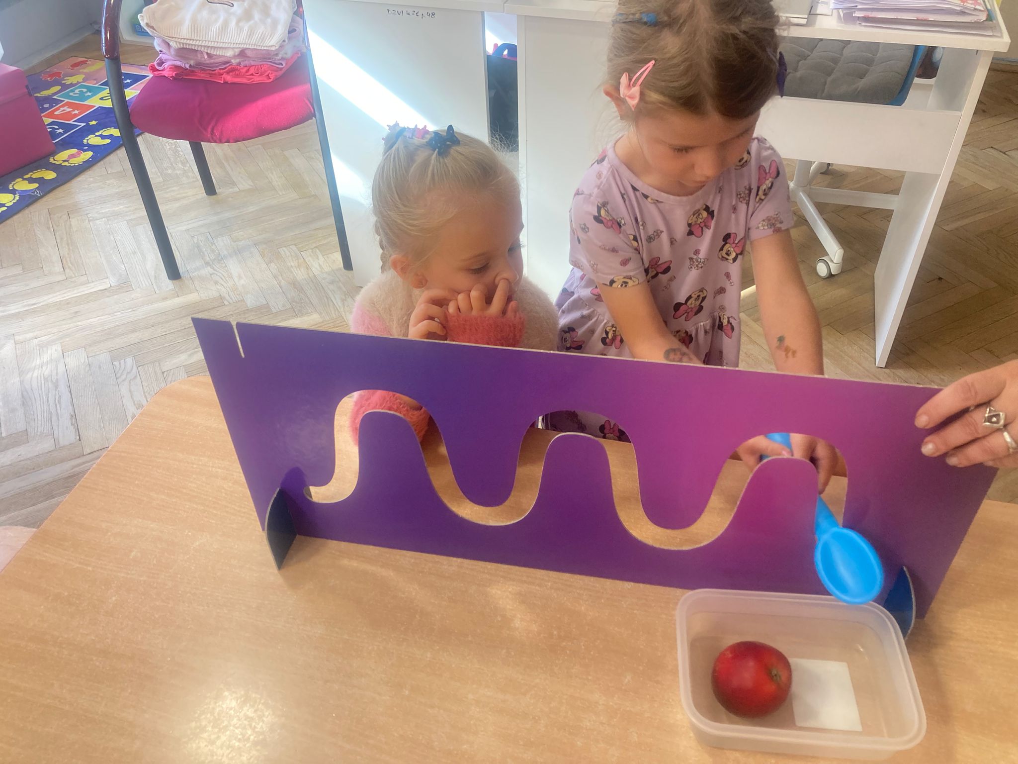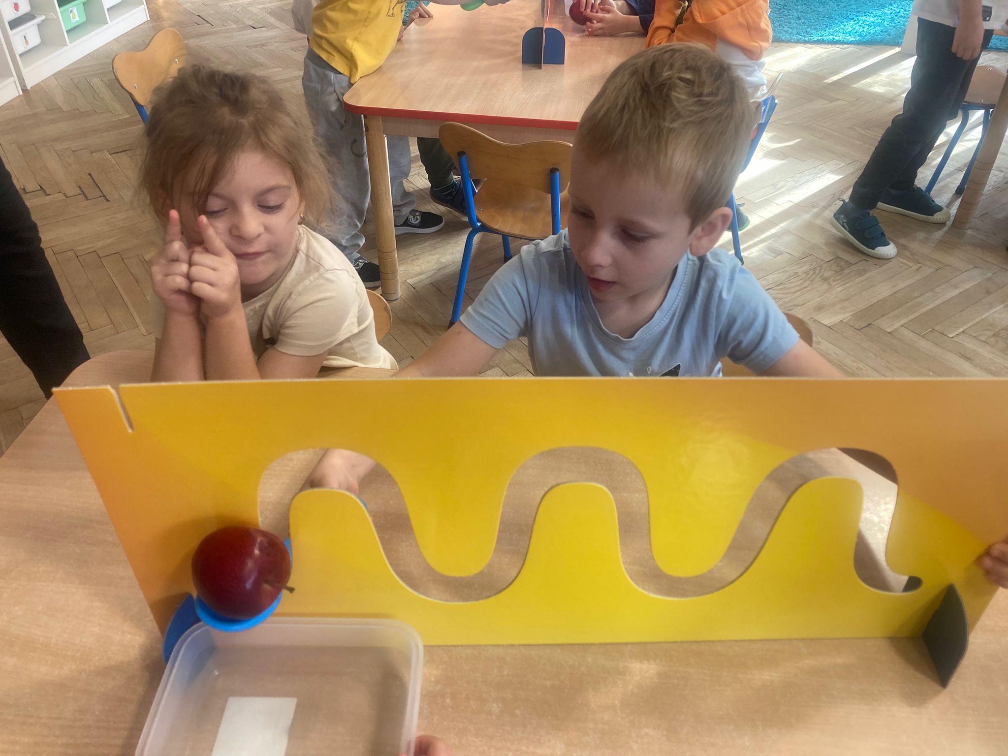 Nowa pora roku przyniosła nam wiele ciekawych pomysłów na jesiennne zabawy i zajęca edukacyjne. Dzisiaj poznawaliśmy dary , które przynosi nam nowa pora roku. Rozmawialiśmy o wocach jesieni i nie tylko o tych z sadu ale także z lasu. Żołędzie , kasztany, grzyby,orzechy, jarzębina obok owoców które zbieramy w sadzie . Degustowaliśmy owoców, poznając nowe smaki, odgadywaliśmy - co jemy? Rozwijaliśmy również koordynację naszych ruchów przenosząc jabłuszko po wyznaczonym torze. Z okazji Dnia Jabłka szczególną uwagę poświeciliśmy jabłuszkom, oglądaliśmy ich środek , omawialiśmy kolo, smak. Z" Panią Jesienią" bawiliśmy sie przy piosence pt"Dary Jesieni". Zdobyte wiadomości utrwalaliśmy na kartach pracy.
