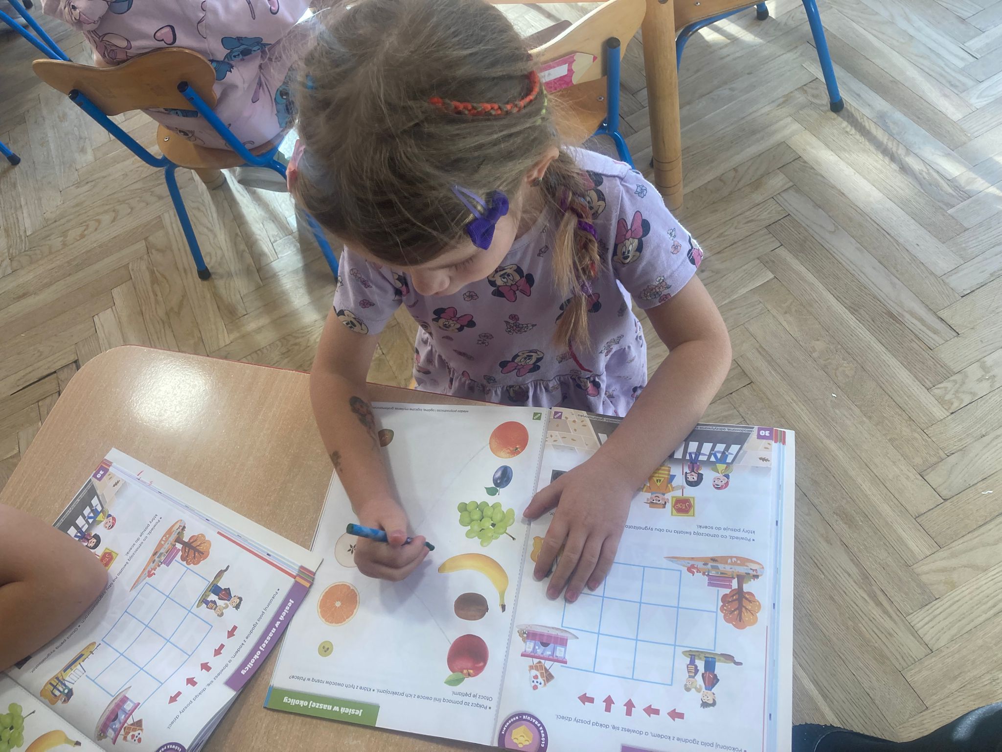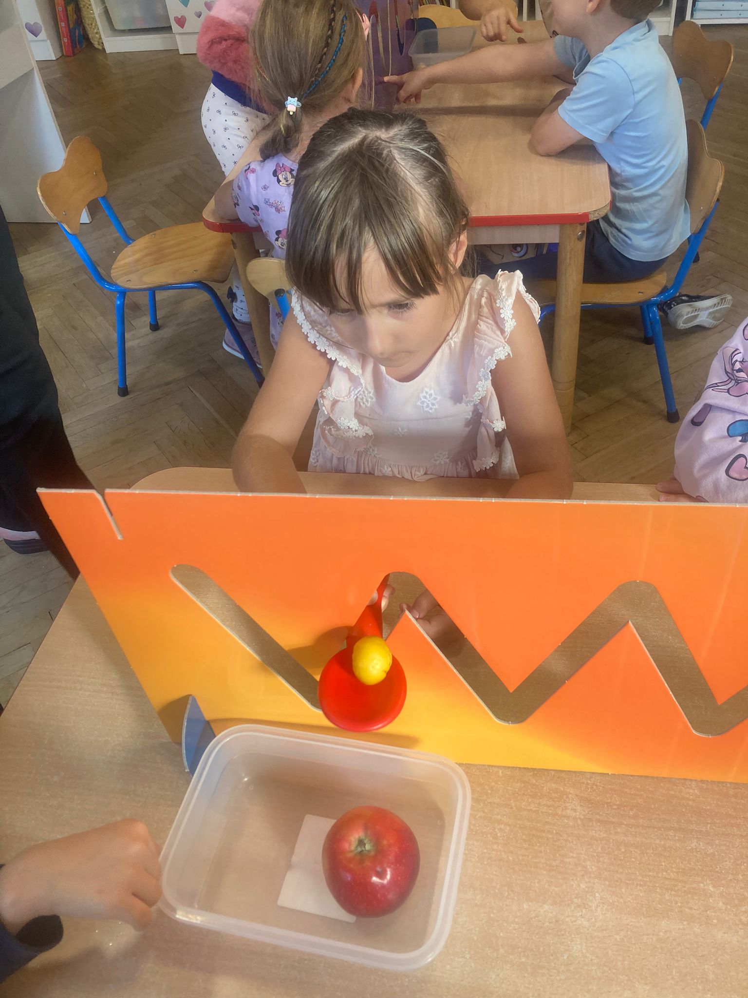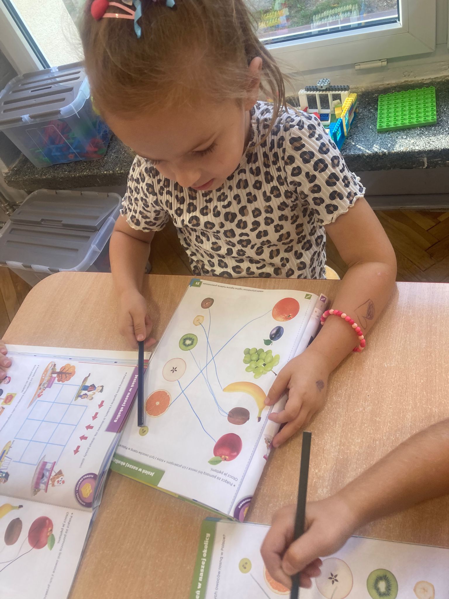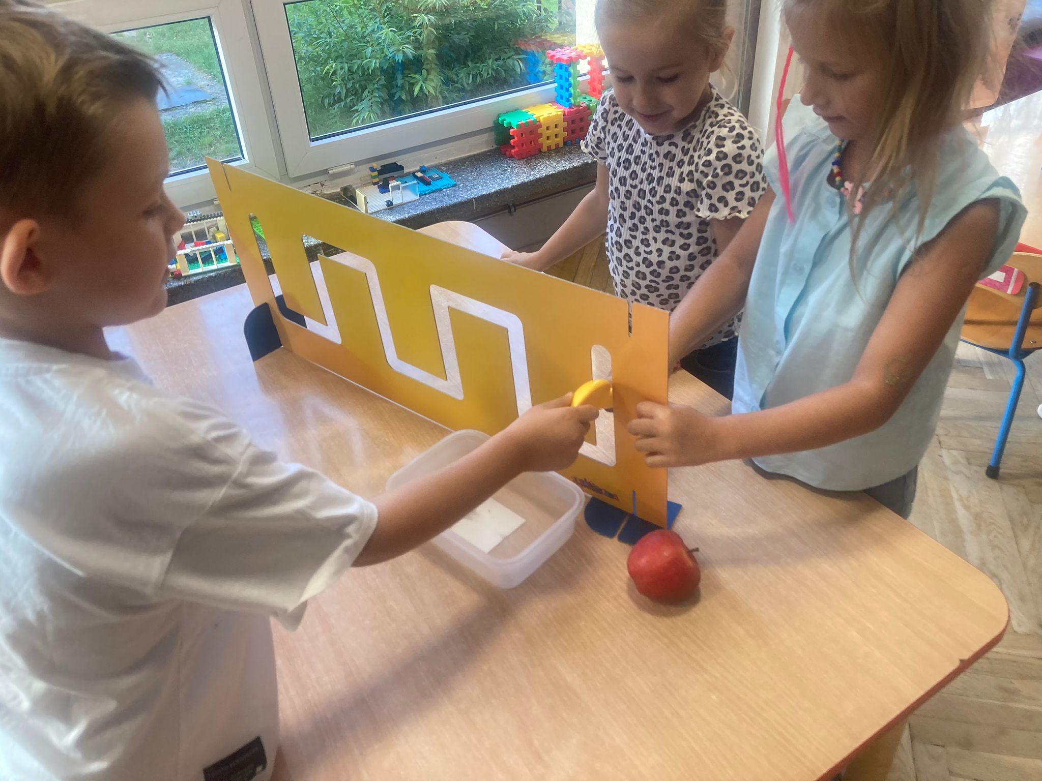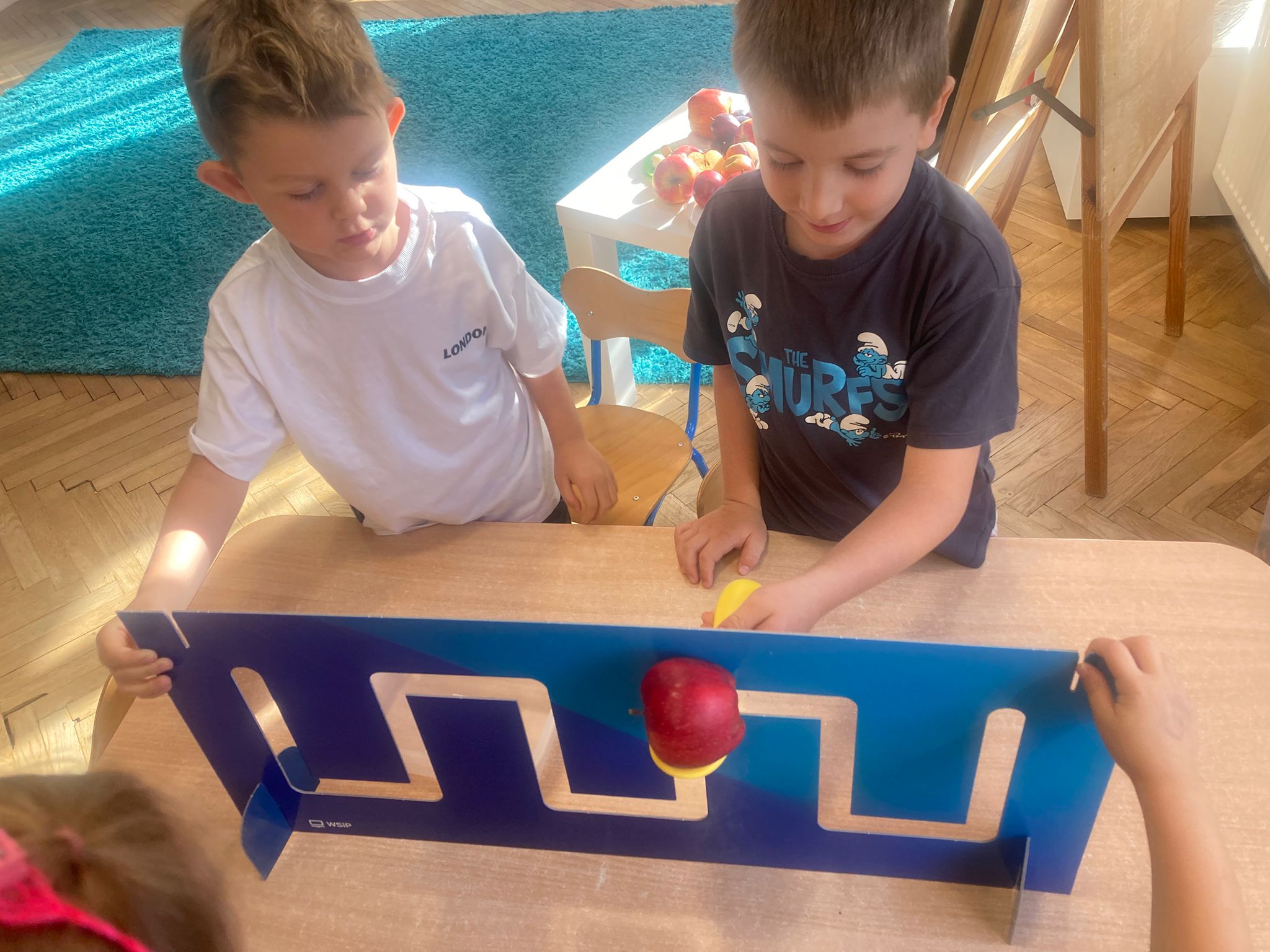 Nowa pora roku przyniosła nam wiele ciekawych pomysłów na jesiennne zabawy i zajęca edukacyjne. Dzisiaj poznawaliśmy dary , które przynosi nam nowa pora roku. Rozmawialiśmy o wocach jesieni i nie tylko o tych z sadu ale także z lasu. Żołędzie , kasztany, grzyby,orzechy, jarzębina obok owoców które zbieramy w sadzie . Degustowaliśmy owoców, poznając nowe smaki, odgadywaliśmy - co jemy? Rozwijaliśmy również koordynację naszych ruchów przenosząc jabłuszko po wyznaczonym torze. Z okazji Dnia Jabłka szczególną uwagę poświeciliśmy jabłuszkom, oglądaliśmy ich środek , omawialiśmy kolo, smak. Z" Panią Jesienią" bawiliśmy sie przy piosence pt"Dary Jesieni". Zdobyte wiadomości utrwalaliśmy na kartach pracy.