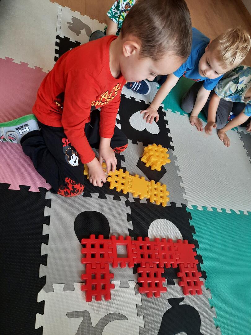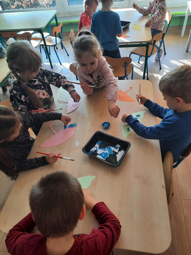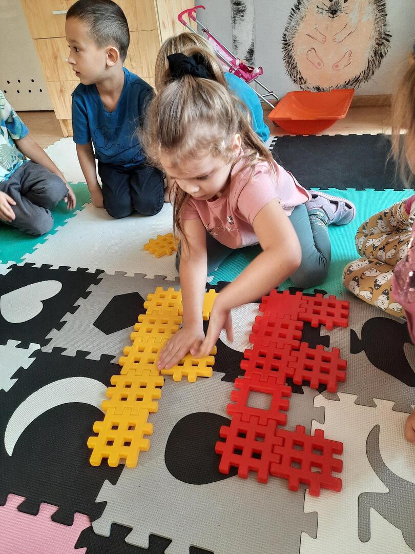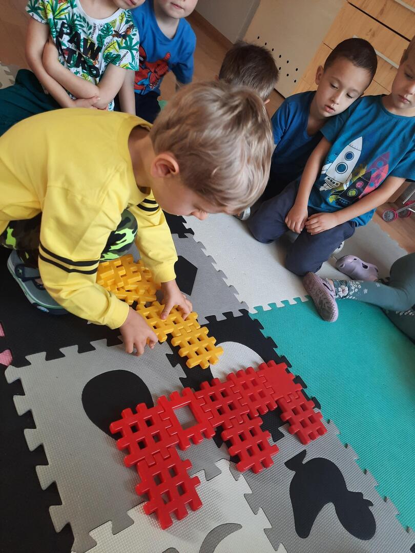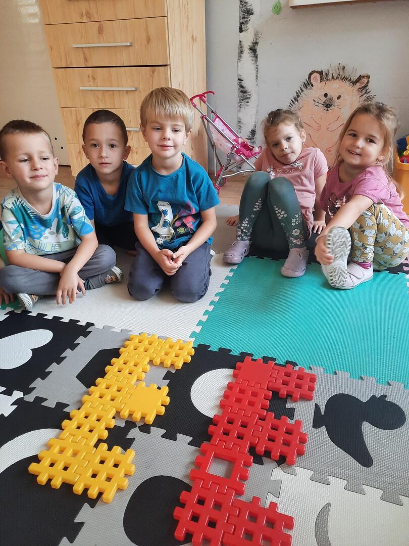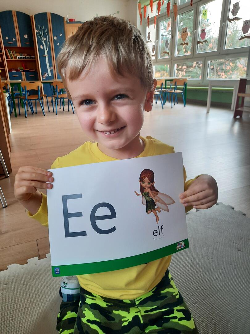 Poza tym poznaliśmy literę „E” i „e” na przykładzie wyrazu „ekran” i wykonaliśmy wiele ćwiczeń utrwalających sposób jej pisania. Doskonaliliśmy też umiejętności analizy, syntezy sylabowej i głoskowej oraz liczenia sylab. Śpiewaliśmy piosenkę o literze „E” i tańczyliśmy w jej rytmie. Dowiedzieliśmy się, jaki kształt ma cyfra 3 oraz uczestniczyliśmy w zabawach w liczenie, korzystając z liczebników głównych i porządkowych.