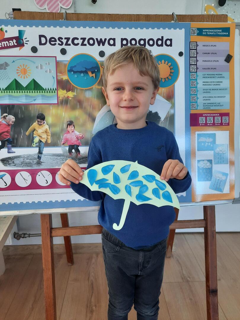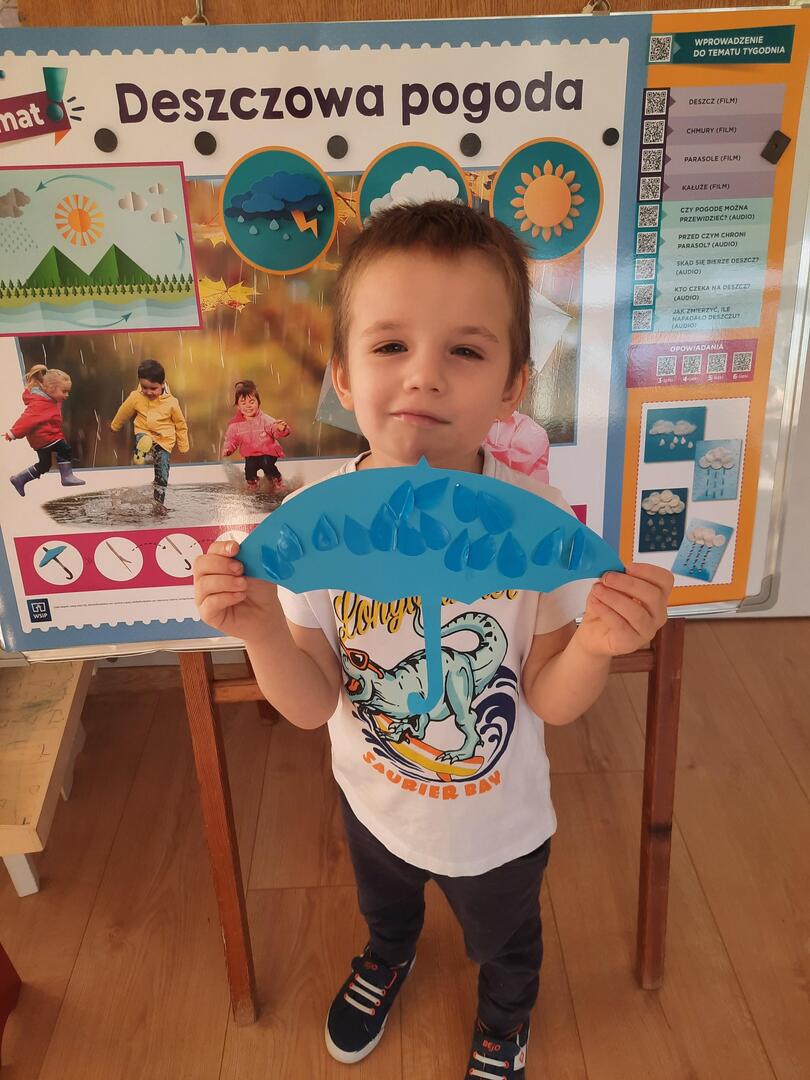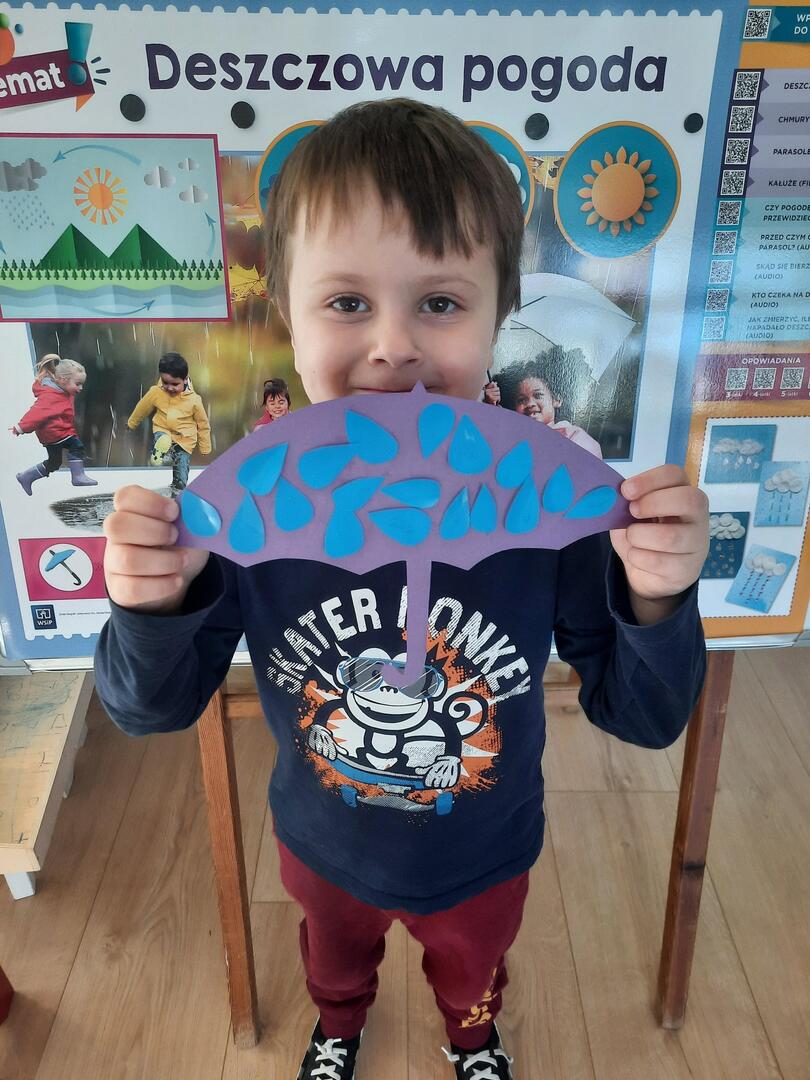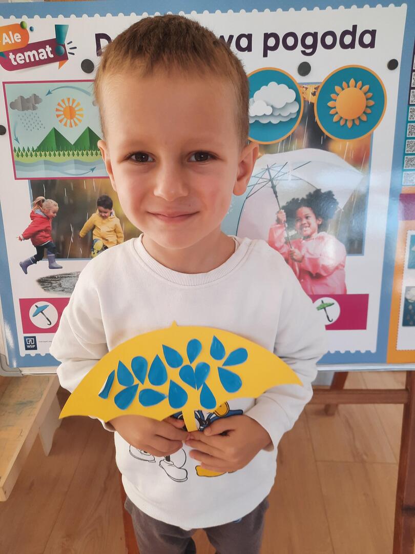 W minionym tygodniu uczestniczyliśmy w zabawach ruchowych, słuchowych i plastycznych związanych z jesienną pogodą. Utrwalaliśmy pojęcia dotyczące zmian pogody w cyklu pór roku oraz dopasowaliśmy ubrania odpowiednie do dnia, podczas którego pada deszcz, i określiliśmy ich nazwy. Zwróciliśmy też uwagę na to, aby okazywać troskę o ludzi i zwierzęta.