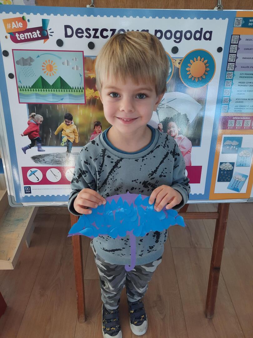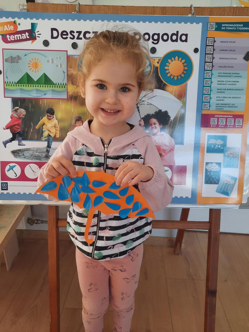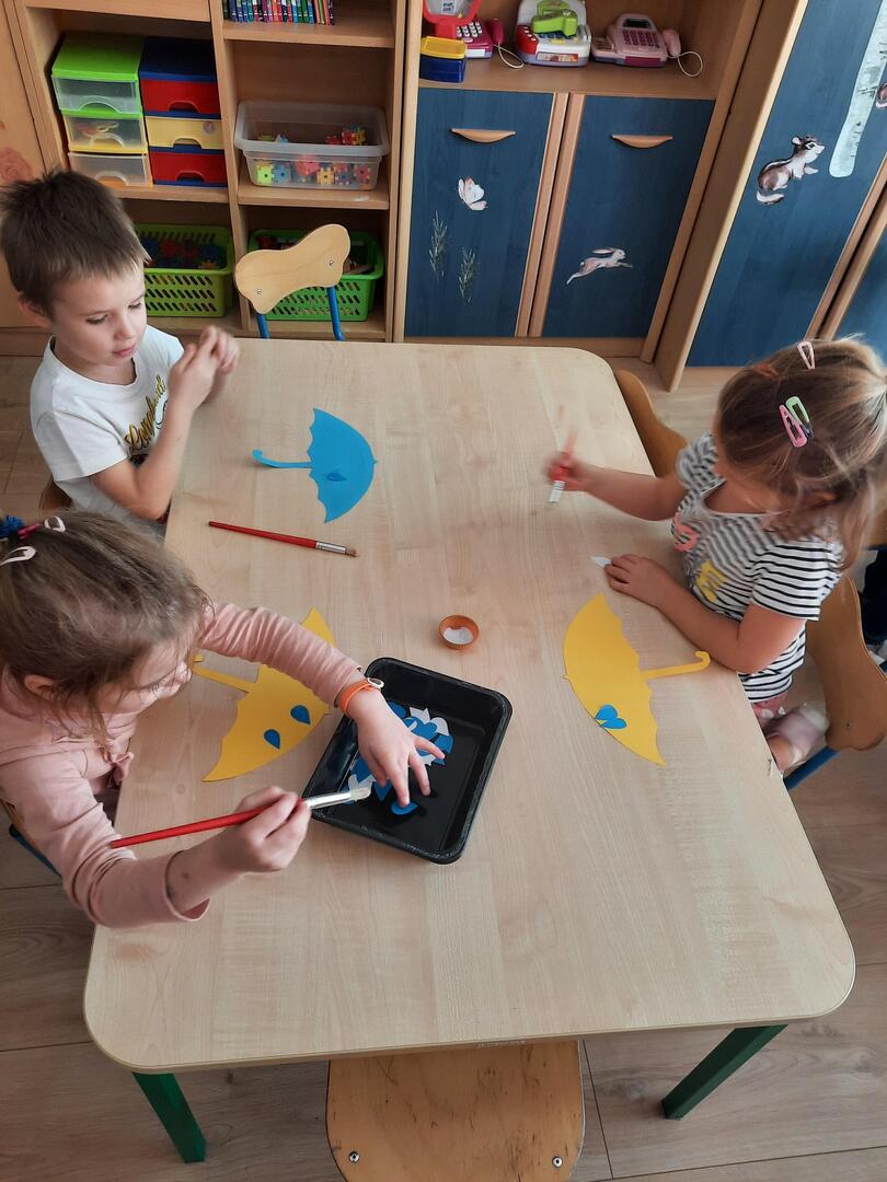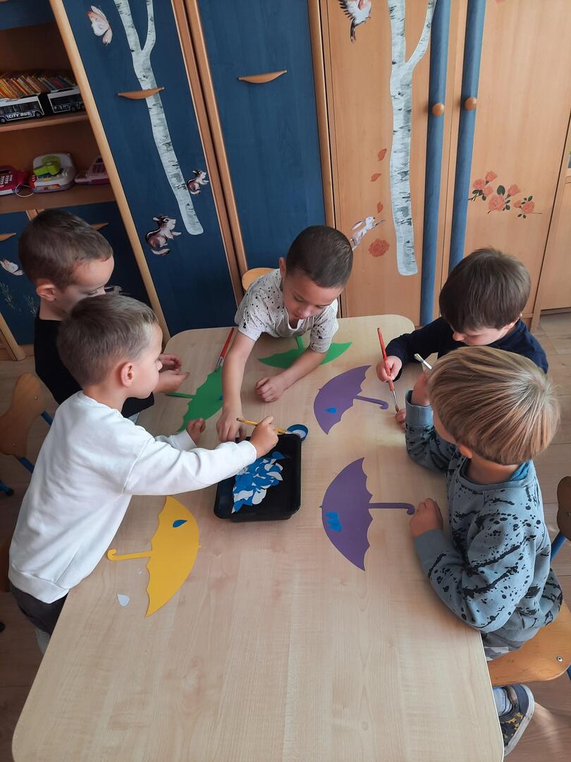 W minionym tygodniu uczestniczyliśmy w zabawach ruchowych, słuchowych i plastycznych związanych z jesienną pogodą. Utrwalaliśmy pojęcia dotyczące zmian pogody w cyklu pór roku oraz dopasowaliśmy ubrania odpowiednie do dnia, podczas którego pada deszcz, i określiliśmy ich nazwy. Zwróciliśmy też uwagę na to, aby okazywać troskę o ludzi i zwierzęta.