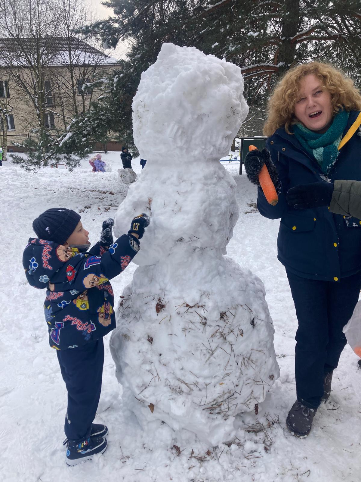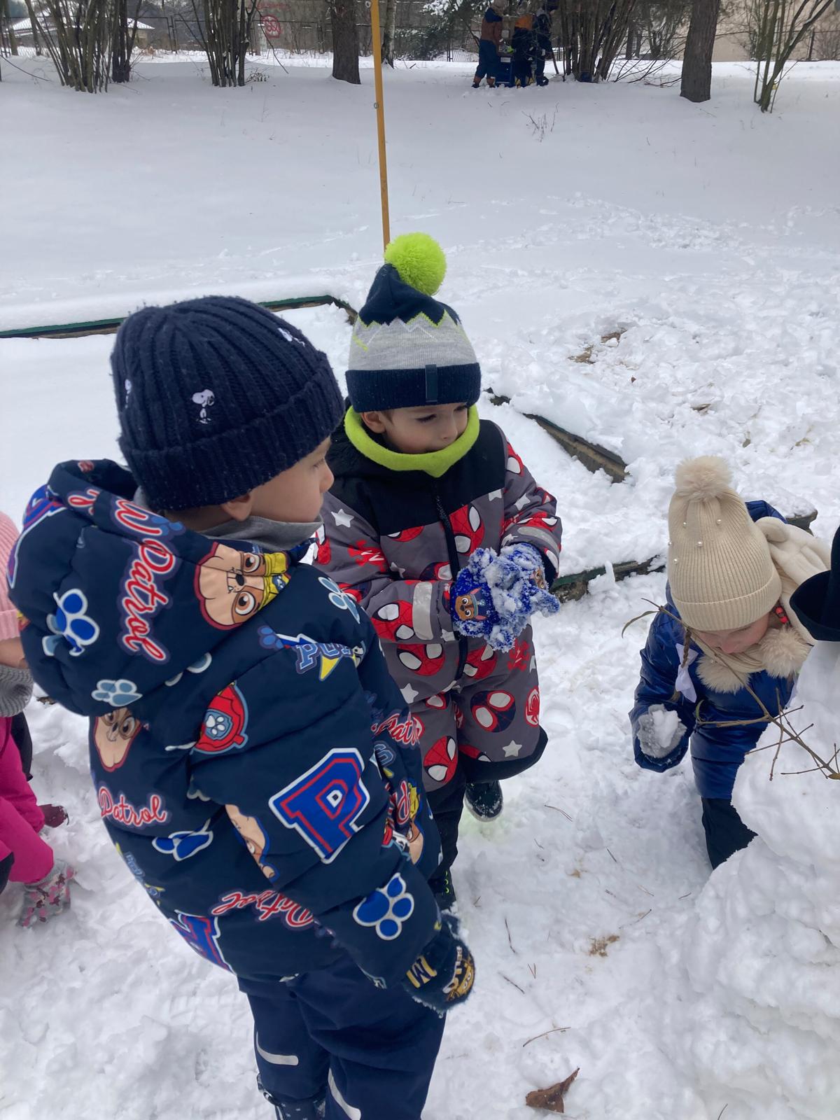 Odkrywcy dzisiaj korzystali z uroków zimy.W ogrodzie przedszkolnym urządziliśmy śnieżne zabawy: wydeptywaliśmy ścieżki w śniegu,byla bitwa na śniezki,orły-aniołki i oczywiscie lepiliśmy bałwana.Powstały dwa: mały i wielki. Snowmen :) Dzieciaki wspólnie toczyly kule i razem z paniami utworzyły snieżne postacie.Ile bylo radości !Super zabawa jak widać !