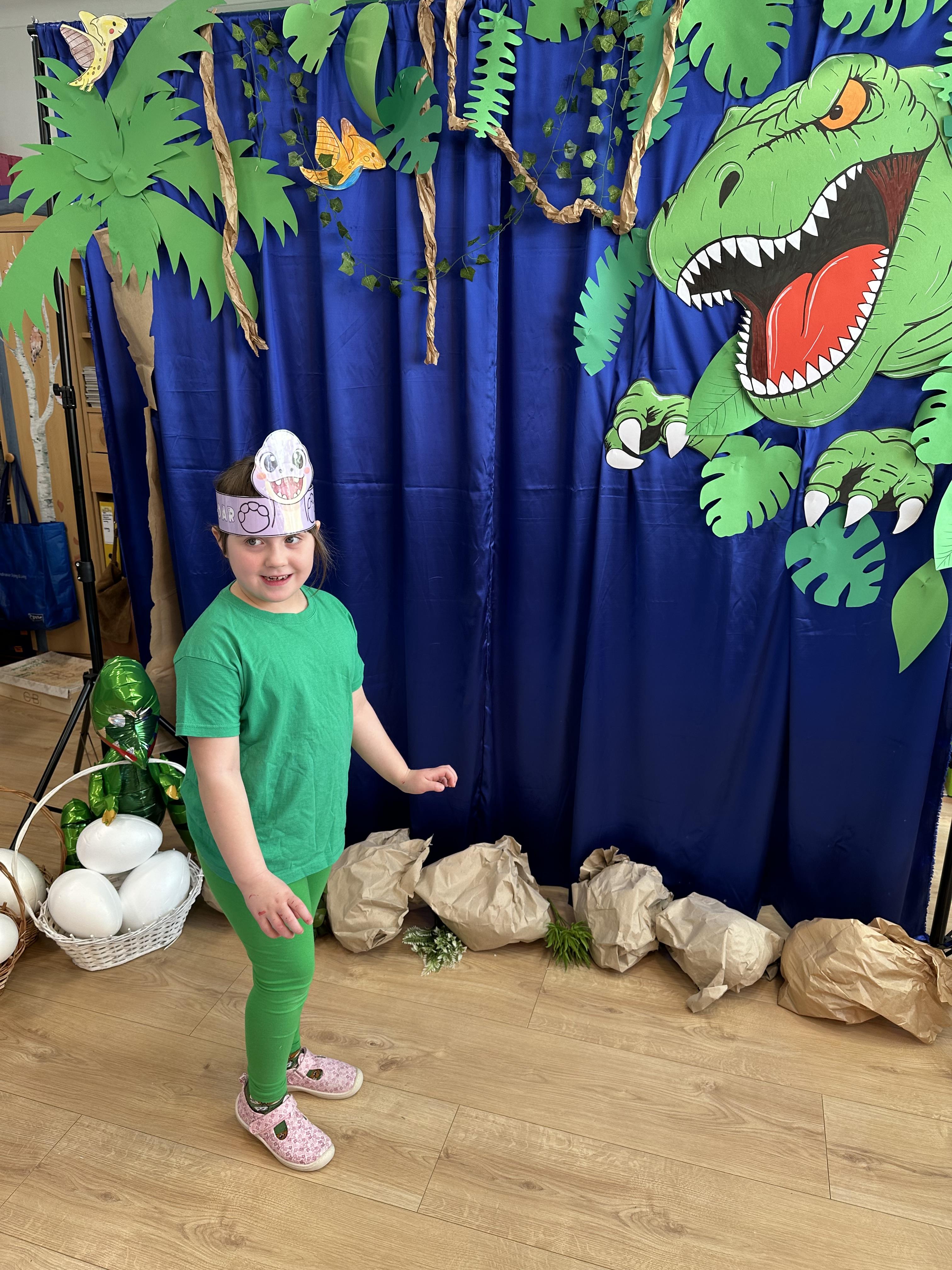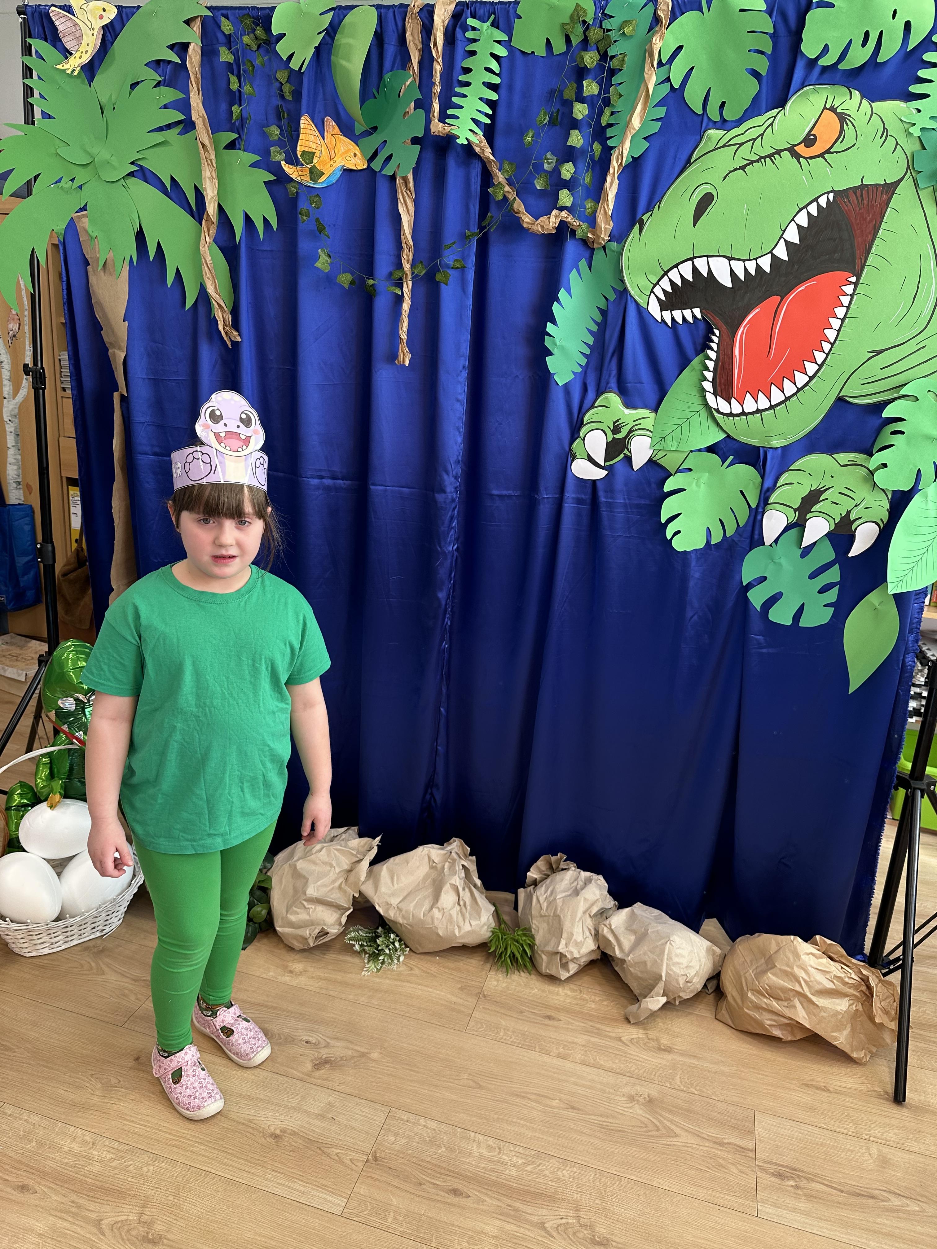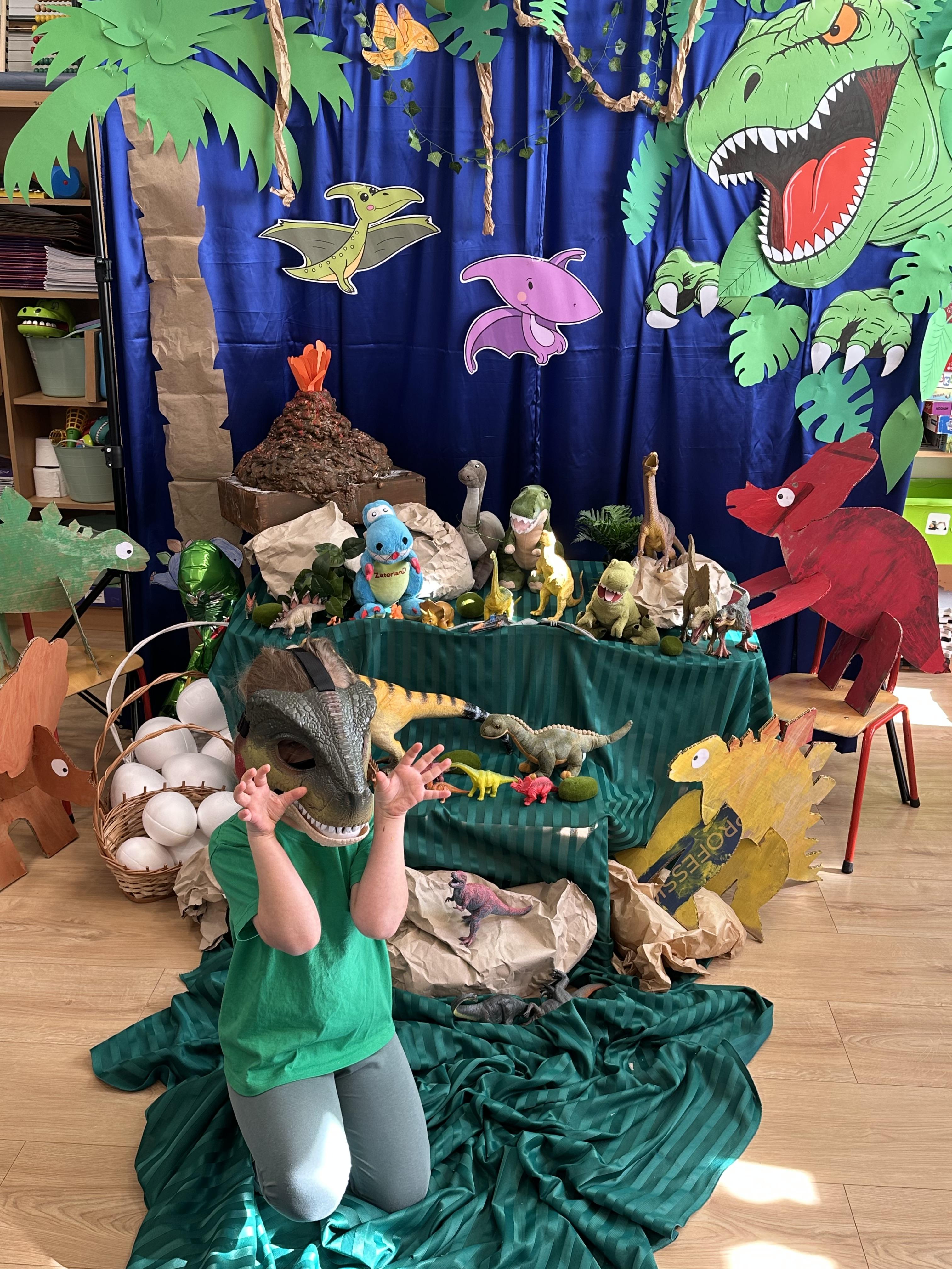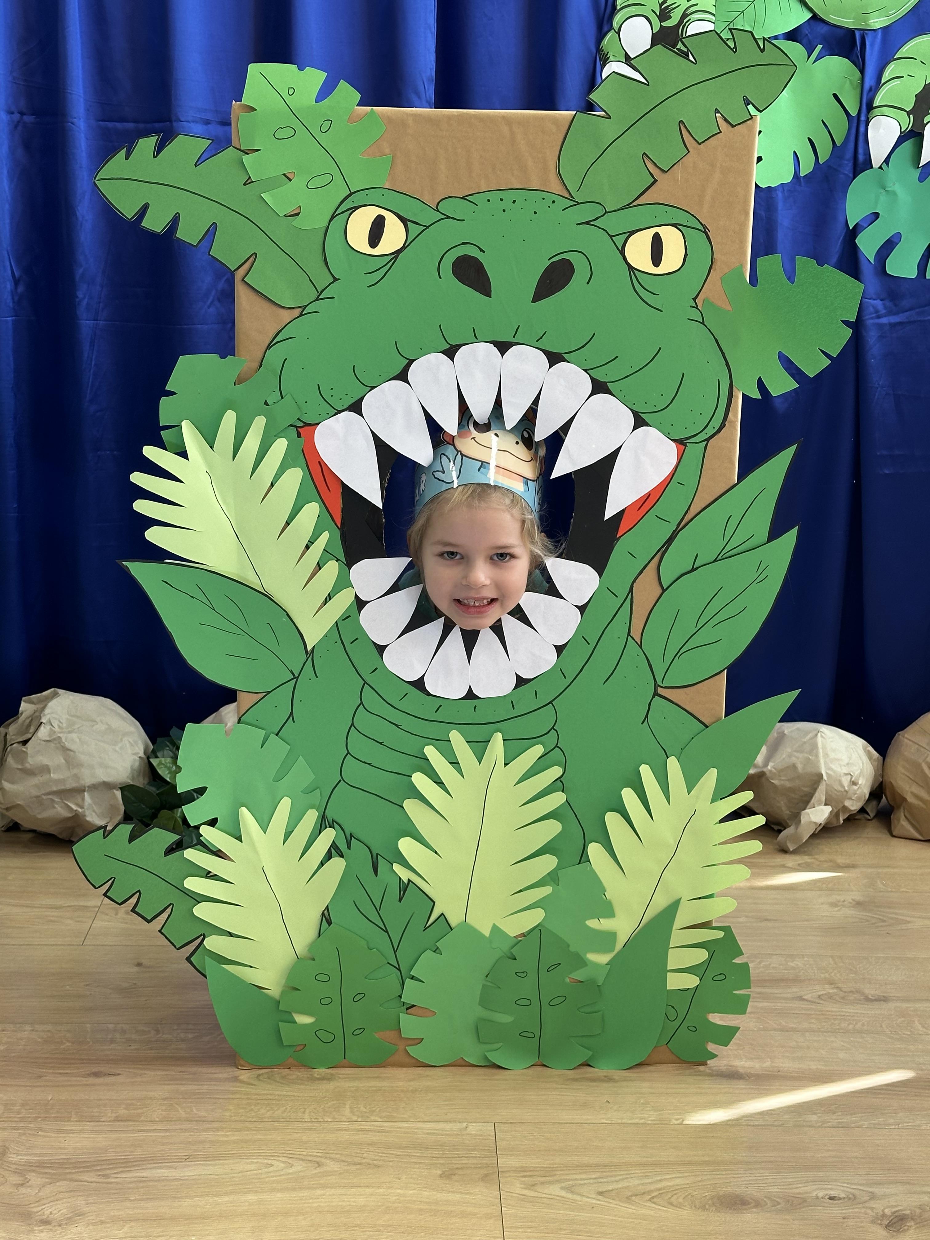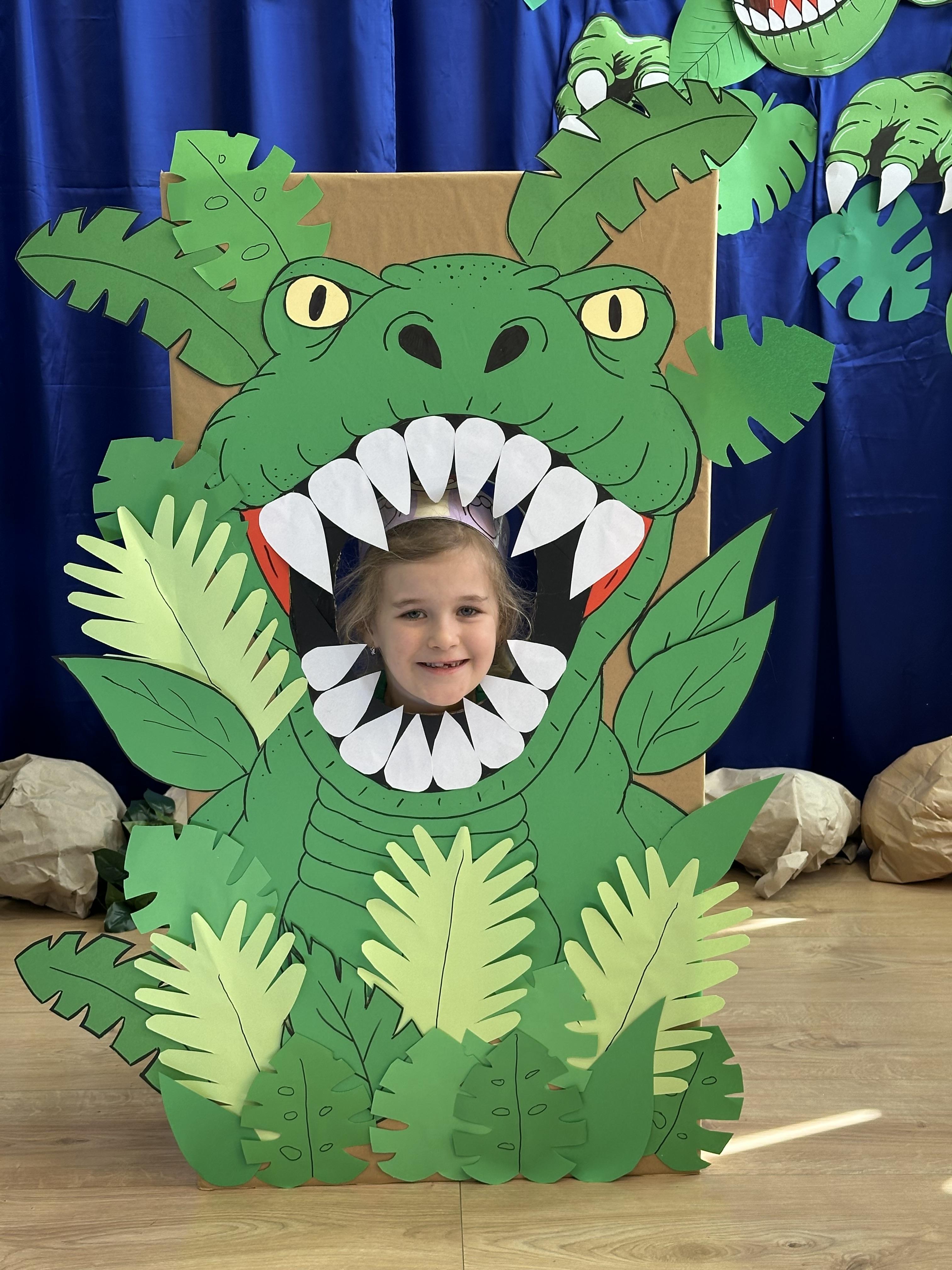 W naszej grupie odbył się Dzień Dinozaura, który dostarczył dzieciom wielu radosnych chwil oraz wzbogacił ich wiedzę o prehistorycznym świecie. Już od samego rana w sali został przygotowany kącik dinozaurów, w którym znalazły się figurki, książki oraz ilustracje przedstawiające różne gatunki tych niezwykłych stworzeń. Jedną z pierwszych aktywności była zabawa w paleontologów. Dzieci z ogromnym zaangażowaniem poszukiwały ukrytych „skamieniałości” i figurek dinozaurów, ucząc się przy tym, na czym polega praca naukowca badającego przeszłość Ziemi. Następnie wspólnie segregowały dinozaury na roślinożerne i mięsożerne, poznając ich charakterystyczne cechy oraz sposób odżywiania. Kolejnym punktem programu były „Dino-malowanki” – przestrzenna praca plastyczna, podczas której dzieci rozwijały swoją wyobraźnię i zdolności manualne. Duże zainteresowanie wzbudził również eksperyment „Wulkan”. Wykorzystując sodę i ocet, dzieci mogły zaobserwować efektowną „erupcję”, co było nie tylko świetną zabawą, ale także ciekawą lekcją przyrody. Nie zabrakło również aktywności ruchowych i gier. W „Wyścigach dinozaurów” dzieci sprawdzały, który dinozaur najszybciej dotrze do mety. Dużo emocji dostarczyła także gra „Dino droga”, w której zadaniem było bezpieczne przeprowadzenie dinozaurów przez prehistoryczny krajobraz pełen przygód i niespodzianek. Na zakończenie odbył się quiz sprawdzający wiadomości o dinozaurach. Dzieci wykazały się dużą wiedzą i zaangażowaniem. Dzień zakończył się wykonaniem pamiątkowej fotografii, która będzie miłym wspomnieniem wspólnie spędzonego czasu. Obchody Dnia Dinozaura były nie tylko okazją do świetnej zabawy, ale również do zdobywania nowych informacji i rozwijania zainteresowań przyrodniczych.