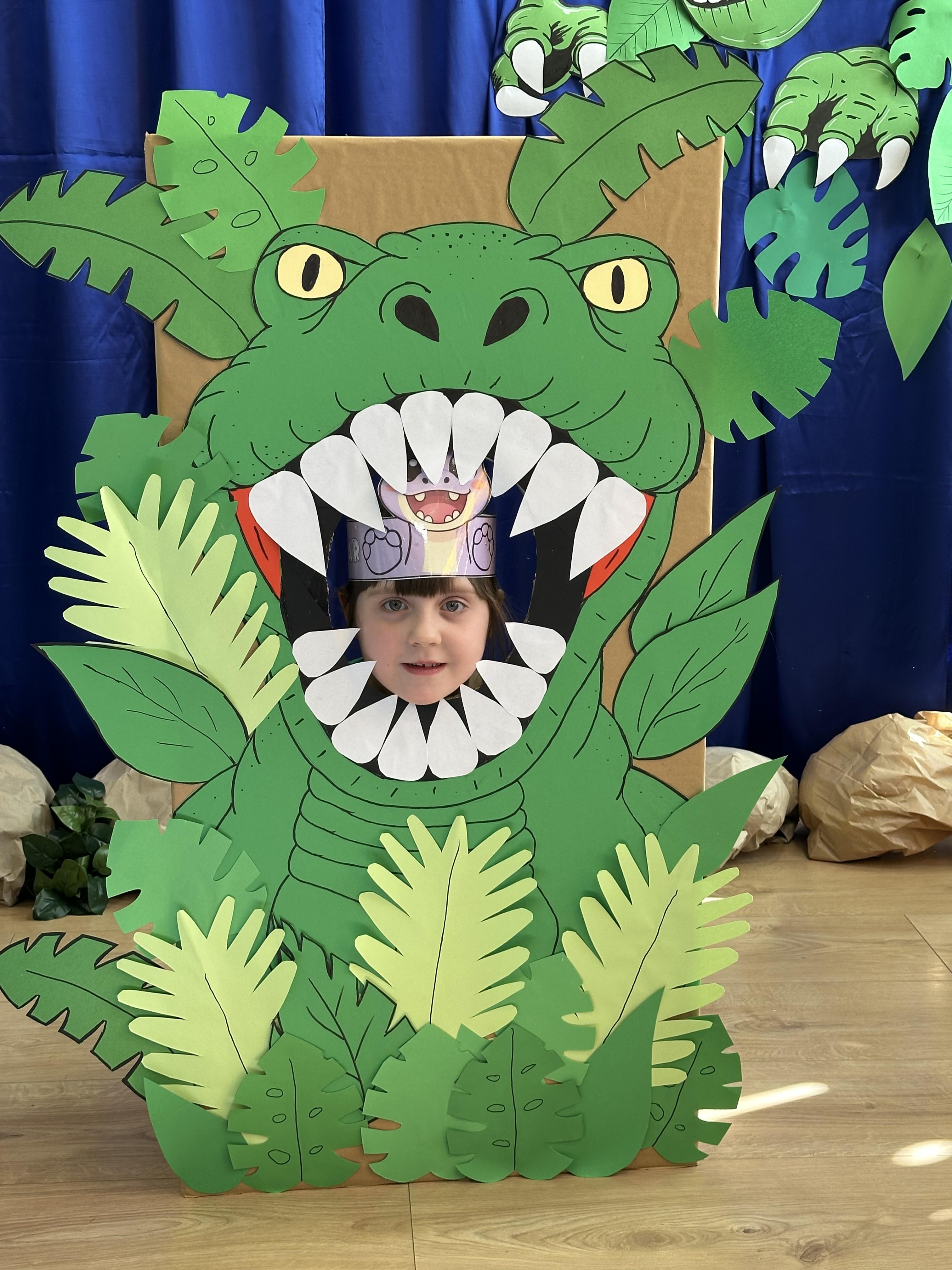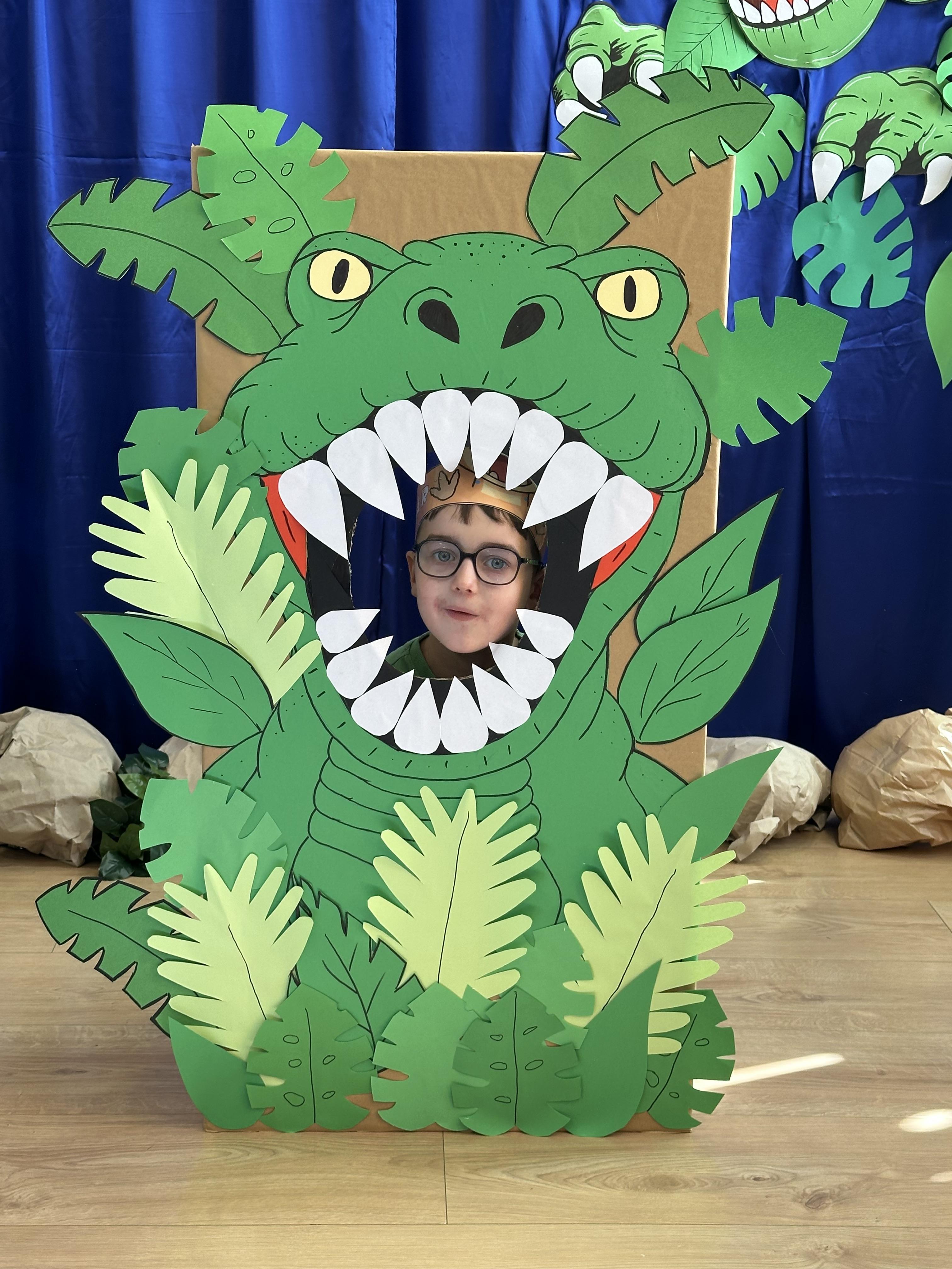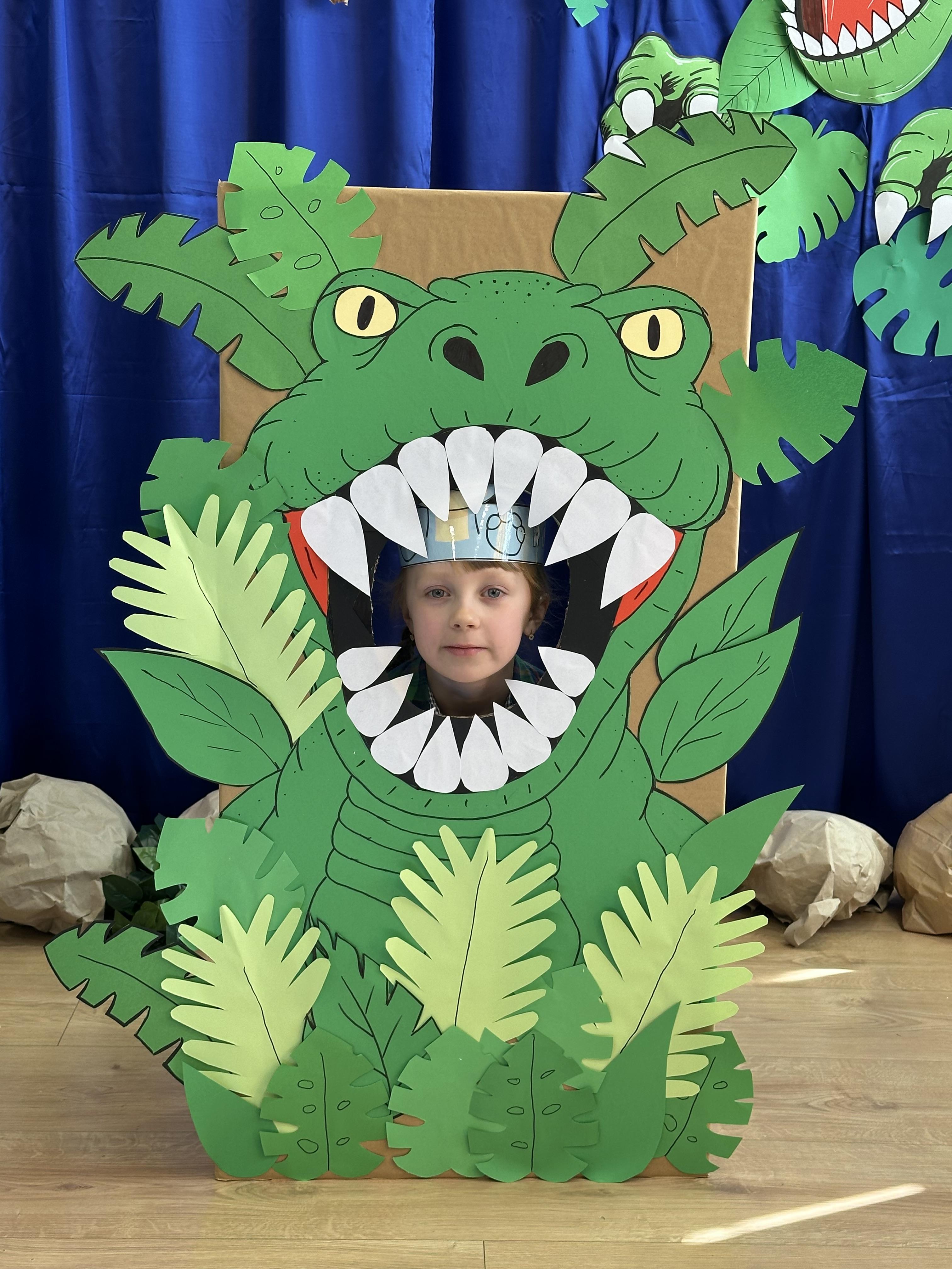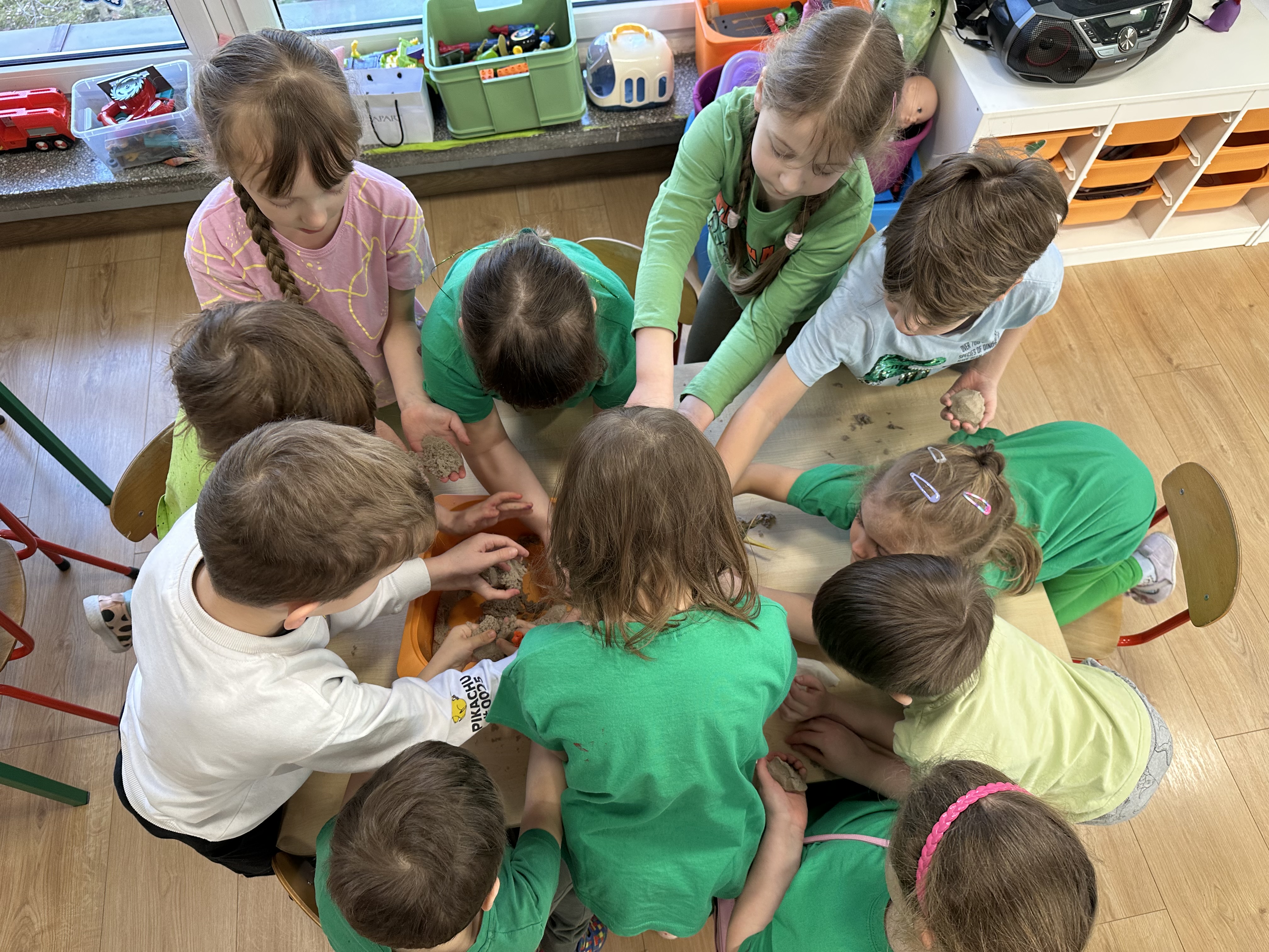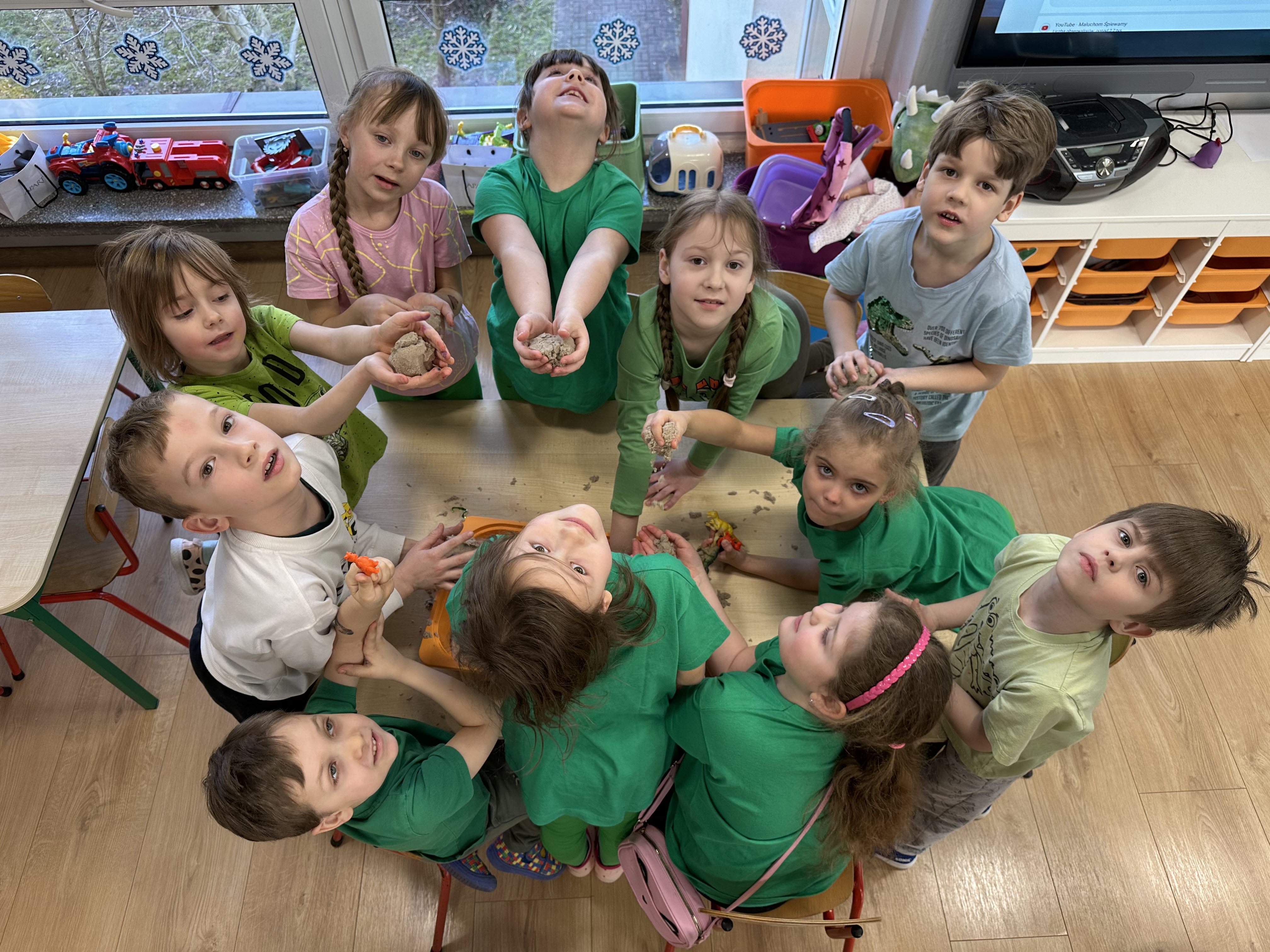 W naszej grupie odbył się Dzień Dinozaura, który dostarczył dzieciom wielu radosnych chwil oraz wzbogacił ich wiedzę o prehistorycznym świecie. Już od samego rana w sali został przygotowany kącik dinozaurów, w którym znalazły się figurki, książki oraz ilustracje przedstawiające różne gatunki tych niezwykłych stworzeń. Jedną z pierwszych aktywności była zabawa w paleontologów. Dzieci z ogromnym zaangażowaniem poszukiwały ukrytych „skamieniałości” i figurek dinozaurów, ucząc się przy tym, na czym polega praca naukowca badającego przeszłość Ziemi. Następnie wspólnie segregowały dinozaury na roślinożerne i mięsożerne, poznając ich charakterystyczne cechy oraz sposób odżywiania. Kolejnym punktem programu były „Dino-malowanki” – przestrzenna praca plastyczna, podczas której dzieci rozwijały swoją wyobraźnię i zdolności manualne. Duże zainteresowanie wzbudził również eksperyment „Wulkan”. Wykorzystując sodę i ocet, dzieci mogły zaobserwować efektowną „erupcję”, co było nie tylko świetną zabawą, ale także ciekawą lekcją przyrody. Nie zabrakło również aktywności ruchowych i gier. W „Wyścigach dinozaurów” dzieci sprawdzały, który dinozaur najszybciej dotrze do mety. Dużo emocji dostarczyła także gra „Dino droga”, w której zadaniem było bezpieczne przeprowadzenie dinozaurów przez prehistoryczny krajobraz pełen przygód i niespodzianek. Na zakończenie odbył się quiz sprawdzający wiadomości o dinozaurach. Dzieci wykazały się dużą wiedzą i zaangażowaniem. Dzień zakończył się wykonaniem pamiątkowej fotografii, która będzie miłym wspomnieniem wspólnie spędzonego czasu. Obchody Dnia Dinozaura były nie tylko okazją do świetnej zabawy, ale również do zdobywania nowych informacji i rozwijania zainteresowań przyrodniczych.