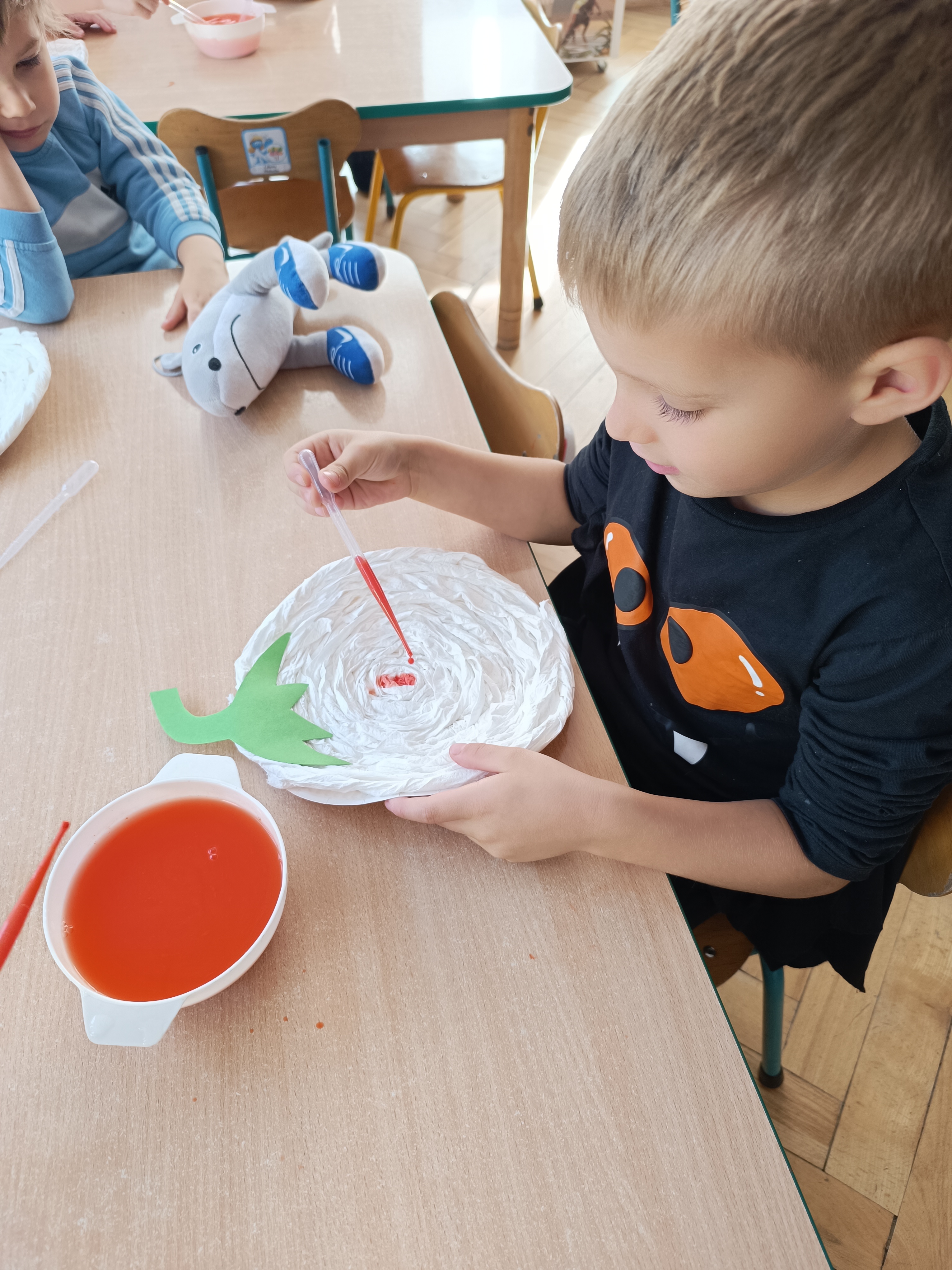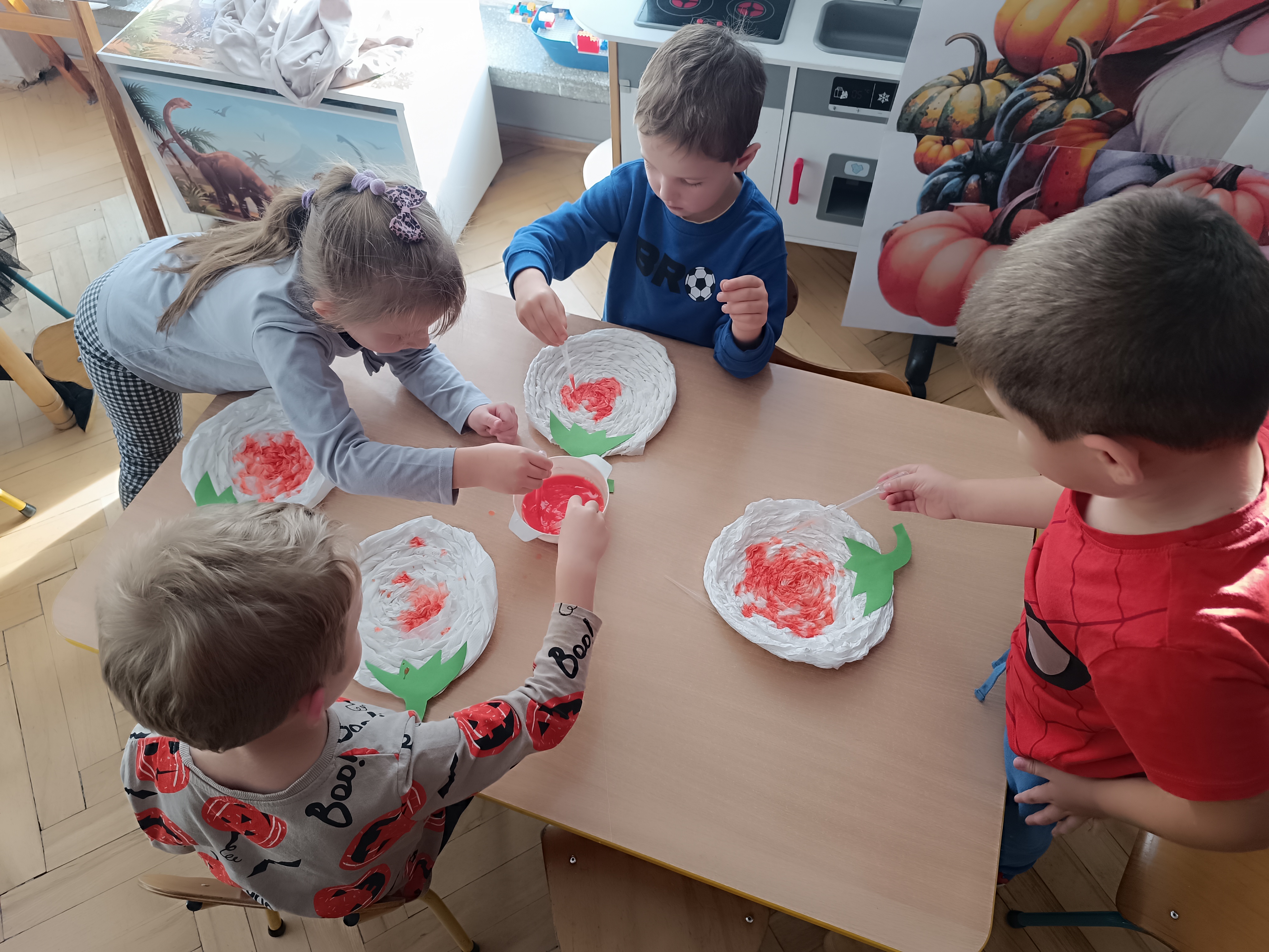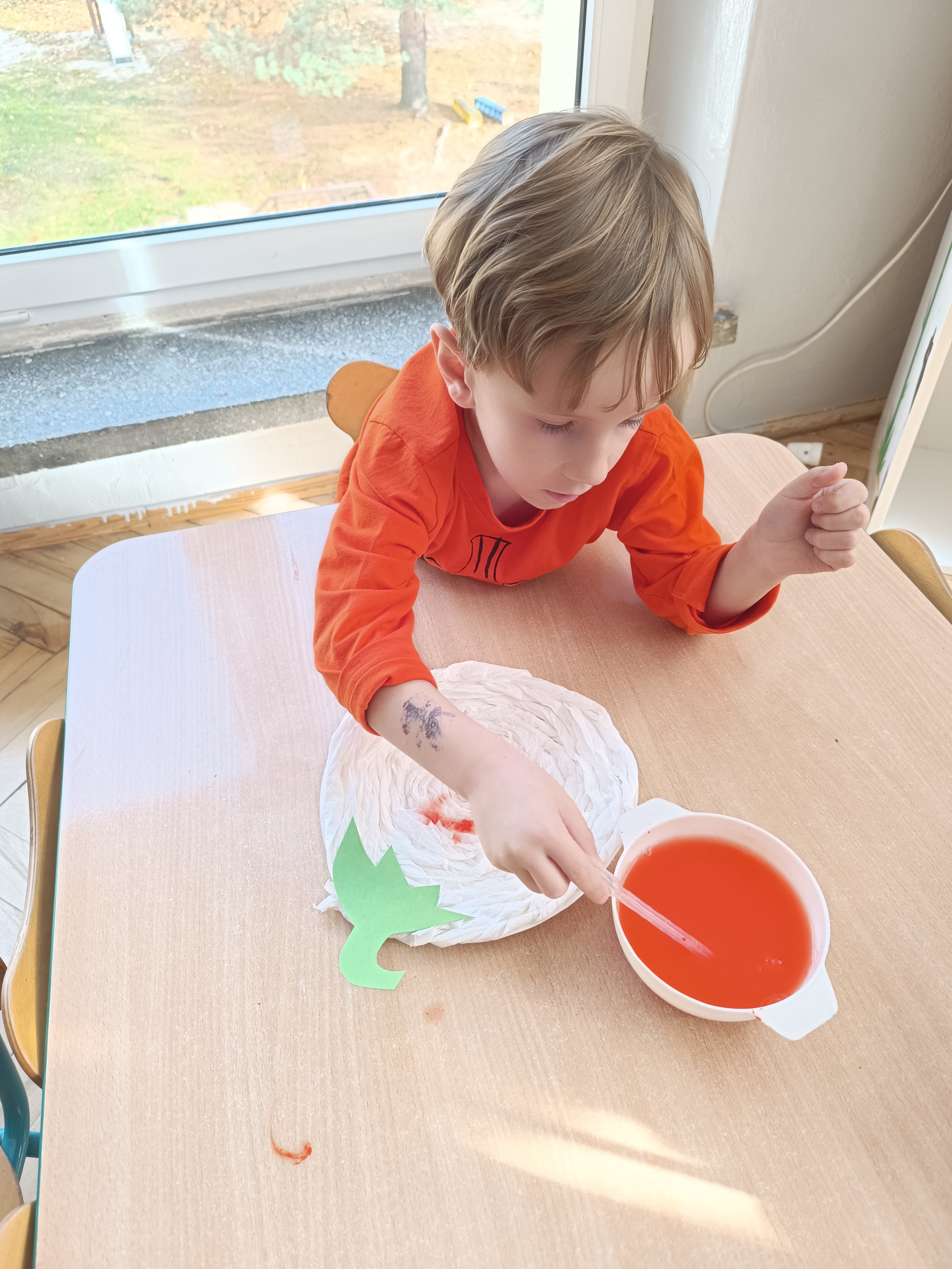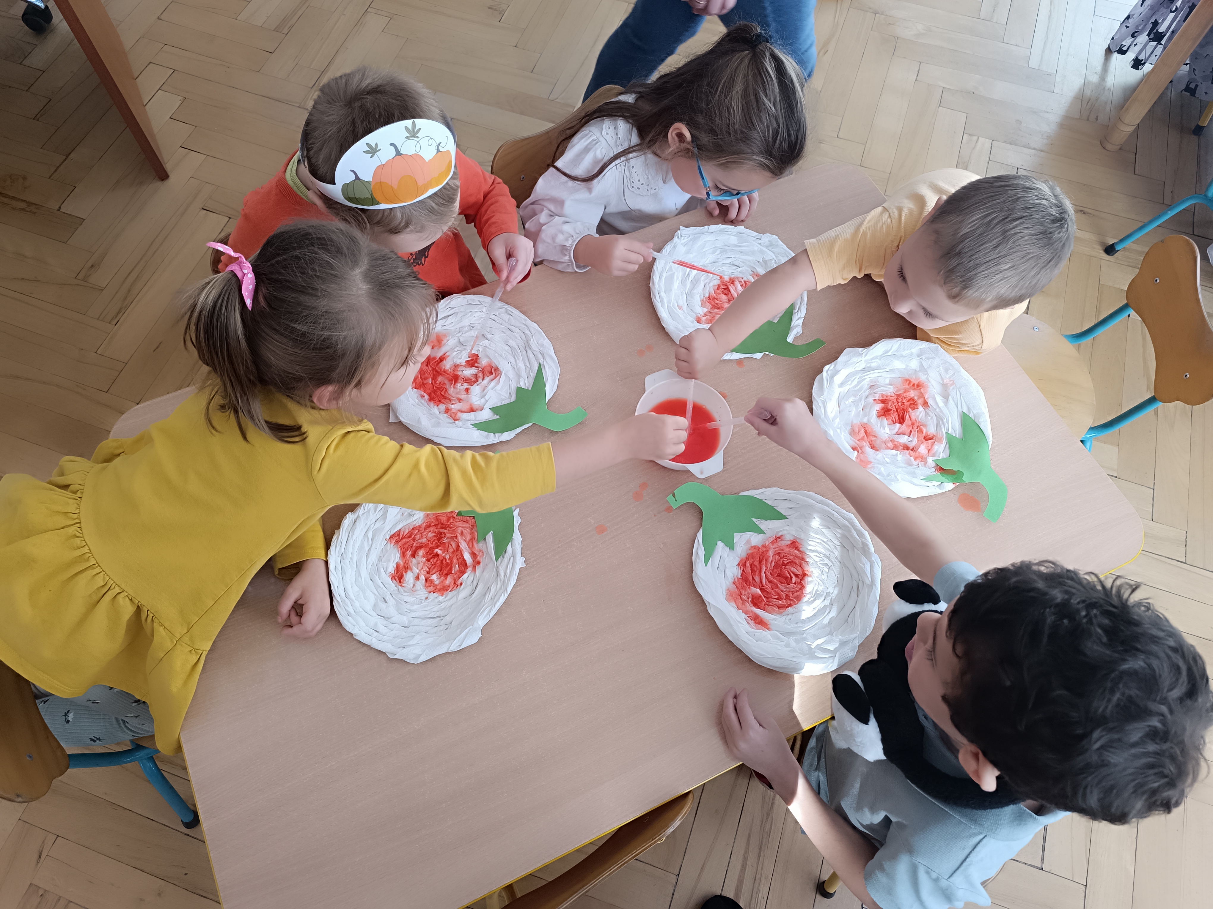 Na sam koniec zajęć zrobiliśmy piękna pracę plastyczną, dynię malowaną pipetami.