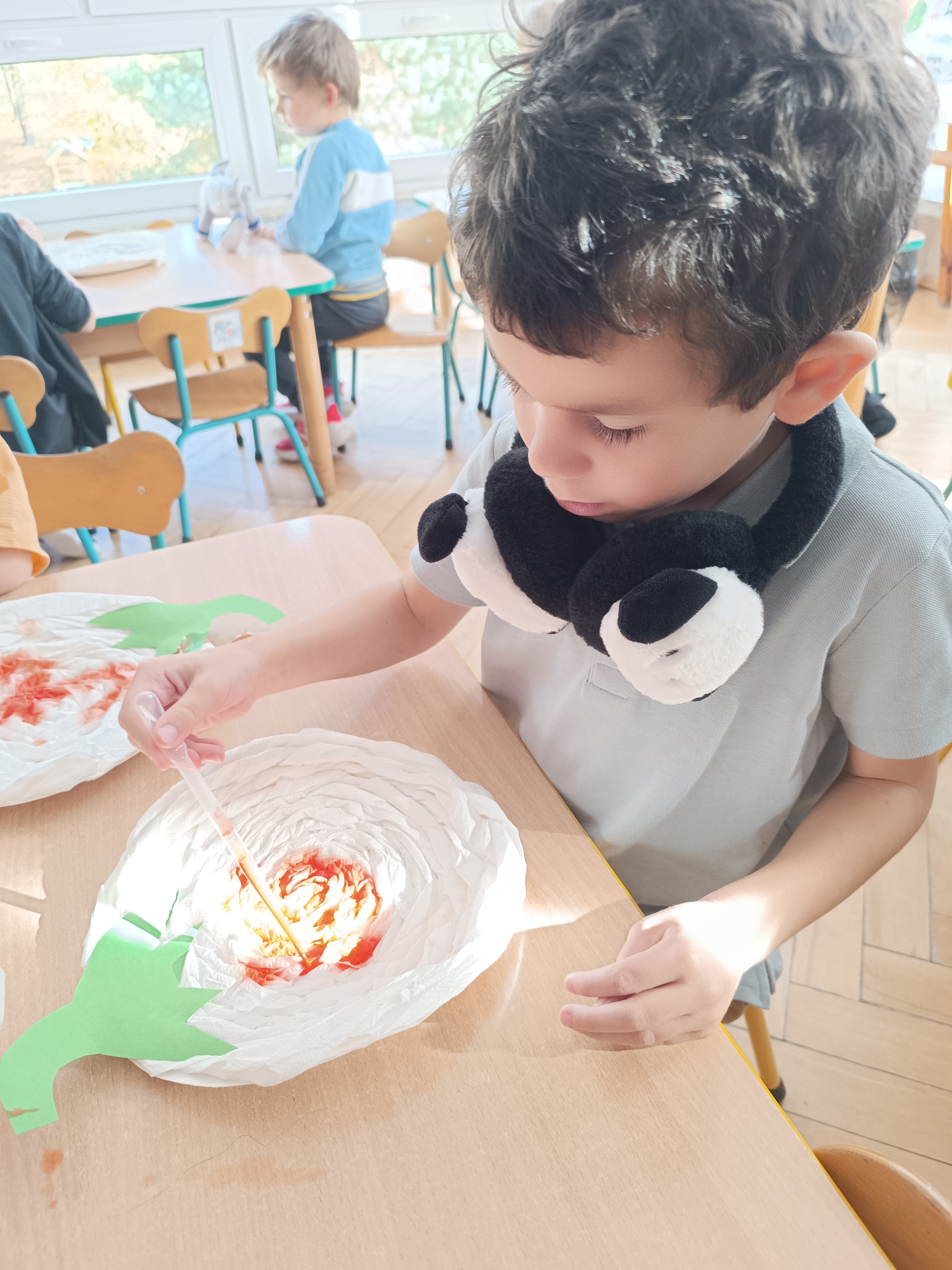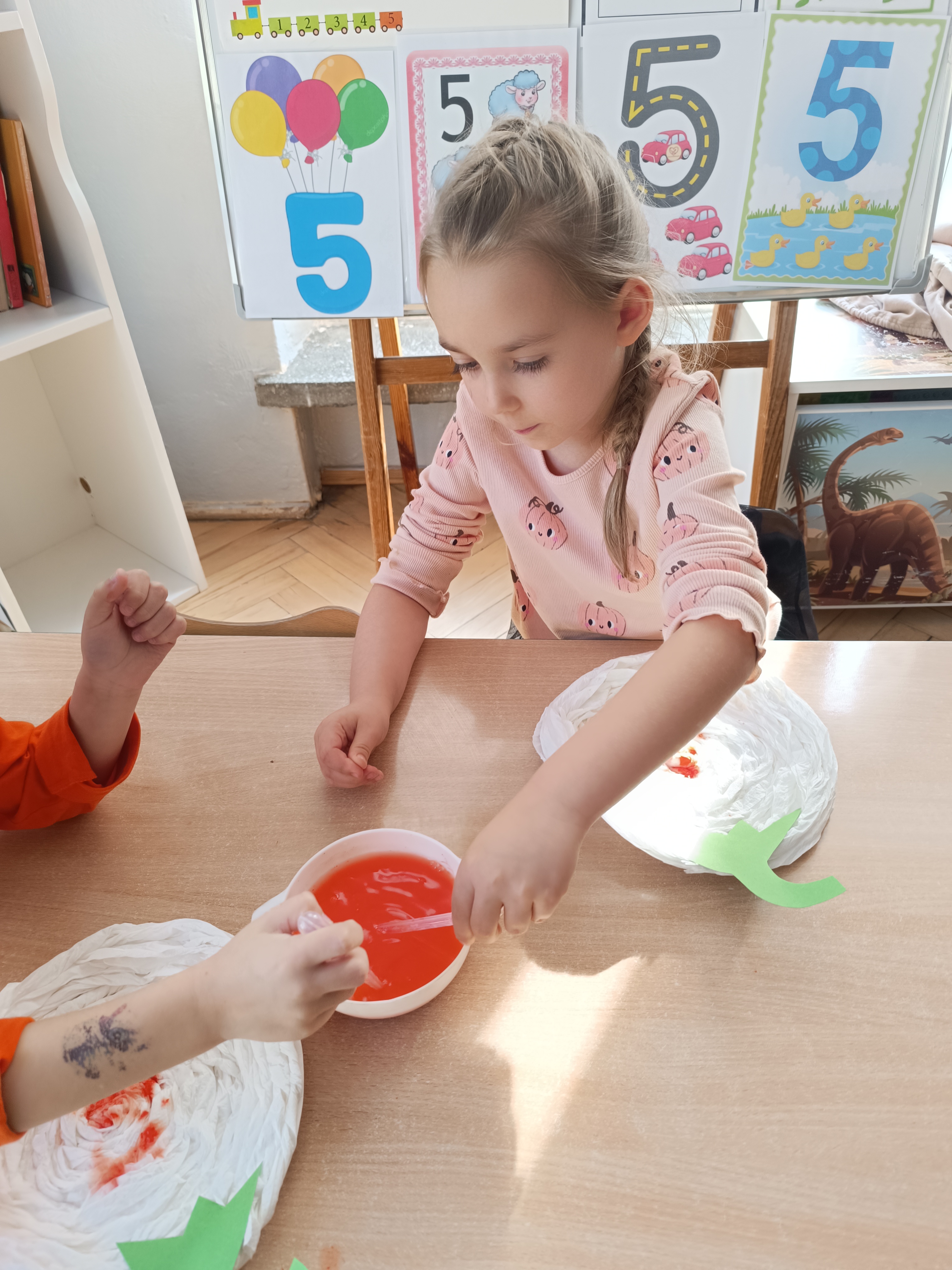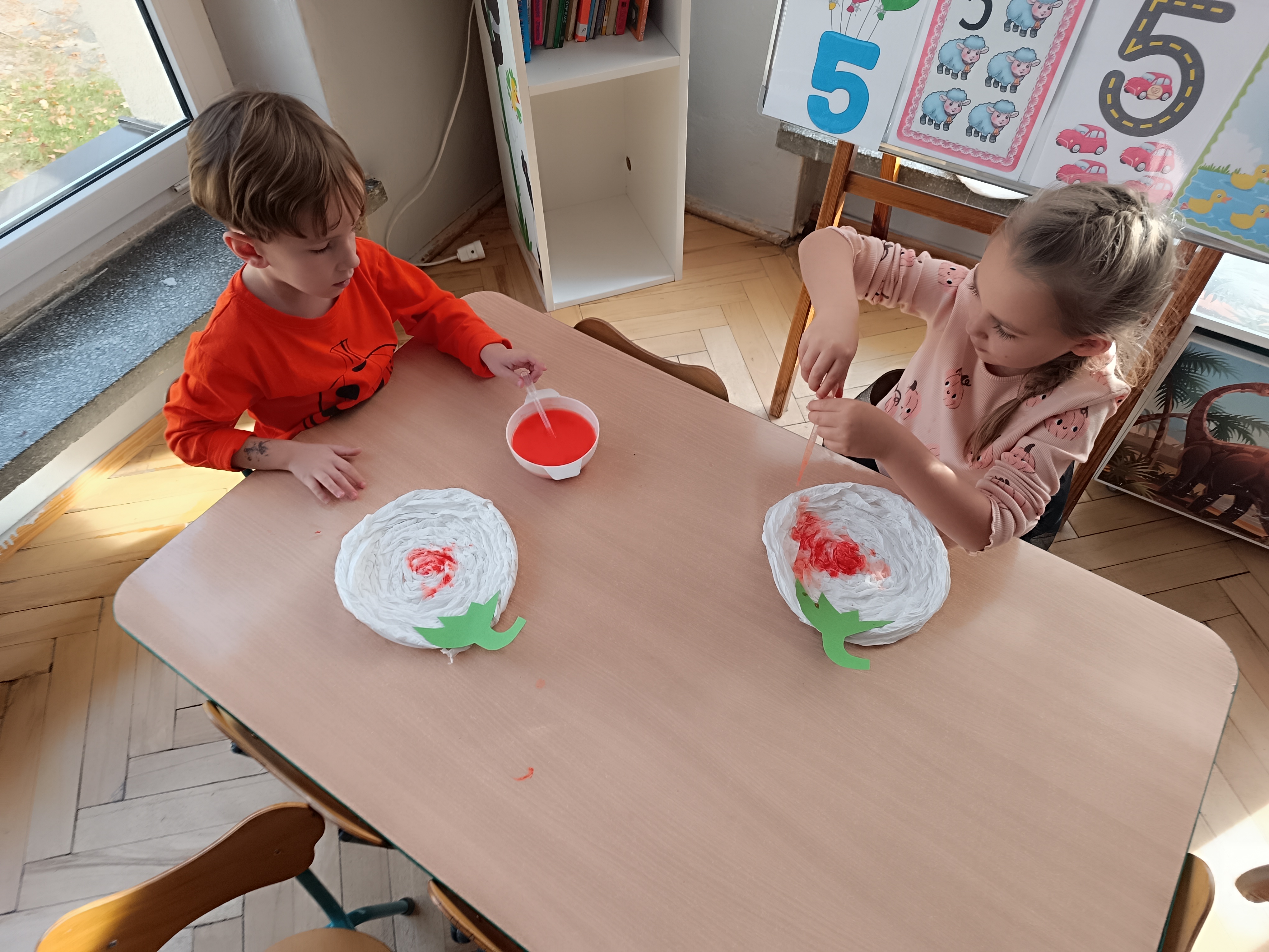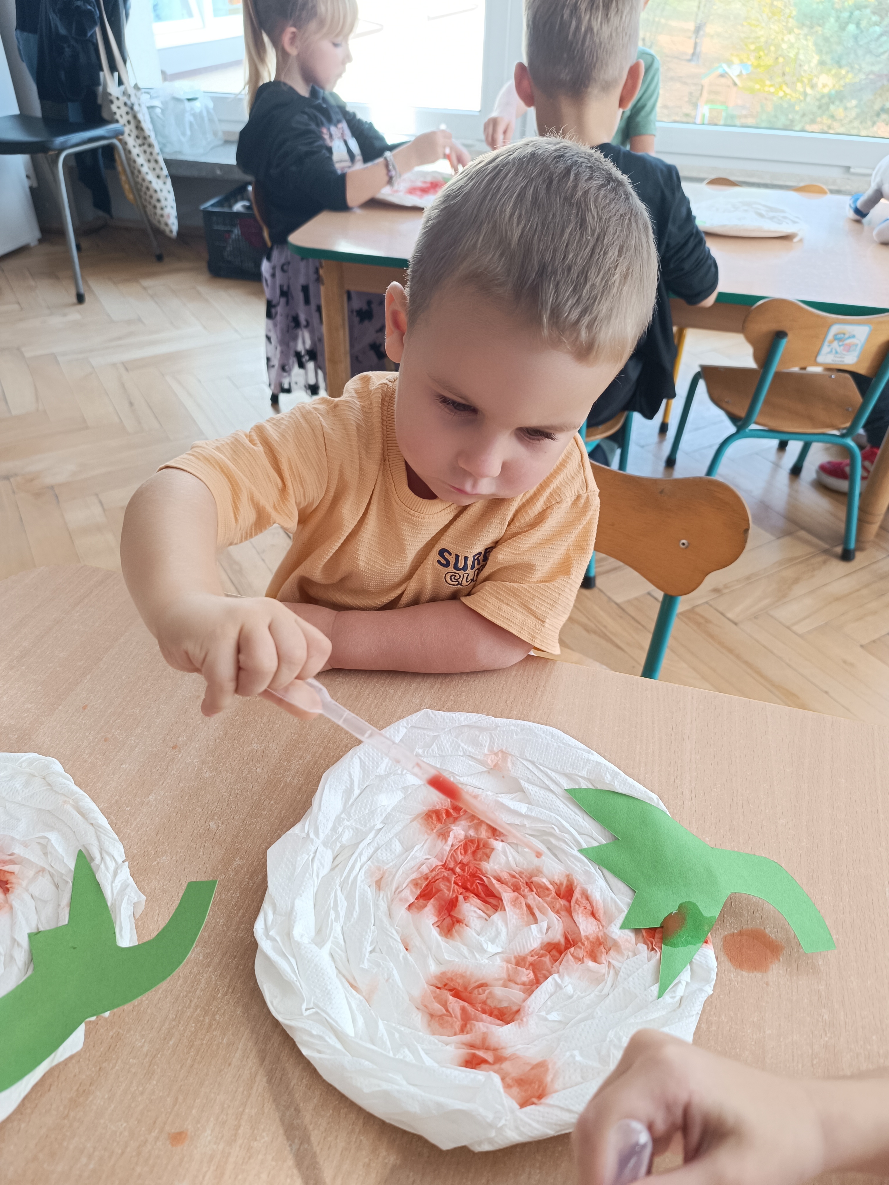 Na sam koniec zajęć zrobiliśmy piękna pracę plastyczną, dynię malowaną pipetami.
