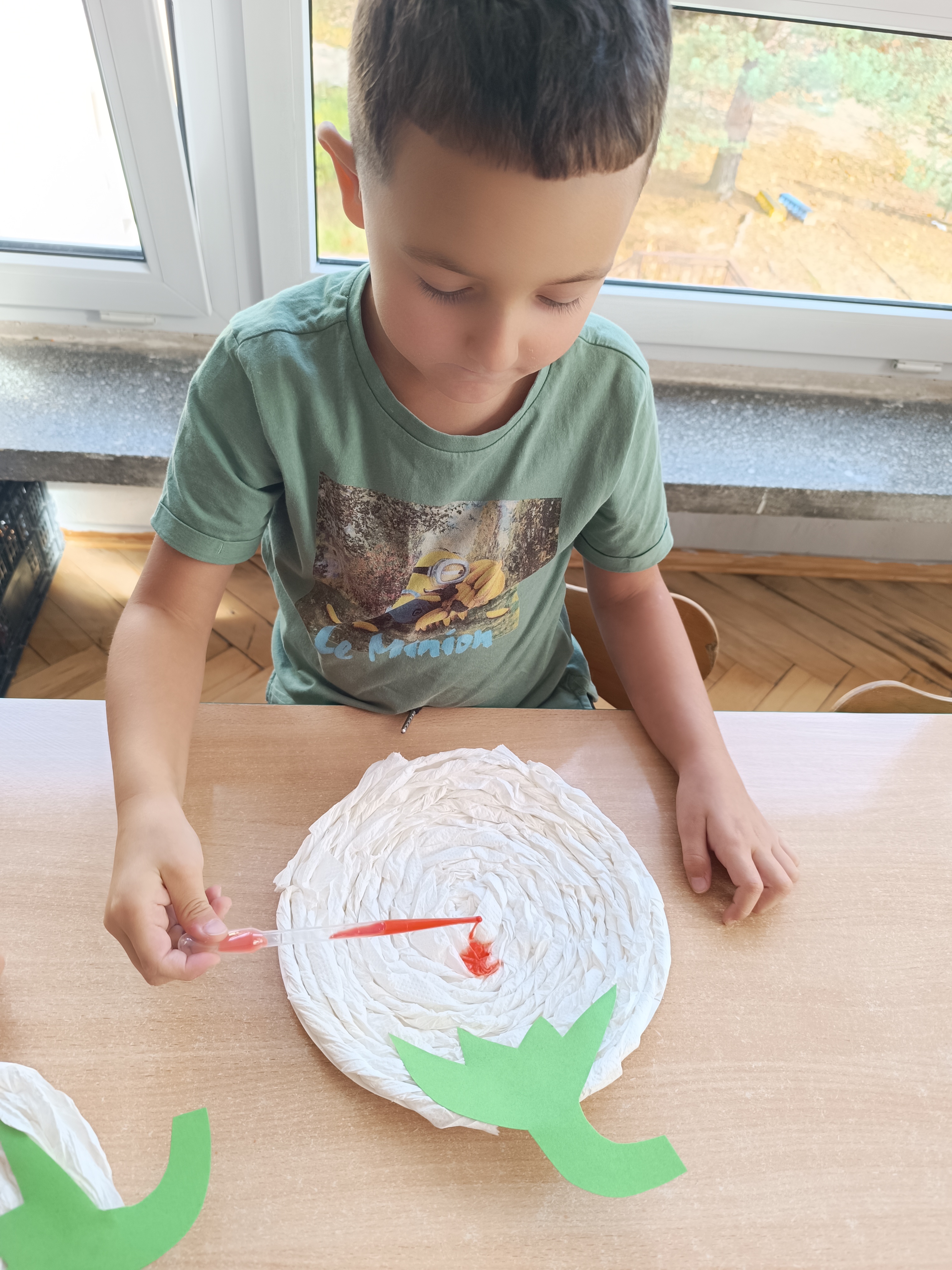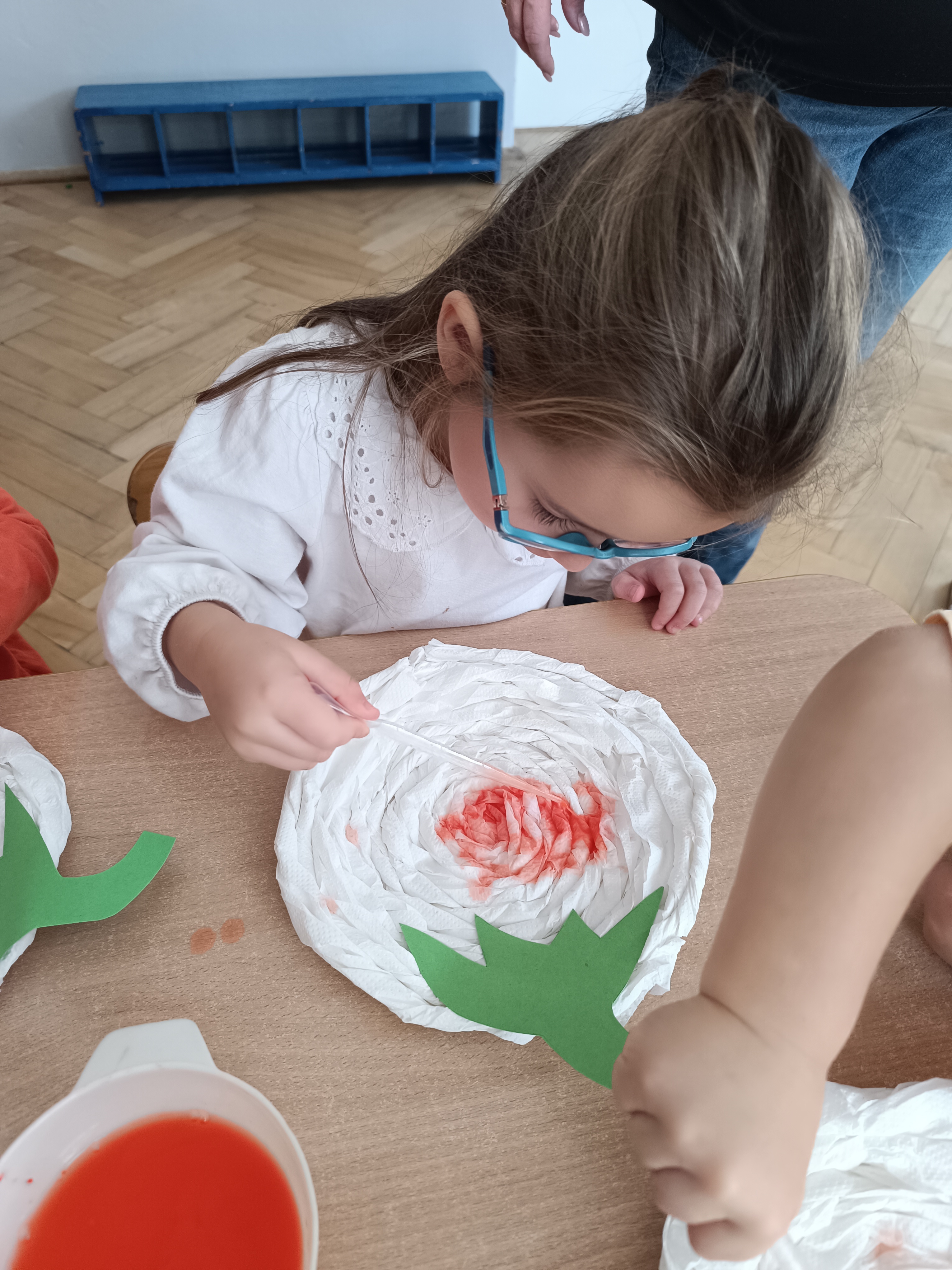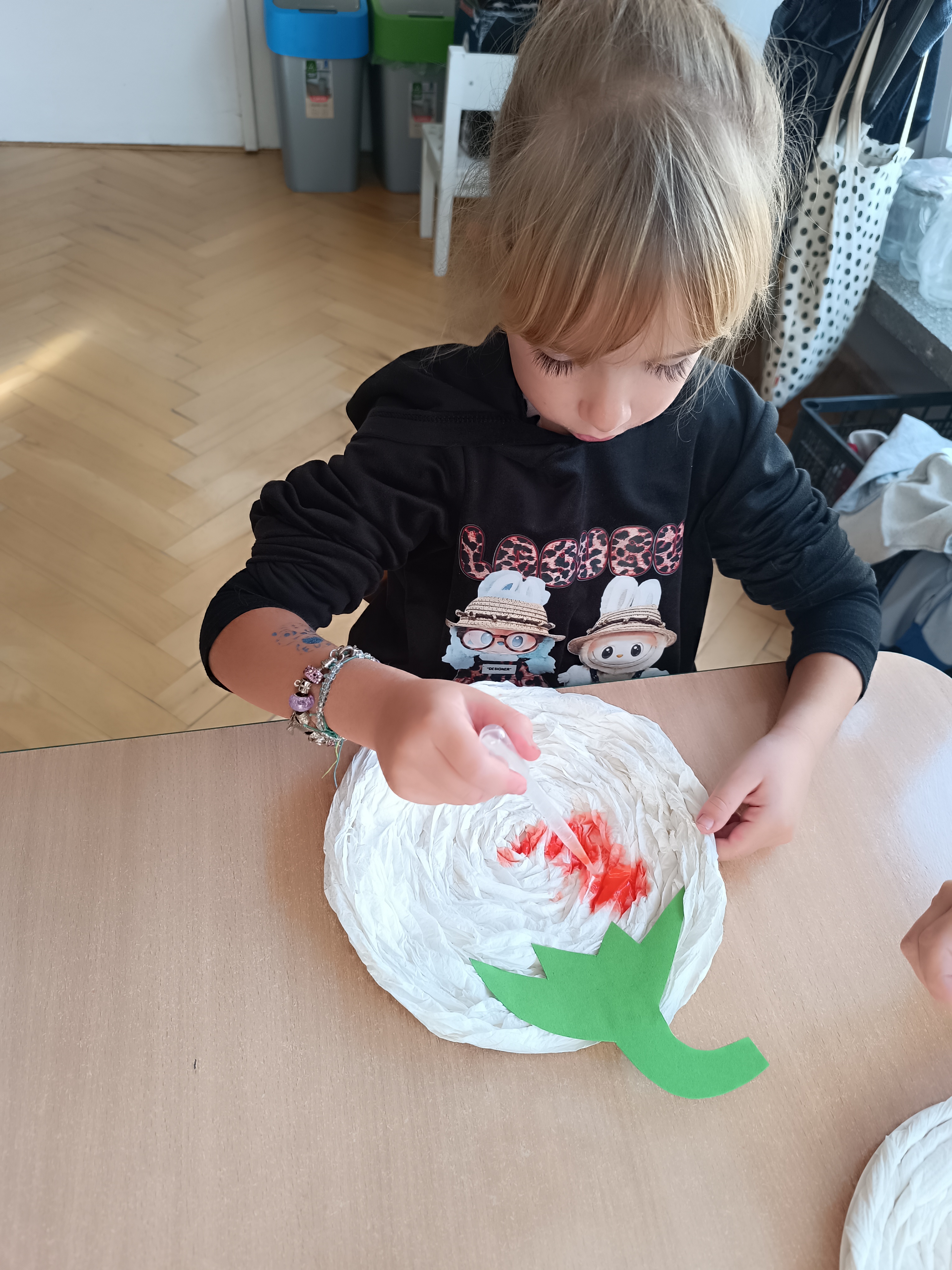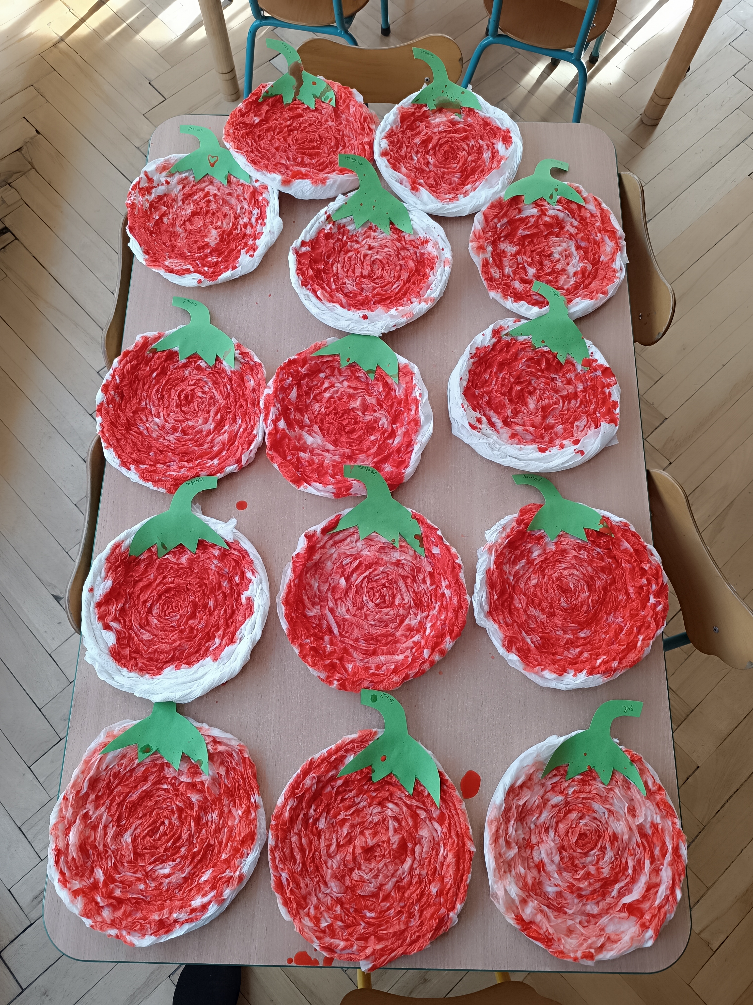 Na sam koniec zajęć zrobiliśmy piękna pracę plastyczną, dynię malowaną pipetami.