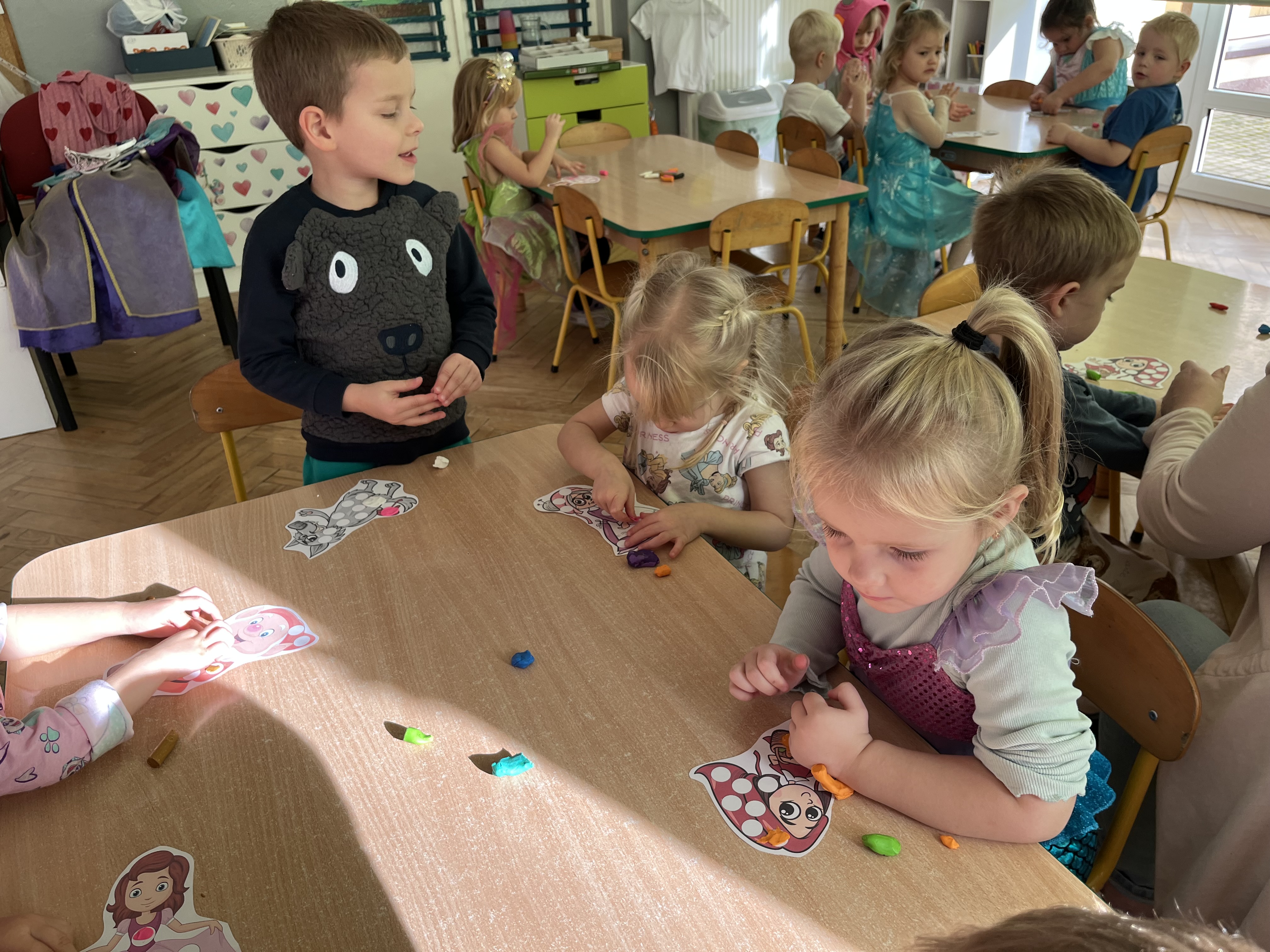 Dziś w naszym przedszkolu zrobiło się naprawdę bajkowo! ? Z okazji Dnia Postaci z Bajek dzieci przeniosły się do magicznego świata ulubionych bohaterów. Na początek czekały na wszystkich bajkowe zagadki, dzięki którym przedszkolaki mogły sprawdzić, jak dobrze znają bohaterów ze znanych i lubianych bajek. Okazało się, że nasi mali eksperci rozpoznają nawet najtrudniejsze postacie! ?♀️?? Następnie dzieci wykonały piękne prace plastyczne, inspirowane swoimi ulubionymi bajkami. Było dużo kolorów, błysku i fantazji – powstały prawdziwe dzieła sztuki! ??️ Nie zabrakło też zabawy i tańców – przedszkolaki bawiły się przy bajkowych piosenkach, tańczyły, śmiały się i czarowały dobry humor przez cały dzień. ???