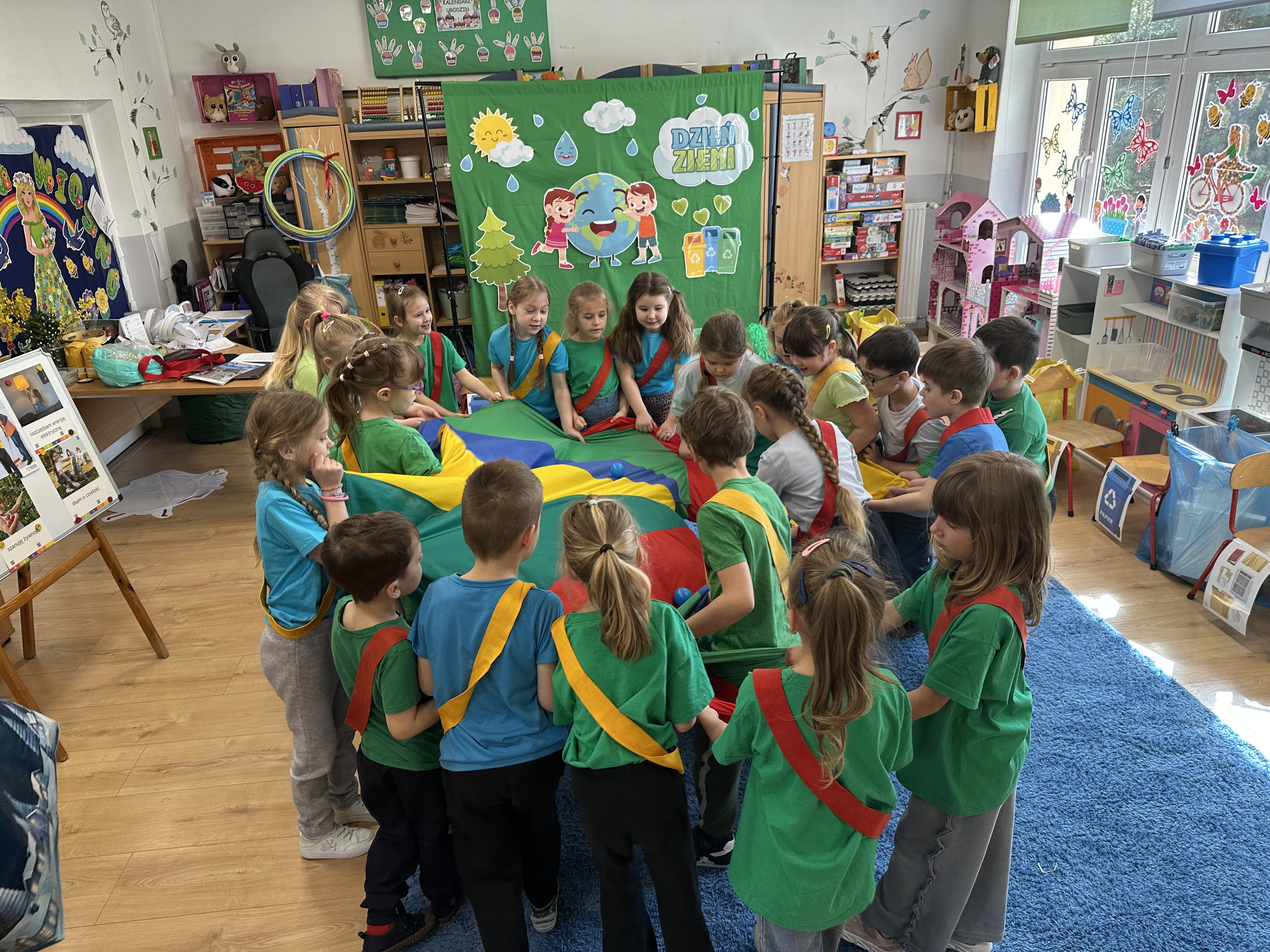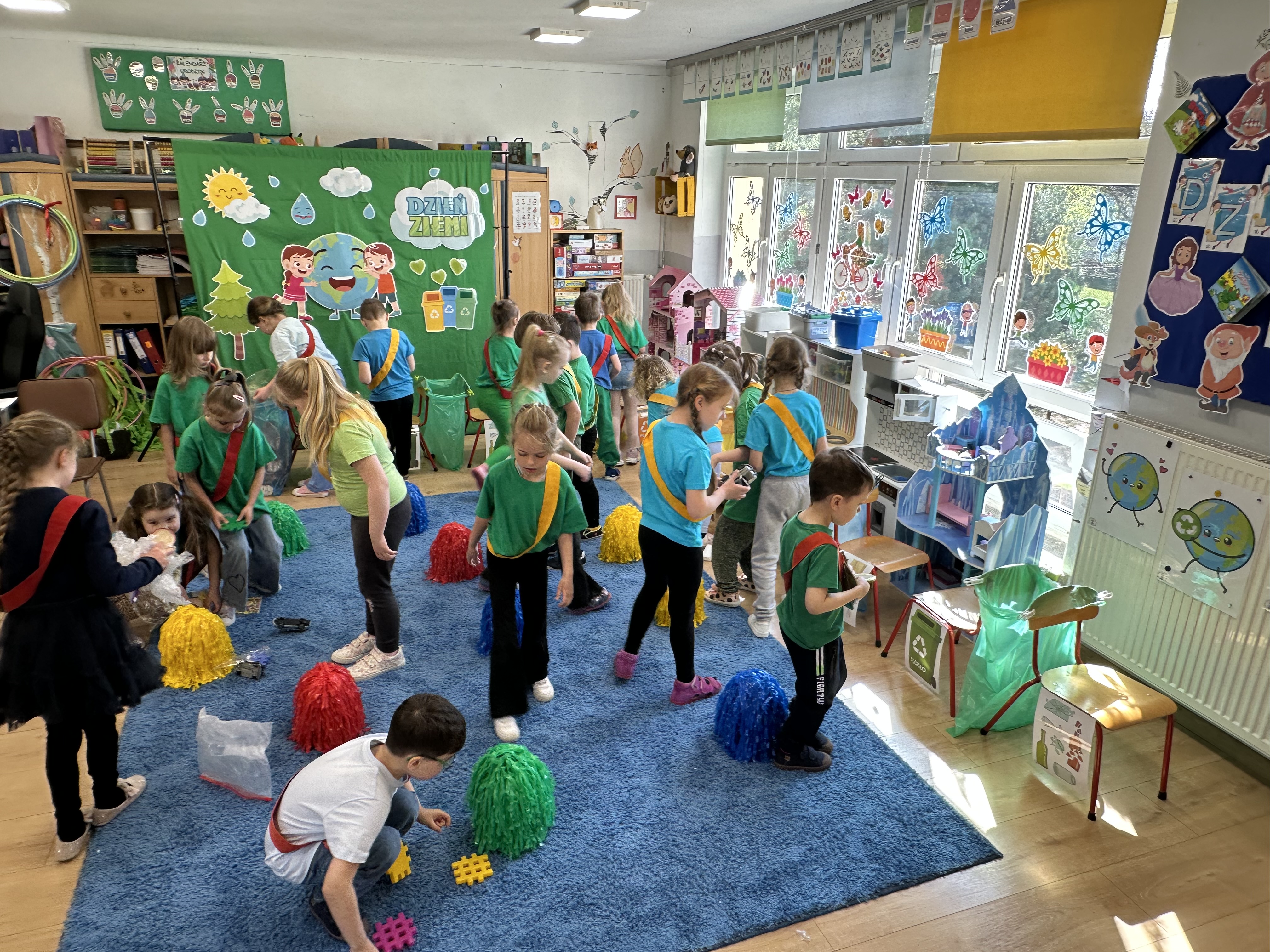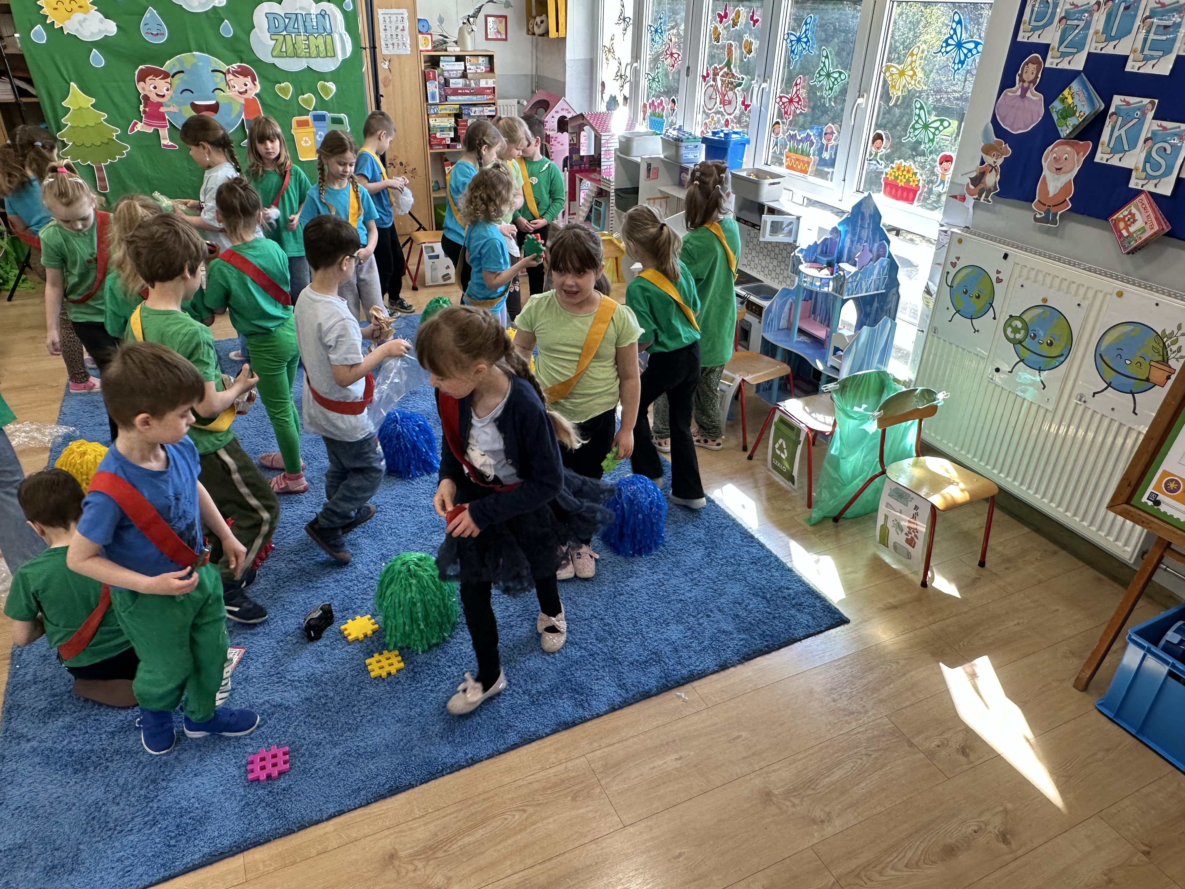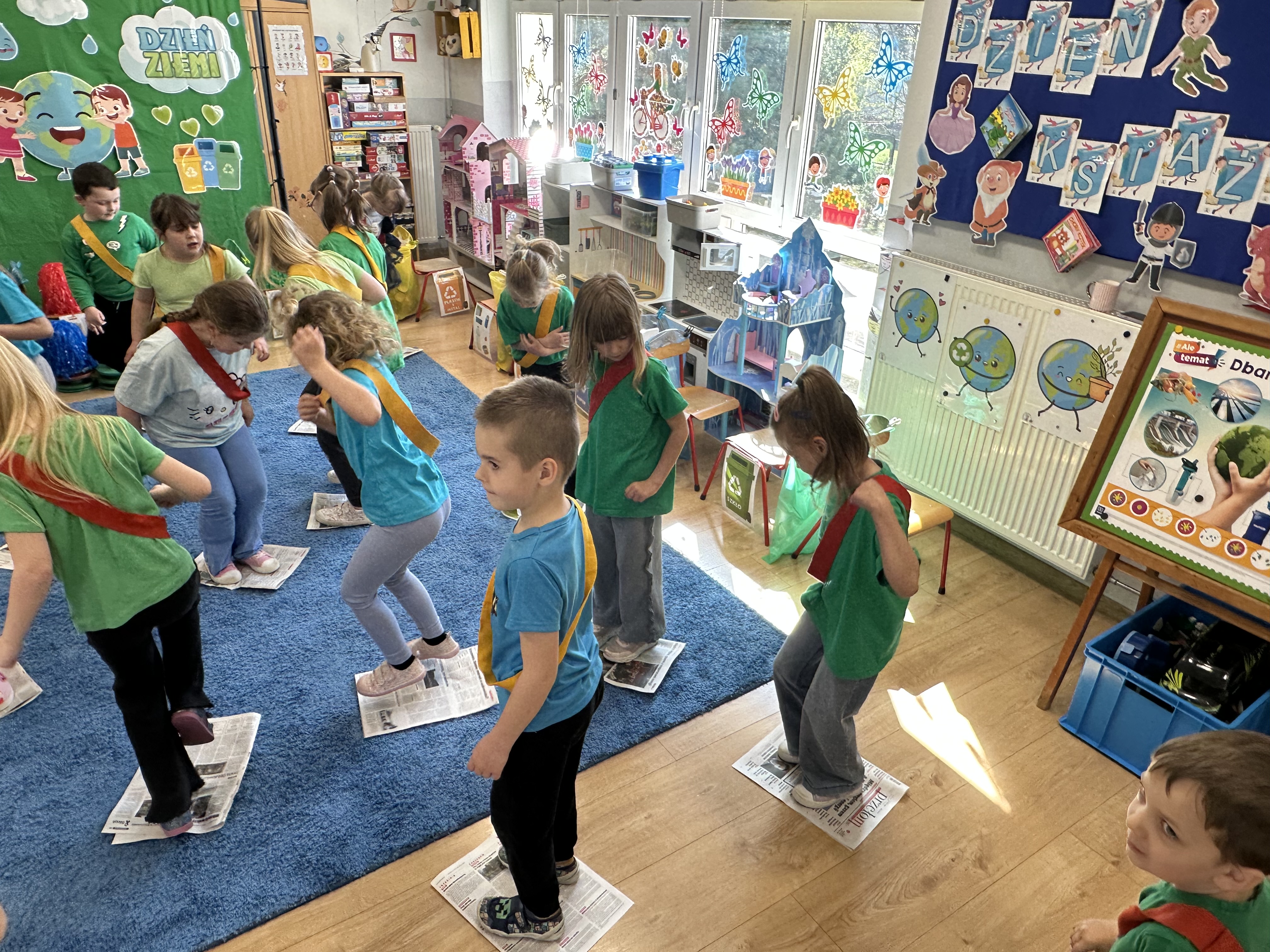 Z okazji Dnia Ziemi w grupie ,,Pszczółek” odbyły się sytuacje edukacyjne, których celem było kształtowanie postaw proekologicznych wśród dzieci poprzez zabawę, ruch i wspólne działania.