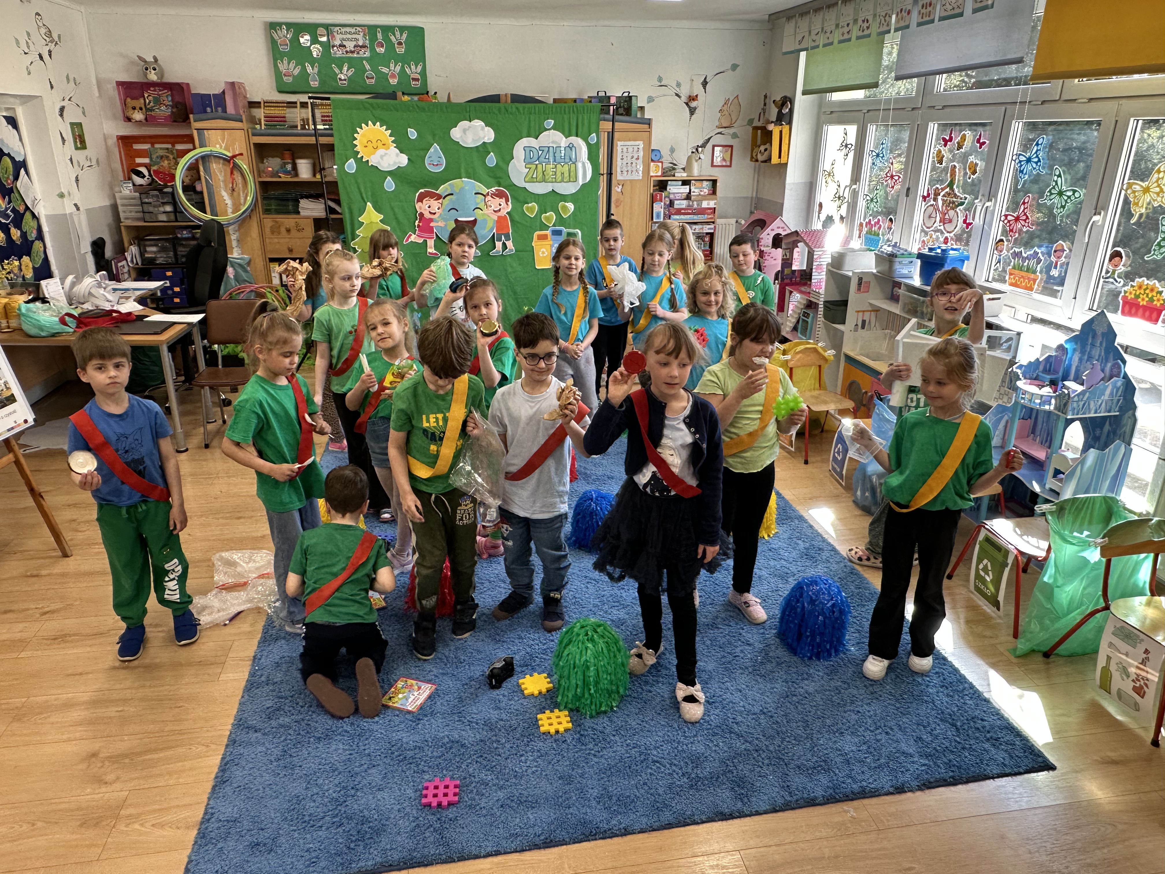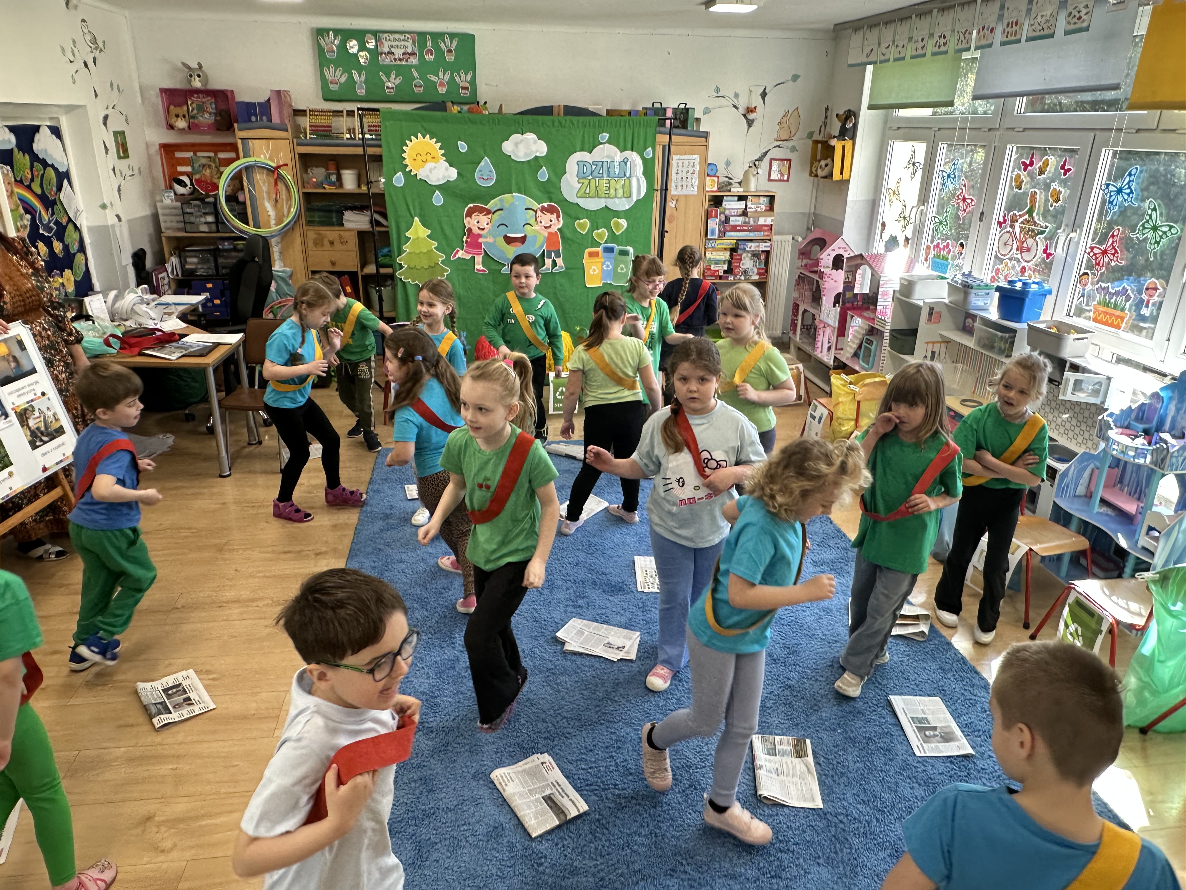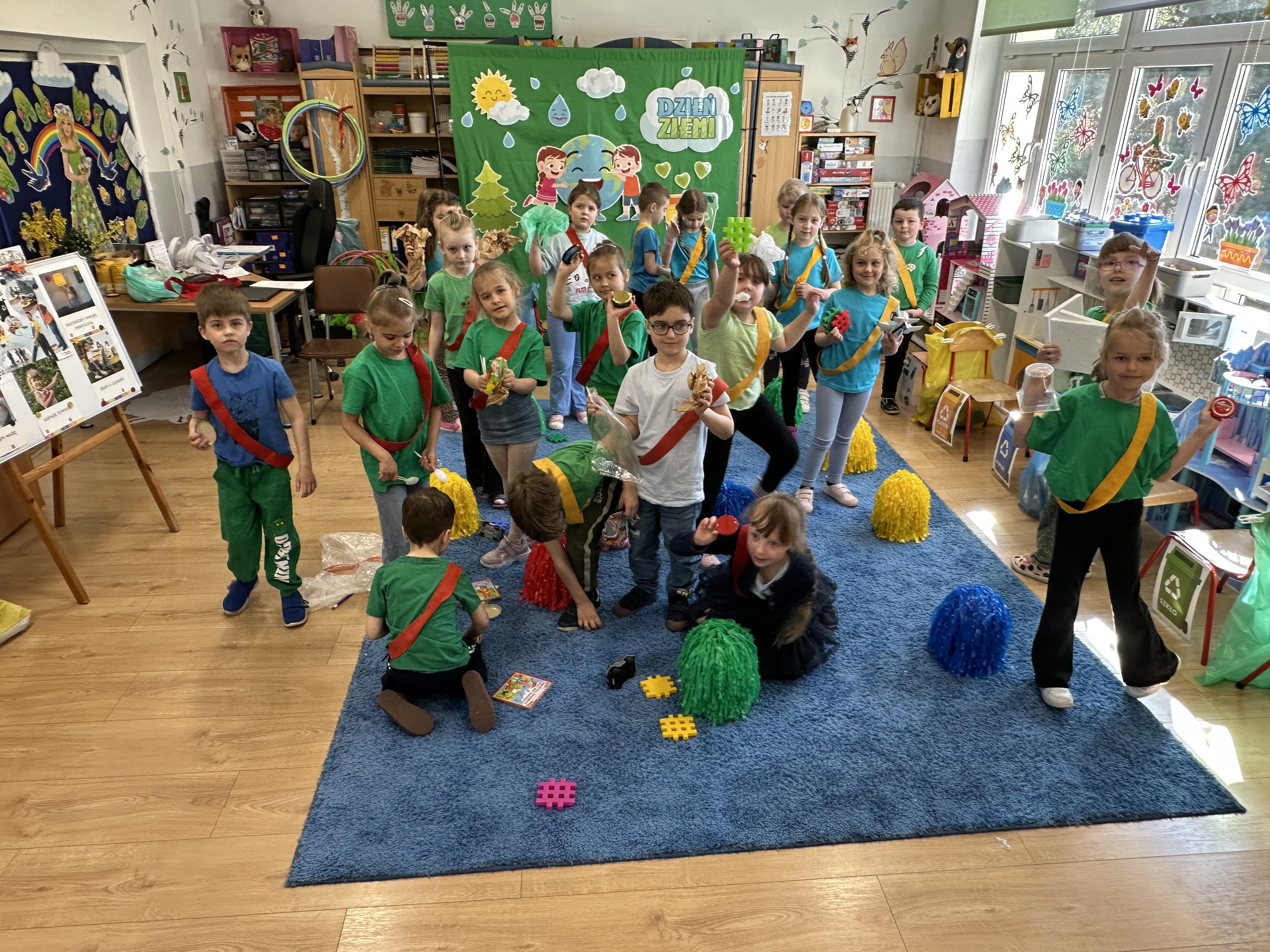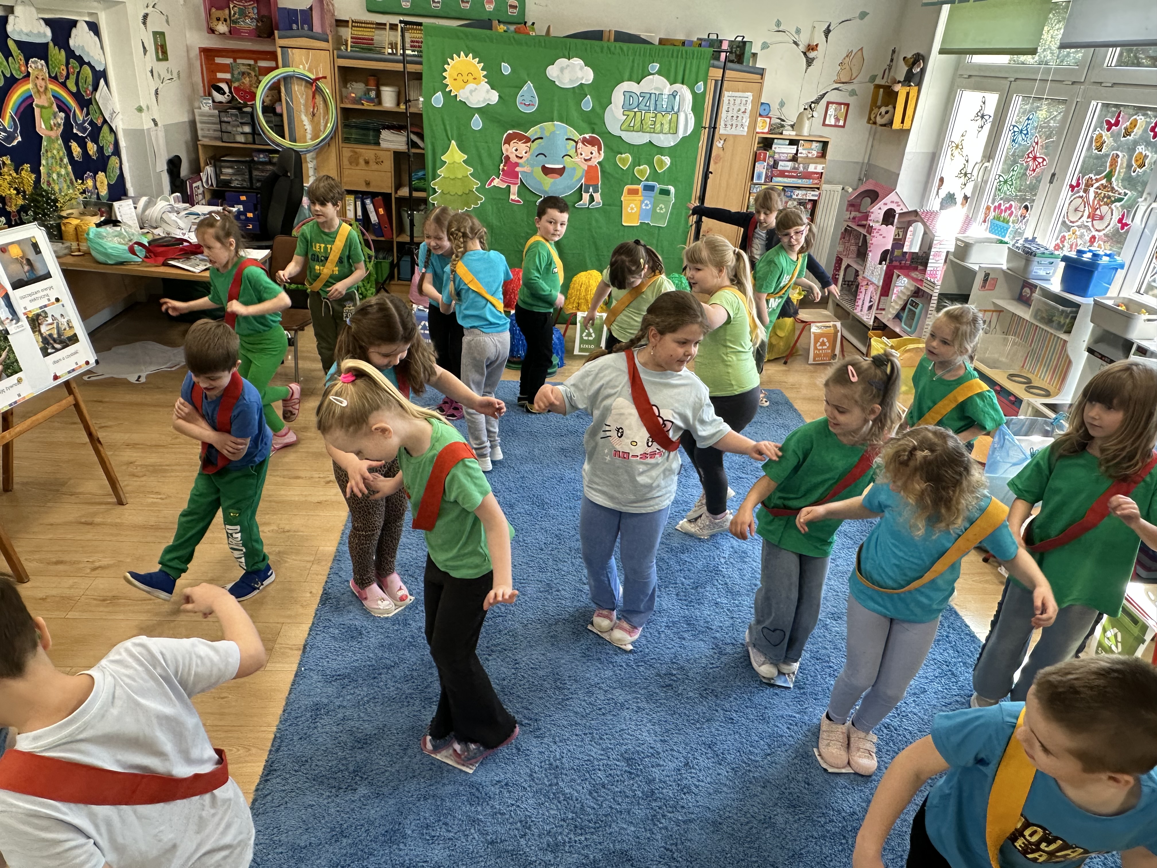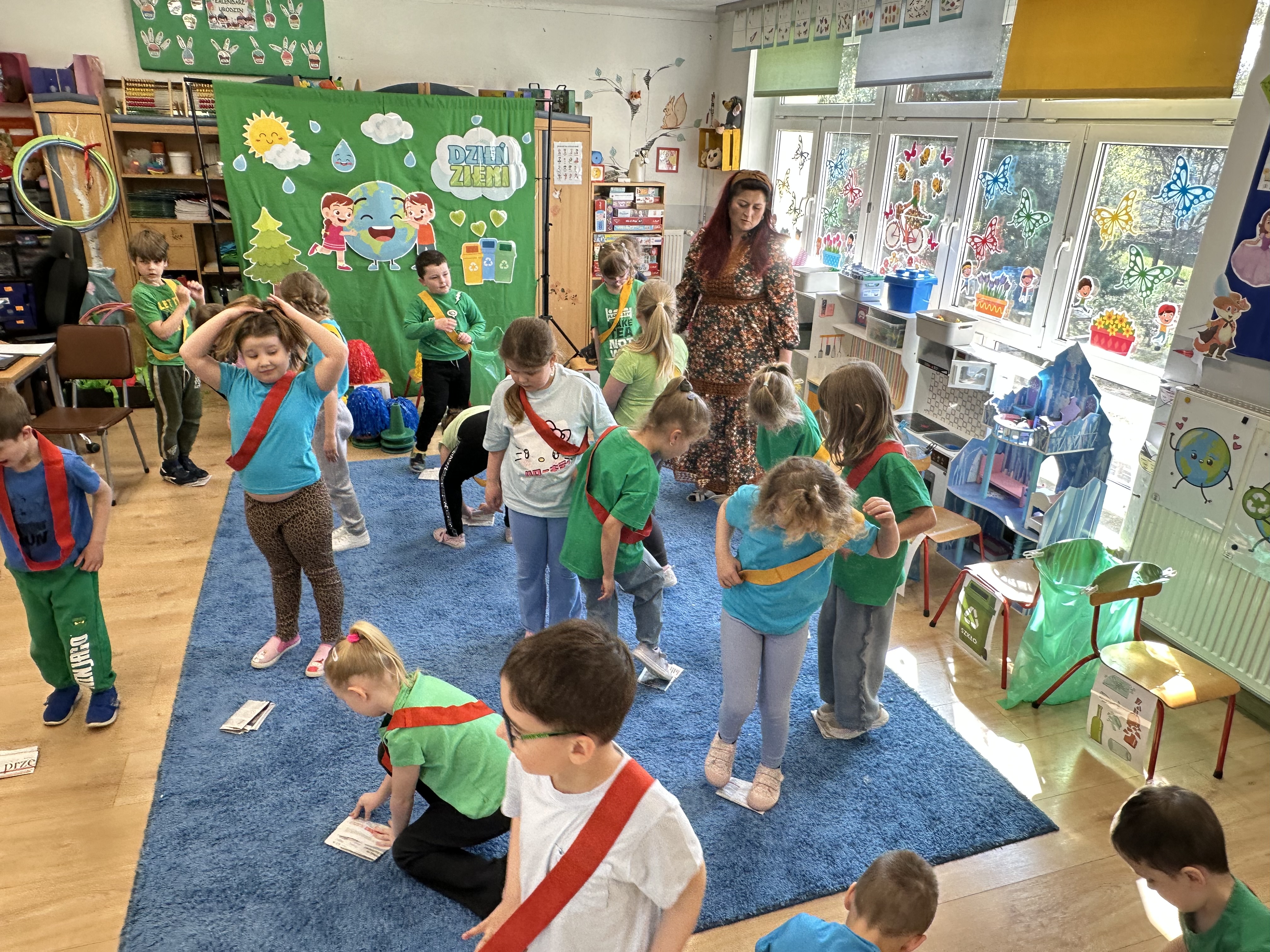 Z okazji Dnia Ziemi w grupie ,,Pszczółek” odbyły się sytuacje edukacyjne, których celem było kształtowanie postaw proekologicznych wśród dzieci poprzez zabawę, ruch i wspólne działania.