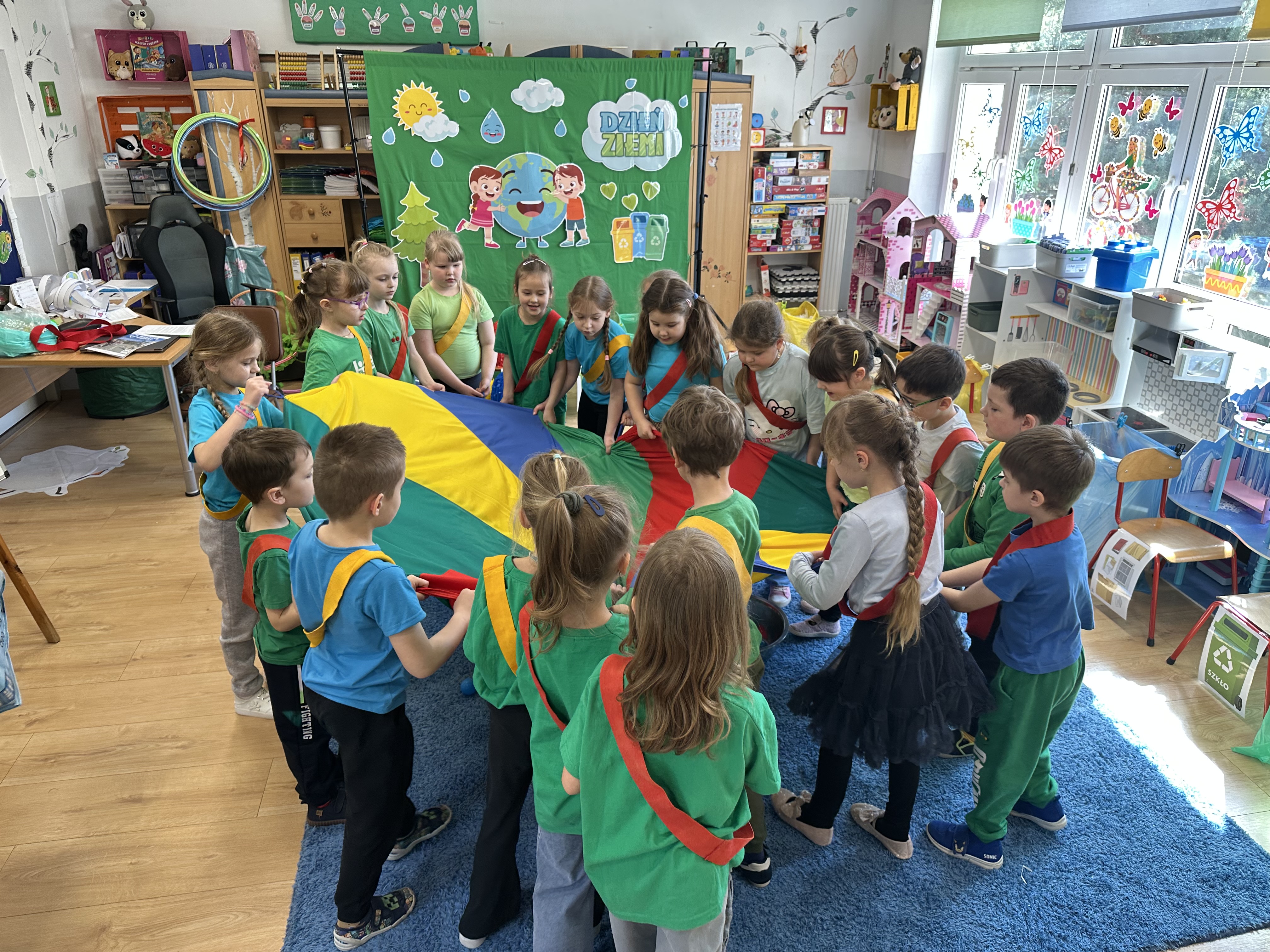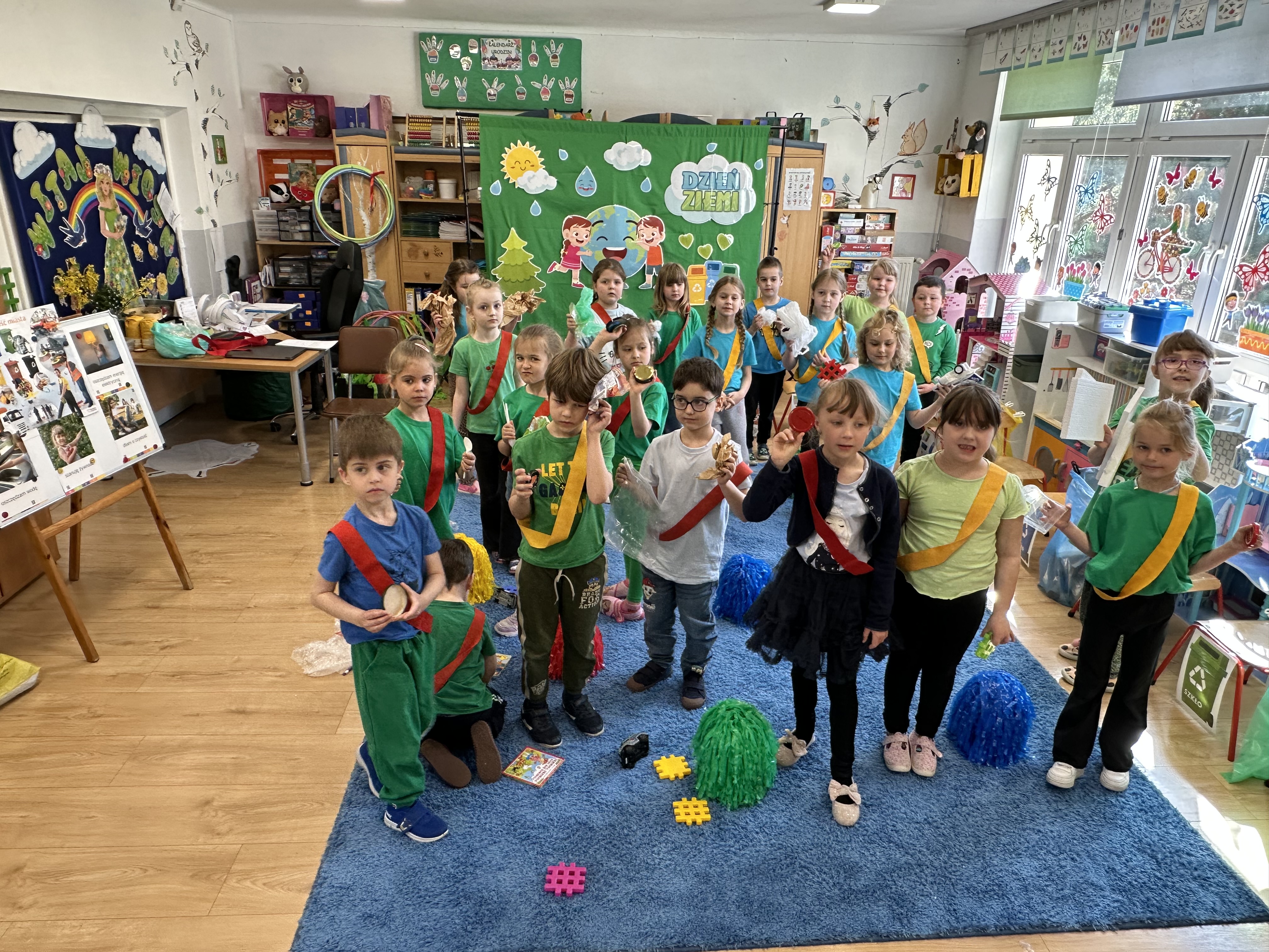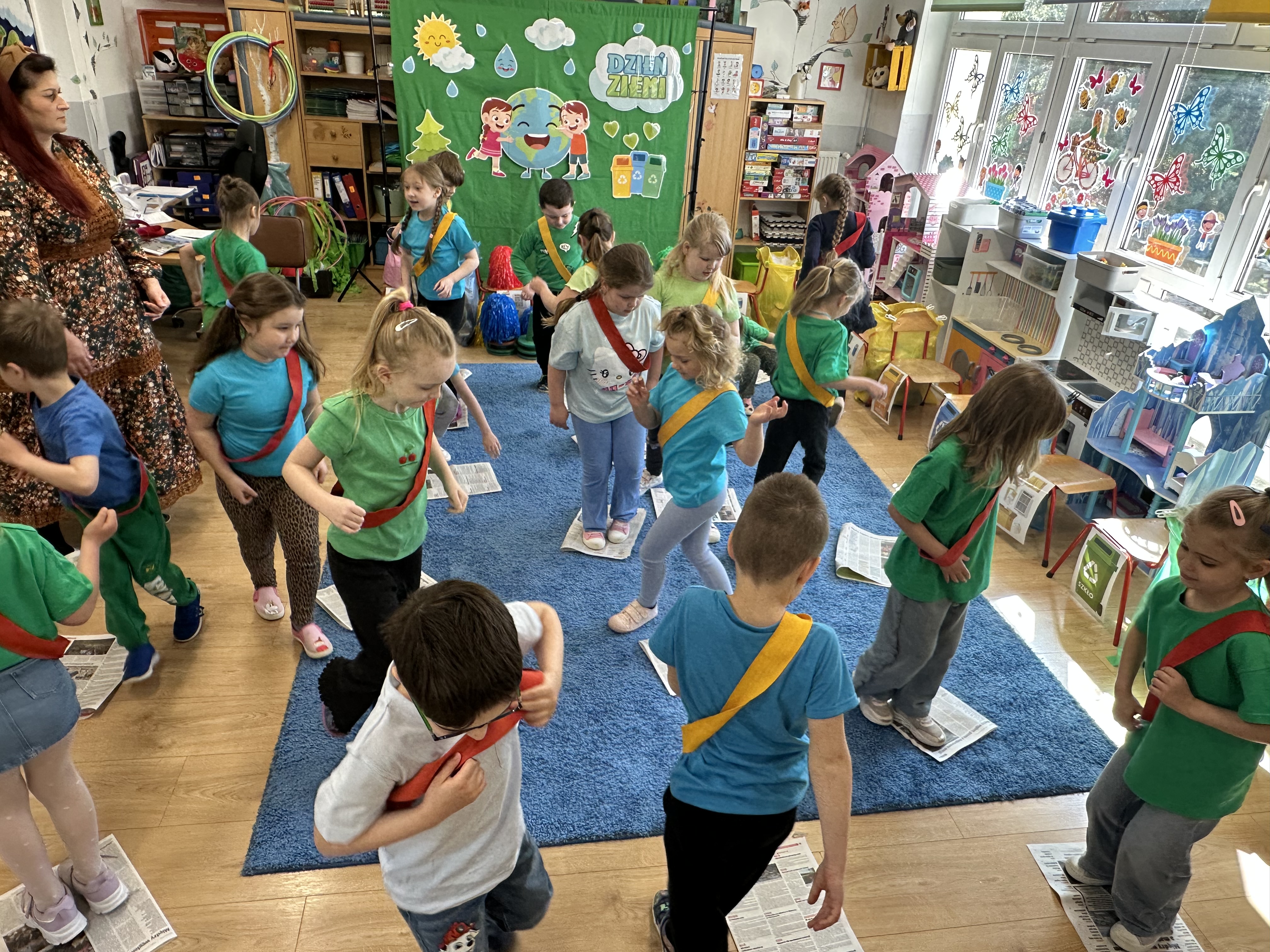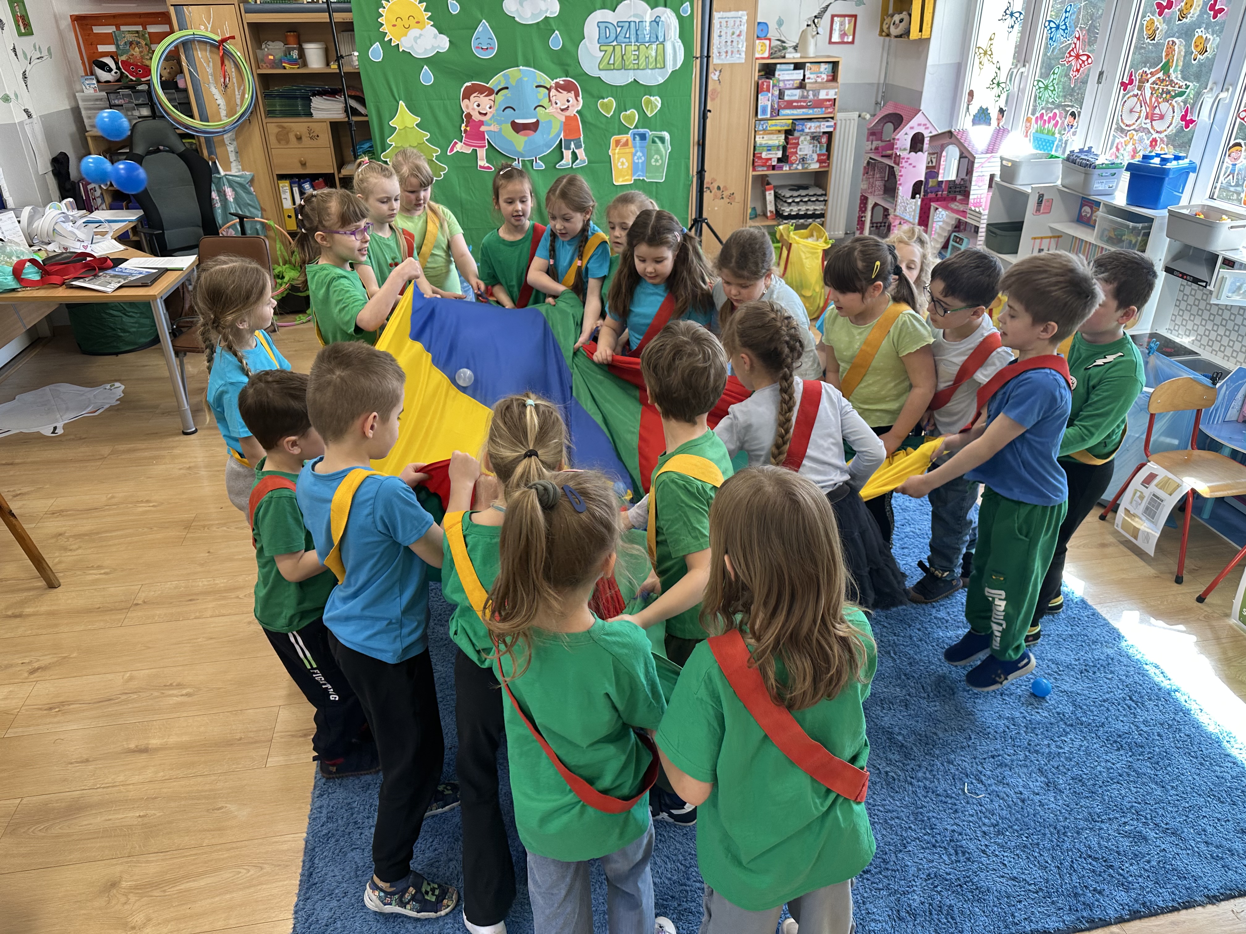 Z okazji Dnia Ziemi w grupie ,,Pszczółek” odbyły się sytuacje edukacyjne, których celem było kształtowanie postaw proekologicznych wśród dzieci poprzez zabawę, ruch i wspólne działania.