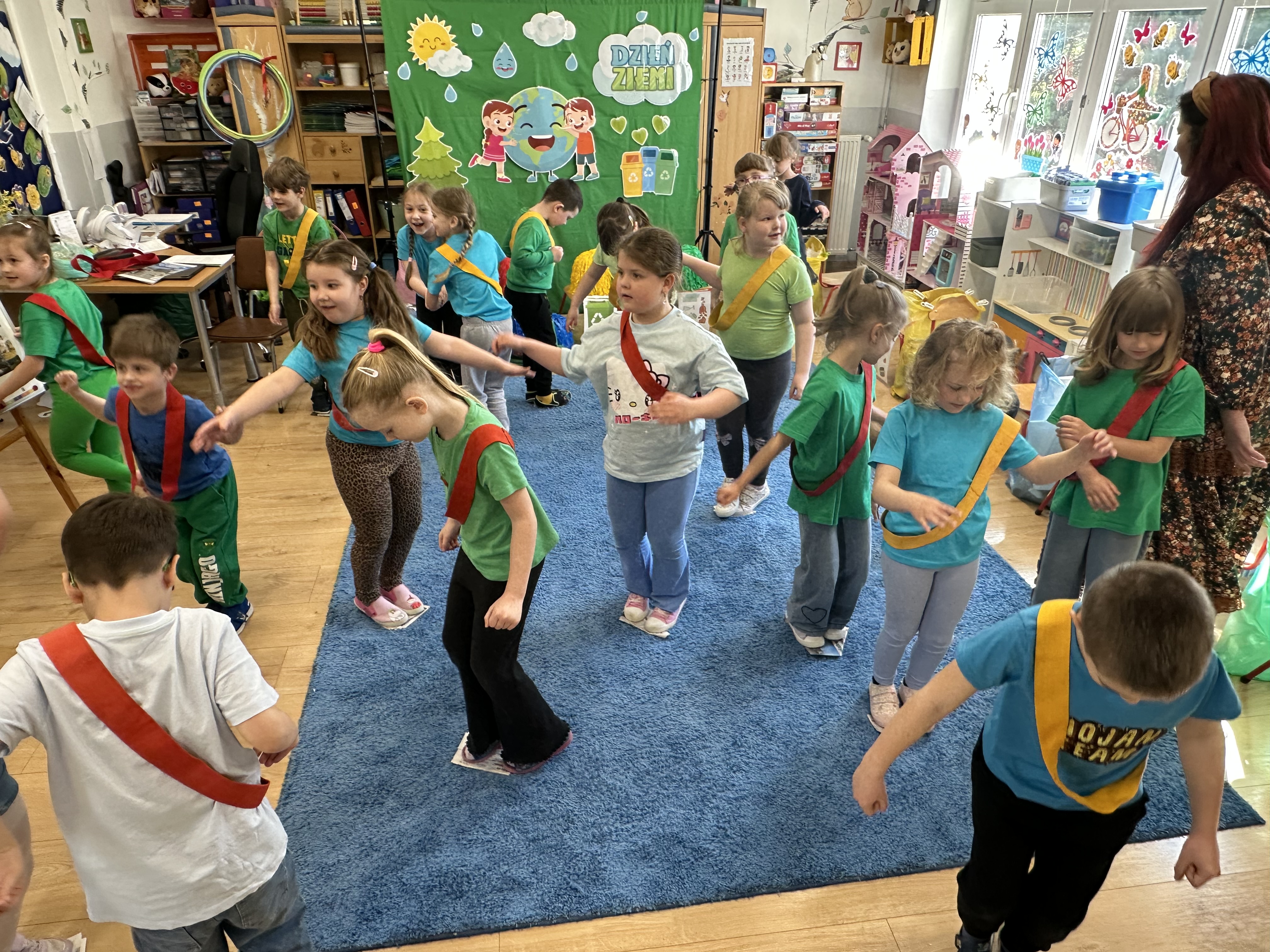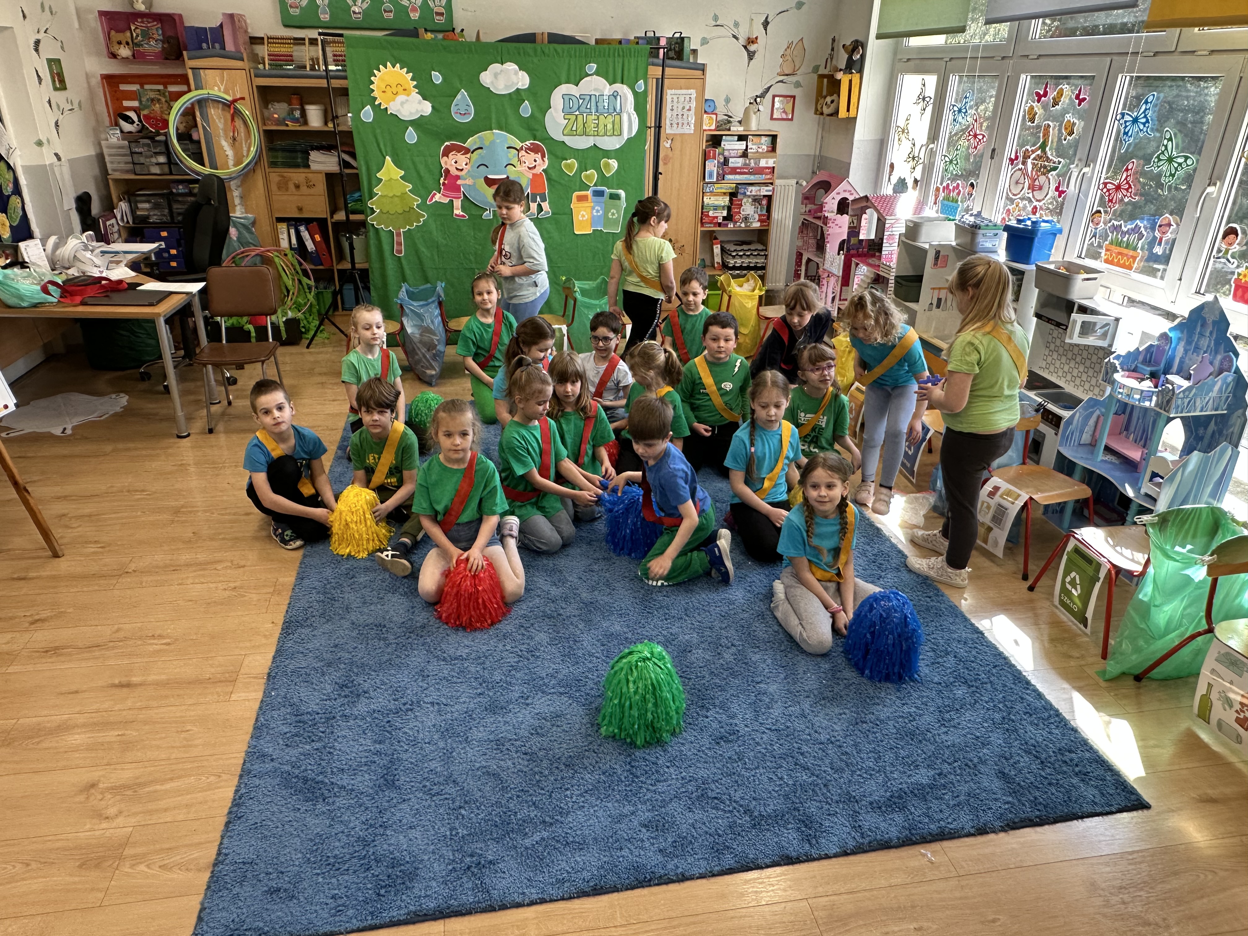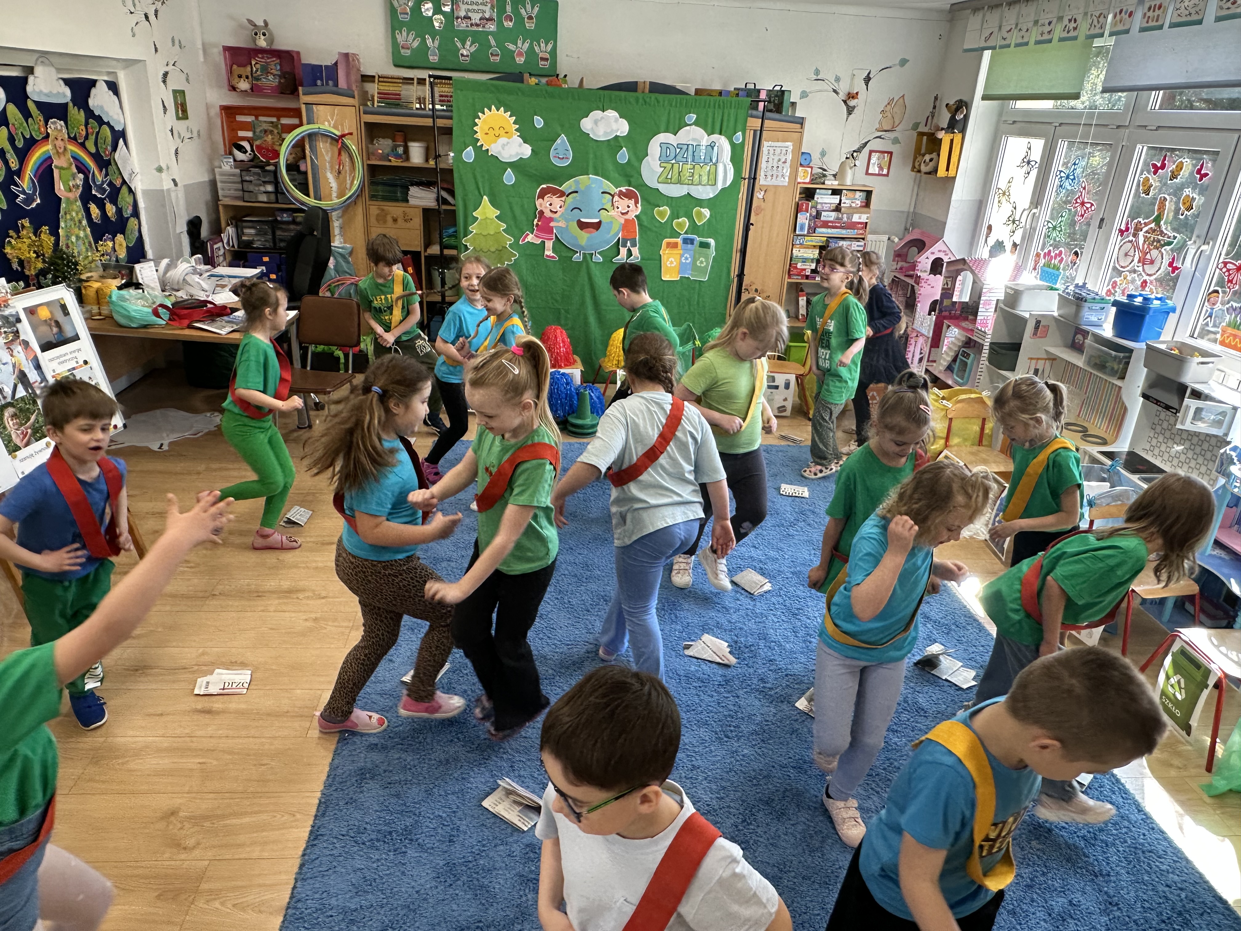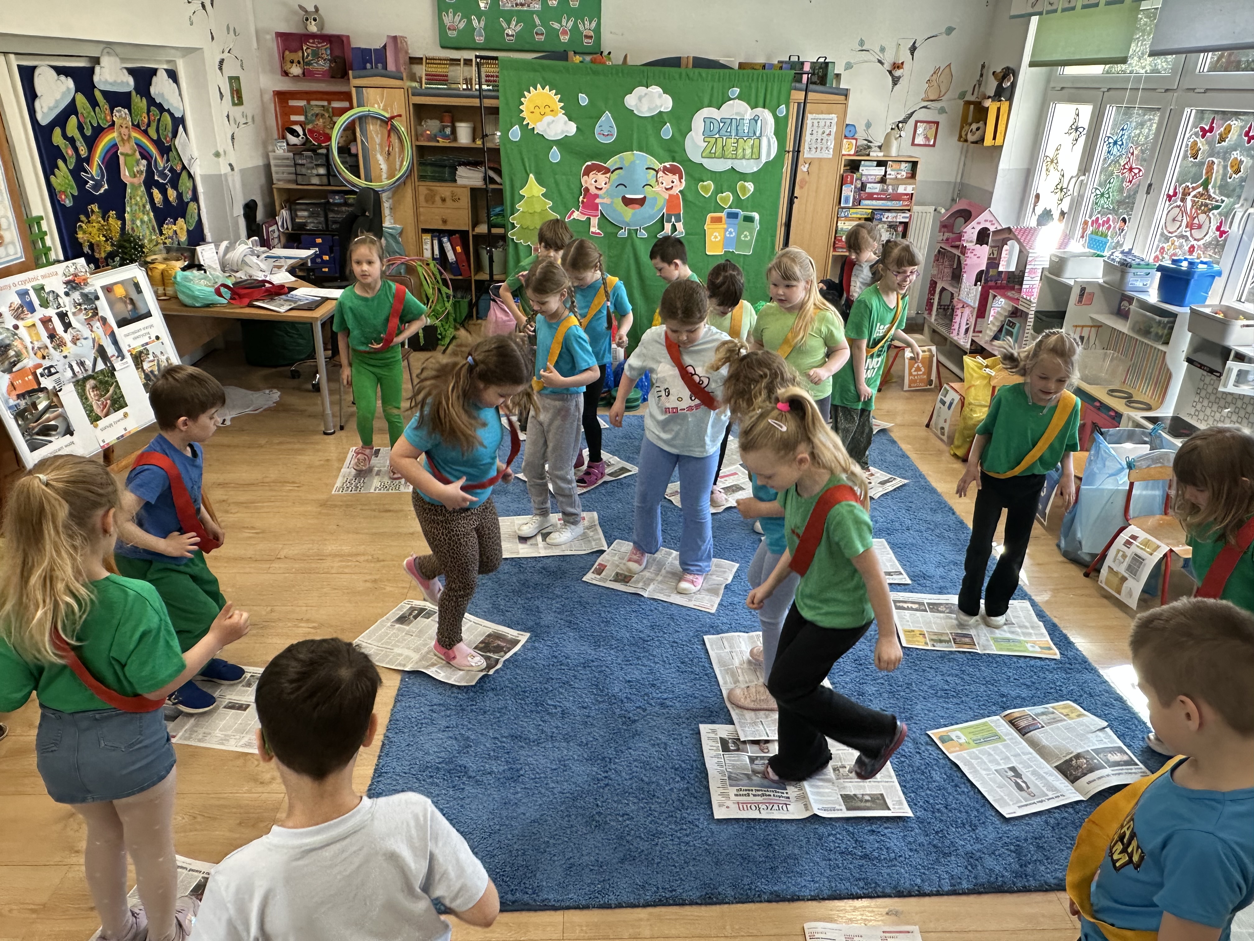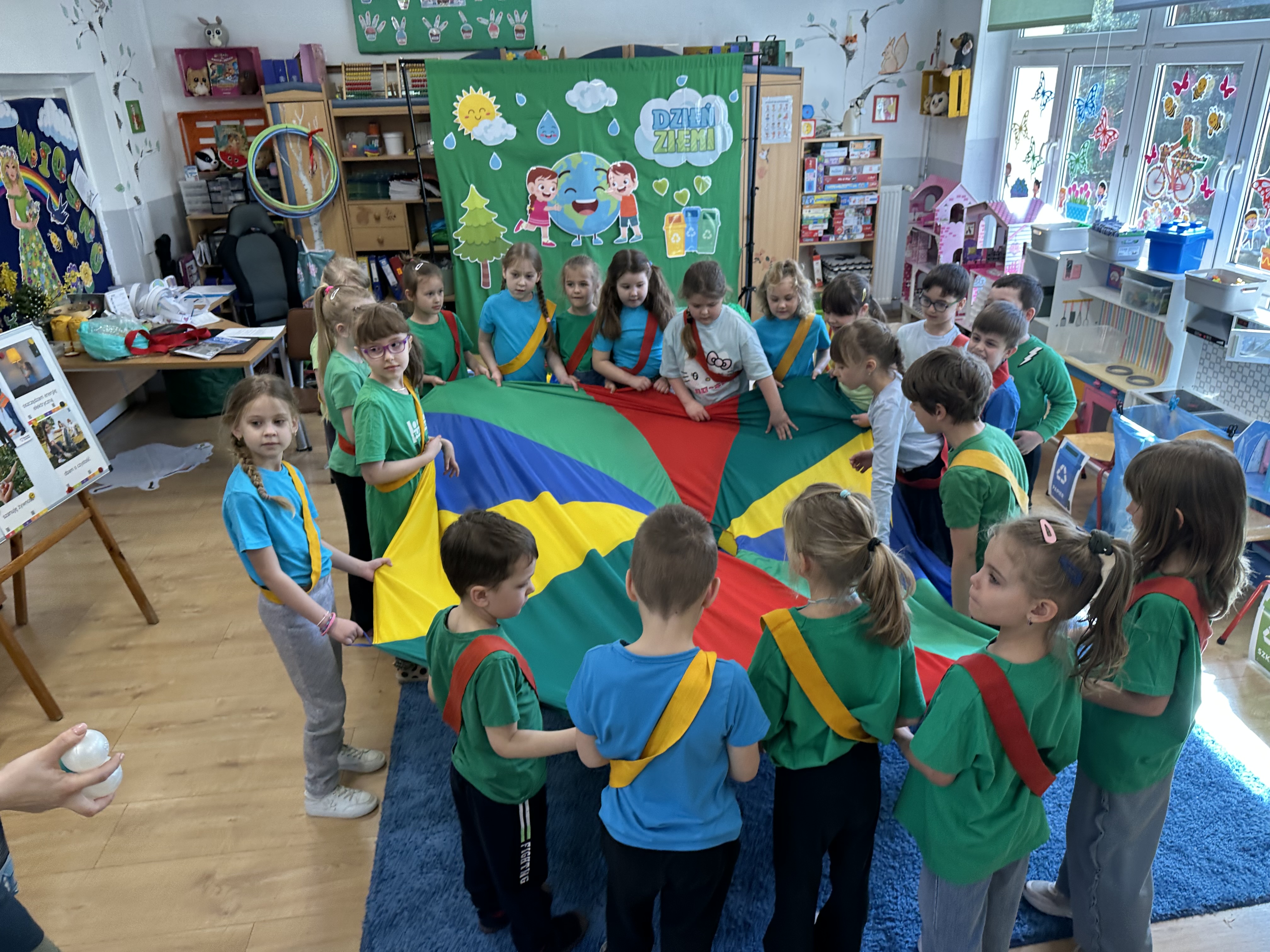 Z okazji Dnia Ziemi w grupie ,,Pszczółek” odbyły się sytuacje edukacyjne, których celem było kształtowanie postaw proekologicznych wśród dzieci poprzez zabawę, ruch i wspólne działania.
